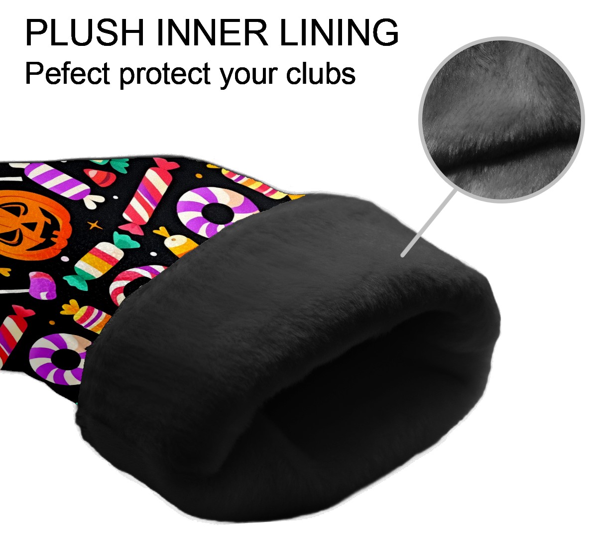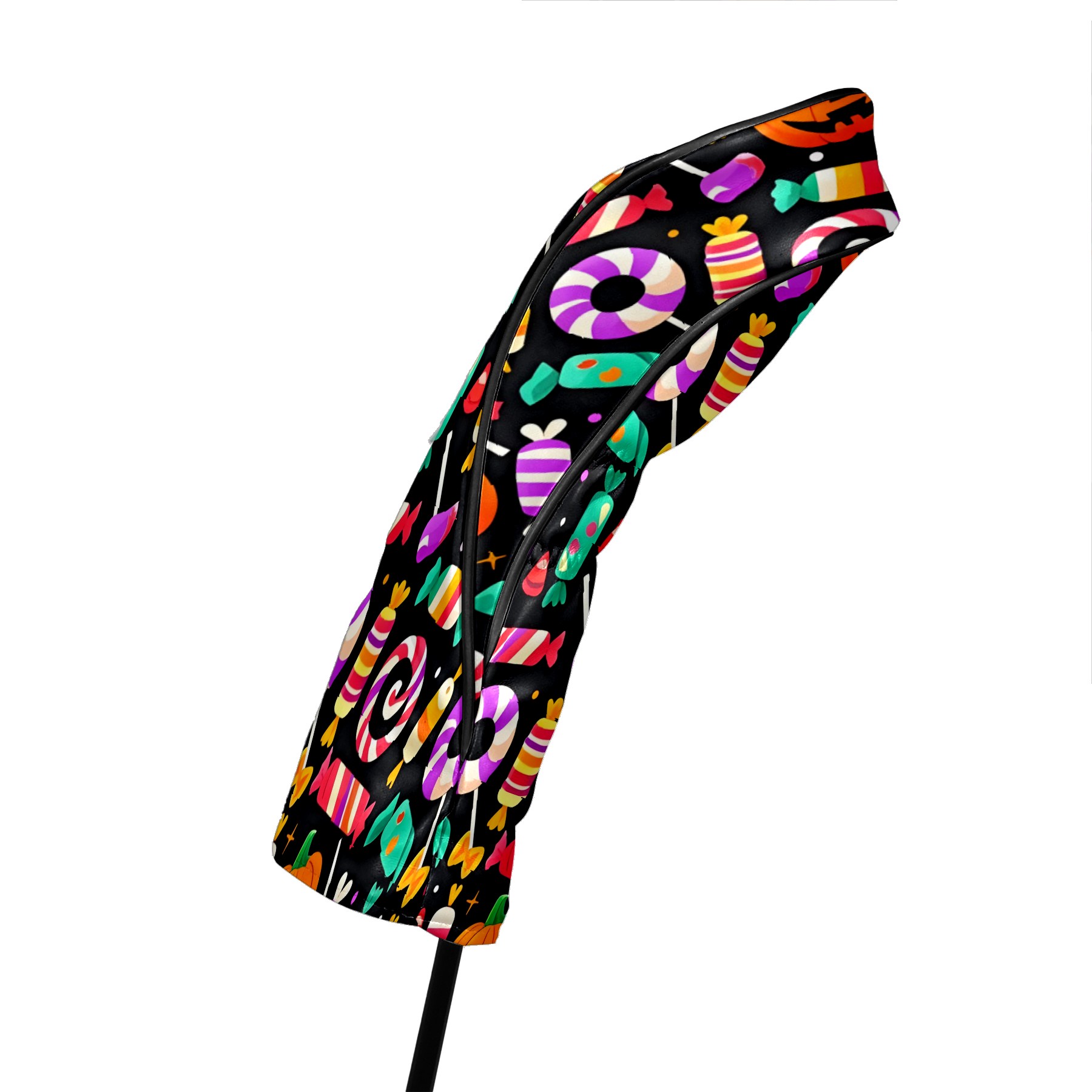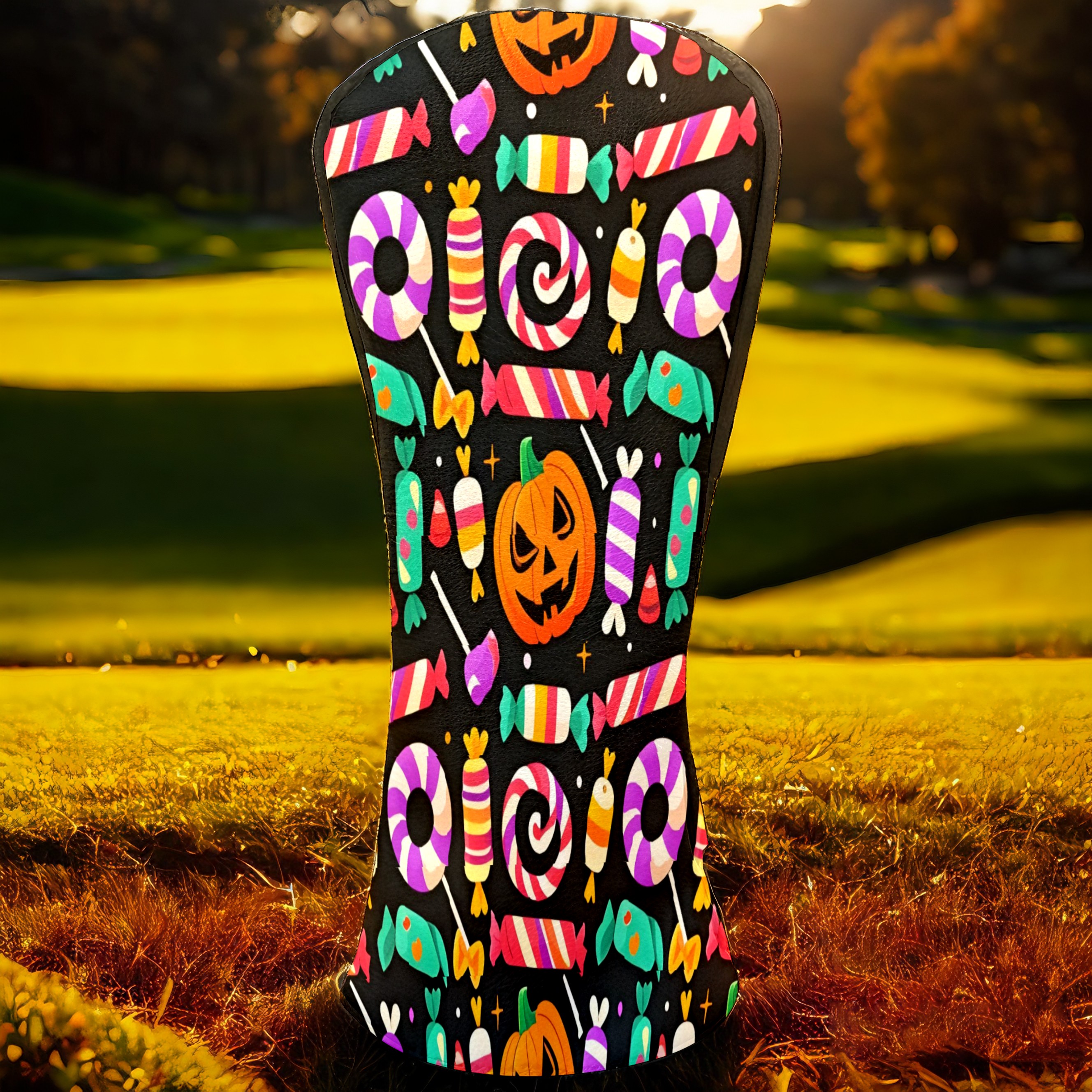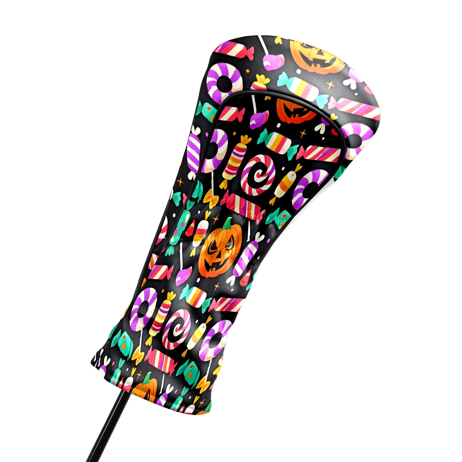 Golf Club Covers, Black HalloweenCandy Premium PU Leather Driver Hybrid Putter Head Covers with Velvet Lining, Waterproof Golf Gifts for Men Women