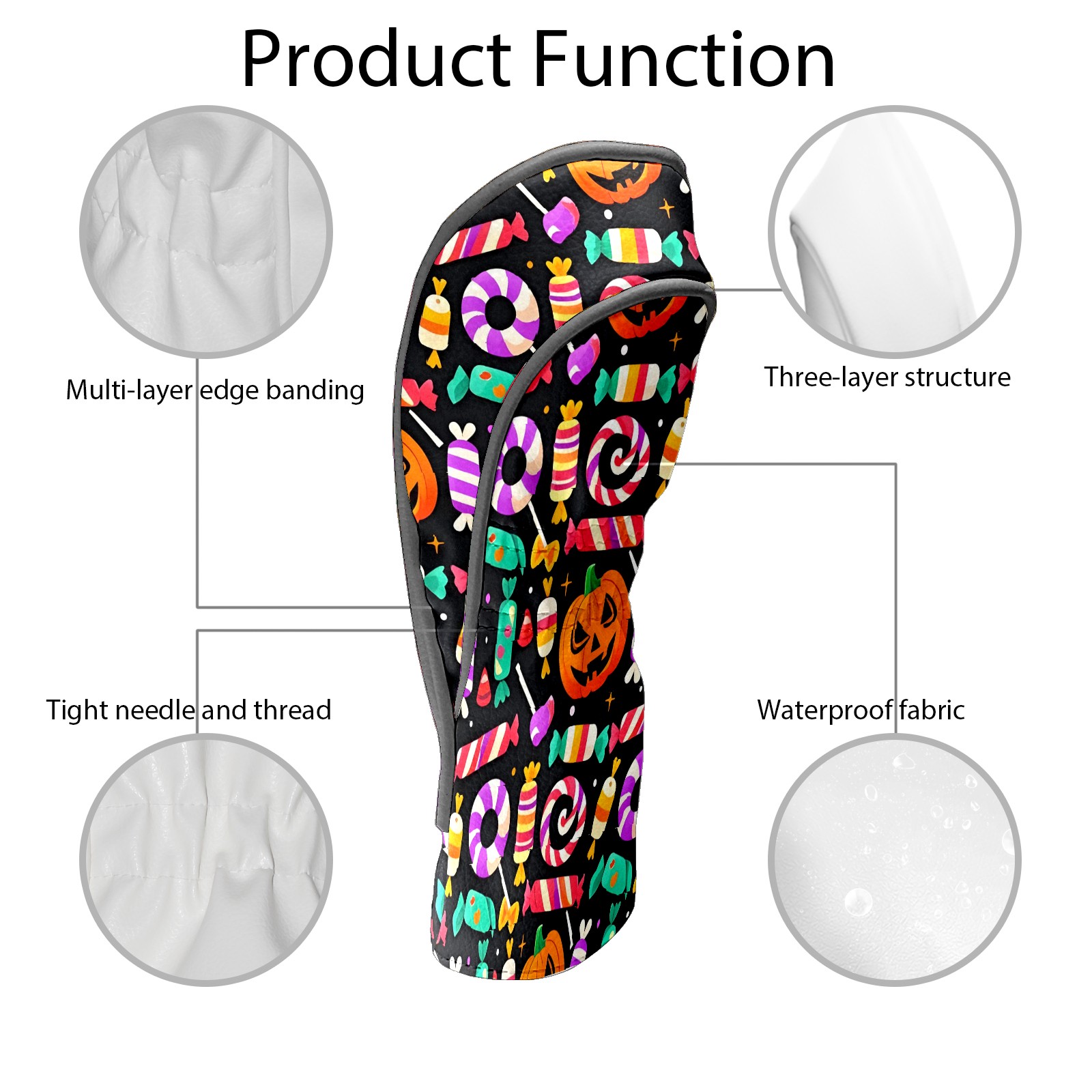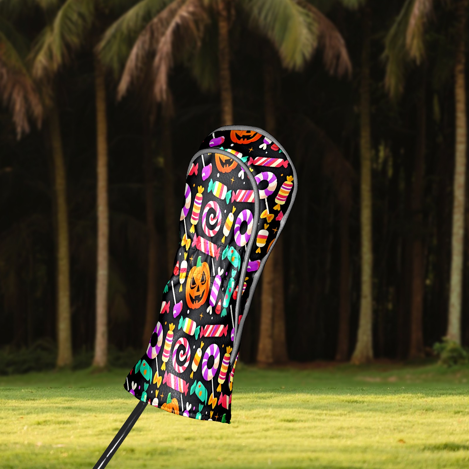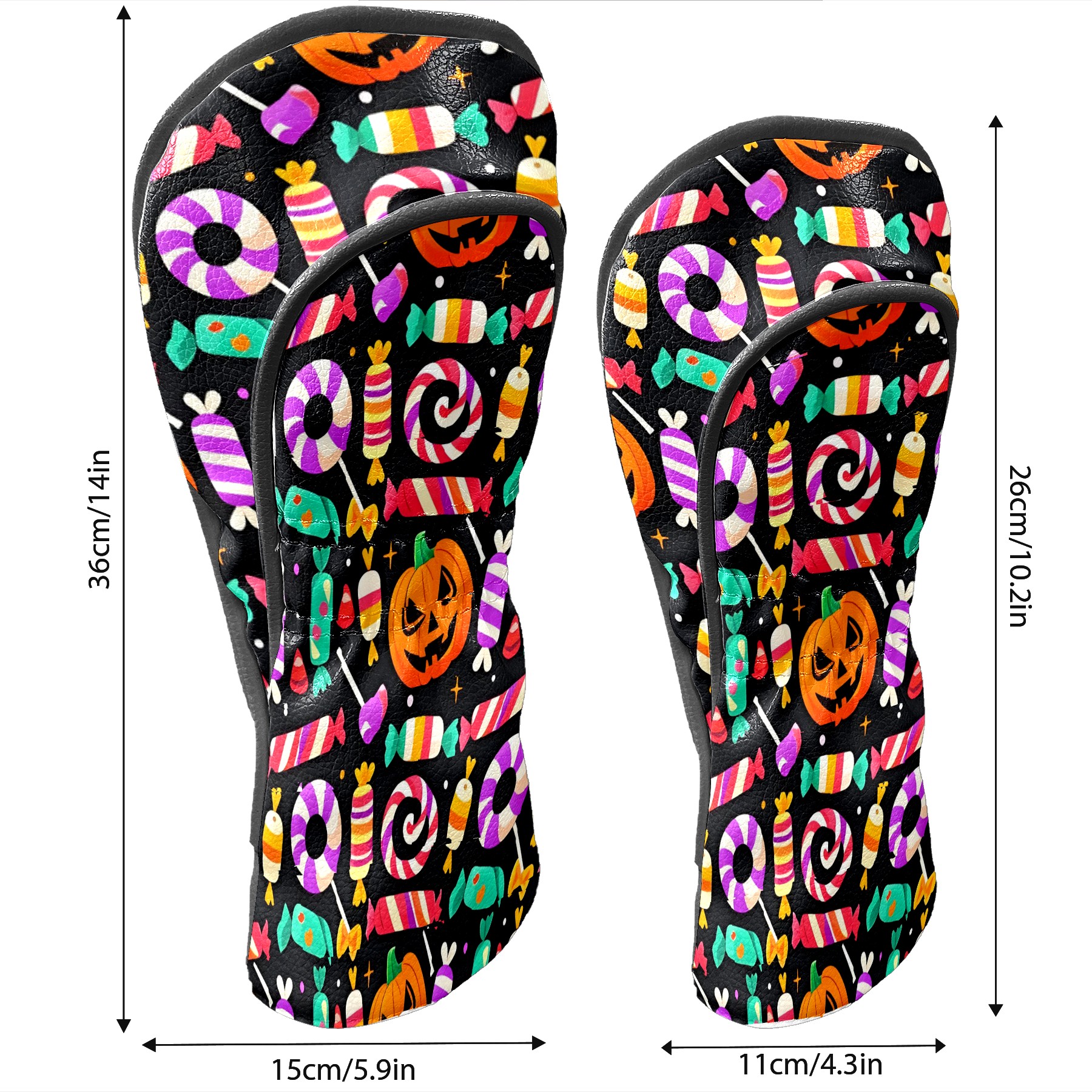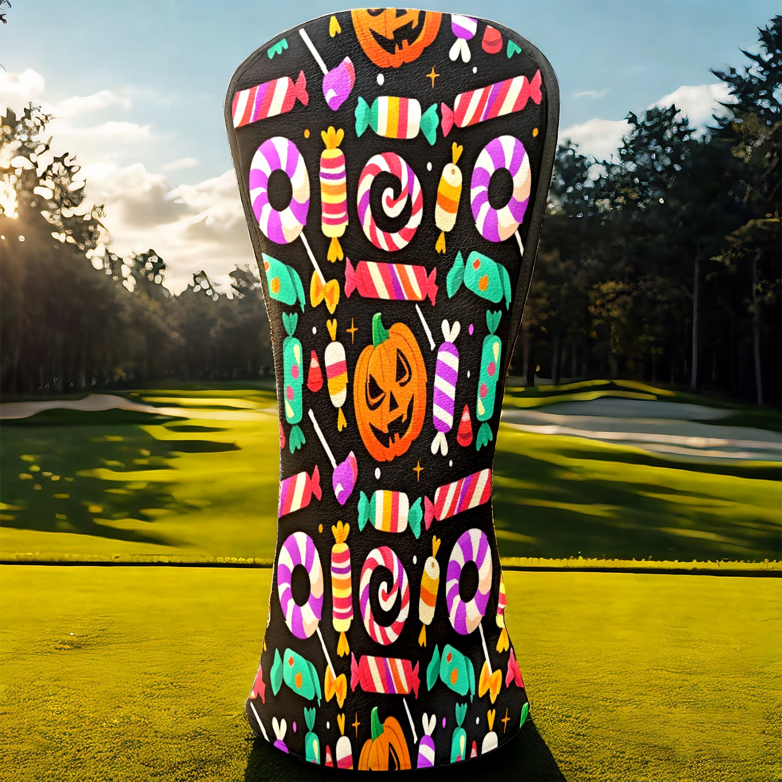 Golf Club Covers, Black HalloweenCandy Premium PU Leather Driver Hybrid Putter Head Covers with Velvet Lining, Waterproof Golf Gifts for Men Women