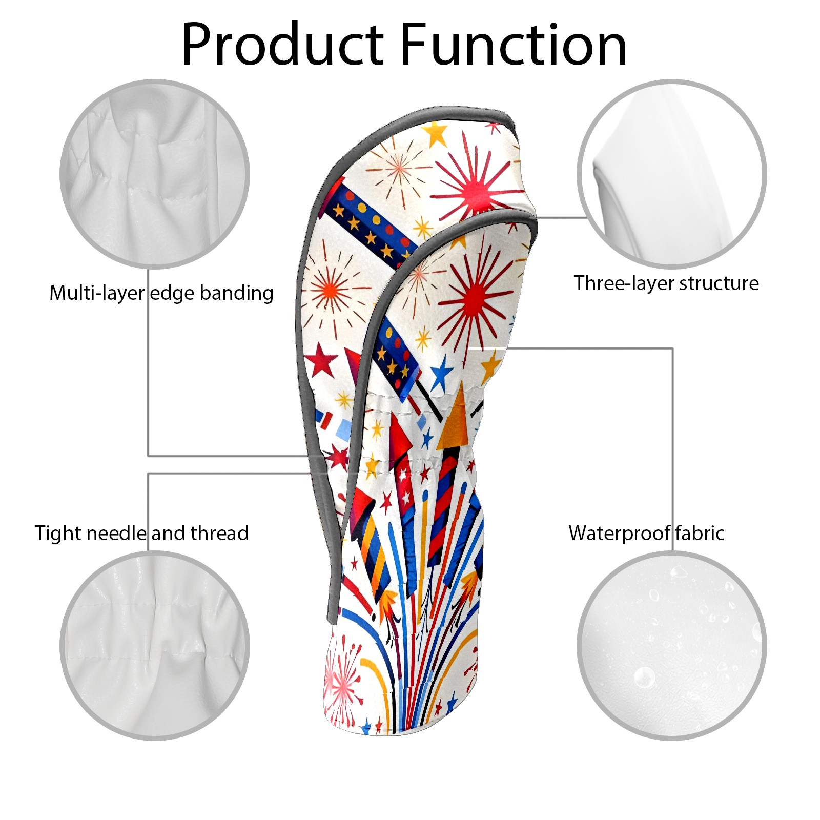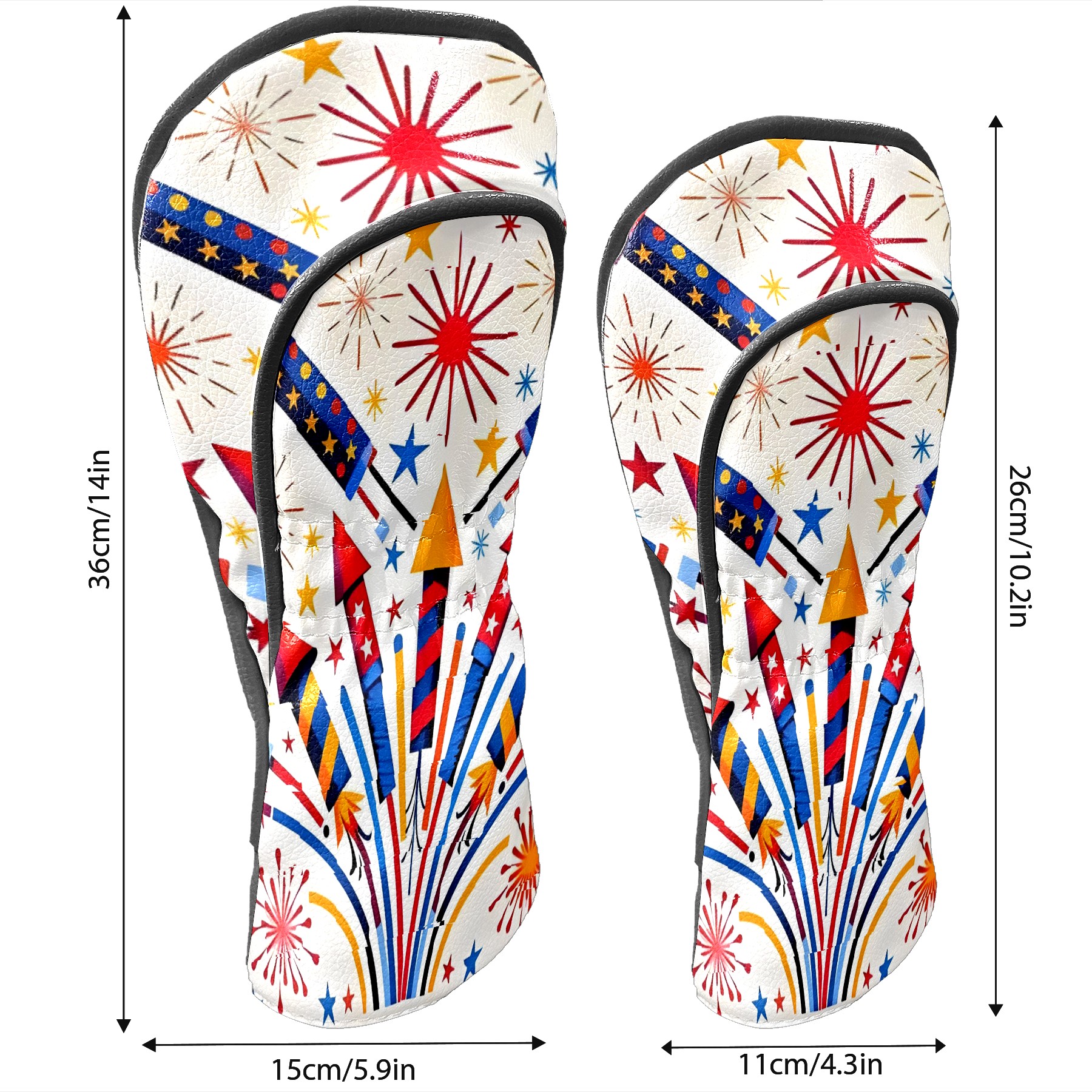 Golf Club Covers, Red FireworkStar Premium PU Leather Driver Hybrid Putter Head Covers with Velvet Lining, Waterproof Golf Gifts for Men Women