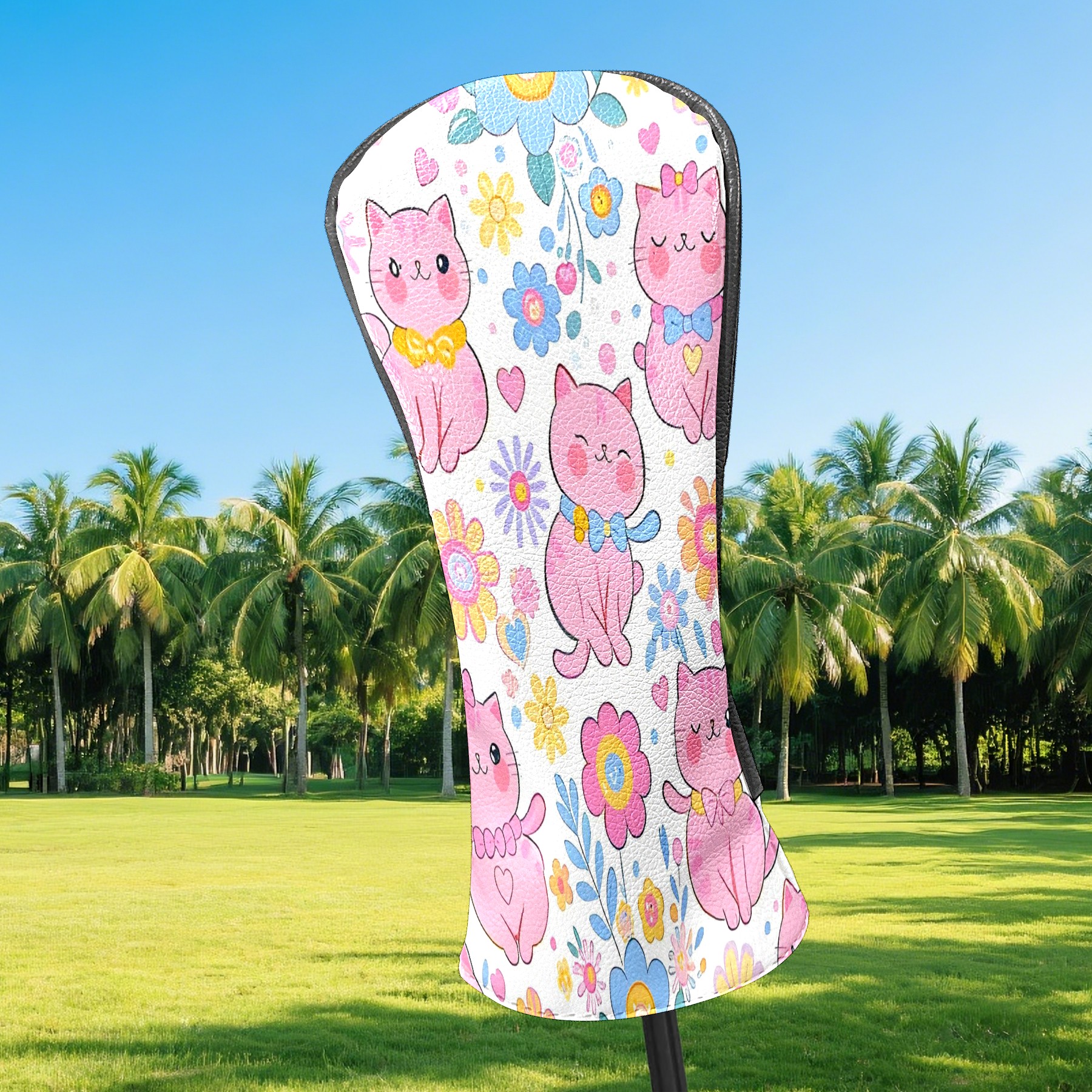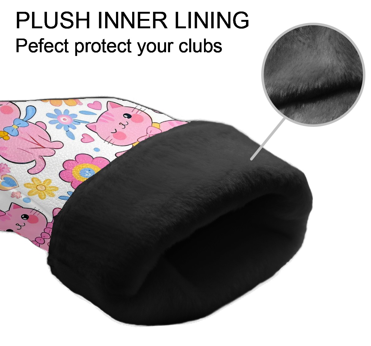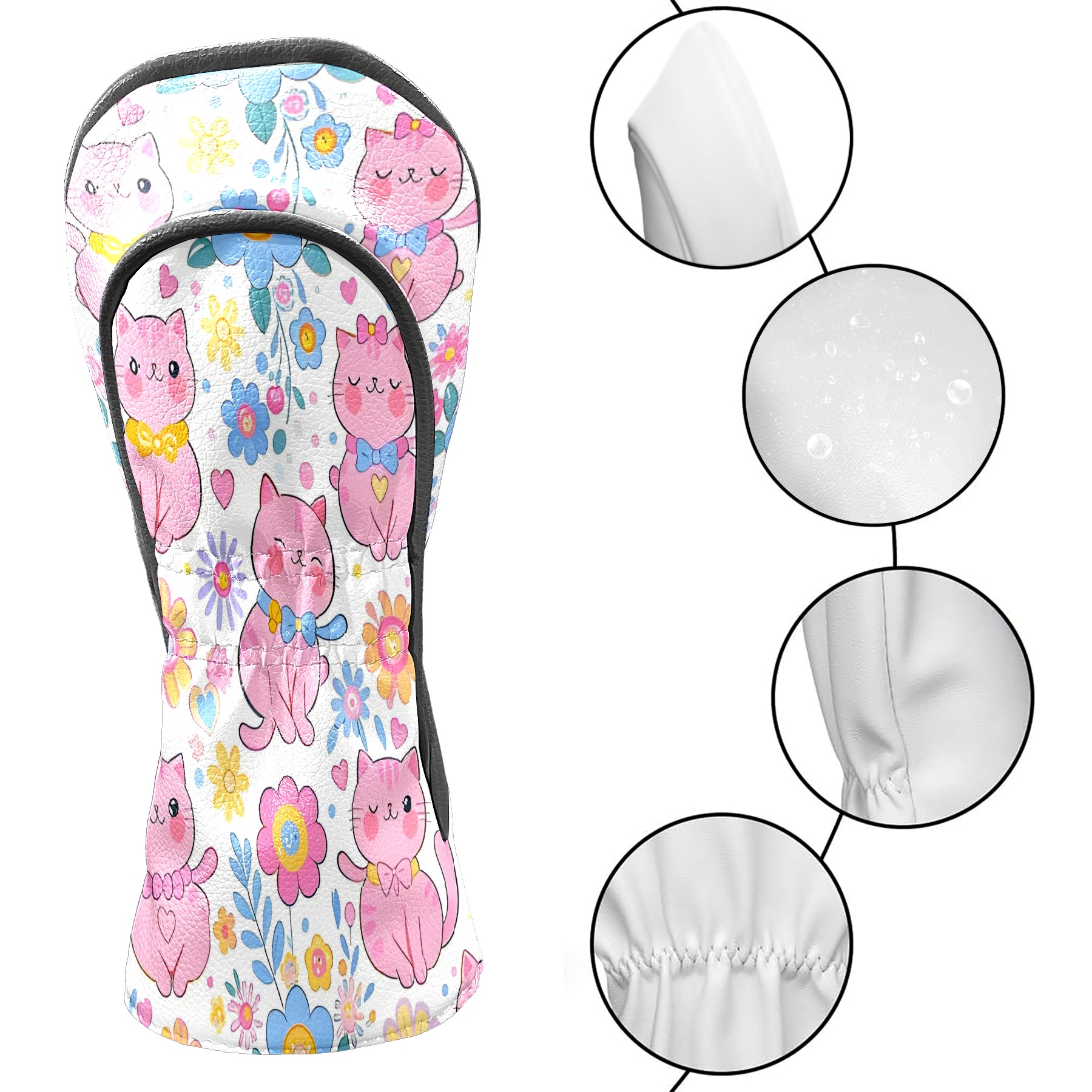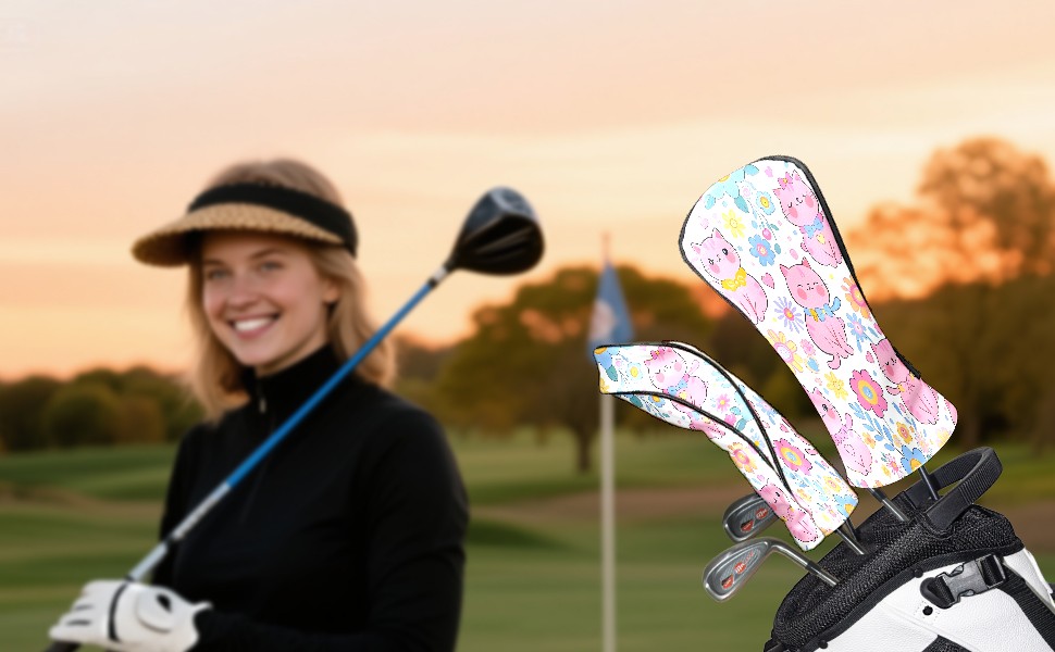 Golf Club Covers, LightPink Cat Premium PU Leather Driver Hybrid Putter Head Covers with Velvet Lining, Waterproof Golf Gifts for Men Women