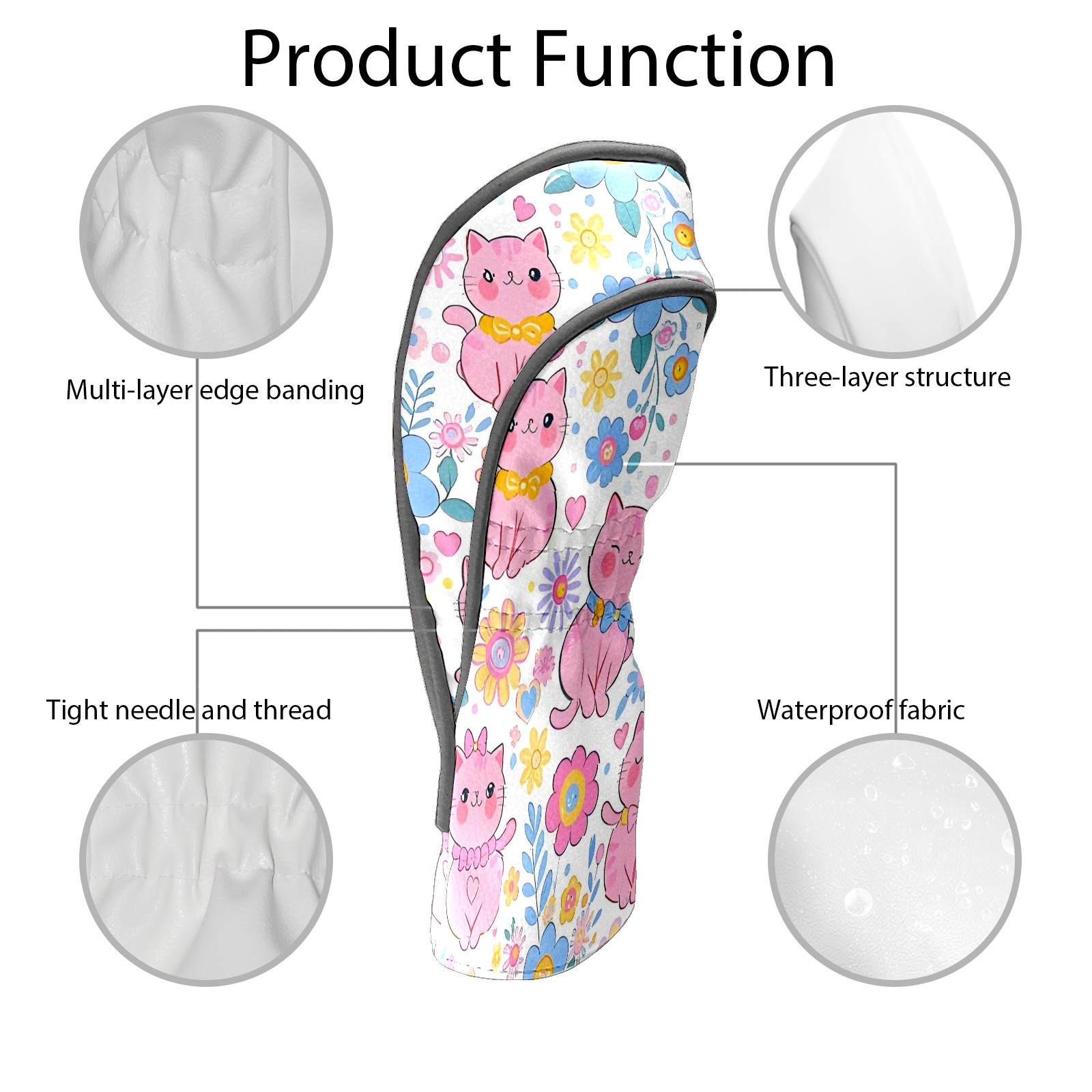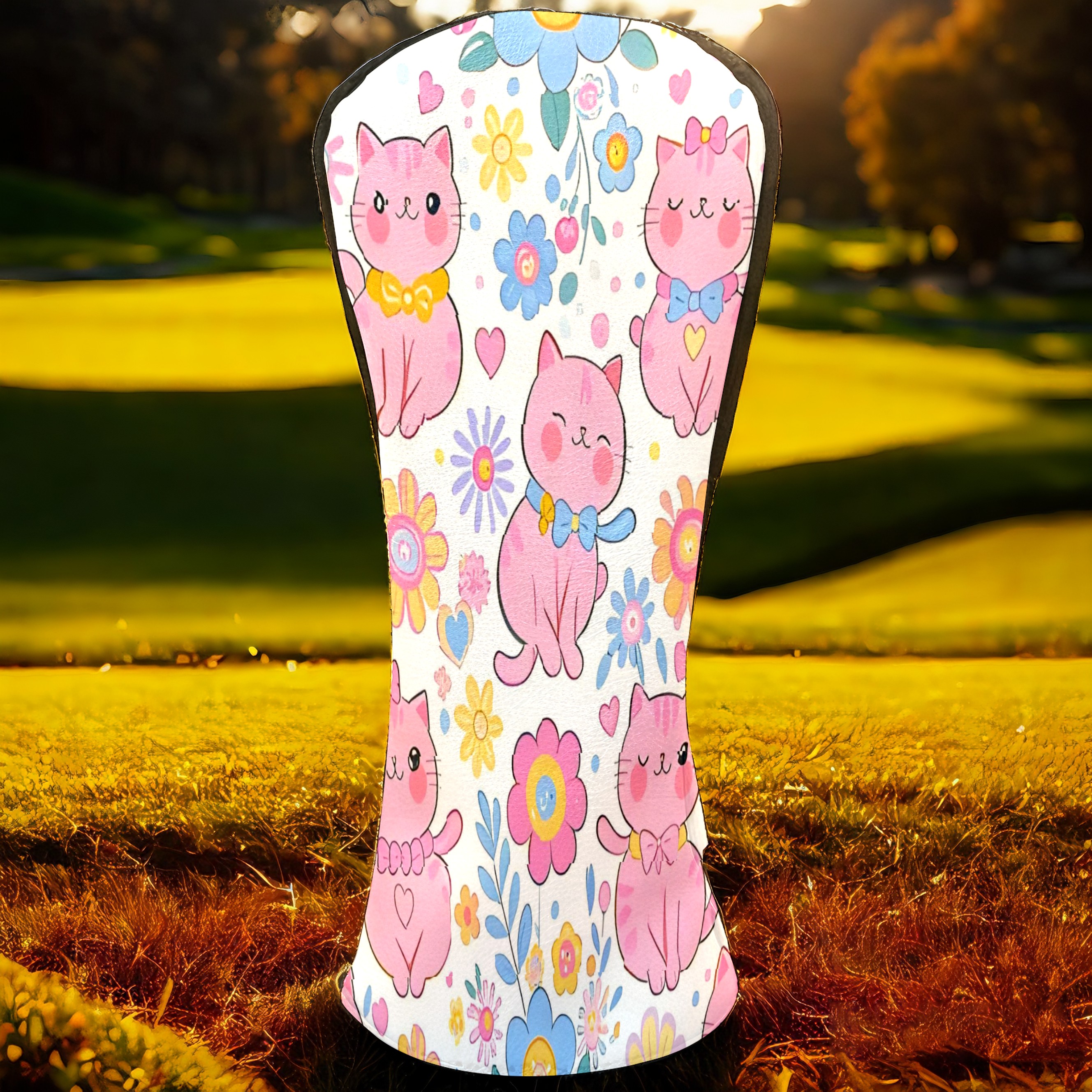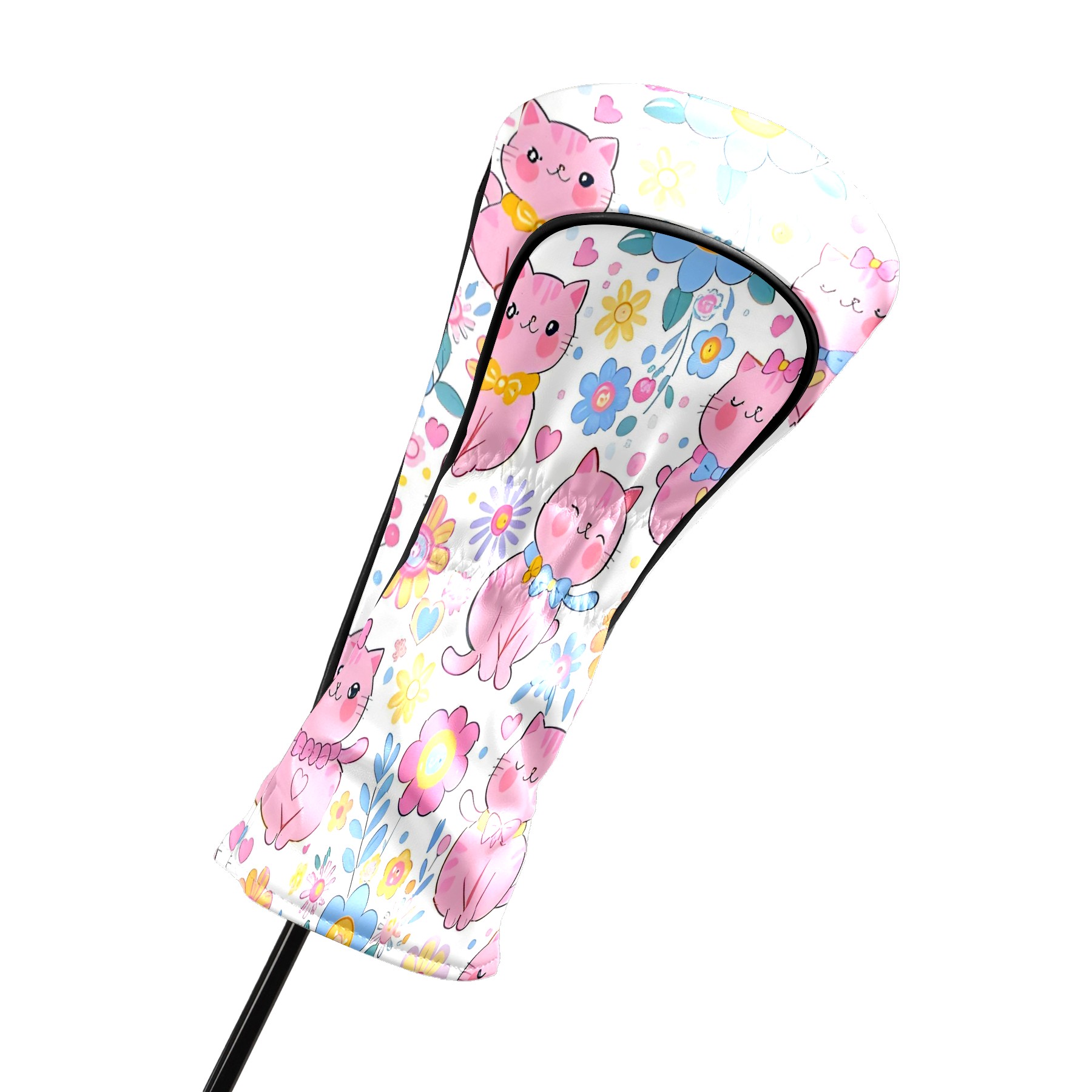 Golf Club Covers, LightPink Cat Premium PU Leather Driver Hybrid Putter Head Covers with Velvet Lining, Waterproof Golf Gifts for Men Women