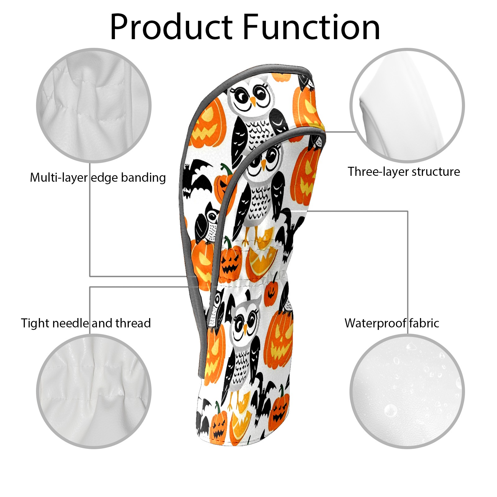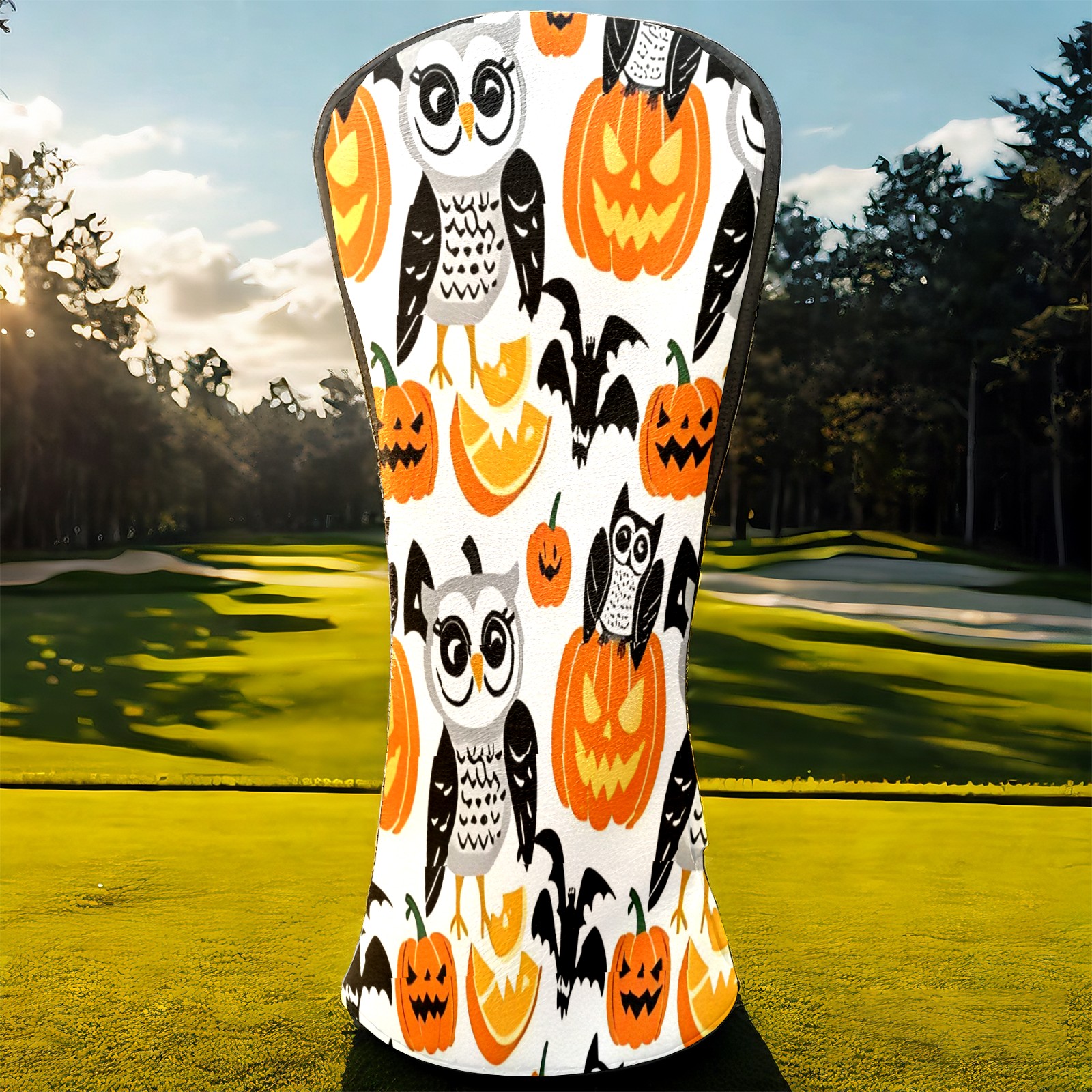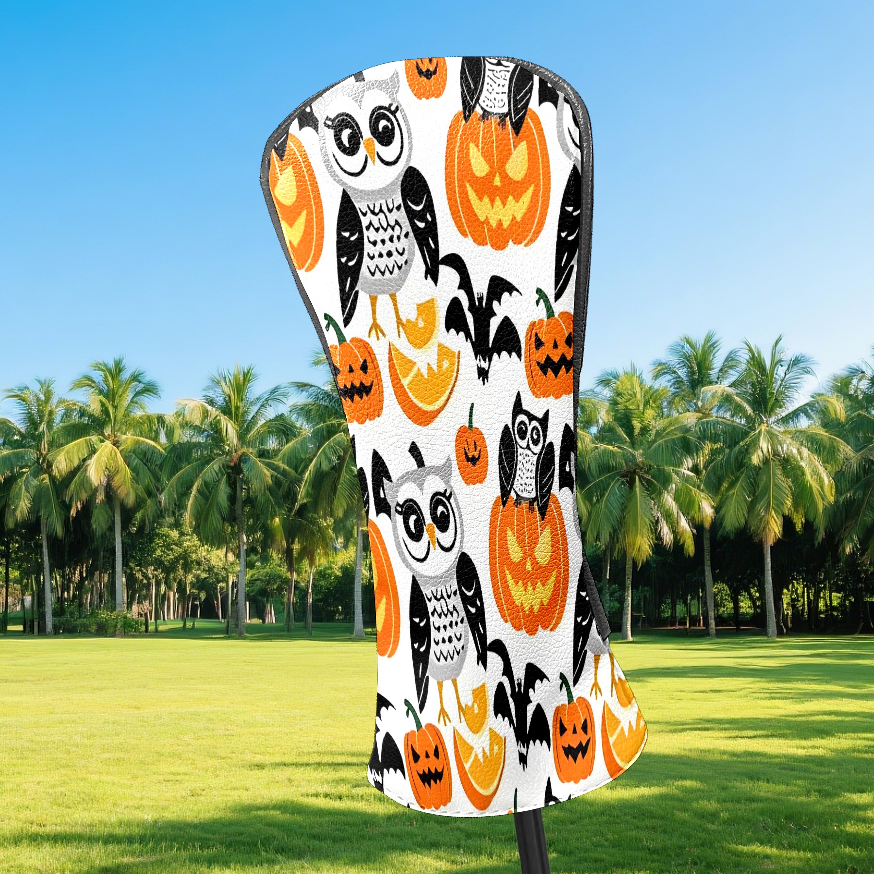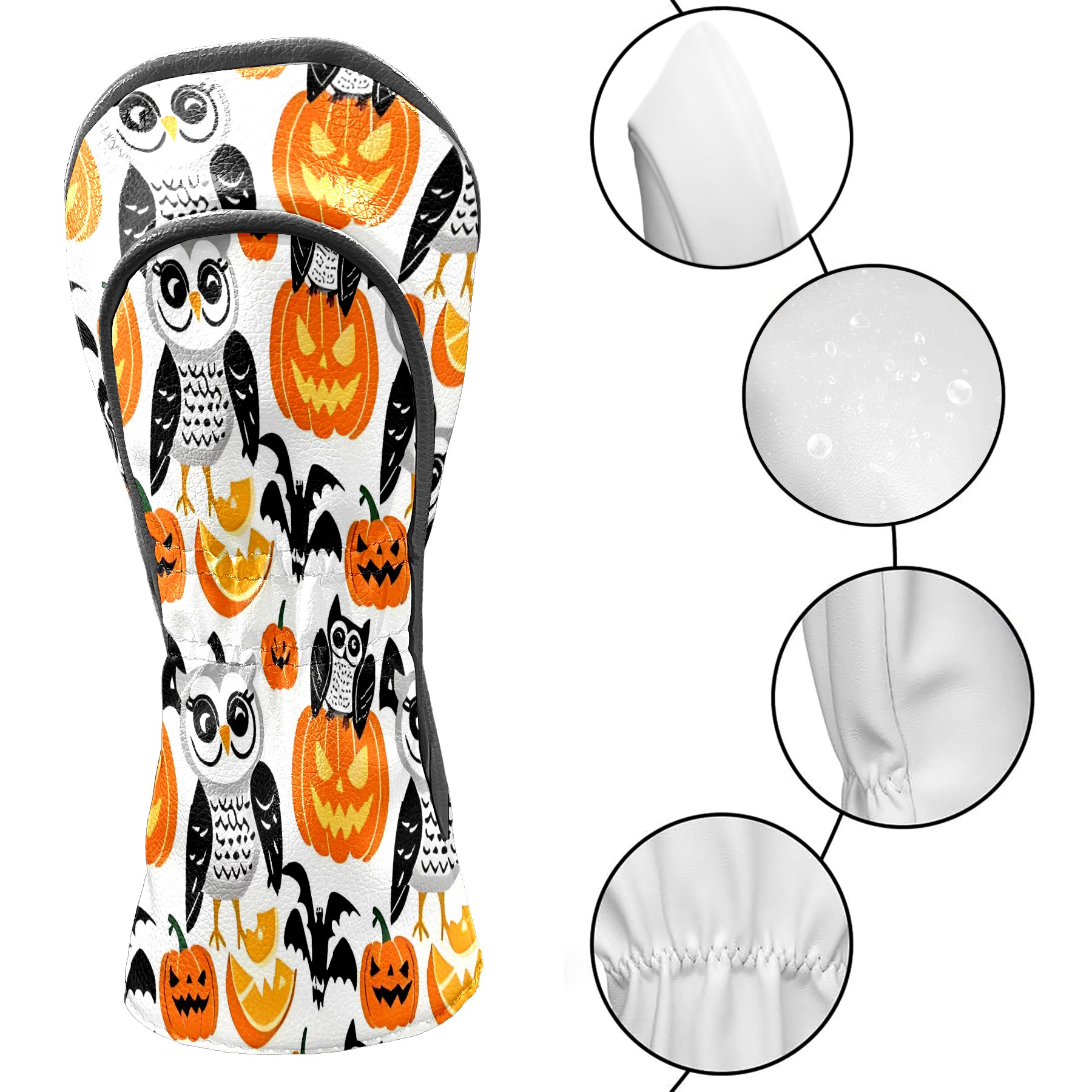 Golf Club Covers, Orange OwlPumpkin Premium PU Leather Driver Hybrid Putter Head Covers with Velvet Lining, Waterproof Golf Gifts for Men Women