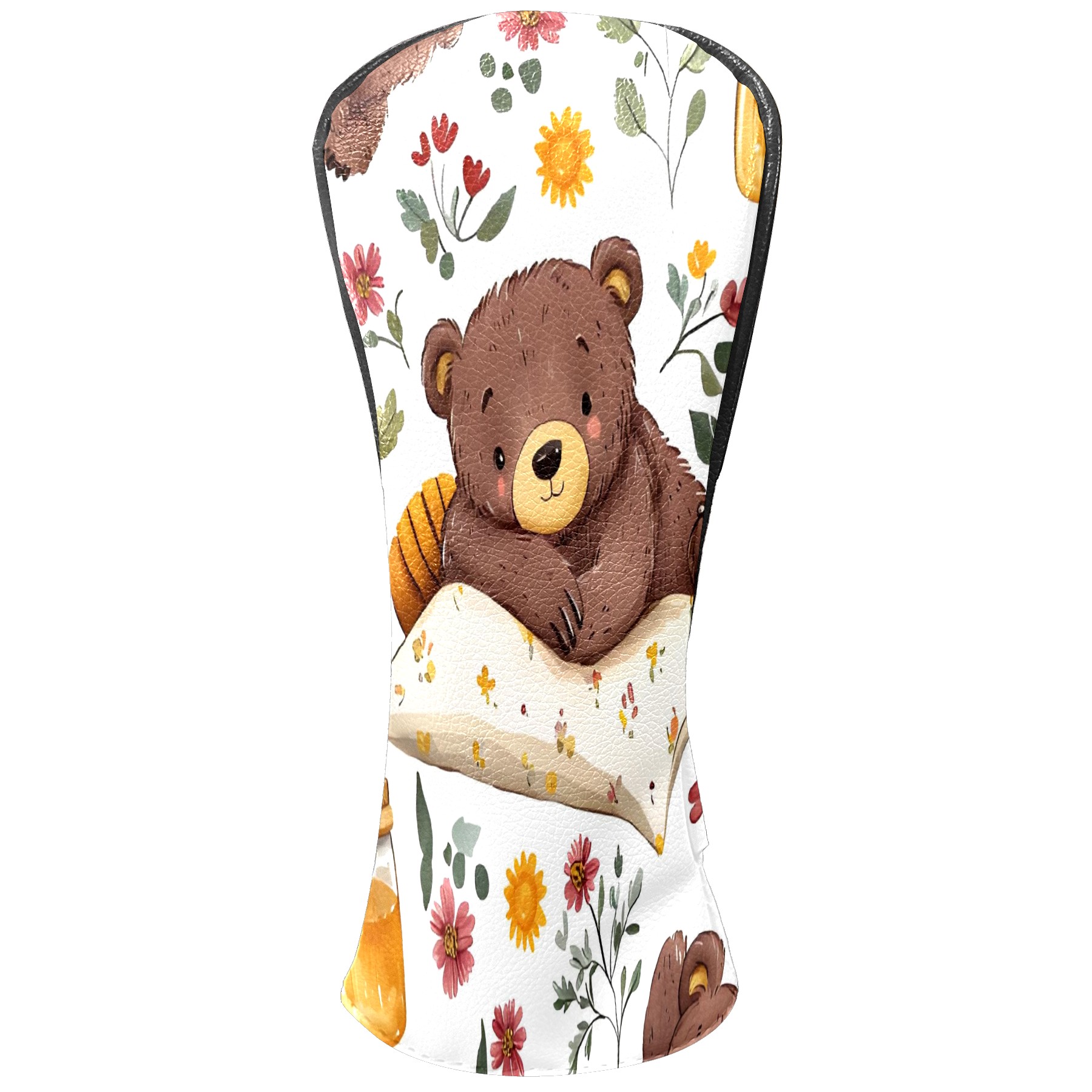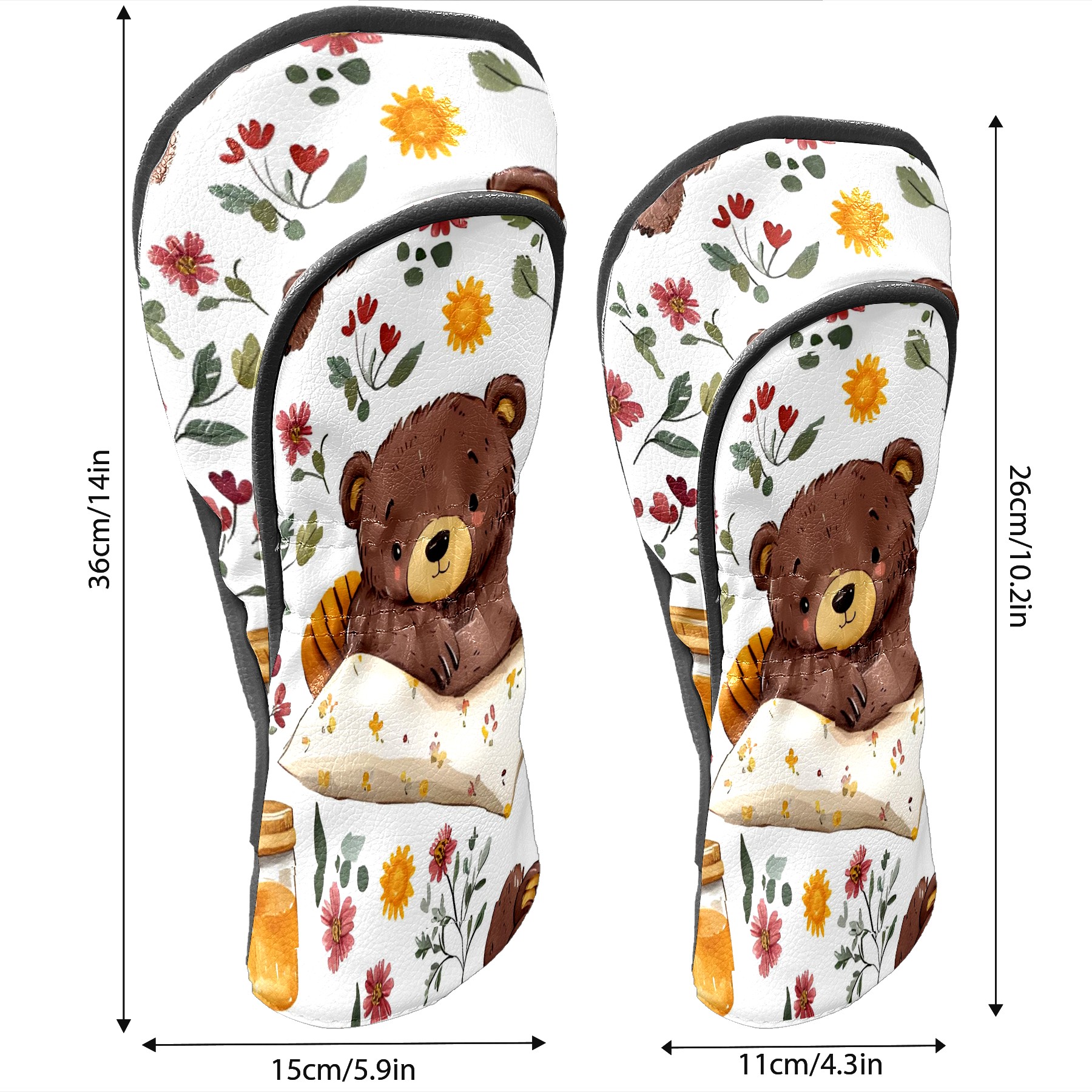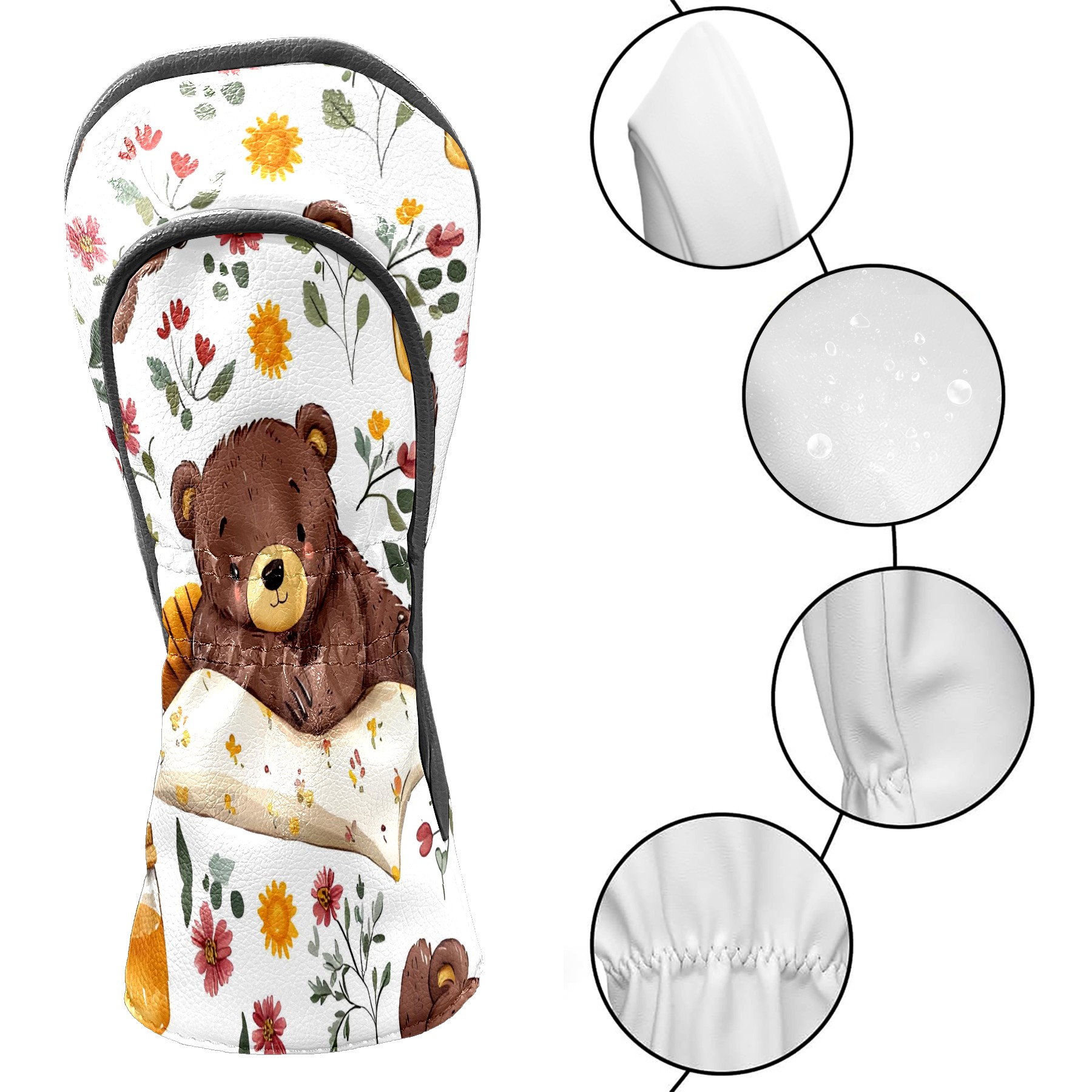 Golf Club Covers, Brown BearHoney Premium PU Leather Driver Hybrid Putter Head Covers with Velvet Lining, Waterproof Golf Gifts for Men Women