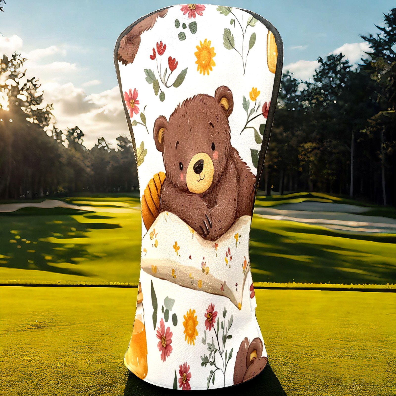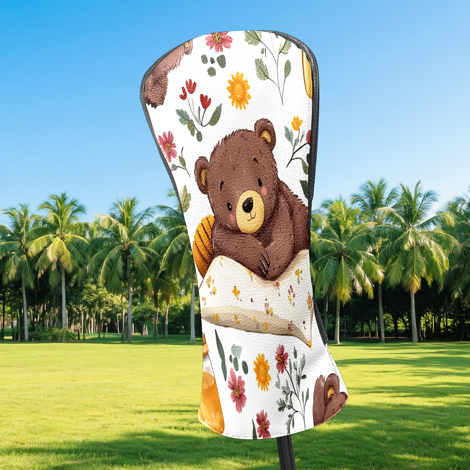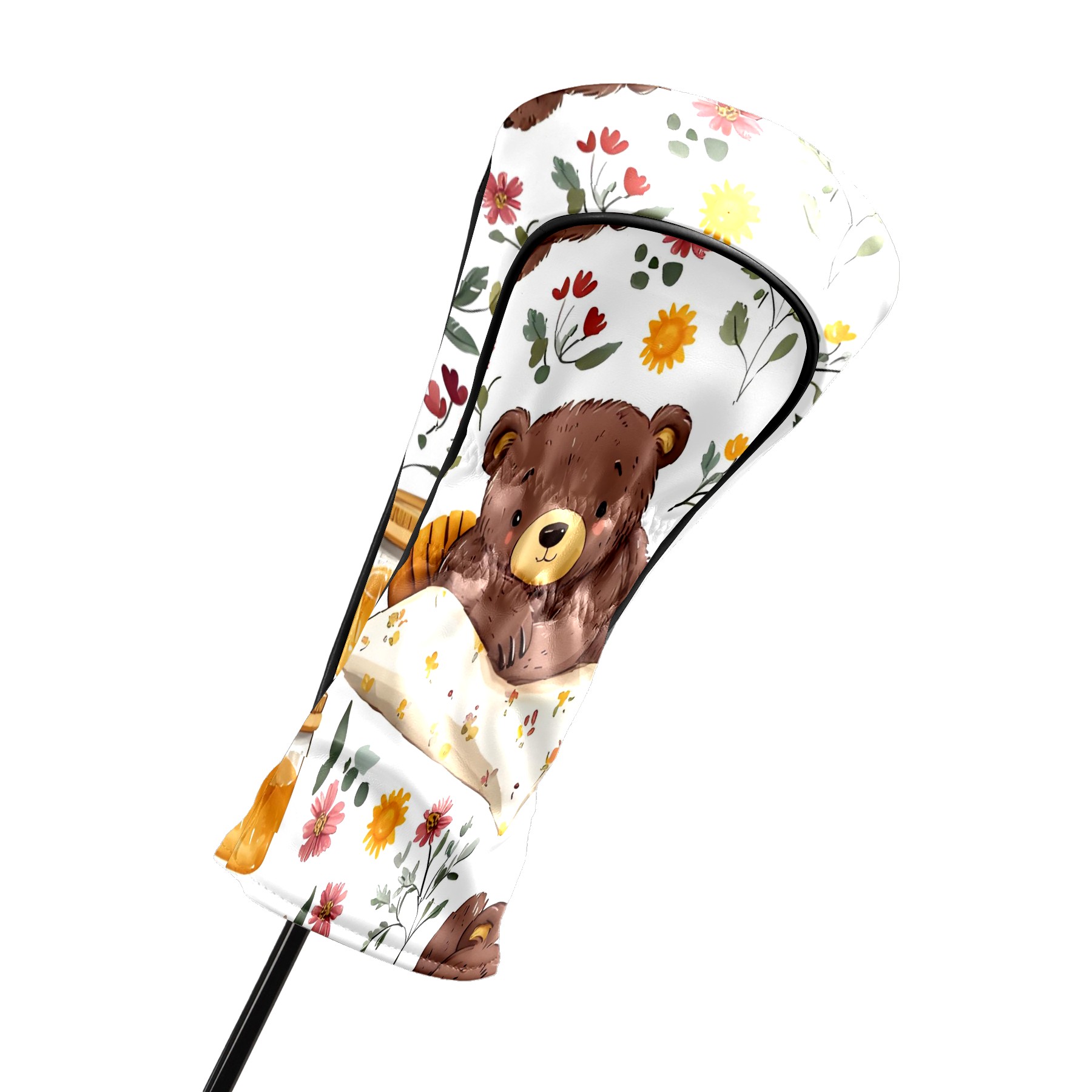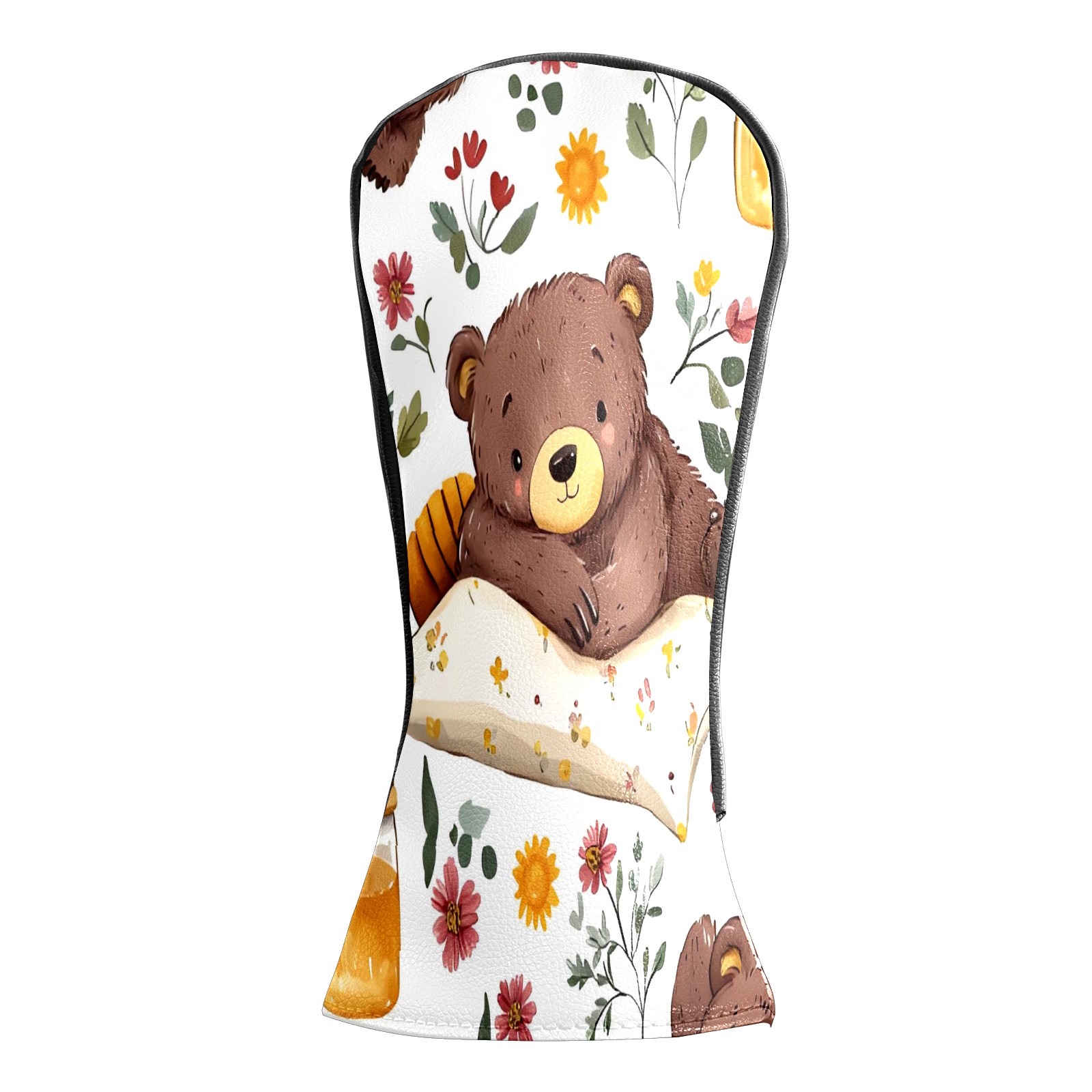 Golf Club Covers, Brown BearHoney Premium PU Leather Driver Hybrid Putter Head Covers with Velvet Lining, Waterproof Golf Gifts for Men Women