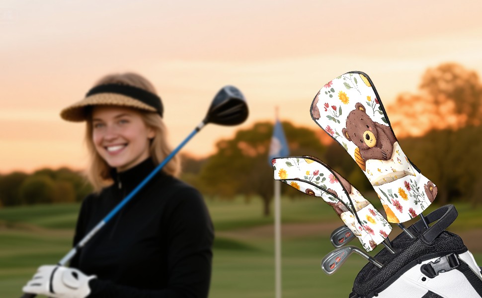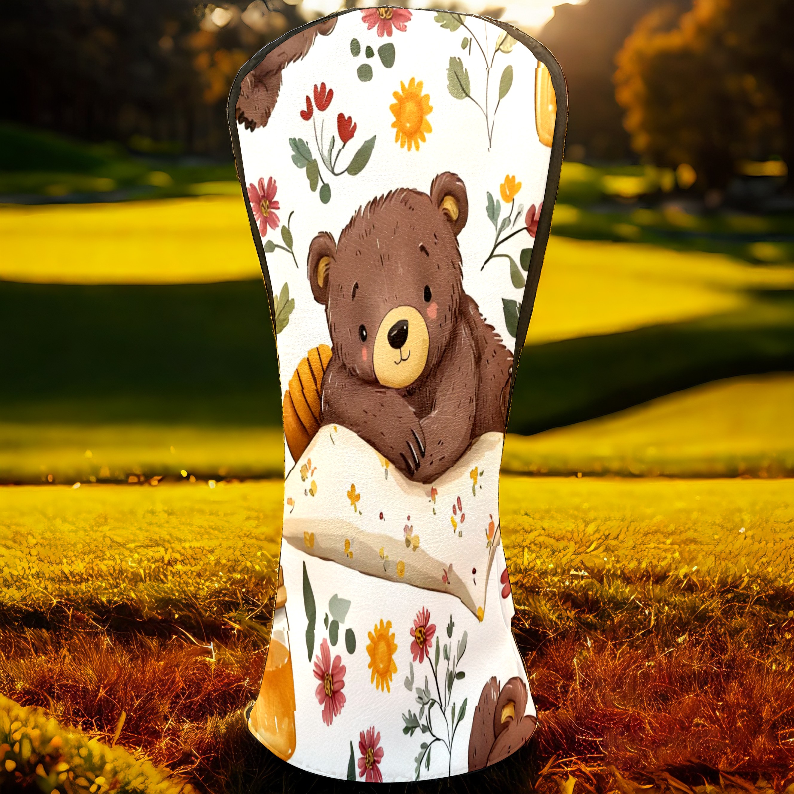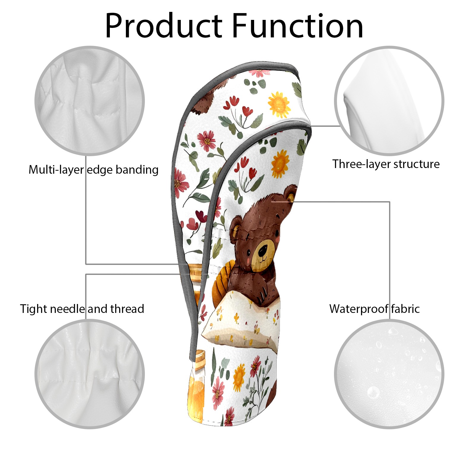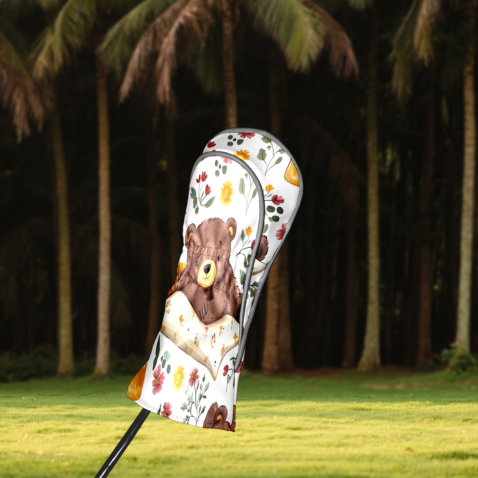 Golf Club Covers, Brown BearHoney Premium PU Leather Driver Hybrid Putter Head Covers with Velvet Lining, Waterproof Golf Gifts for Men Women