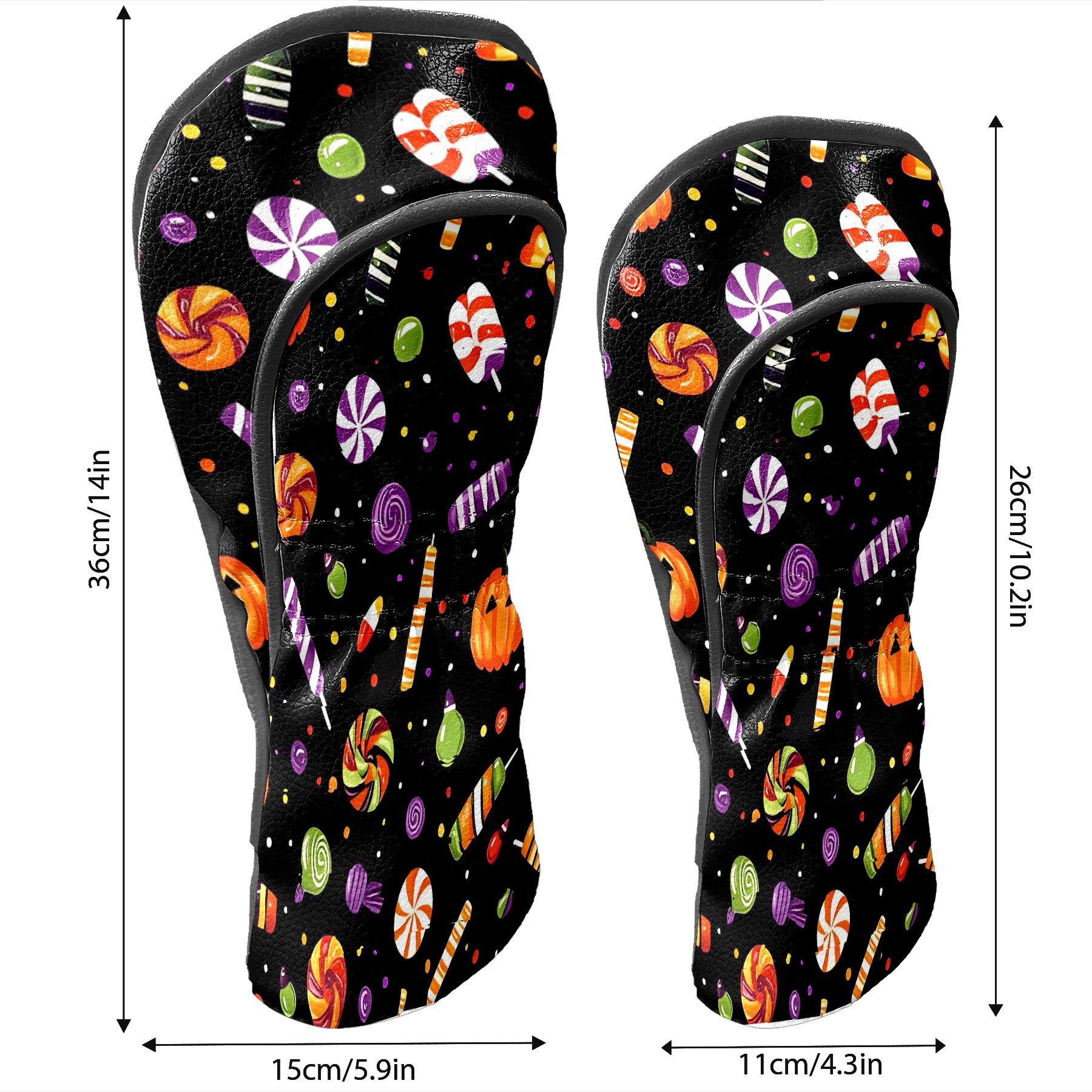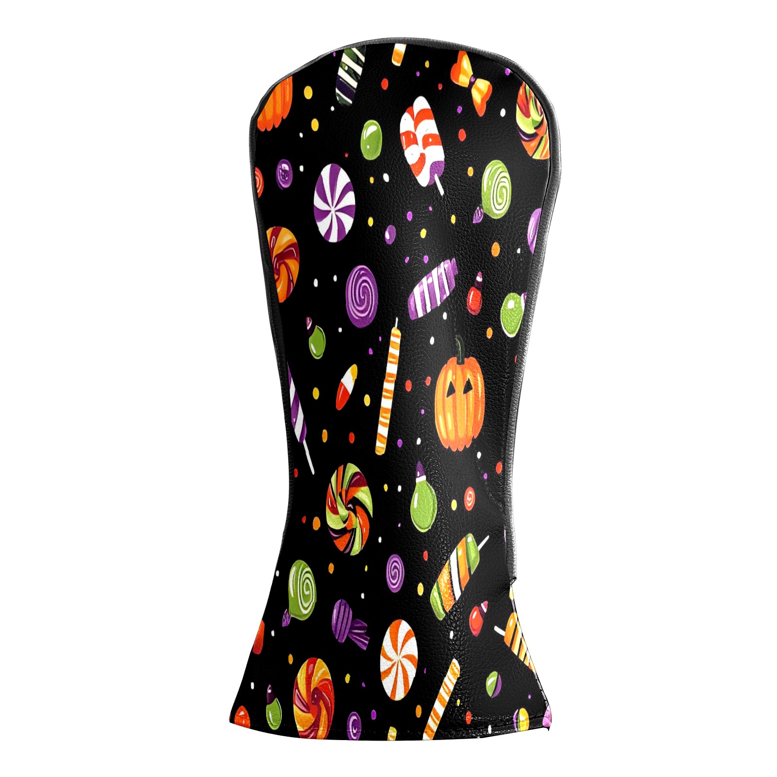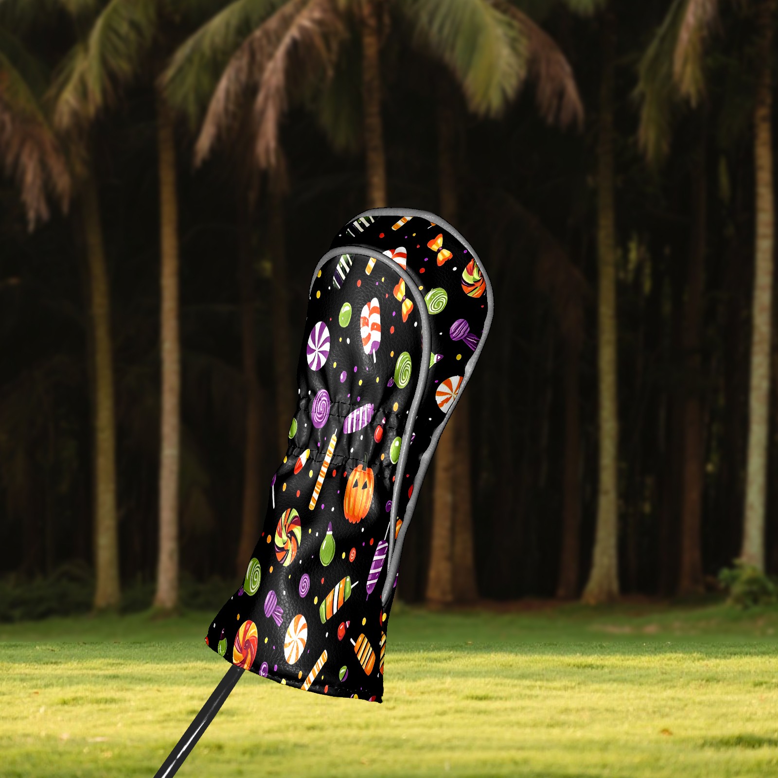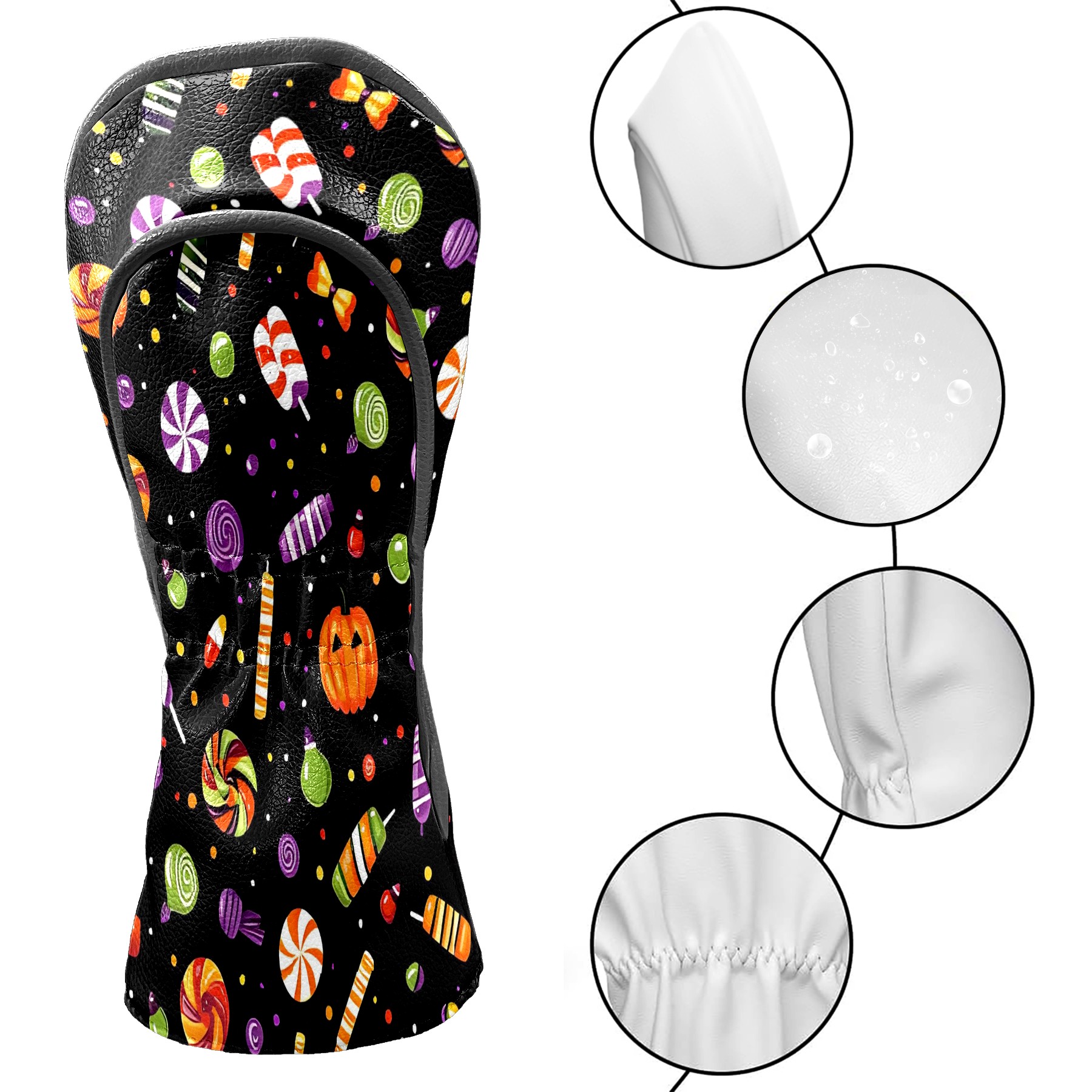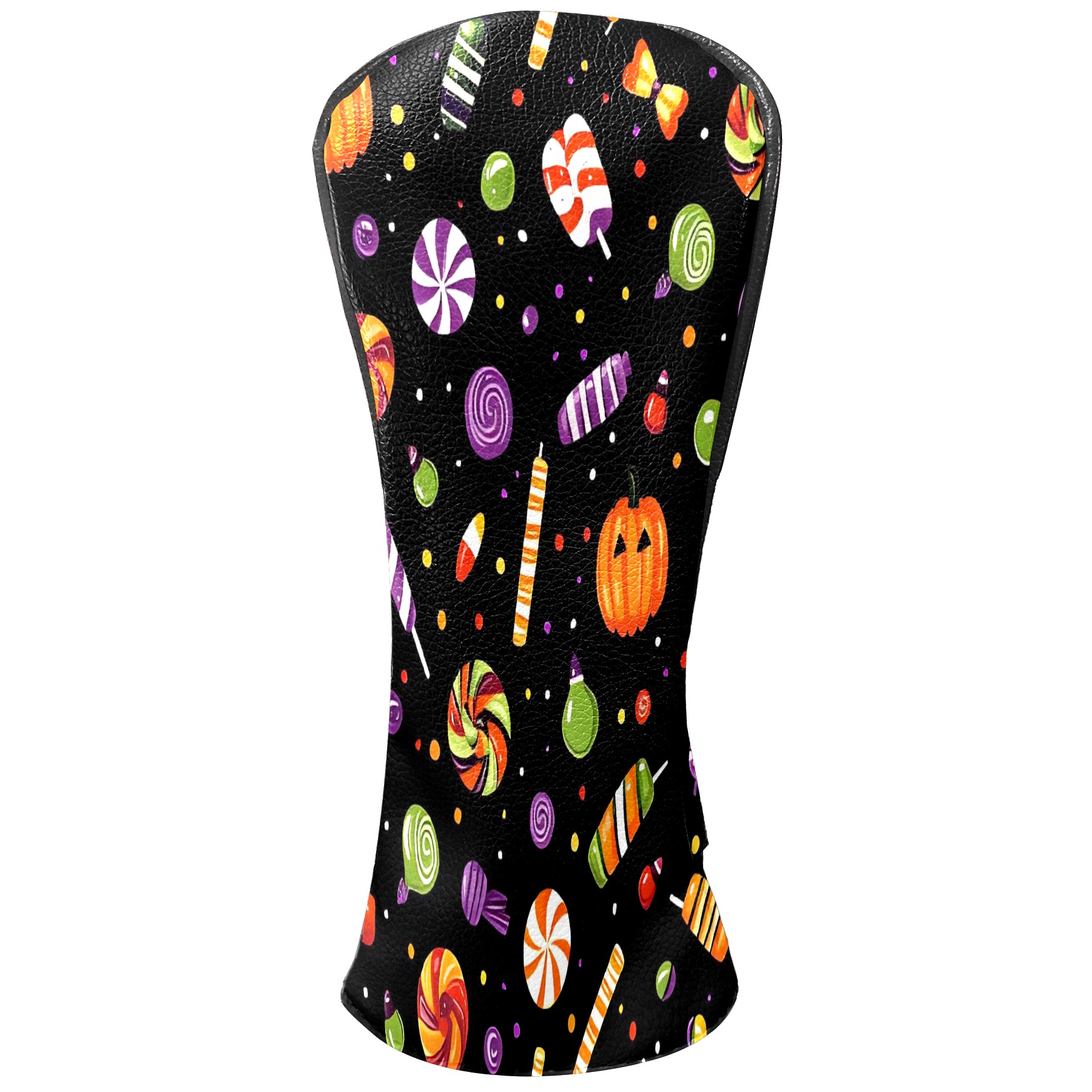 Golf Club Covers, DarkPurple HalloweenCandy Premium PU Leather Driver Hybrid Putter Head Covers with Velvet Lining, Waterproof Golf Gifts for Men Women