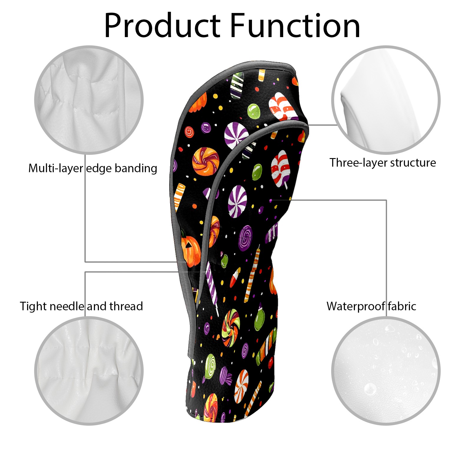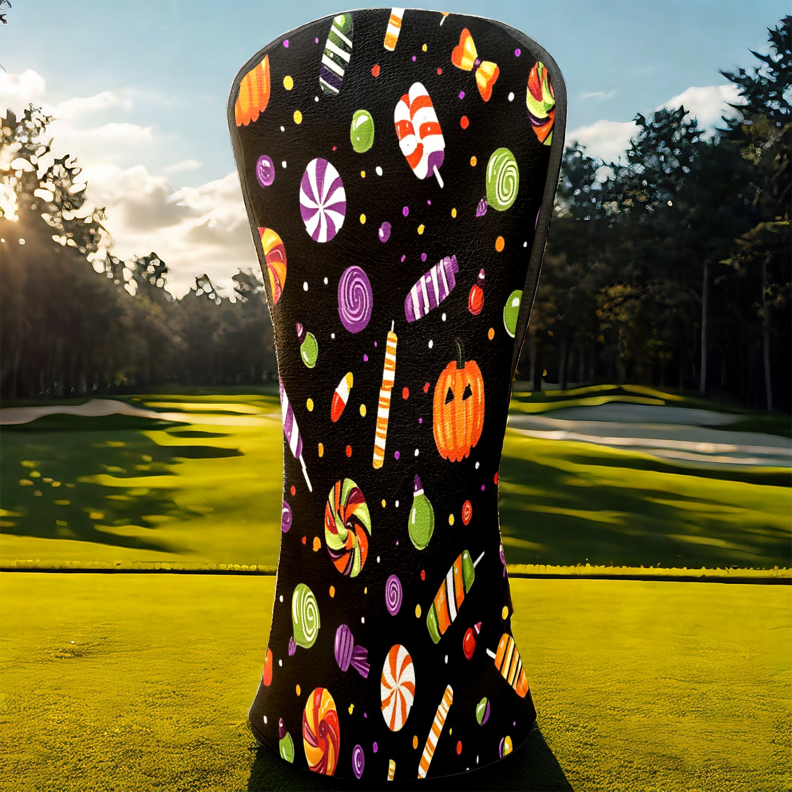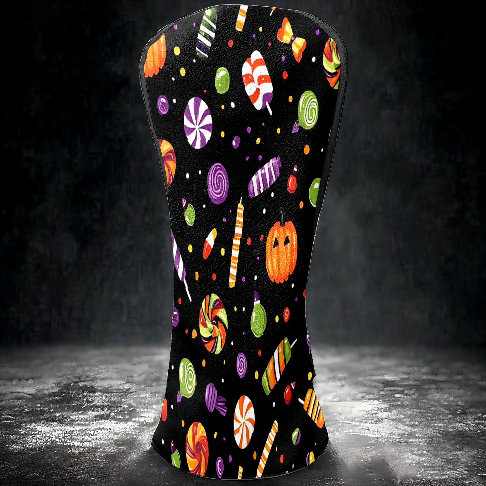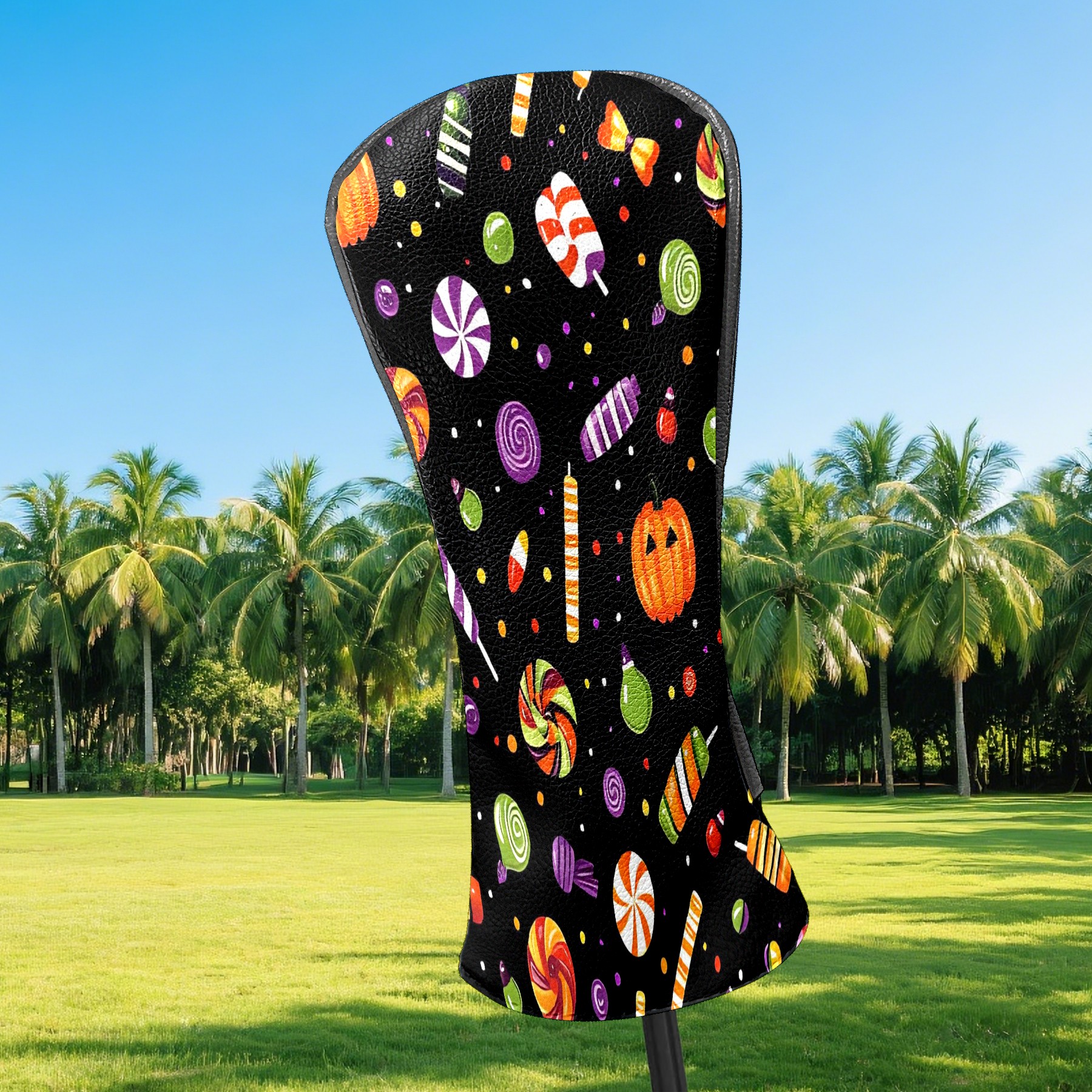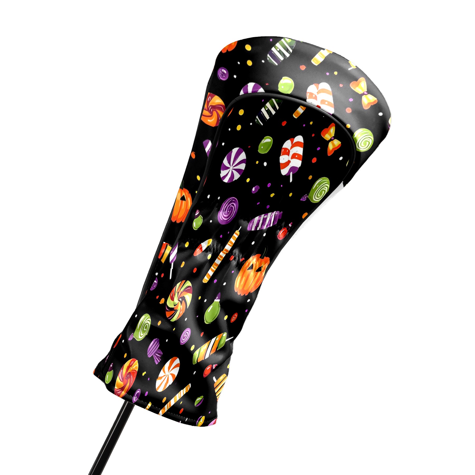 Golf Club Covers, DarkPurple HalloweenCandy Premium PU Leather Driver Hybrid Putter Head Covers with Velvet Lining, Waterproof Golf Gifts for Men Women