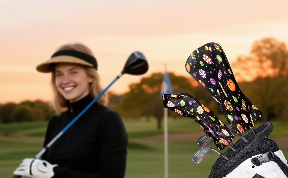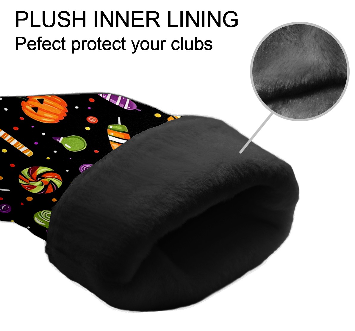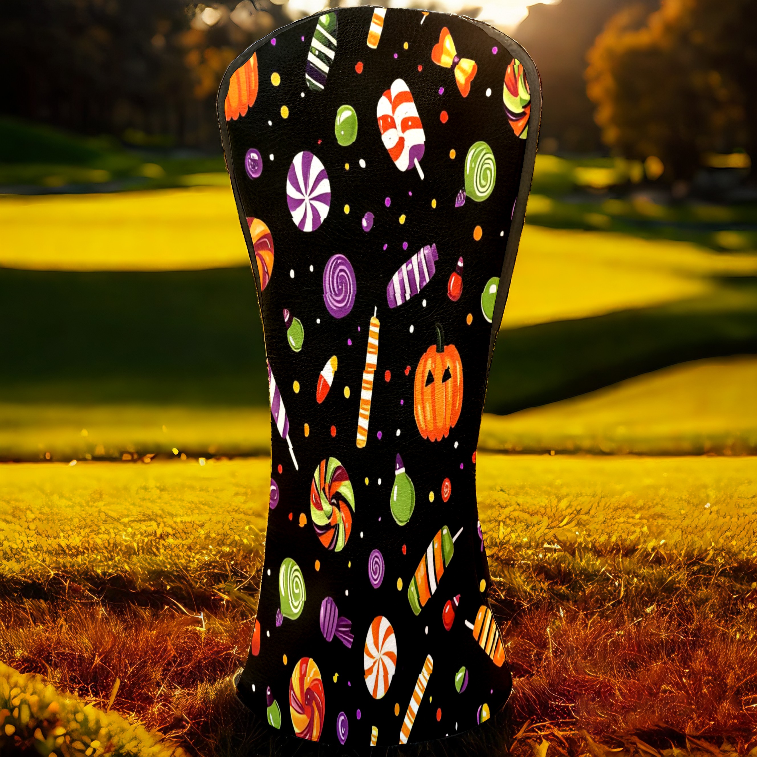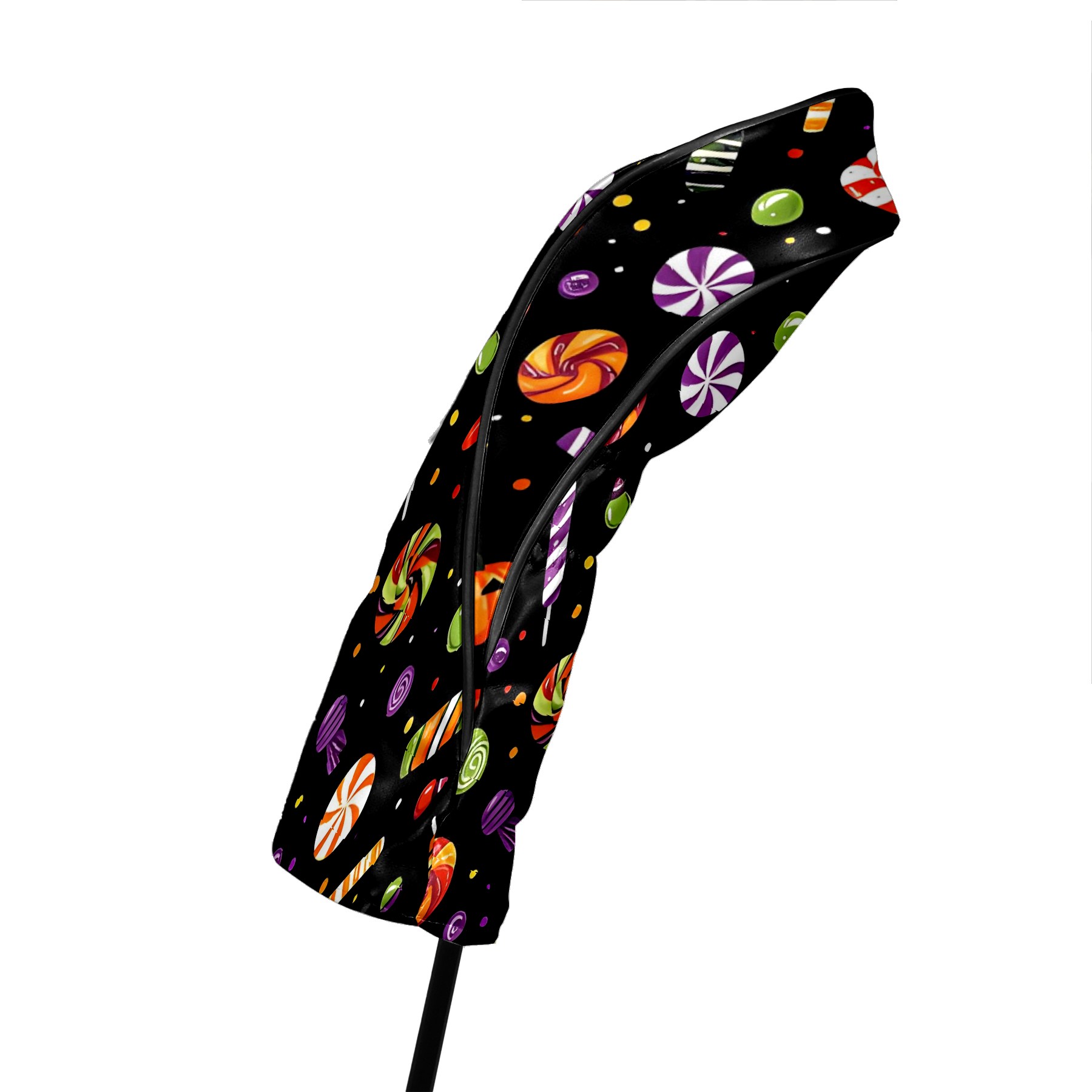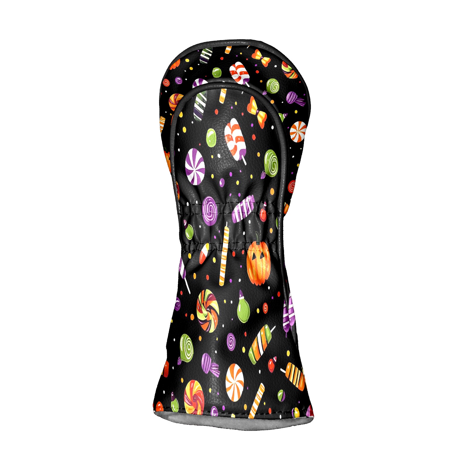 Golf Club Covers, DarkPurple HalloweenCandy Premium PU Leather Driver Hybrid Putter Head Covers with Velvet Lining, Waterproof Golf Gifts for Men Women