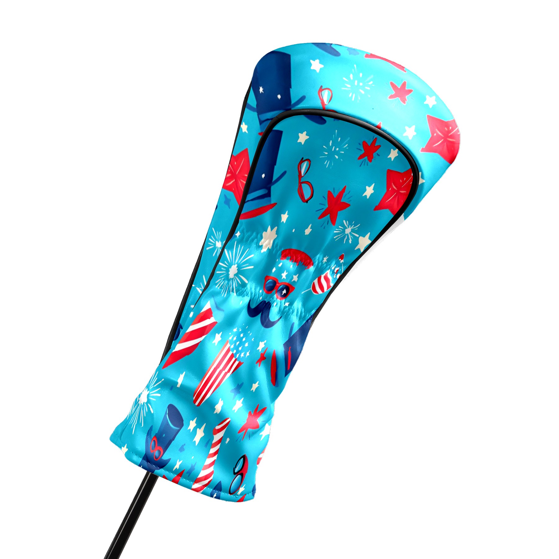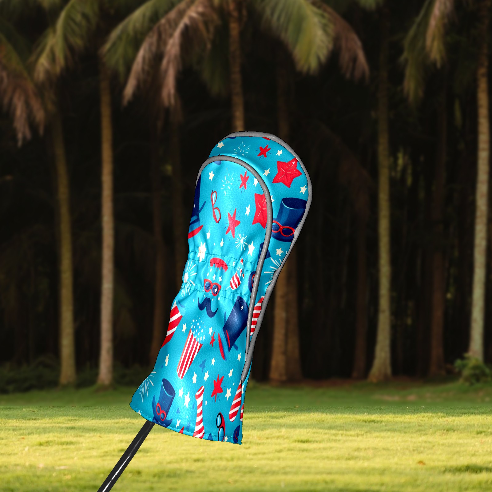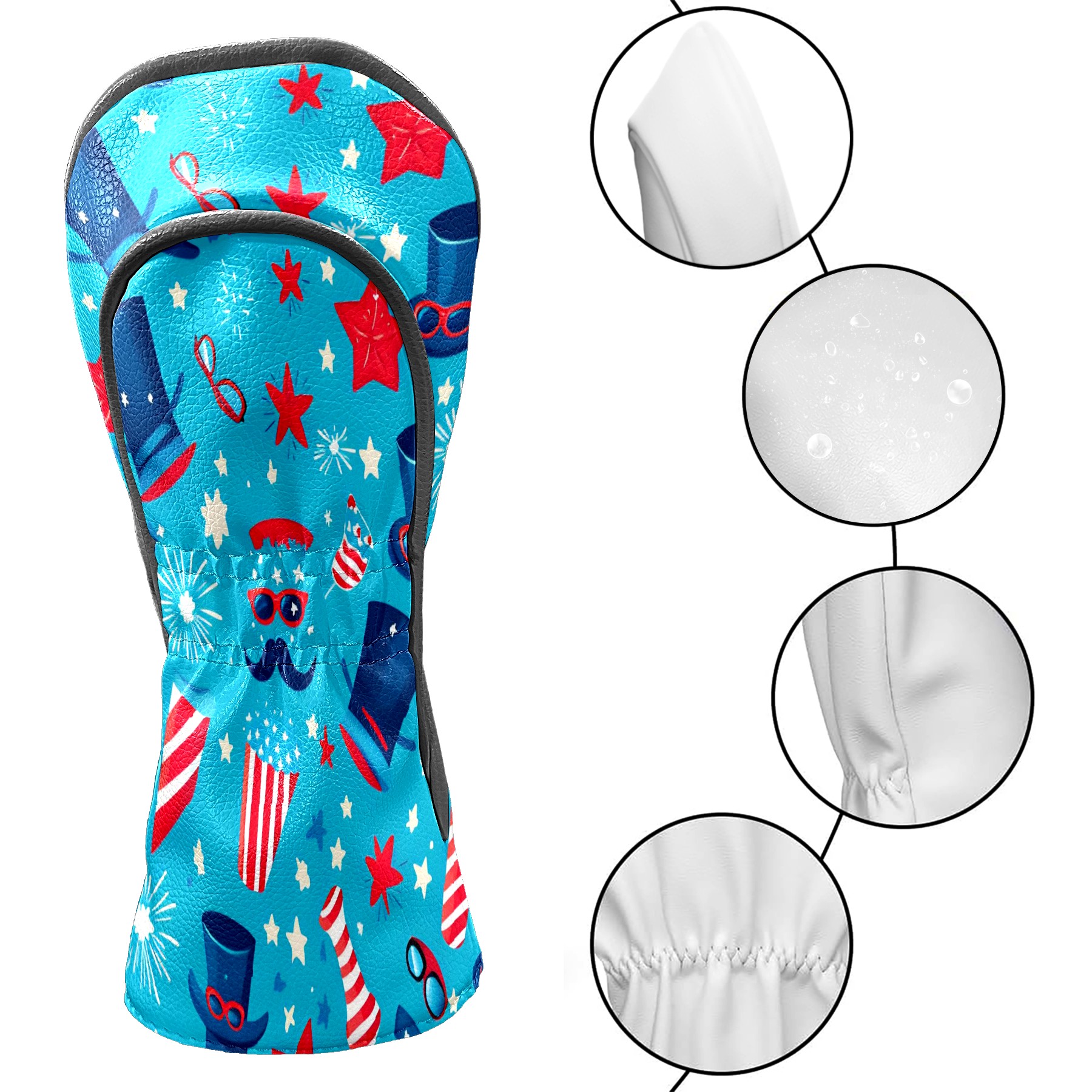 Golf Club Covers, Blue FireworkHat Premium PU Leather Driver Hybrid Putter Head Covers with Velvet Lining, Waterproof Golf Gifts for Men Women