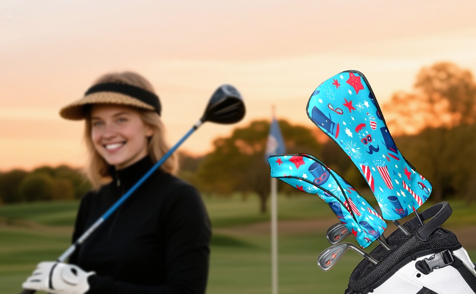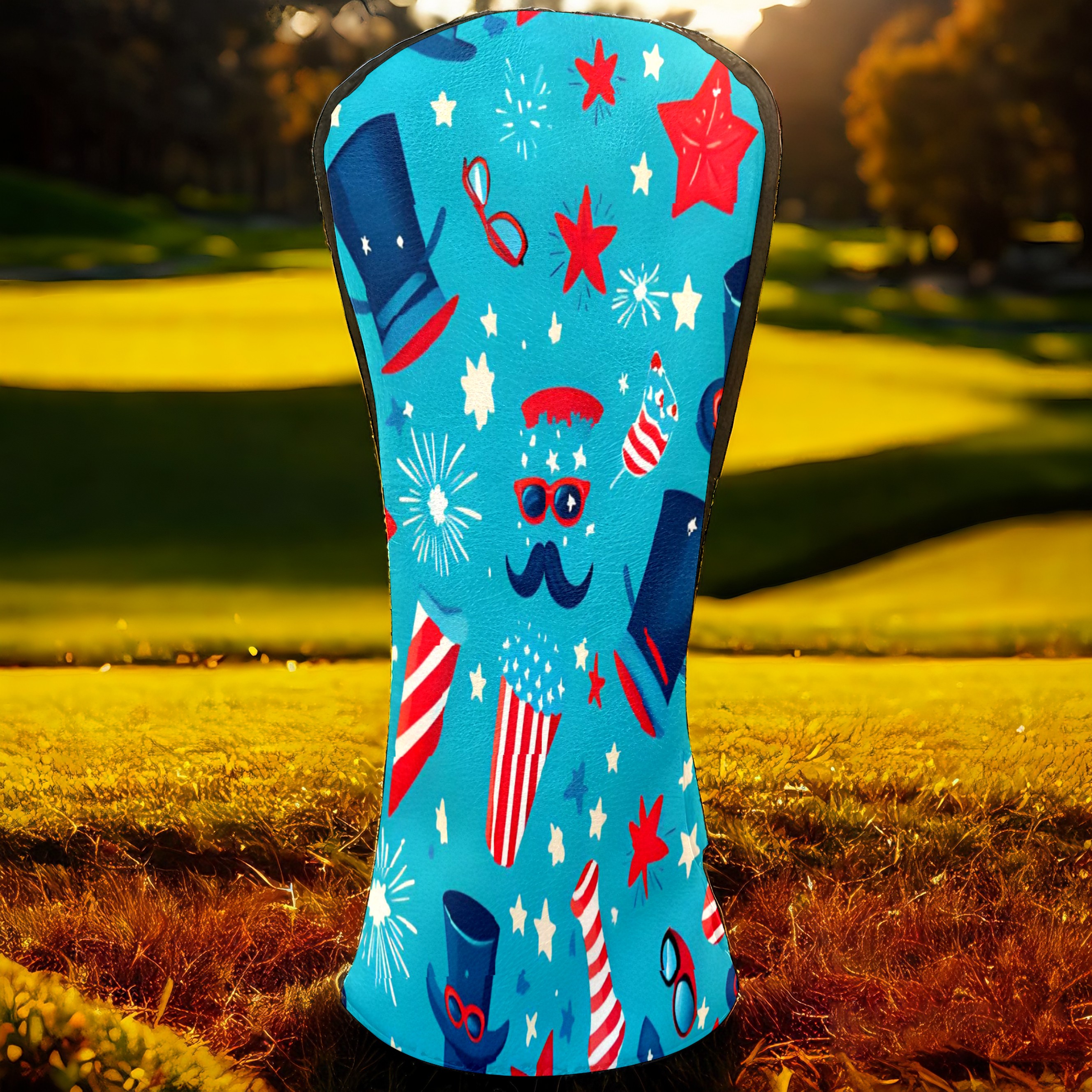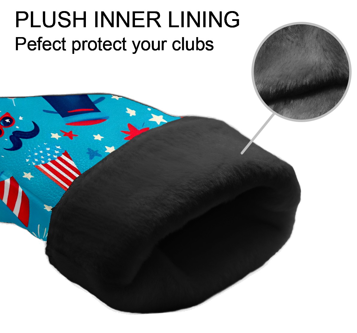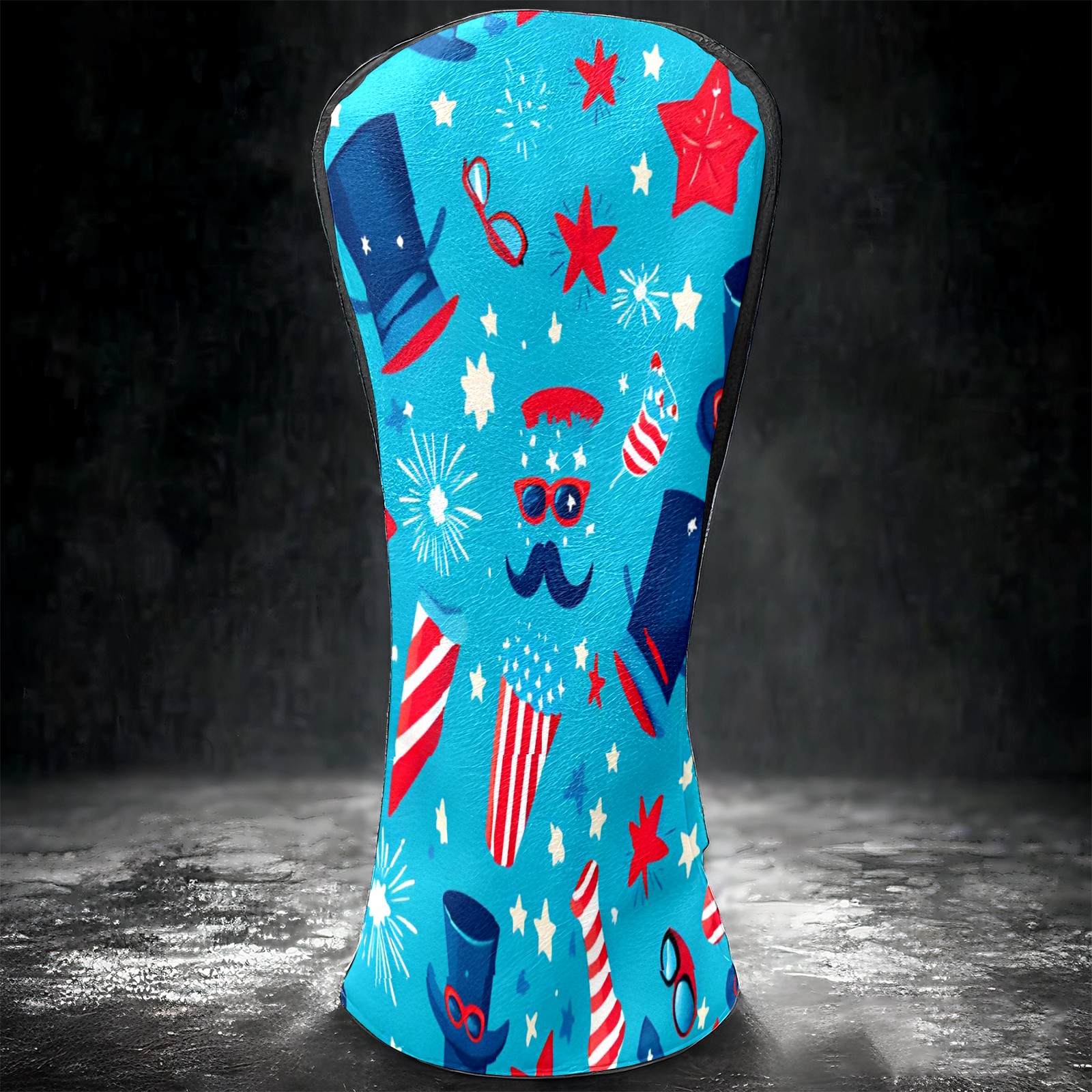 Golf Club Covers, Blue FireworkHat Premium PU Leather Driver Hybrid Putter Head Covers with Velvet Lining, Waterproof Golf Gifts for Men Women