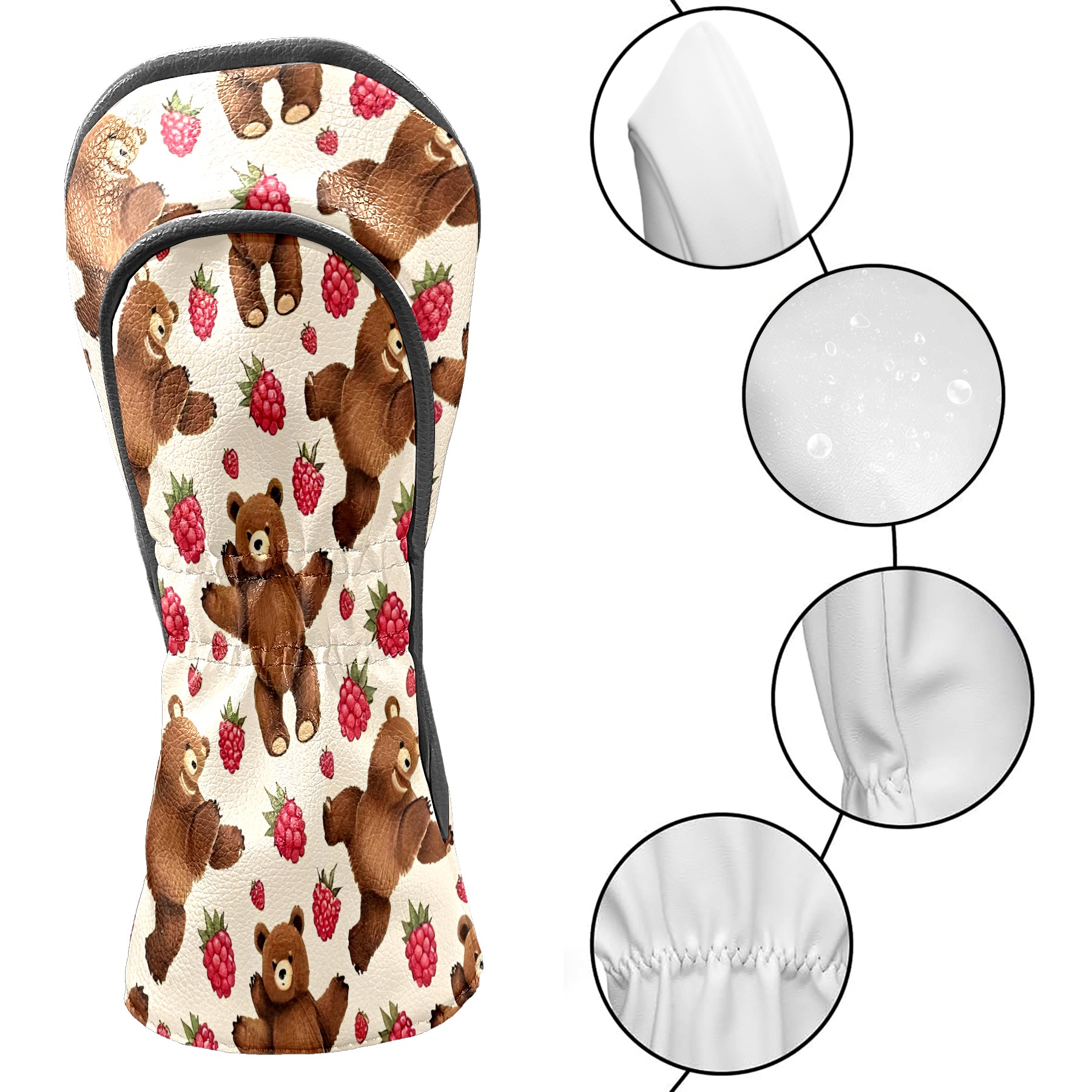 Golf Club Covers, Brown BearBerry Premium PU Leather Driver Hybrid Putter Head Covers with Velvet Lining, Waterproof Golf Gifts for Men Women