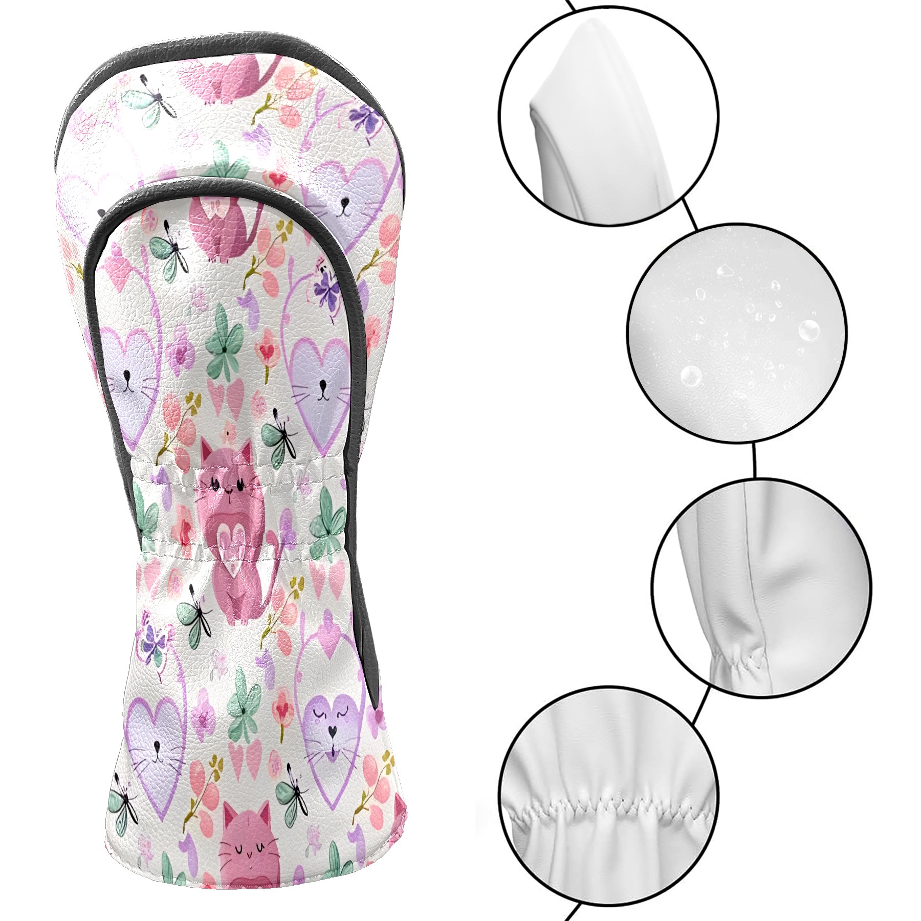 Golf Club Covers, Purple Cat Premium PU Leather Driver Hybrid Putter Head Covers with Velvet Lining, Waterproof Golf Gifts for Men Women
