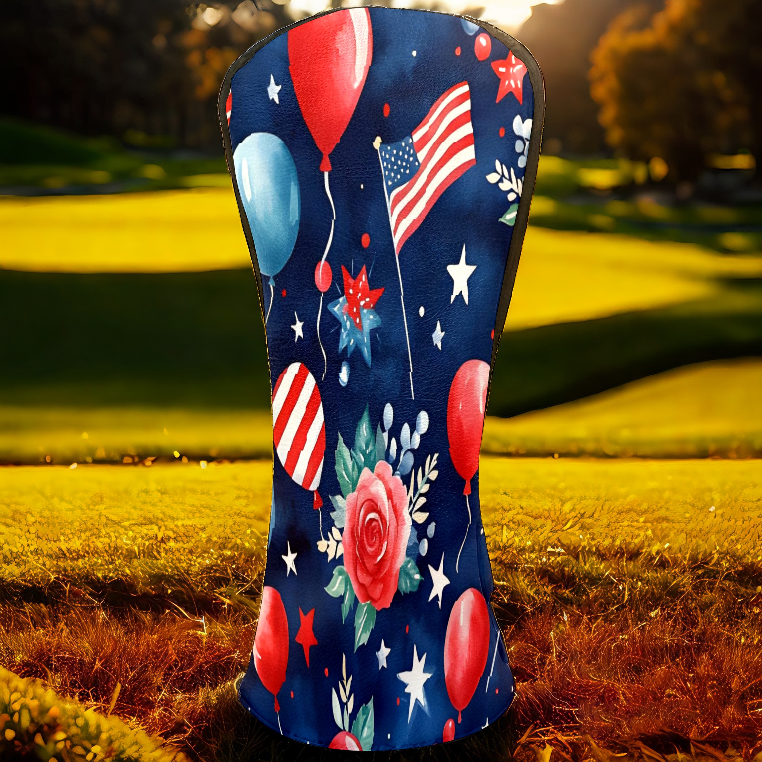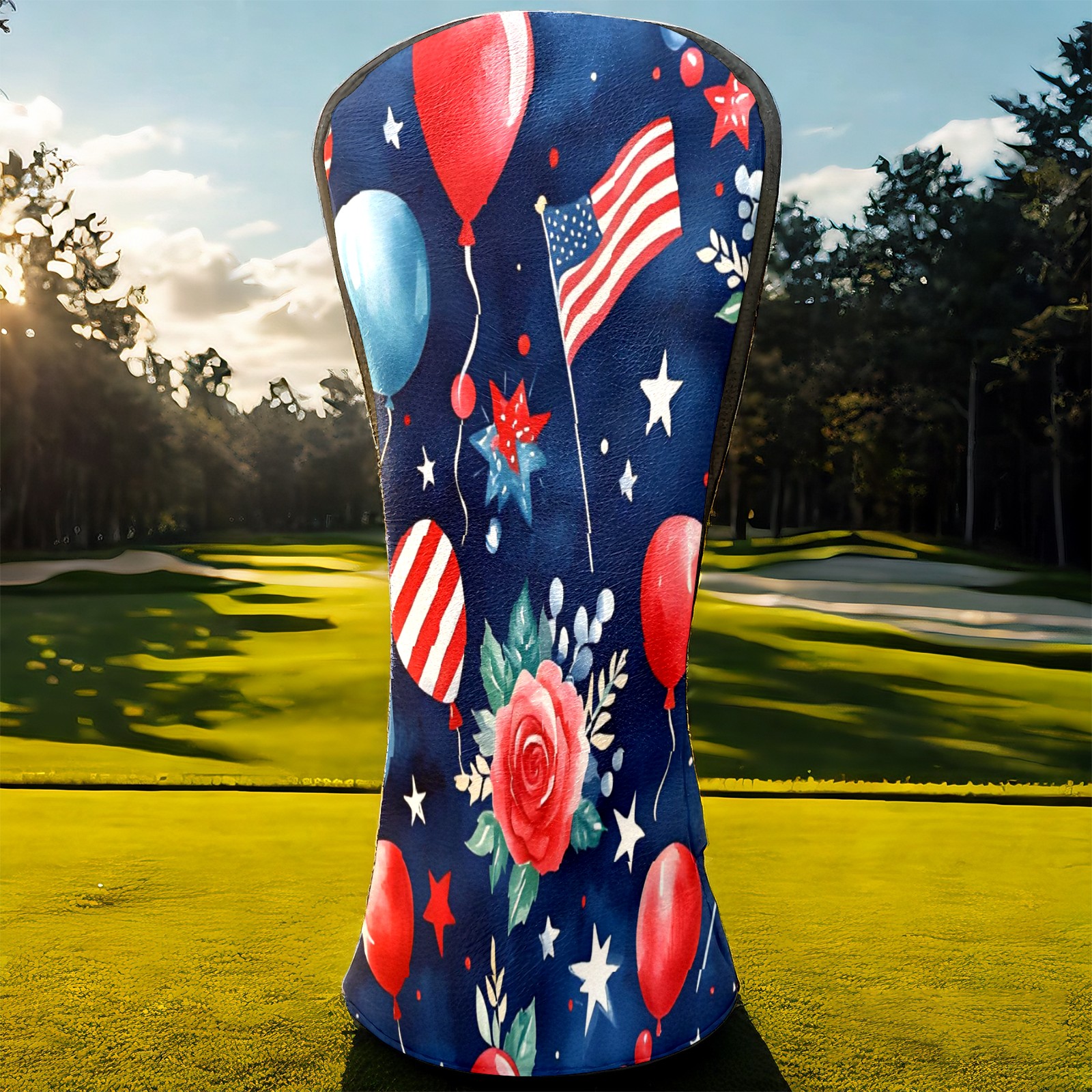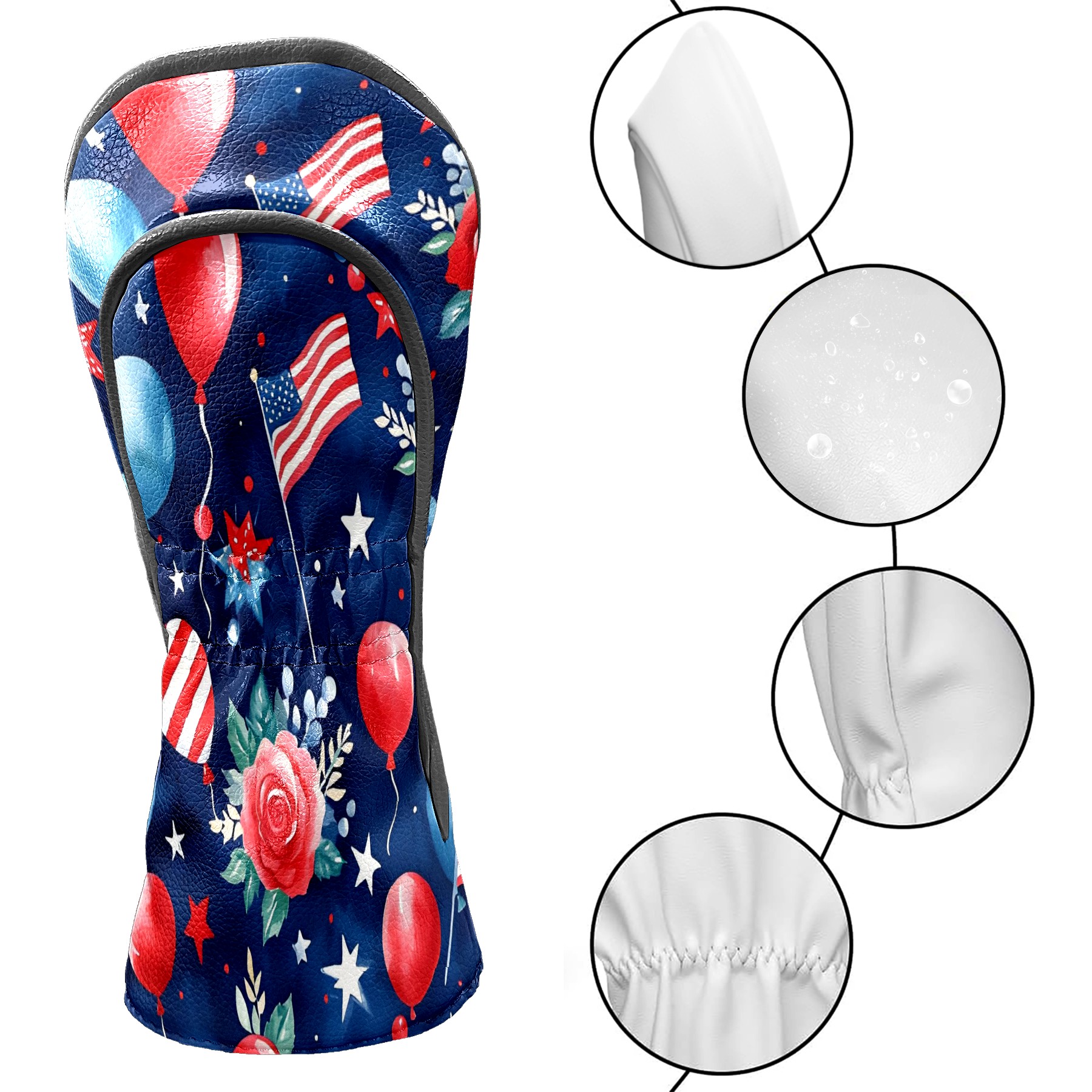 Golf Club Covers, Blue HatFirework Premium PU Leather Driver Hybrid Putter Head Covers with Velvet Lining, Waterproof Golf Gifts for Men Women