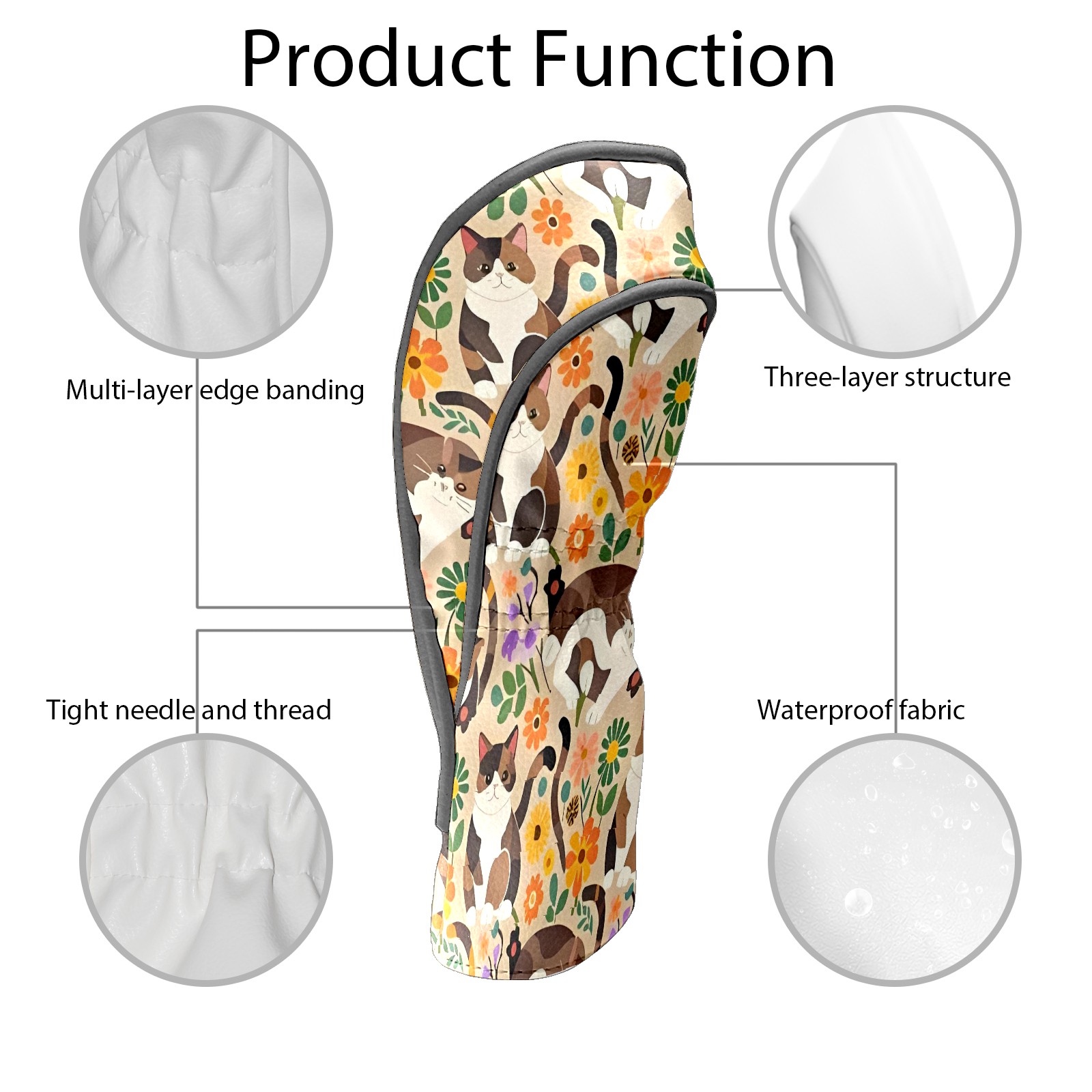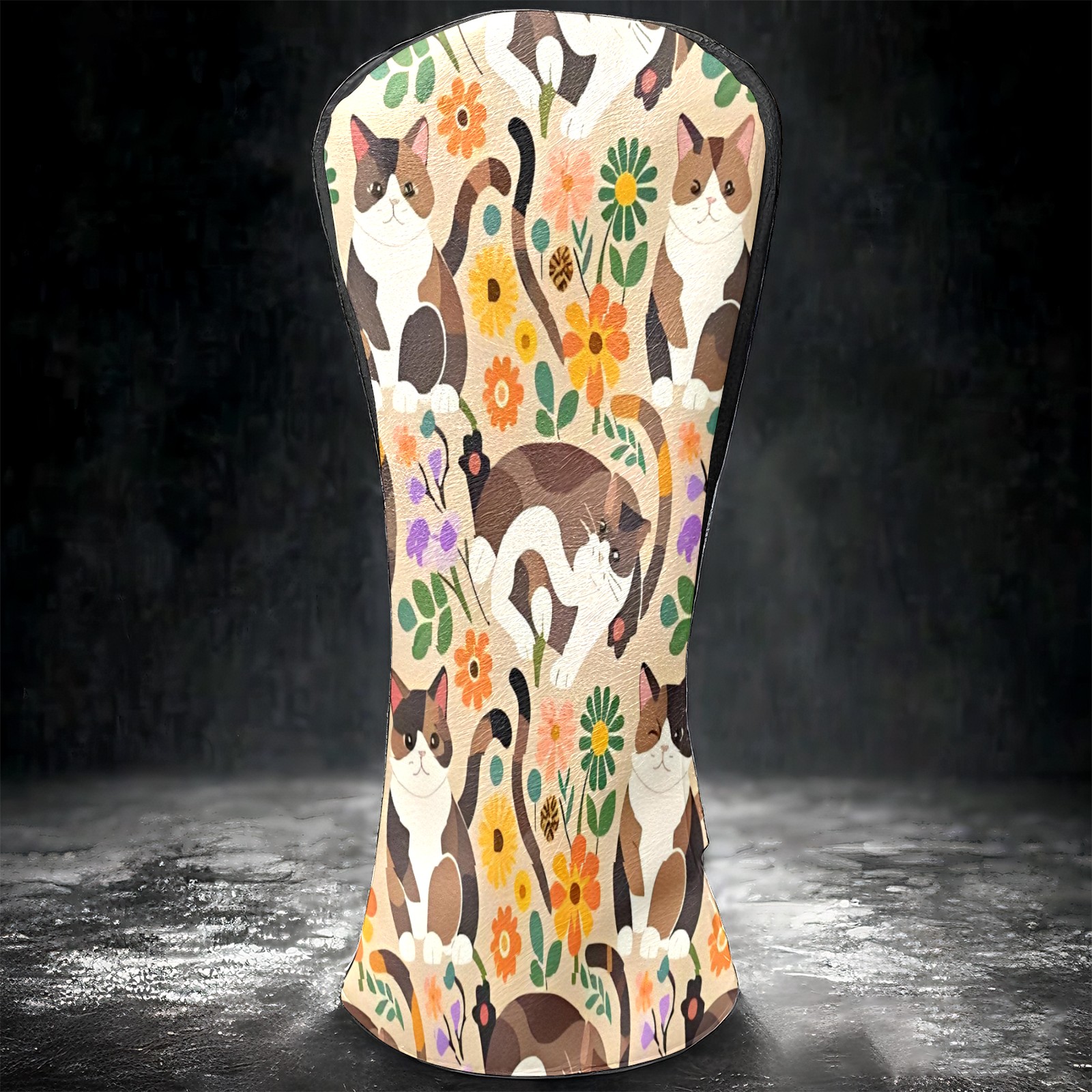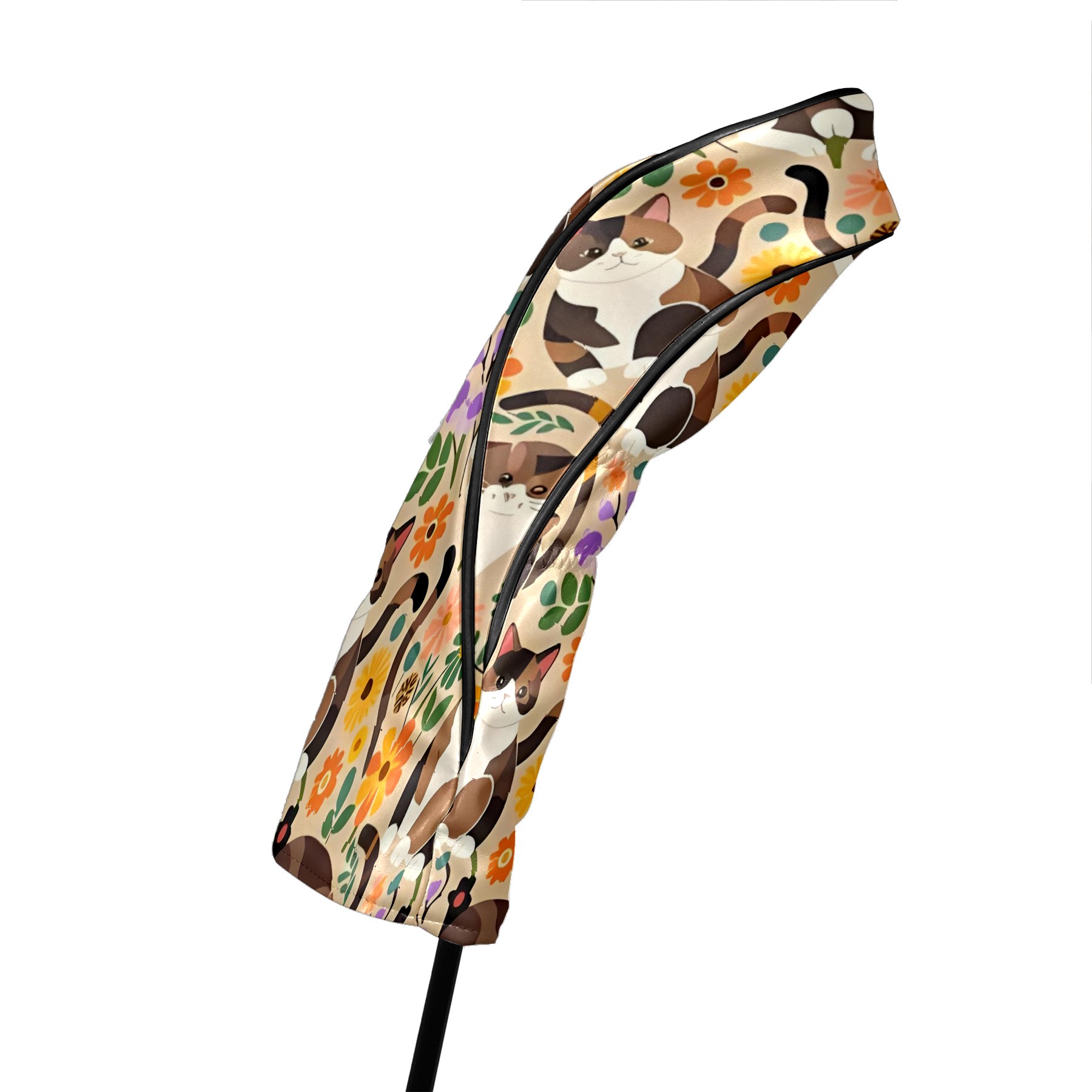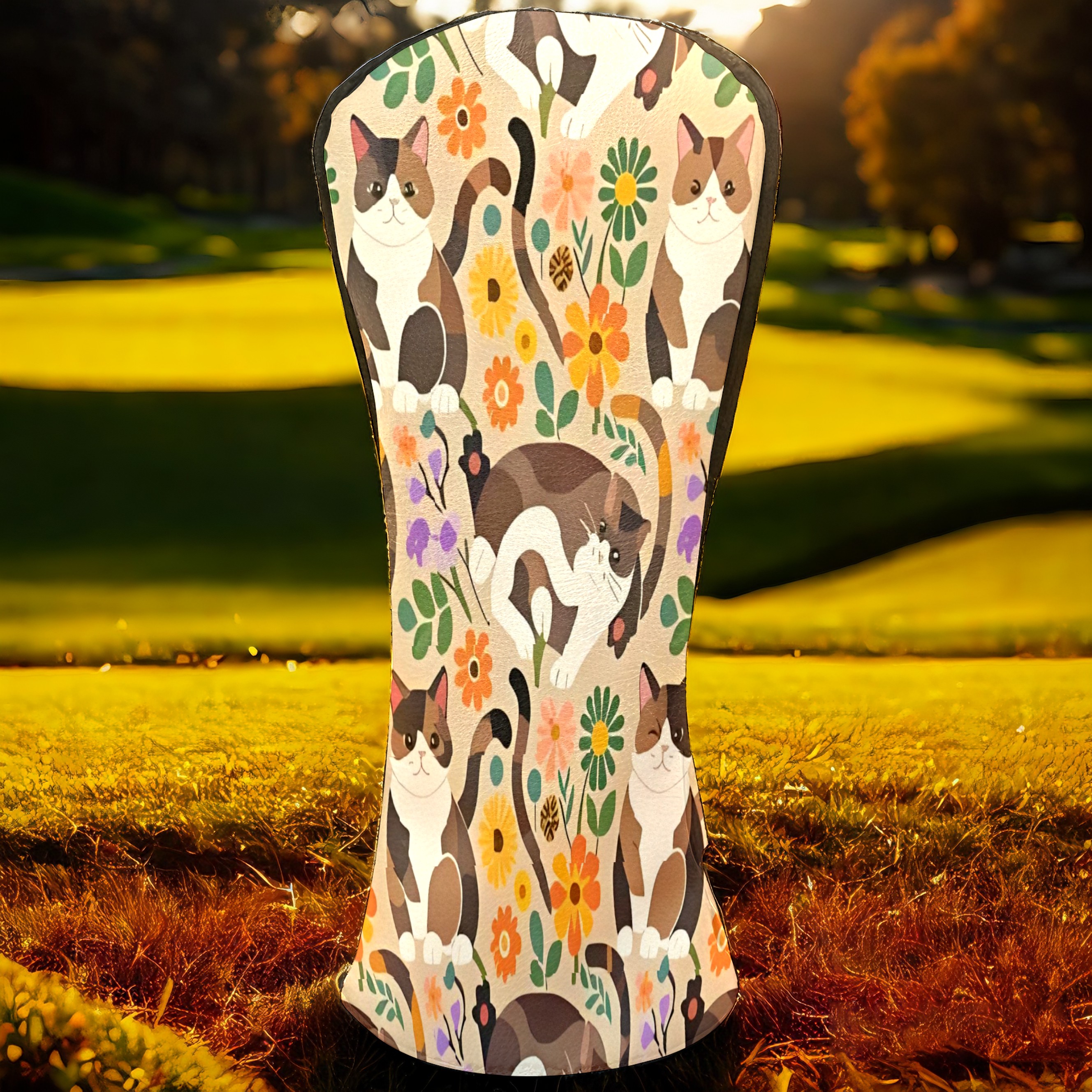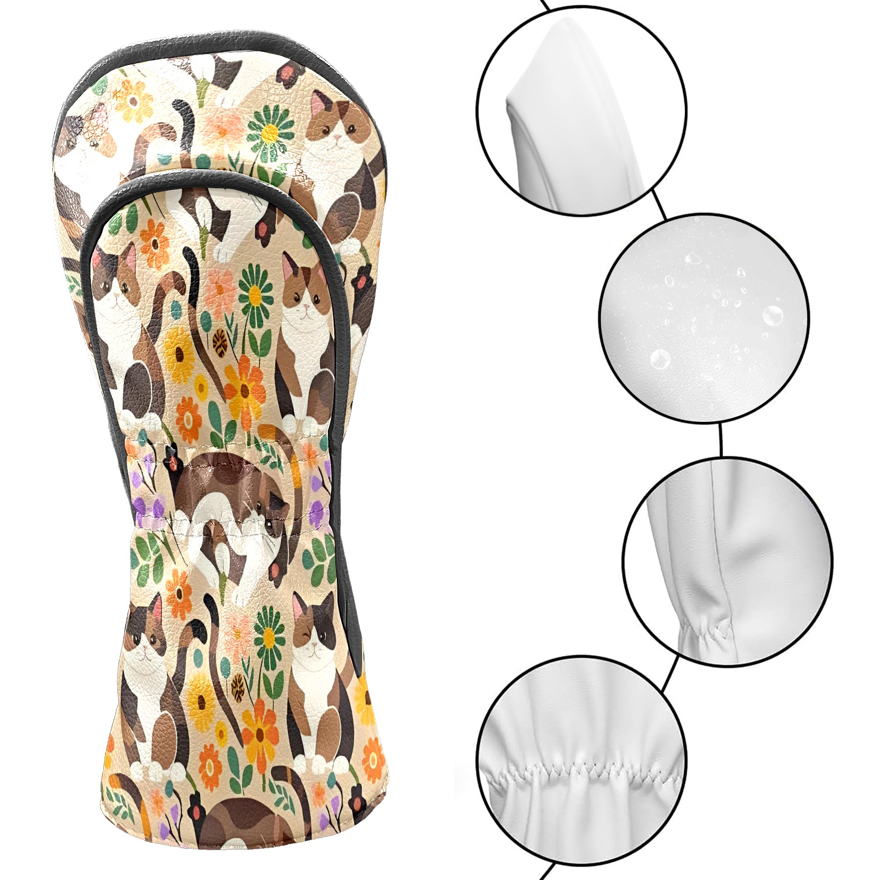 Golf Club Covers, Brown CatFlower Premium PU Leather Driver Hybrid Putter Head Covers with Velvet Lining, Waterproof Golf Gifts for Men Women