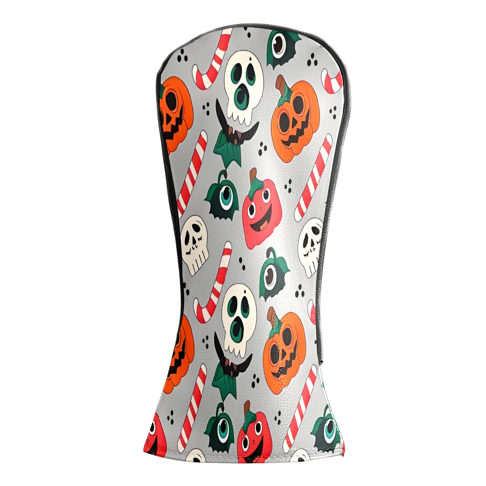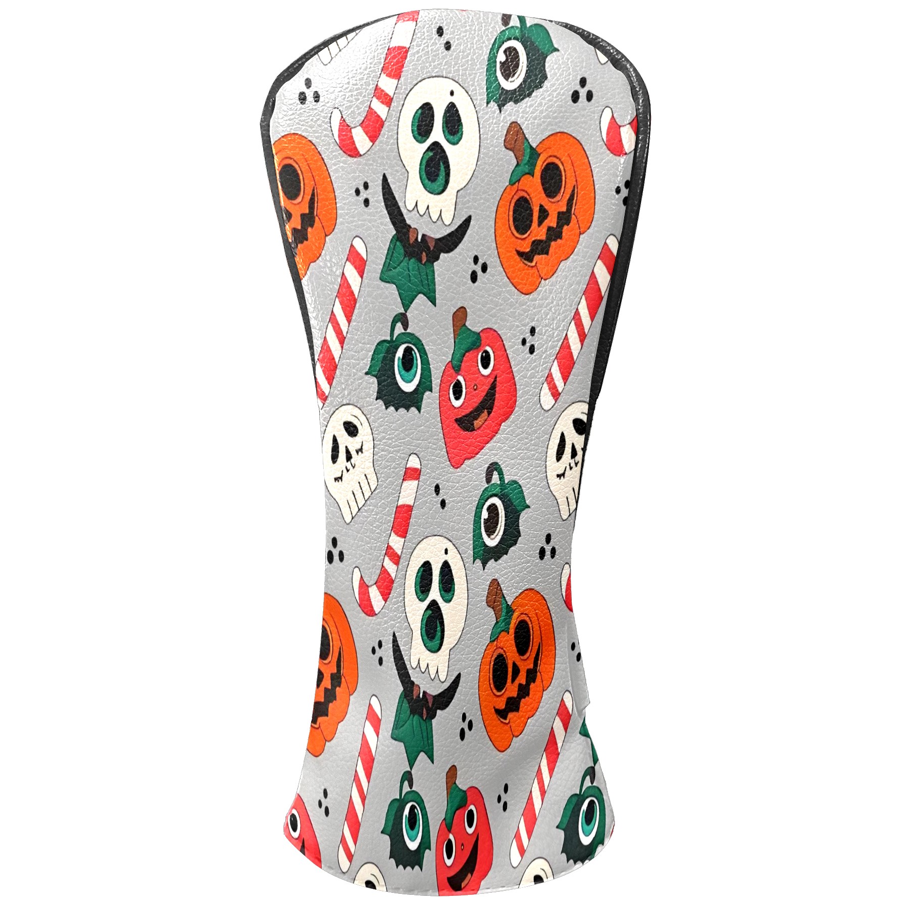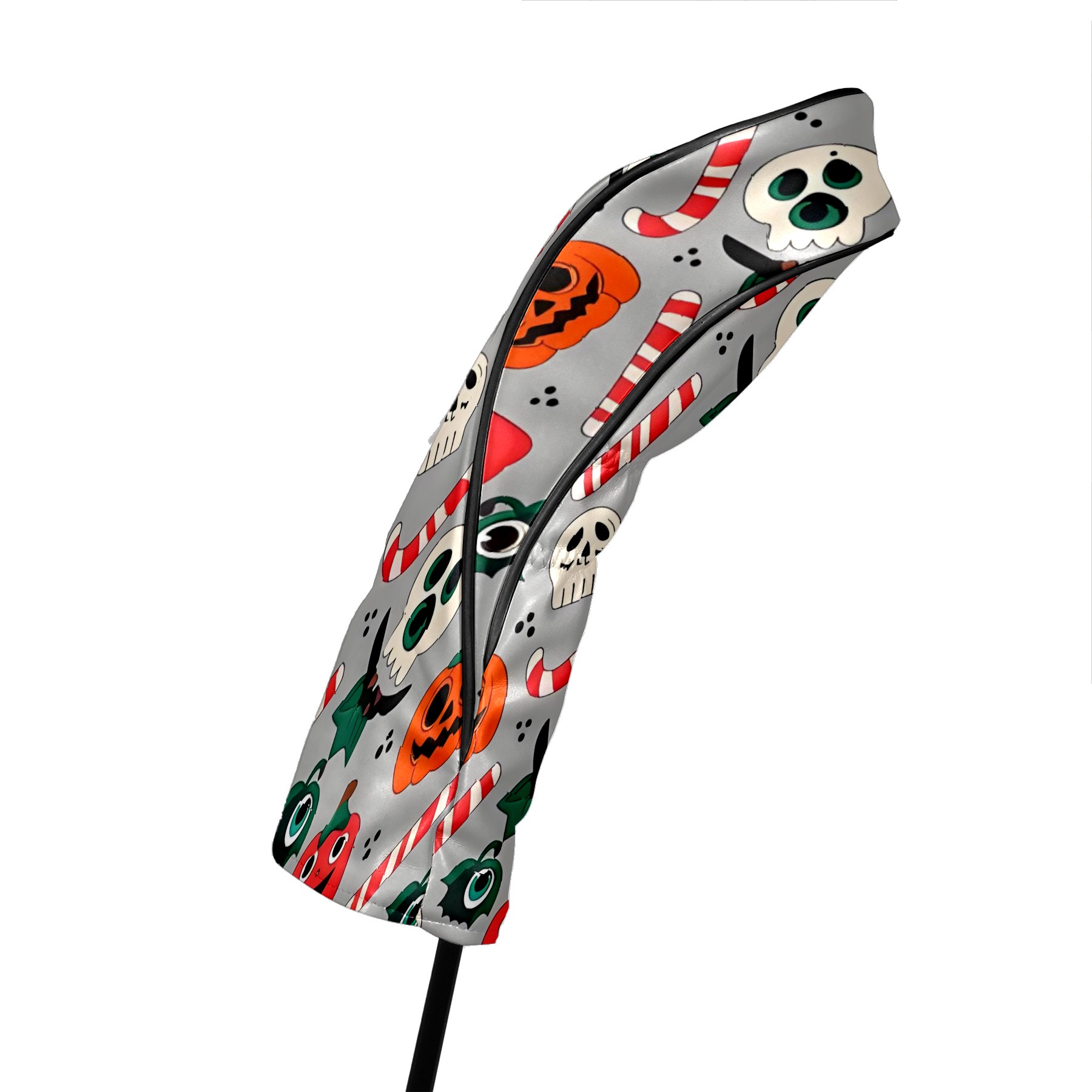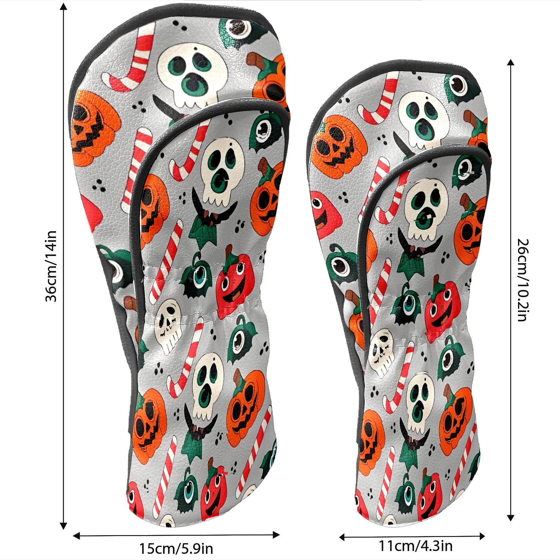 Golf Club Covers, Gray PumpkinSkull Premium PU Leather Driver Hybrid Putter Head Covers with Velvet Lining, Waterproof Golf Gifts for Men Women
