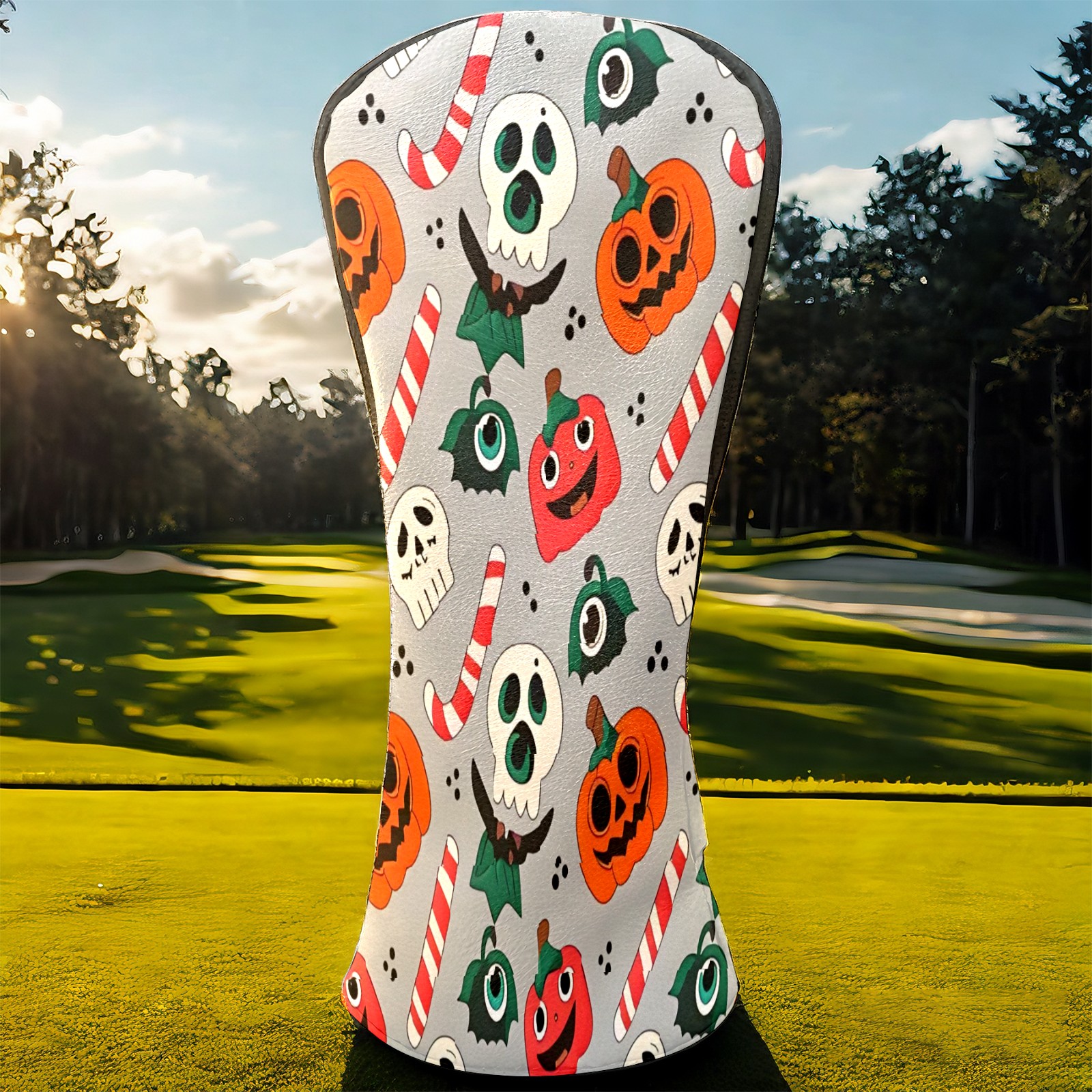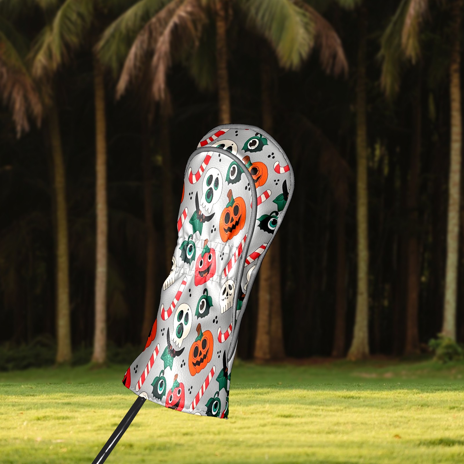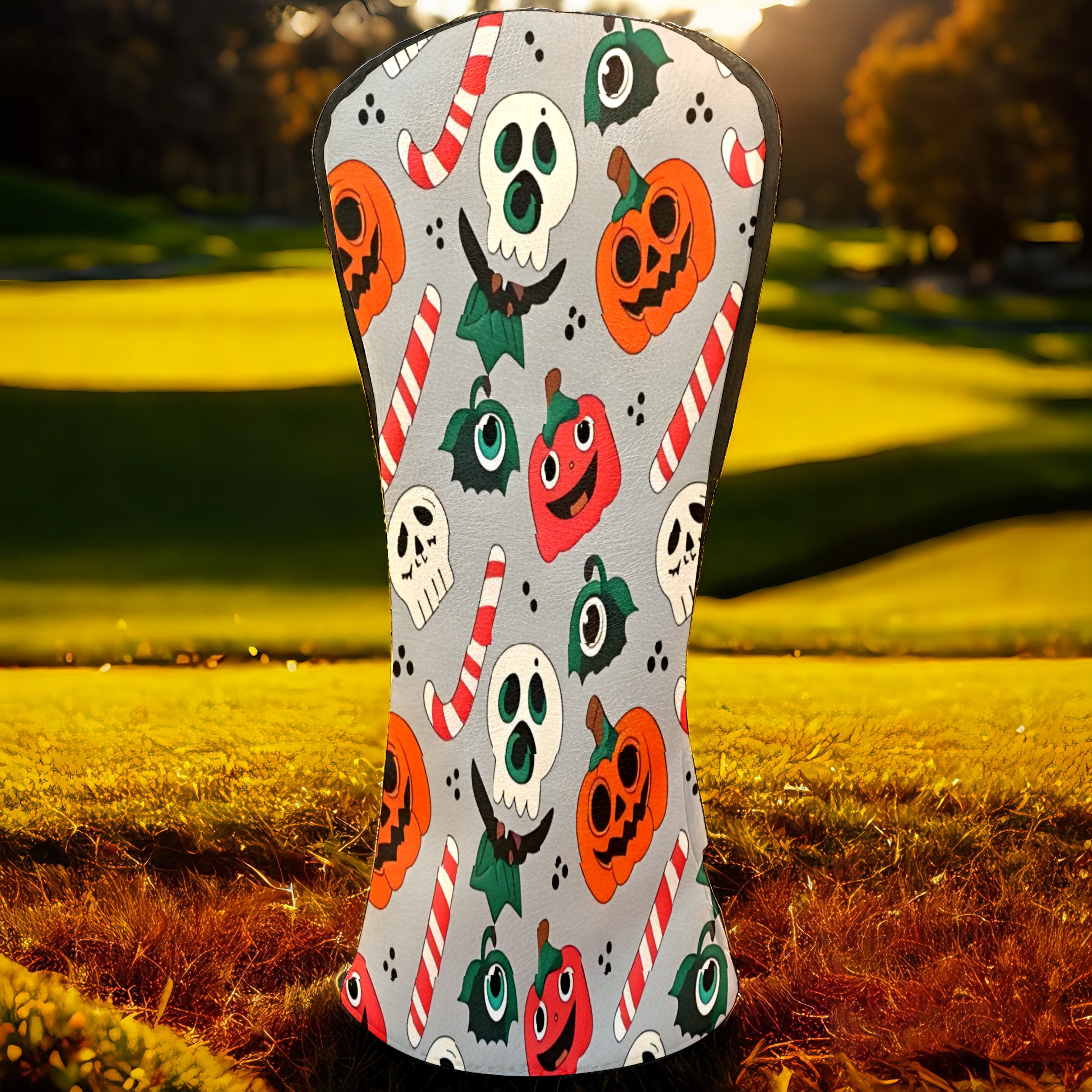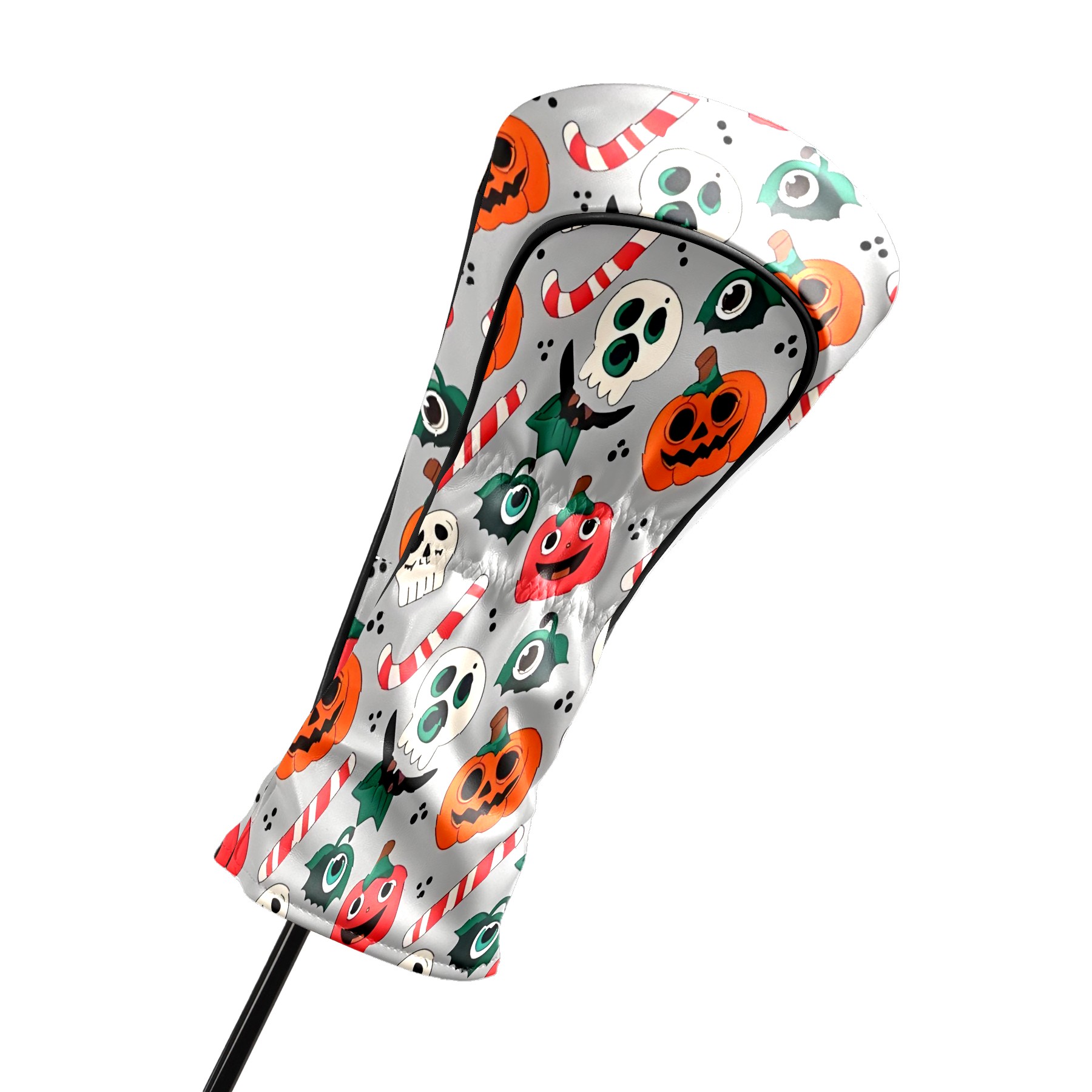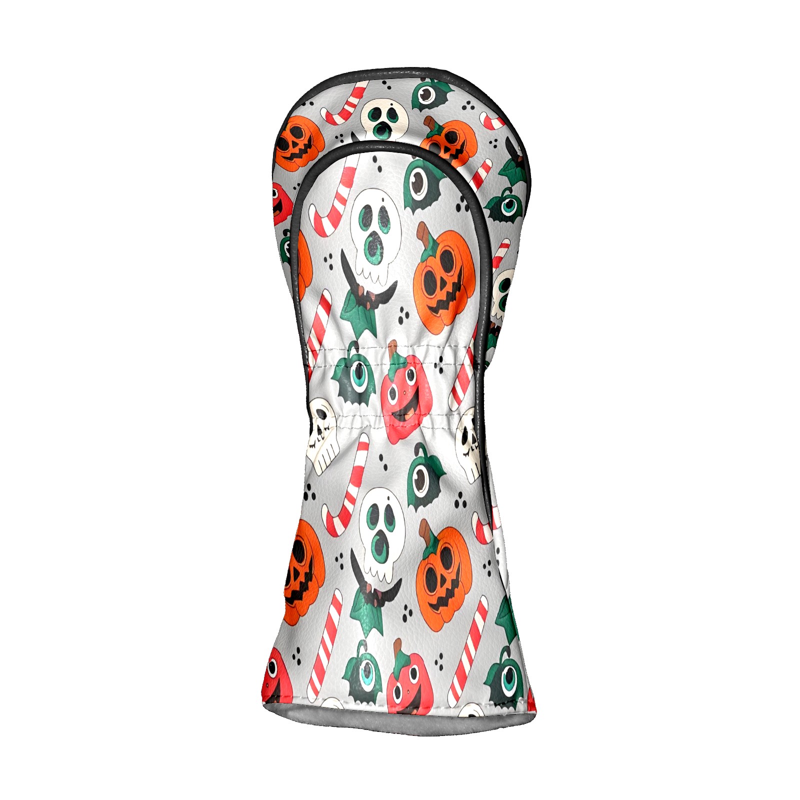 Golf Club Covers, Gray PumpkinSkull Premium PU Leather Driver Hybrid Putter Head Covers with Velvet Lining, Waterproof Golf Gifts for Men Women