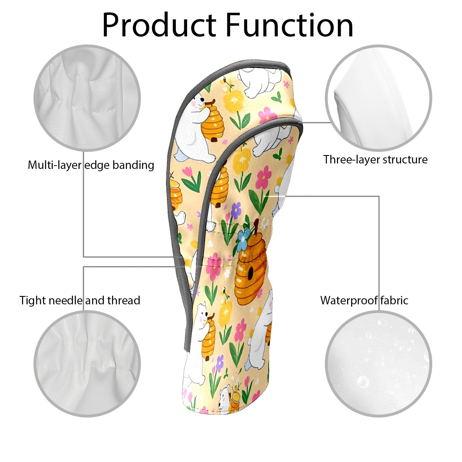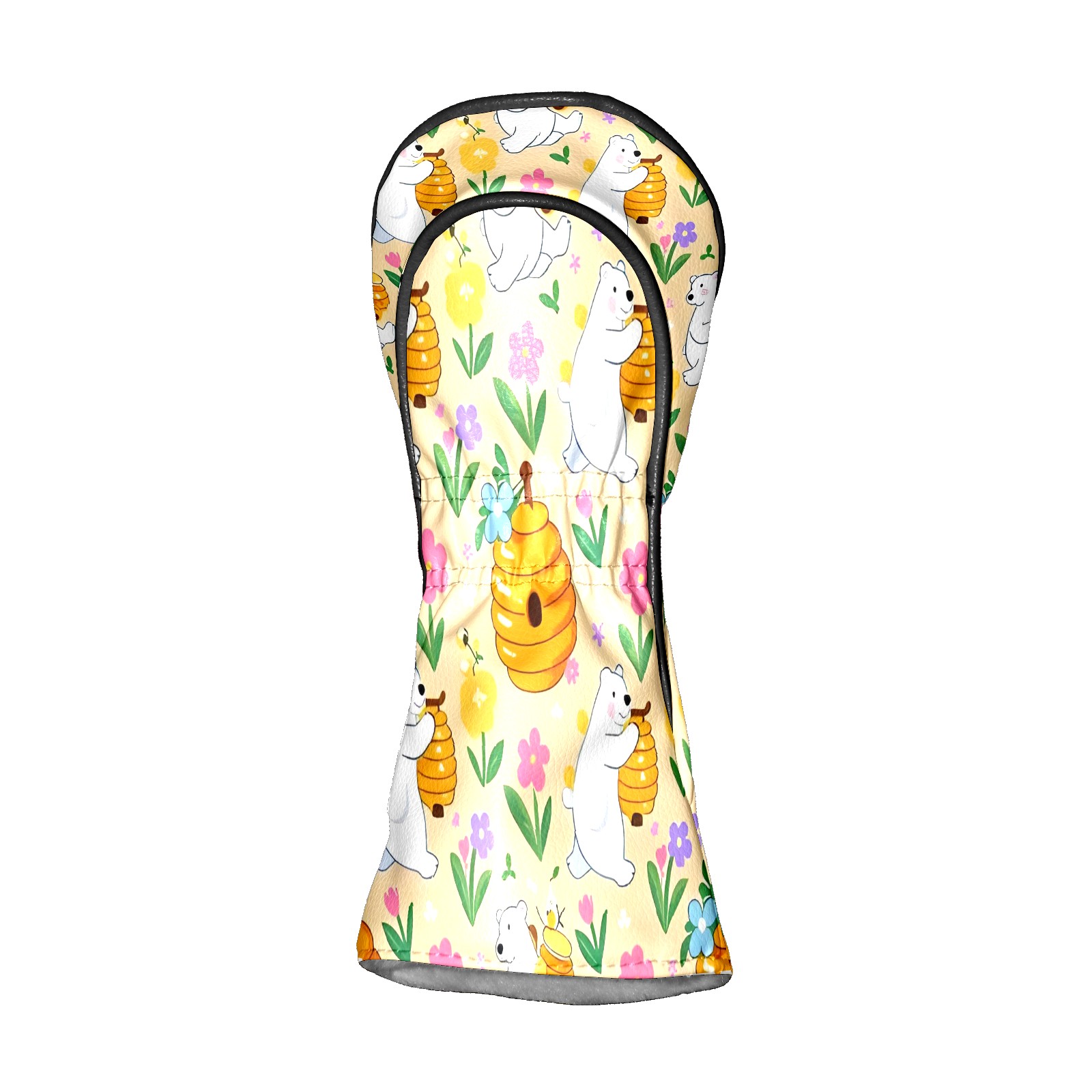Golf Club Covers, Yellow PolarBearPumpkin Premium PU Leather Driver Hybrid Putter Head Covers with Velvet Lining, Waterproof Golf Gifts for Men Women