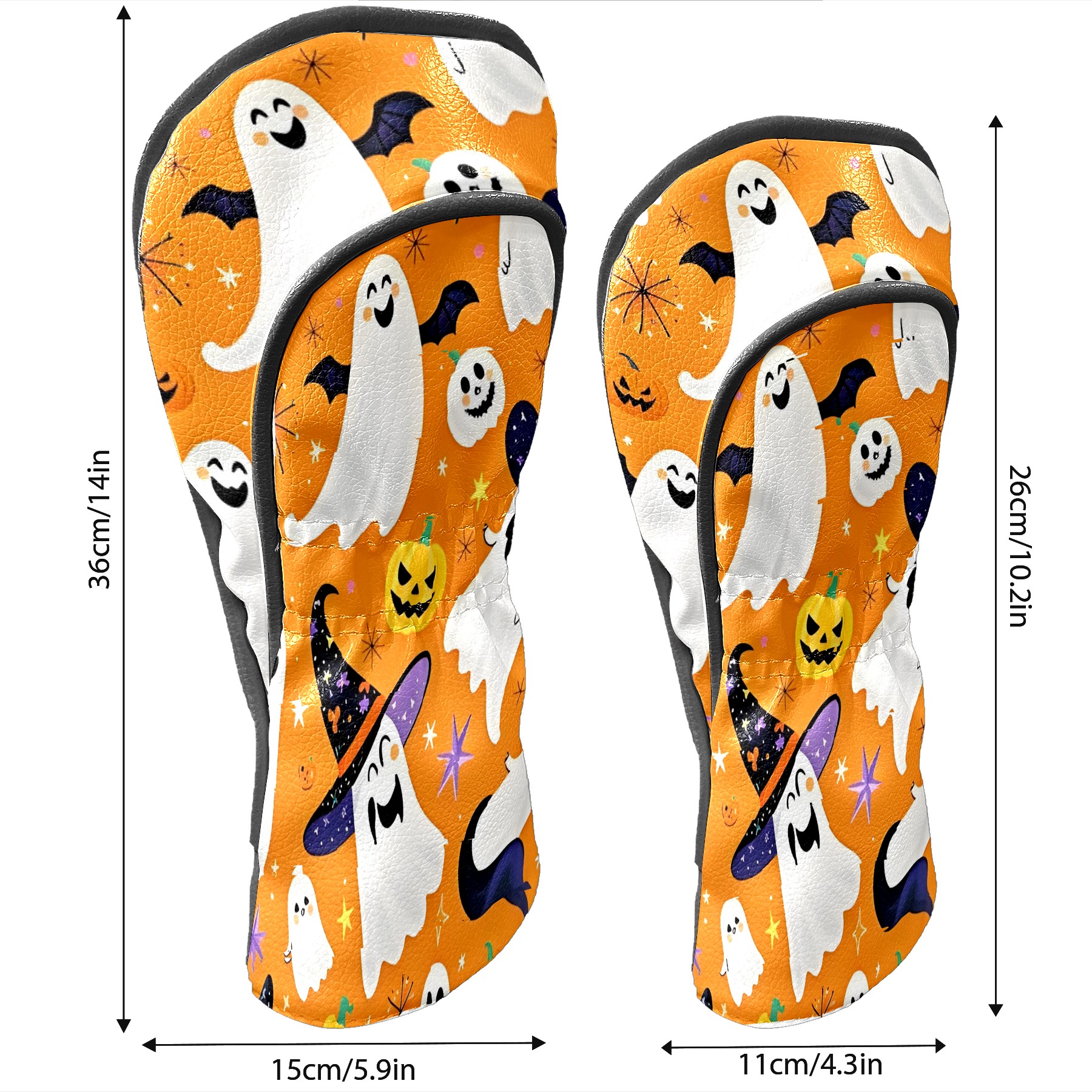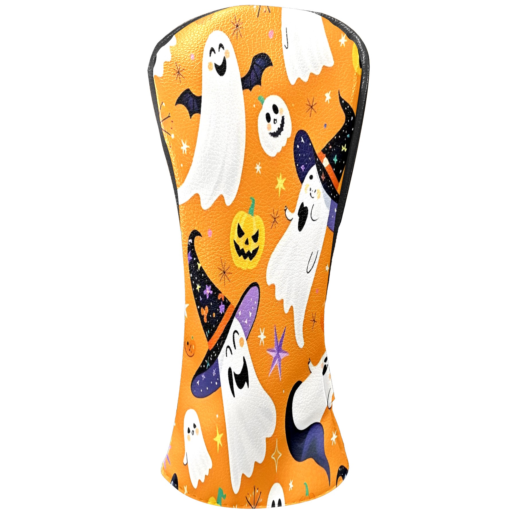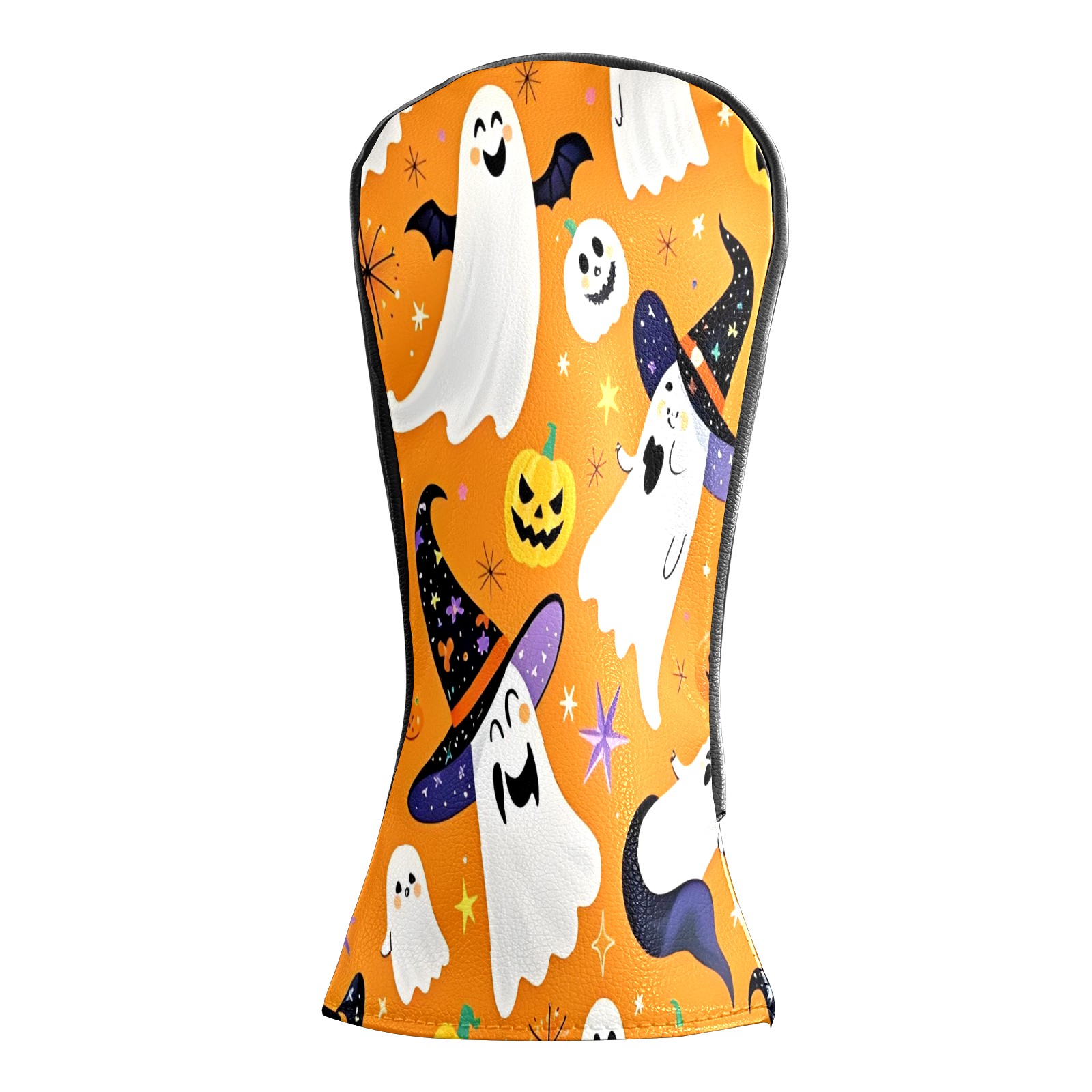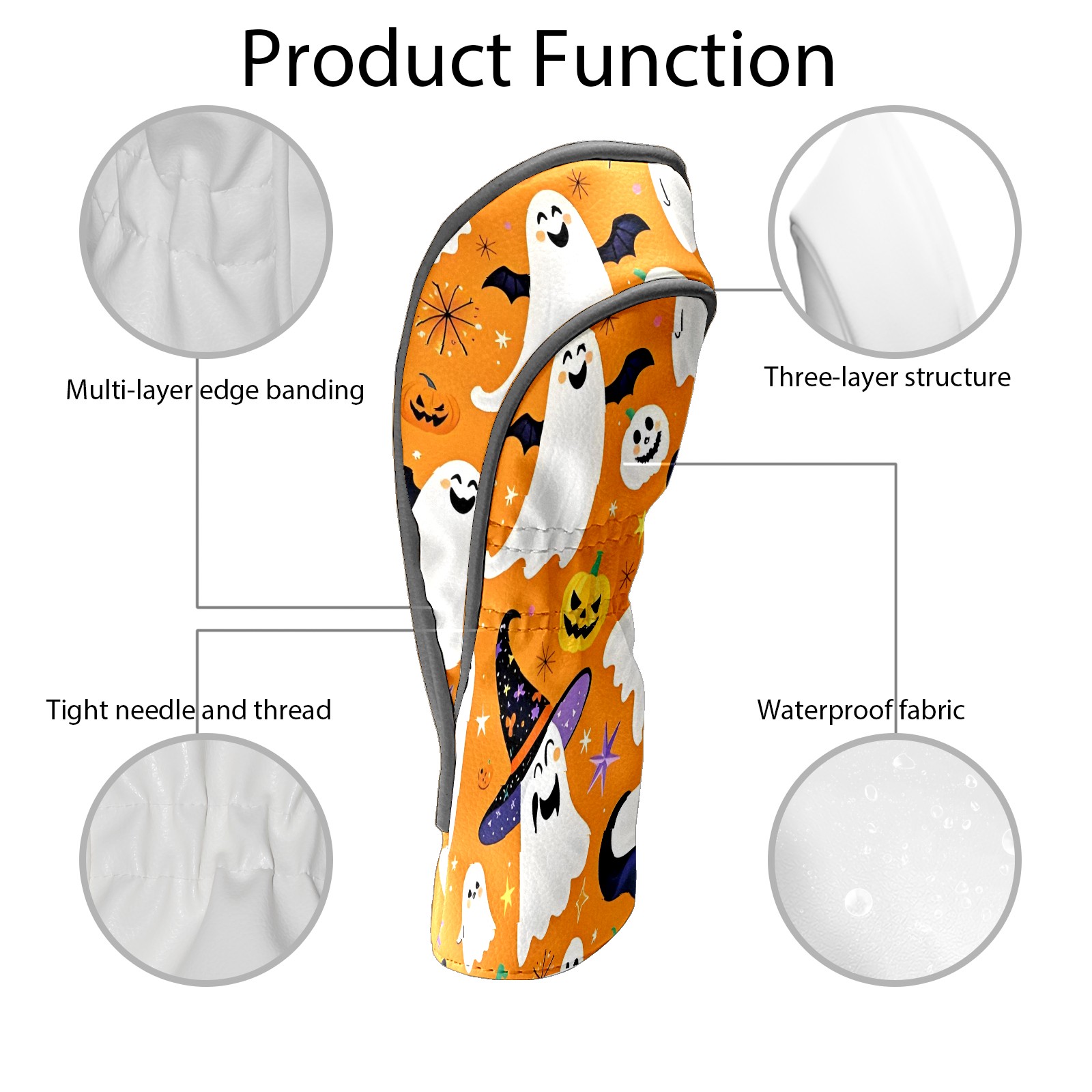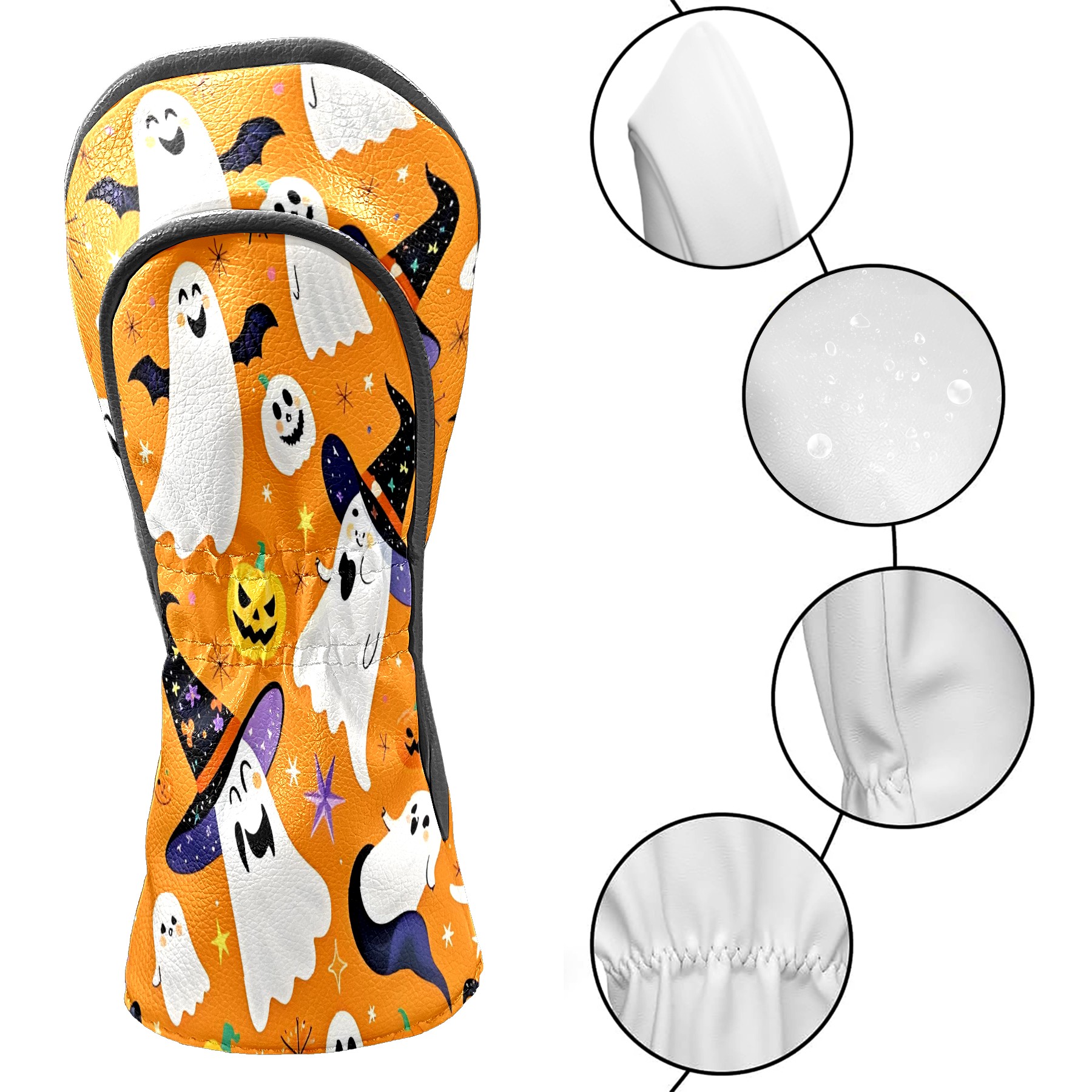 Golf Club Covers, Orange GhostPumpkin Premium PU Leather Driver Hybrid Putter Head Covers with Velvet Lining, Waterproof Golf Gifts for Men Women