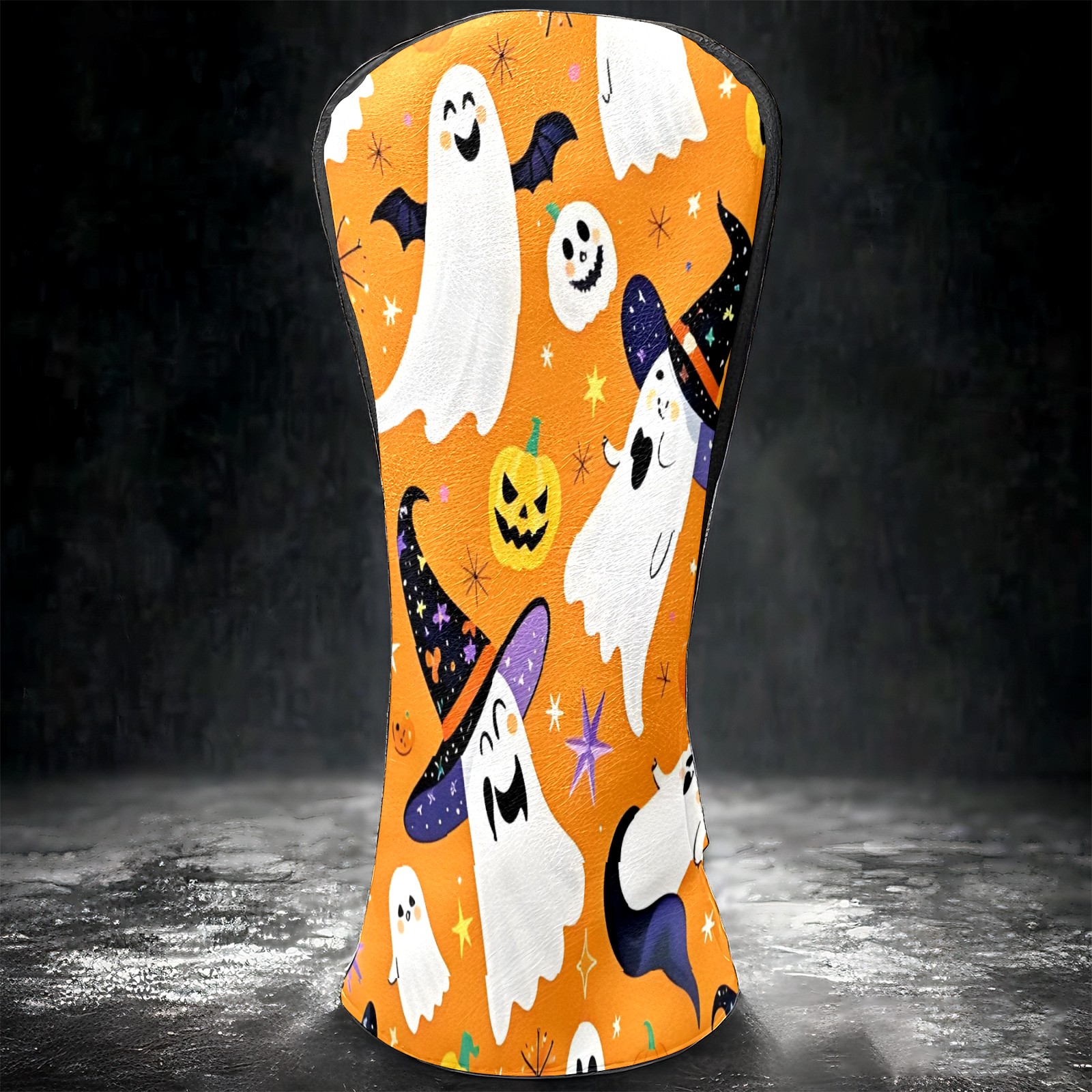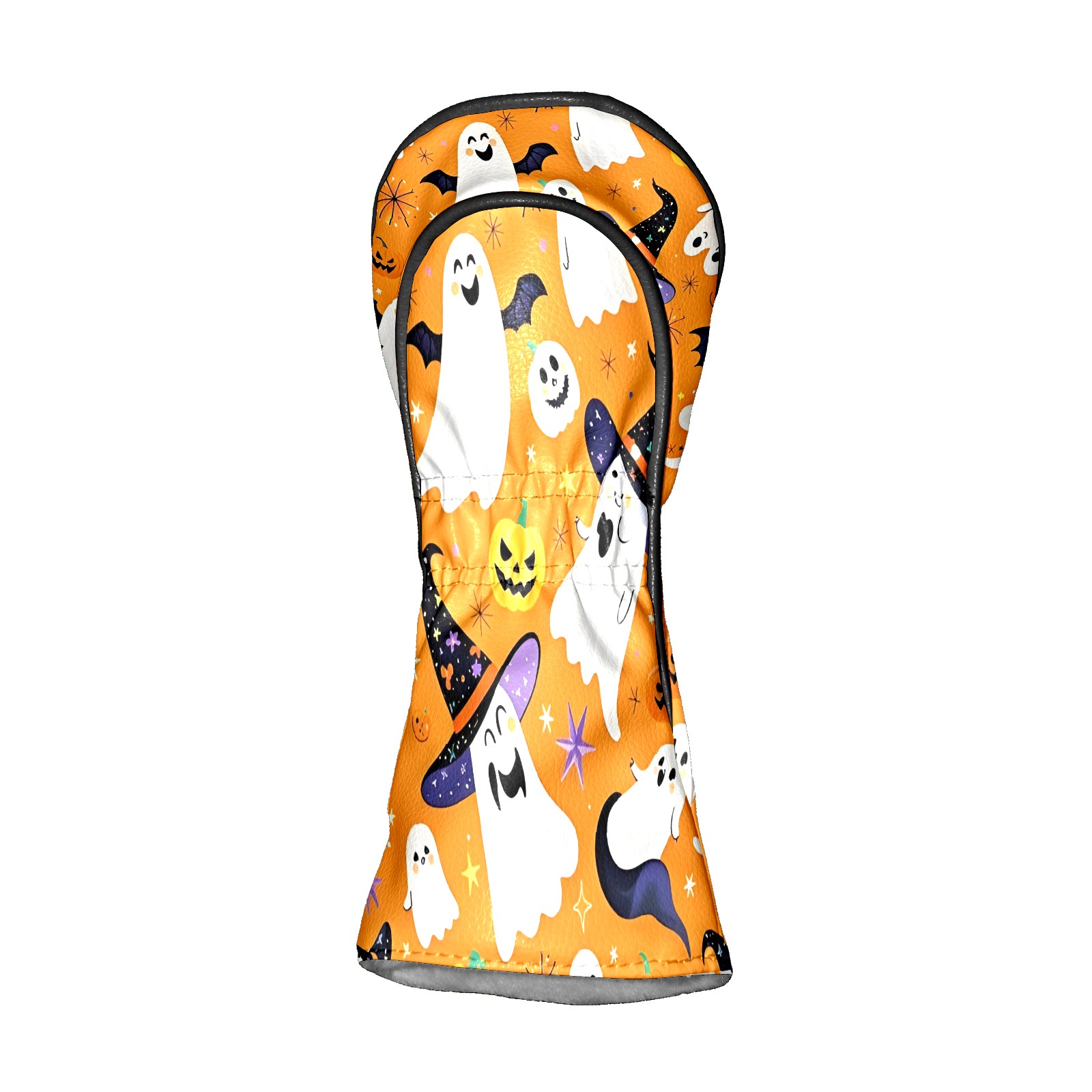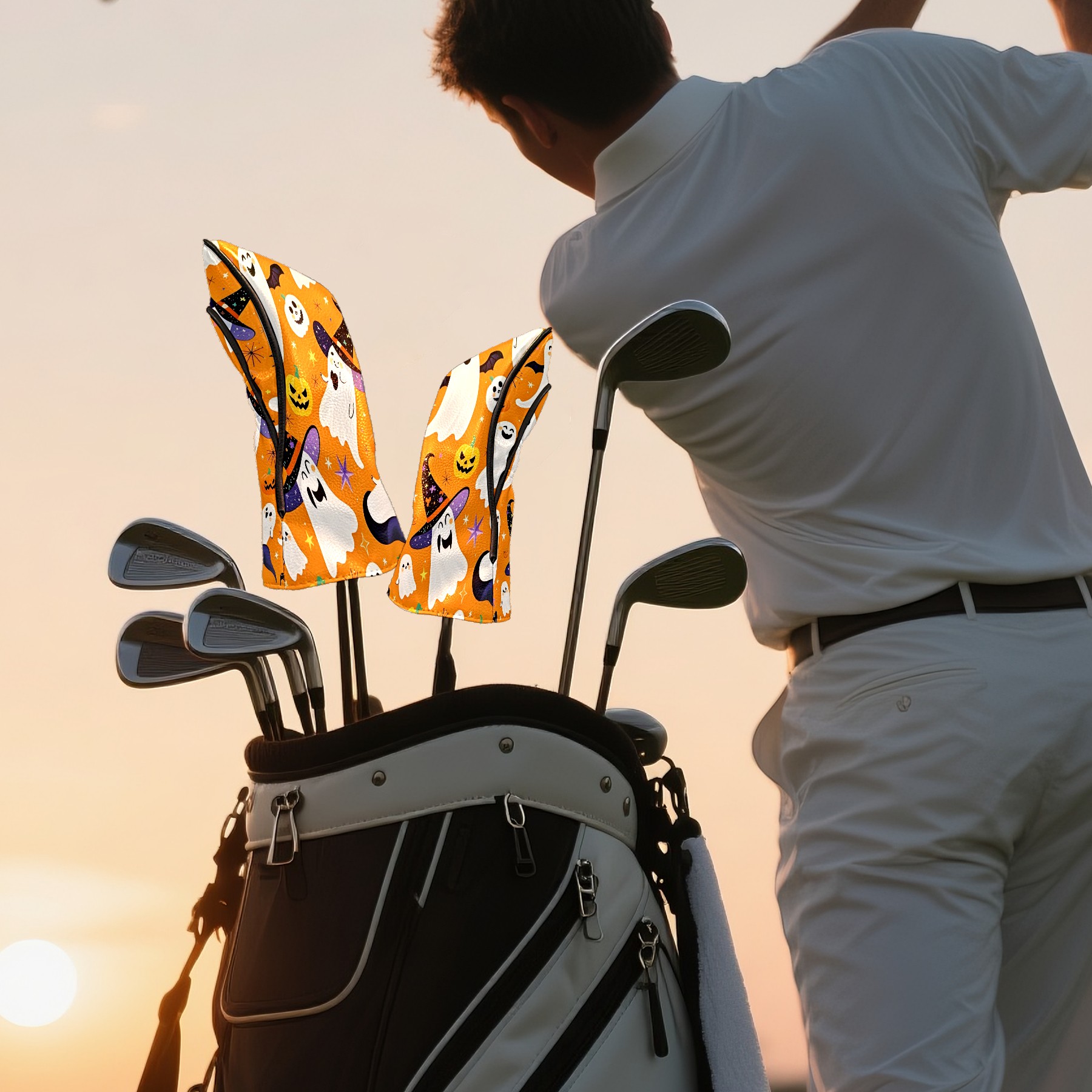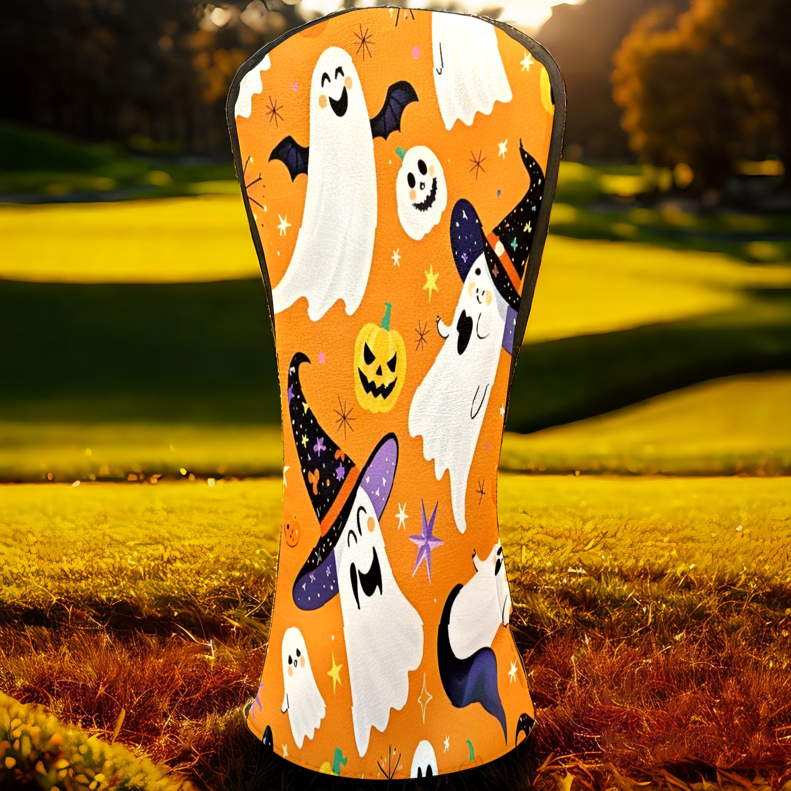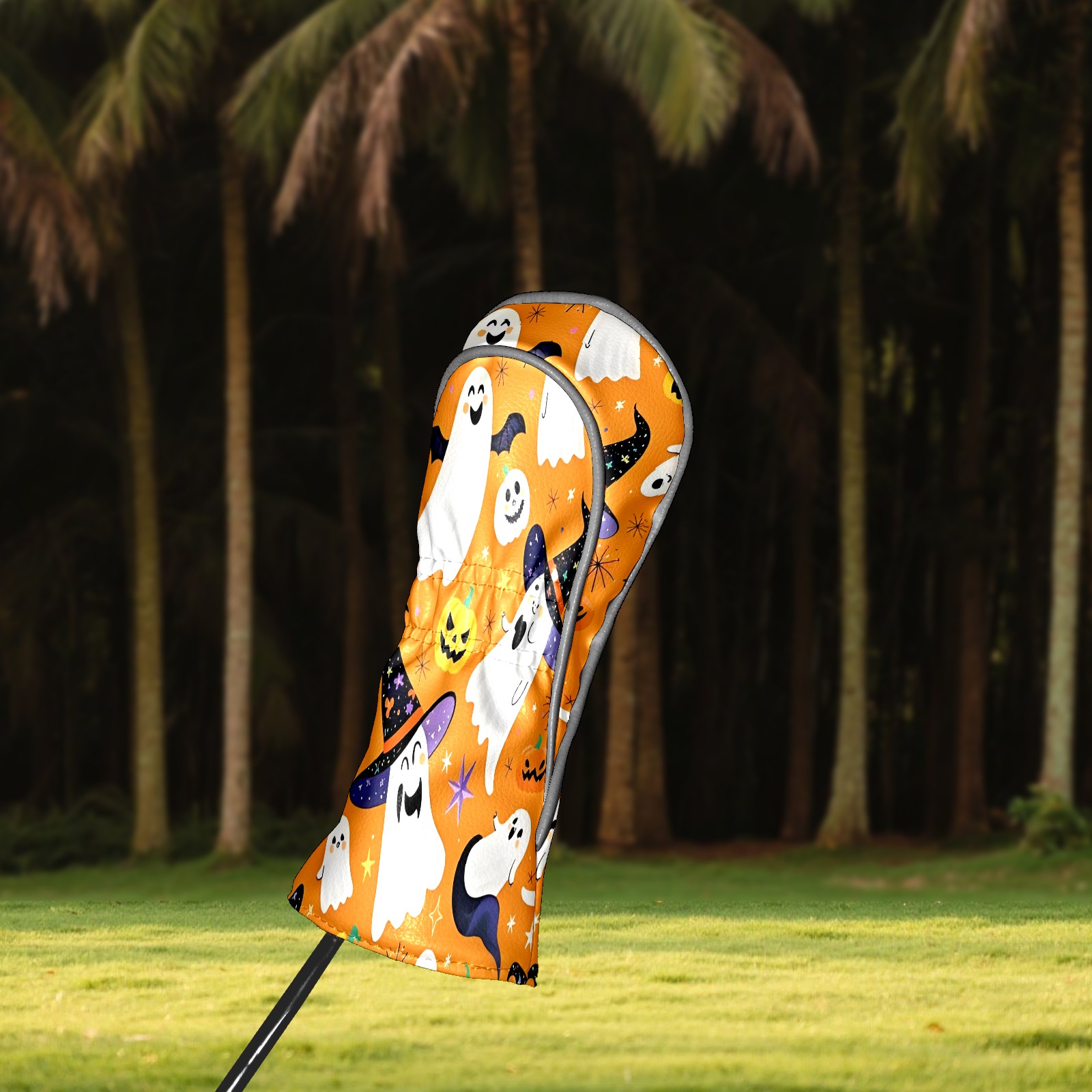 Golf Club Covers, Orange GhostPumpkin Premium PU Leather Driver Hybrid Putter Head Covers with Velvet Lining, Waterproof Golf Gifts for Men Women