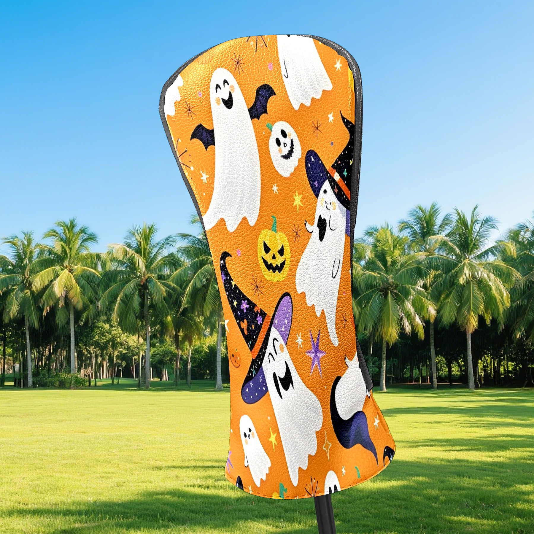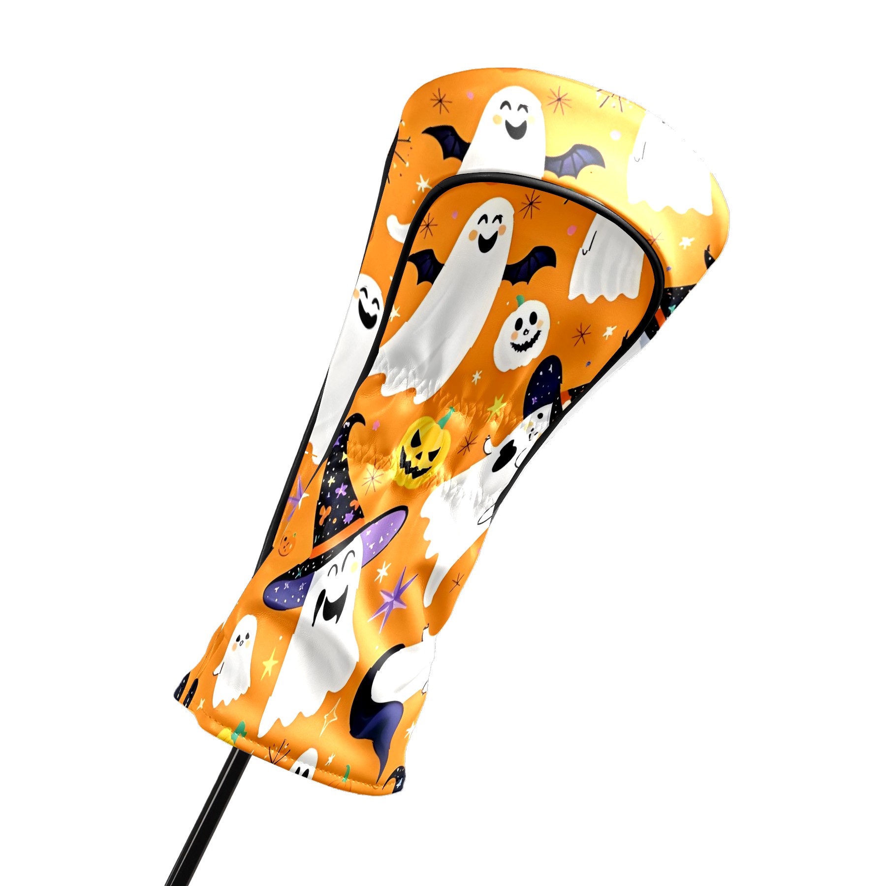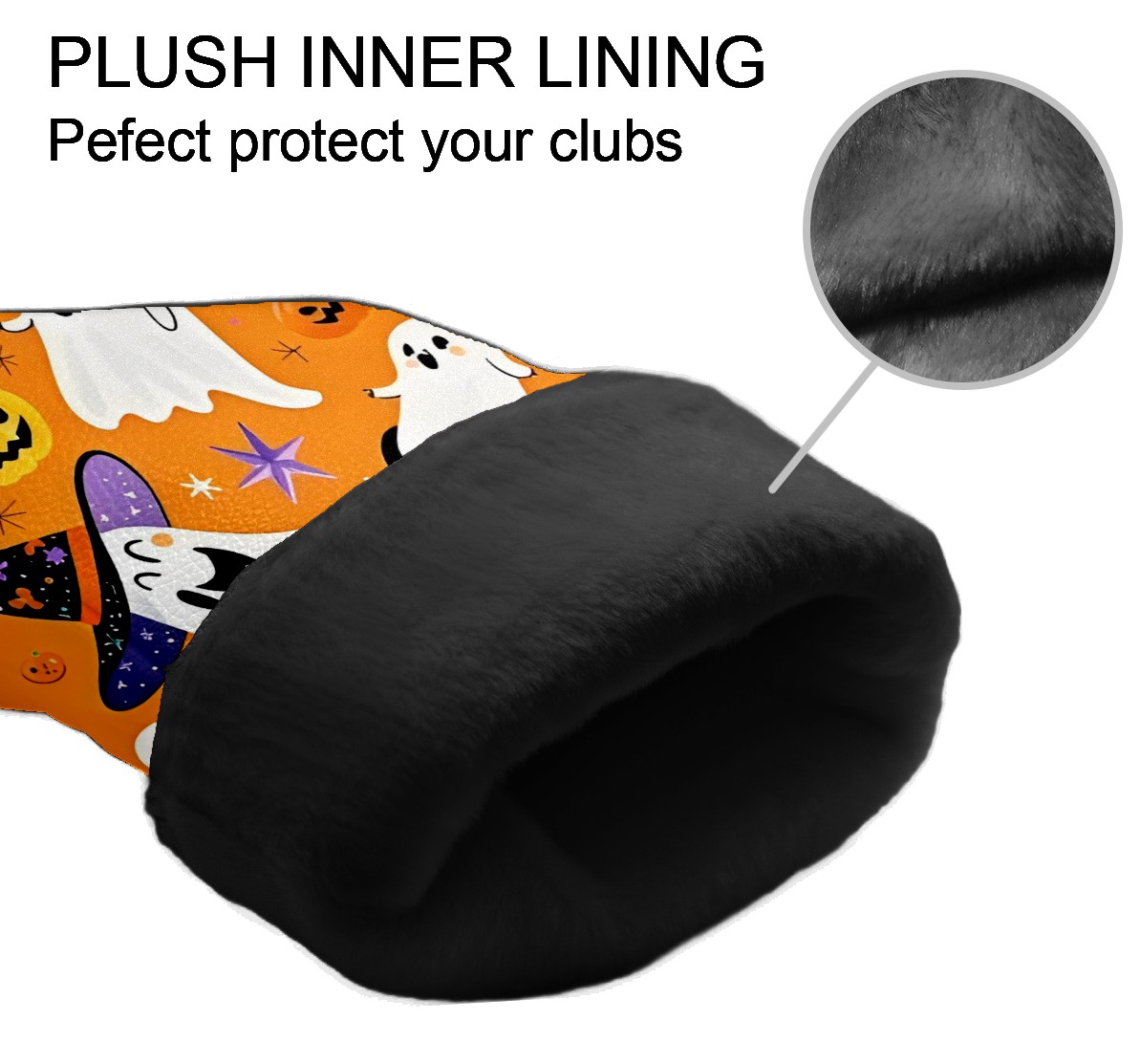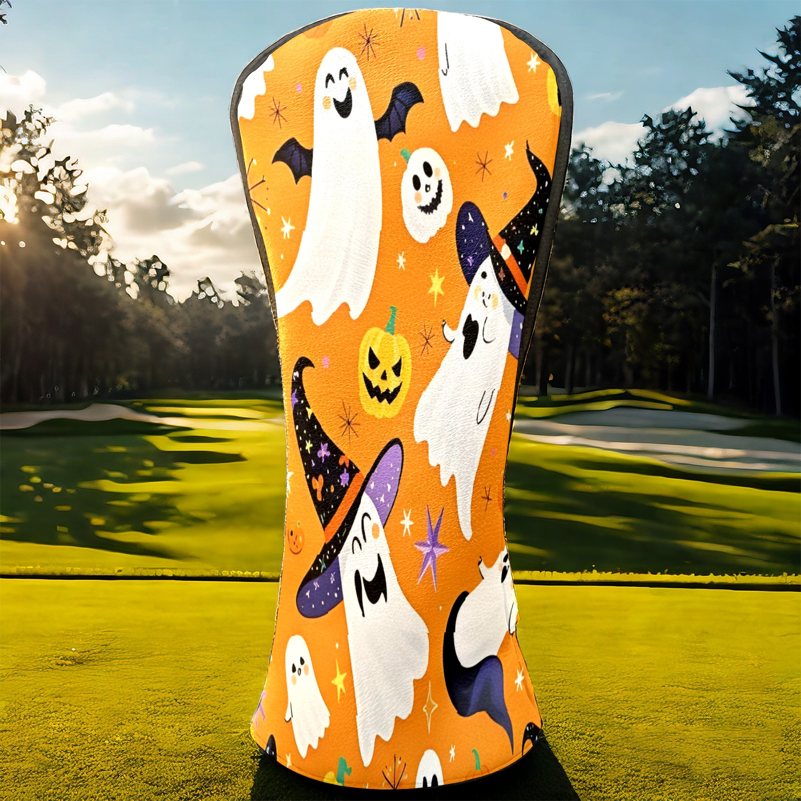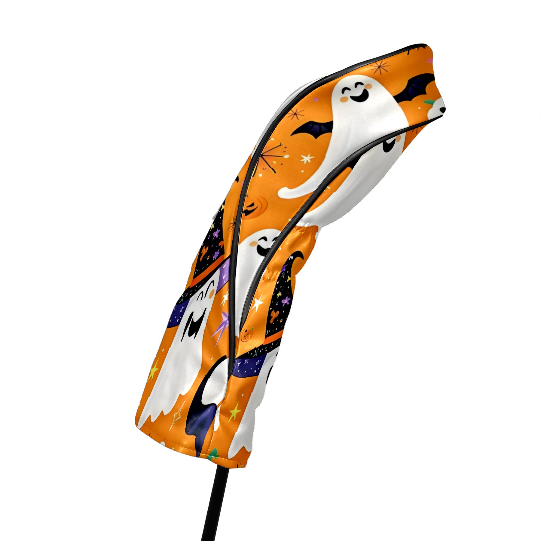 Golf Club Covers, Orange GhostPumpkin Premium PU Leather Driver Hybrid Putter Head Covers with Velvet Lining, Waterproof Golf Gifts for Men Women
