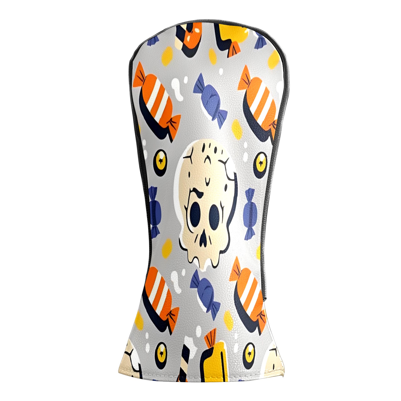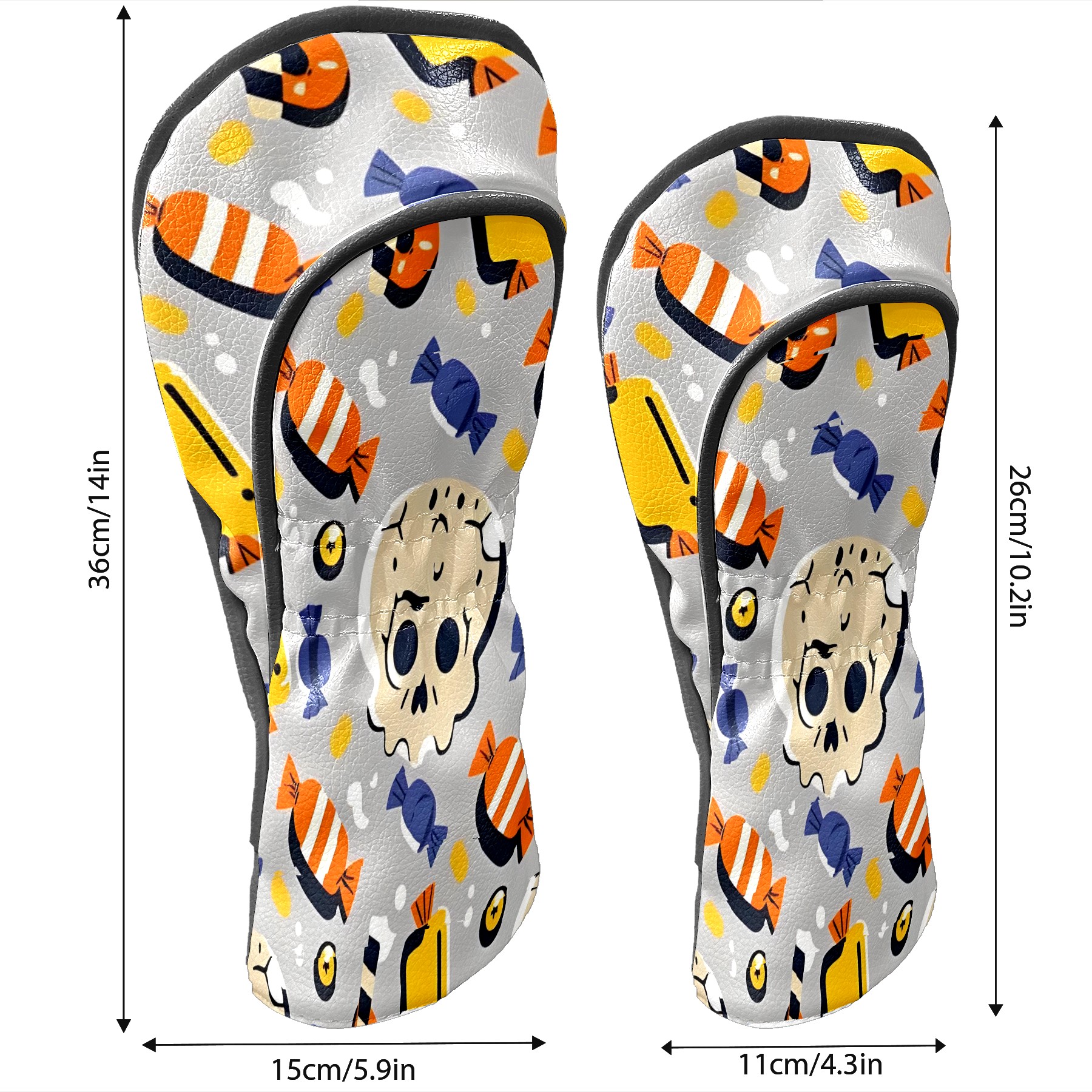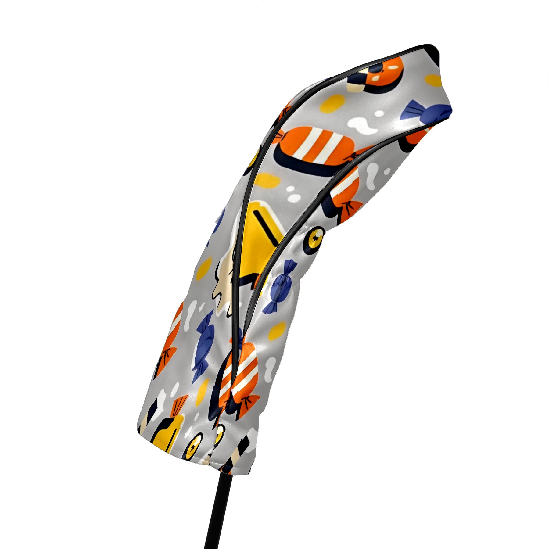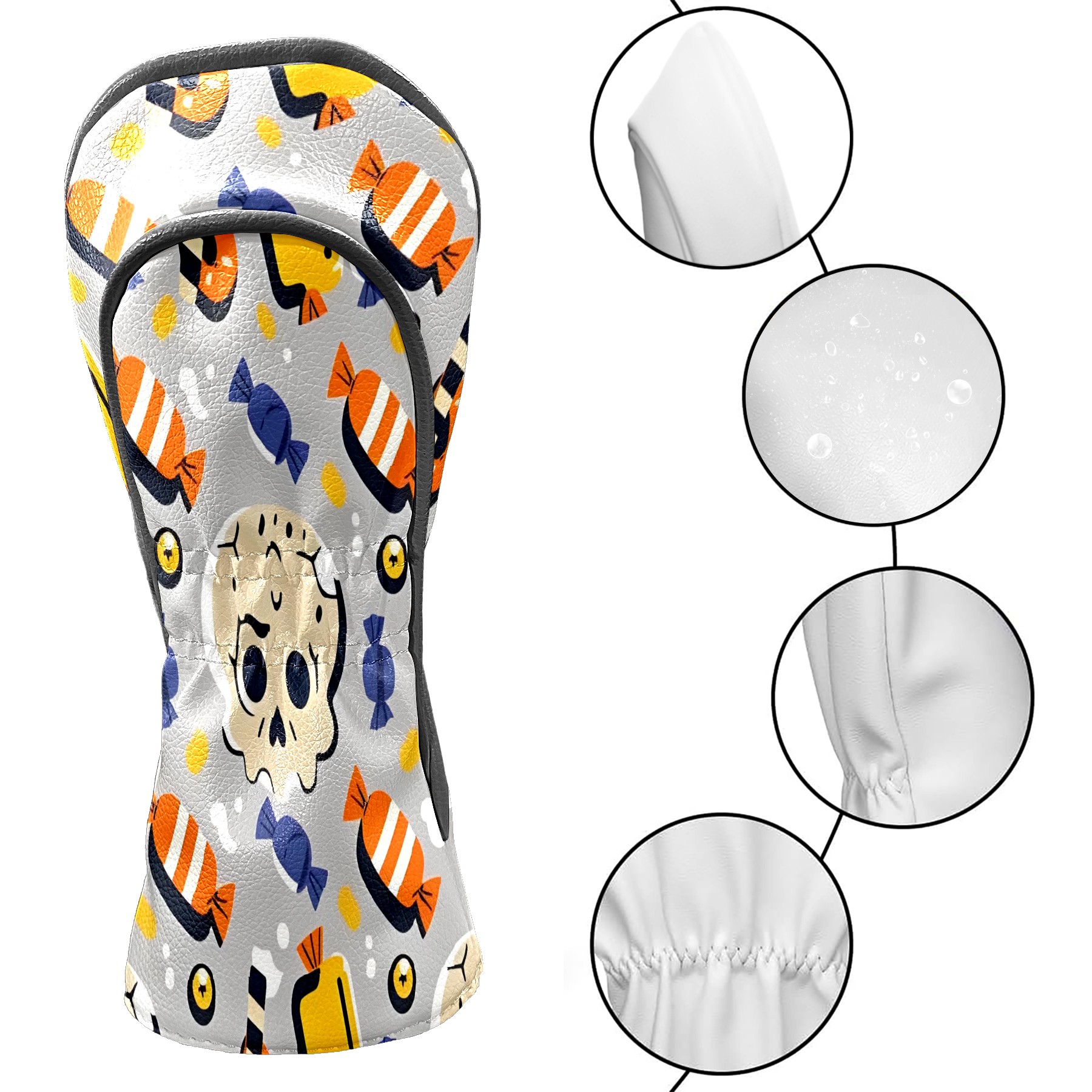 Golf Club Covers, Colorful HalloweenCandy Premium PU Leather Driver Hybrid Putter Head Covers with Velvet Lining, Waterproof Golf Gifts for Men Women