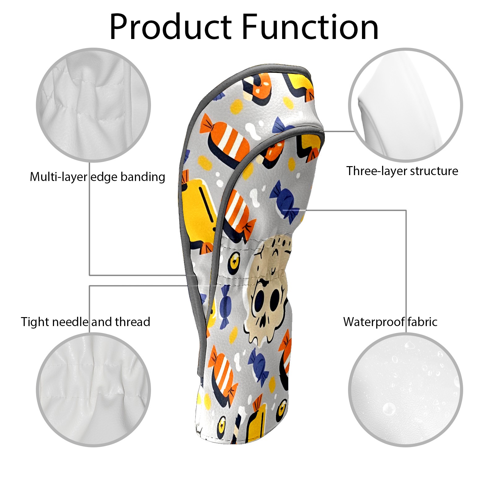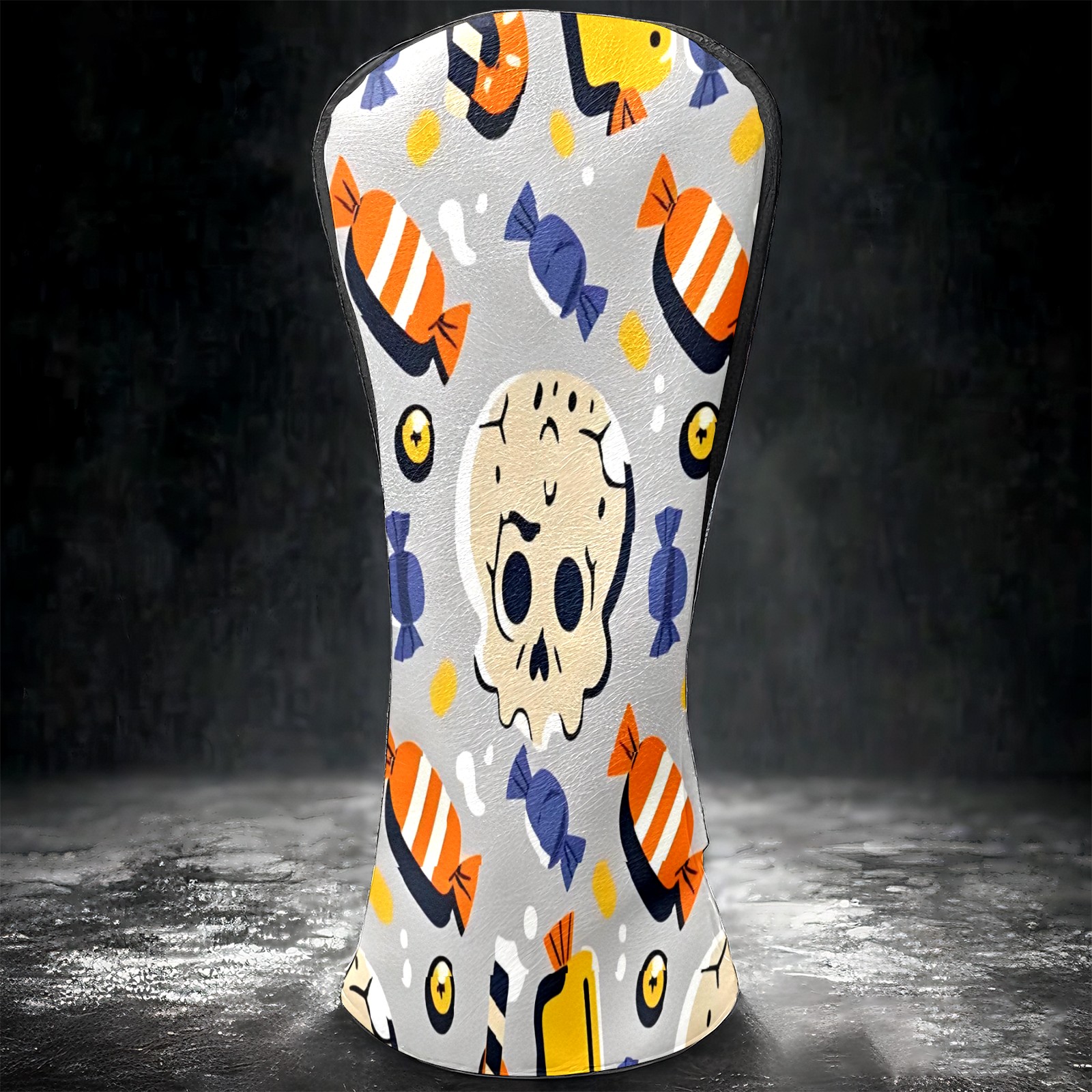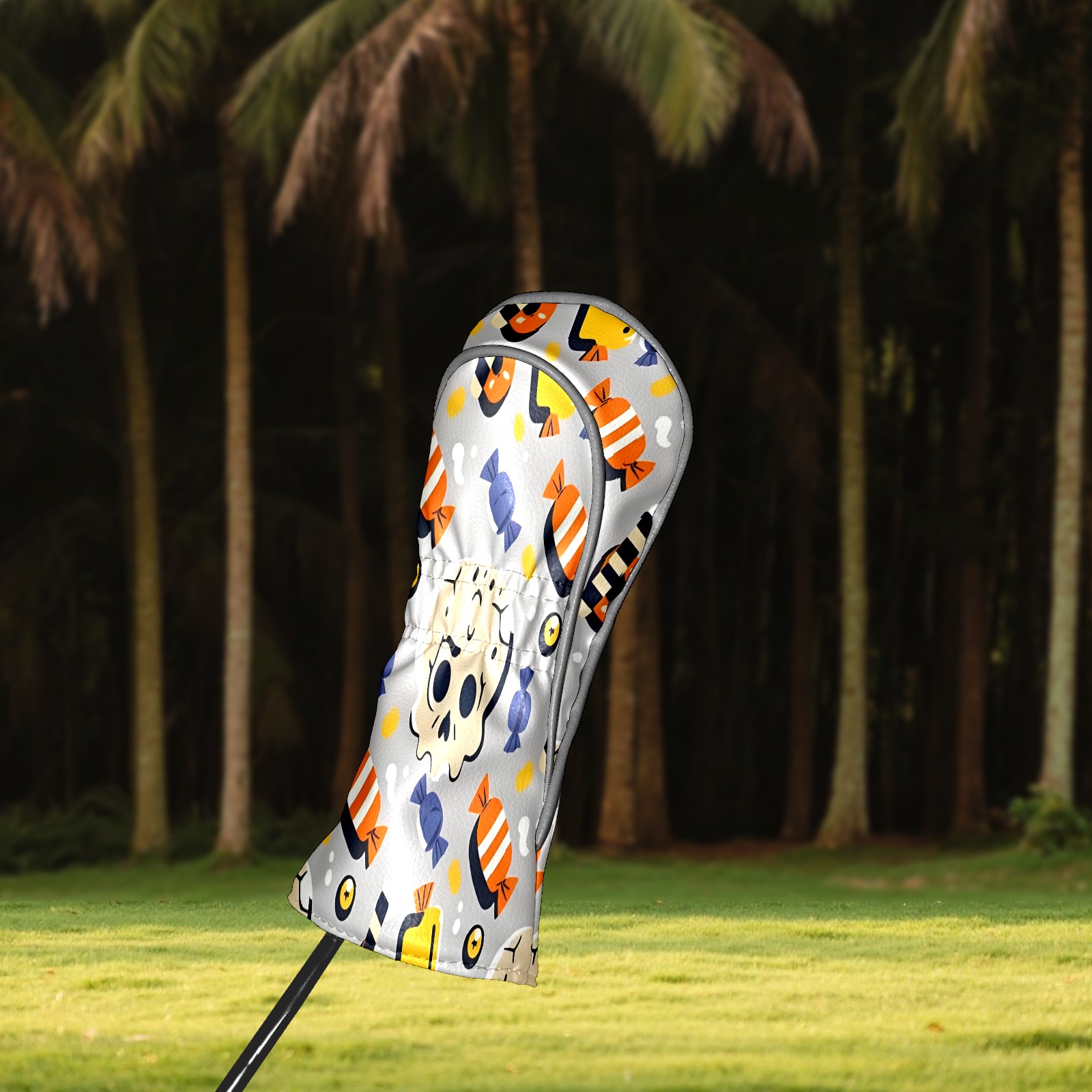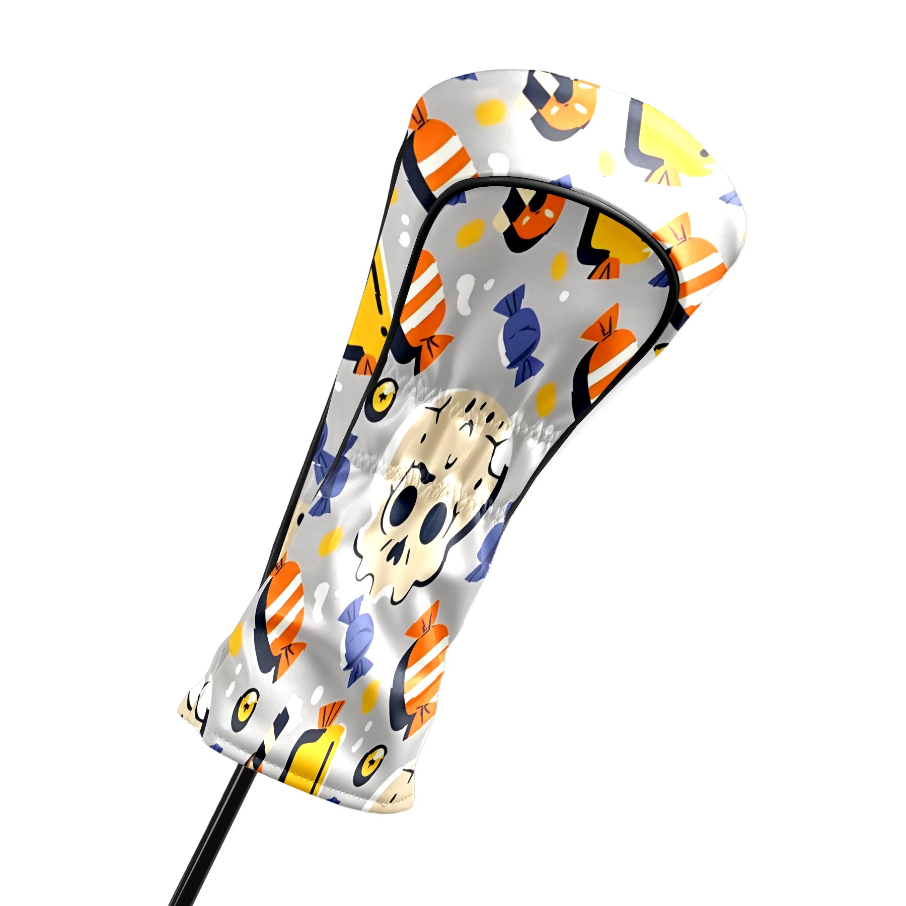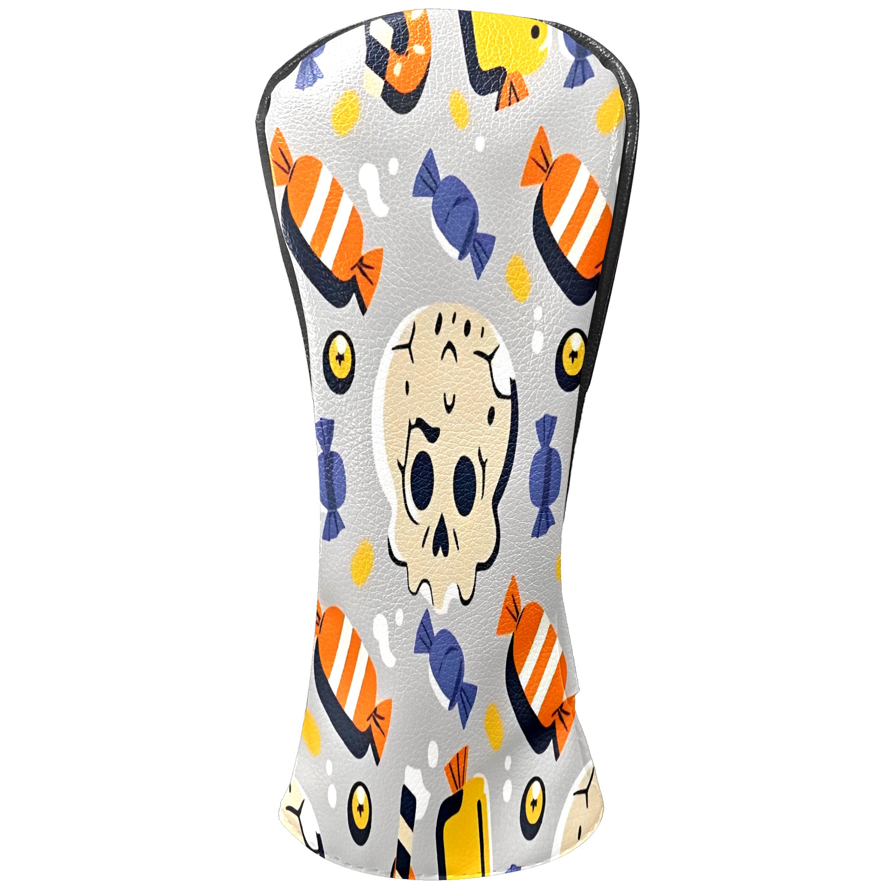 Golf Club Covers, Colorful HalloweenCandy Premium PU Leather Driver Hybrid Putter Head Covers with Velvet Lining, Waterproof Golf Gifts for Men Women