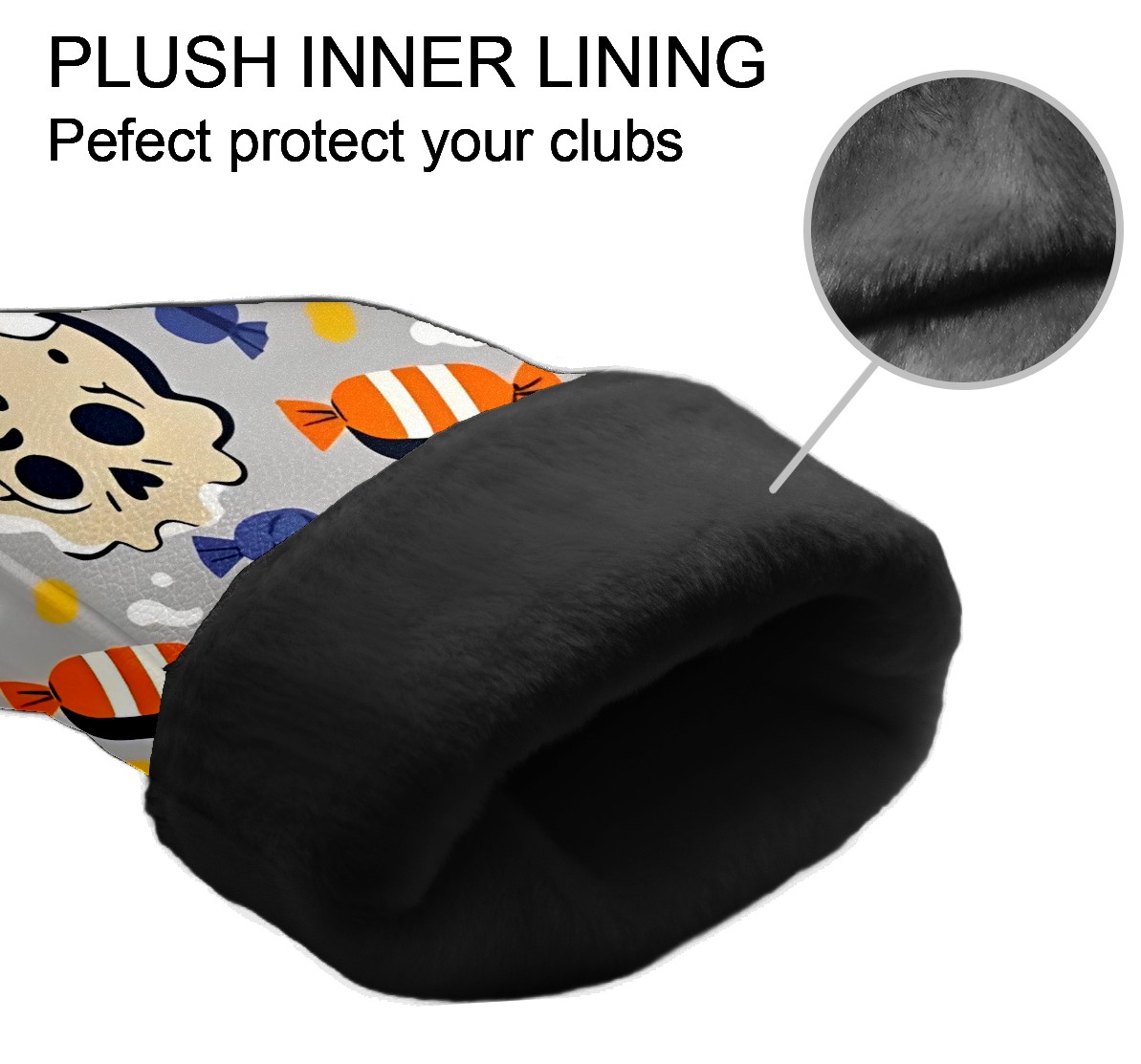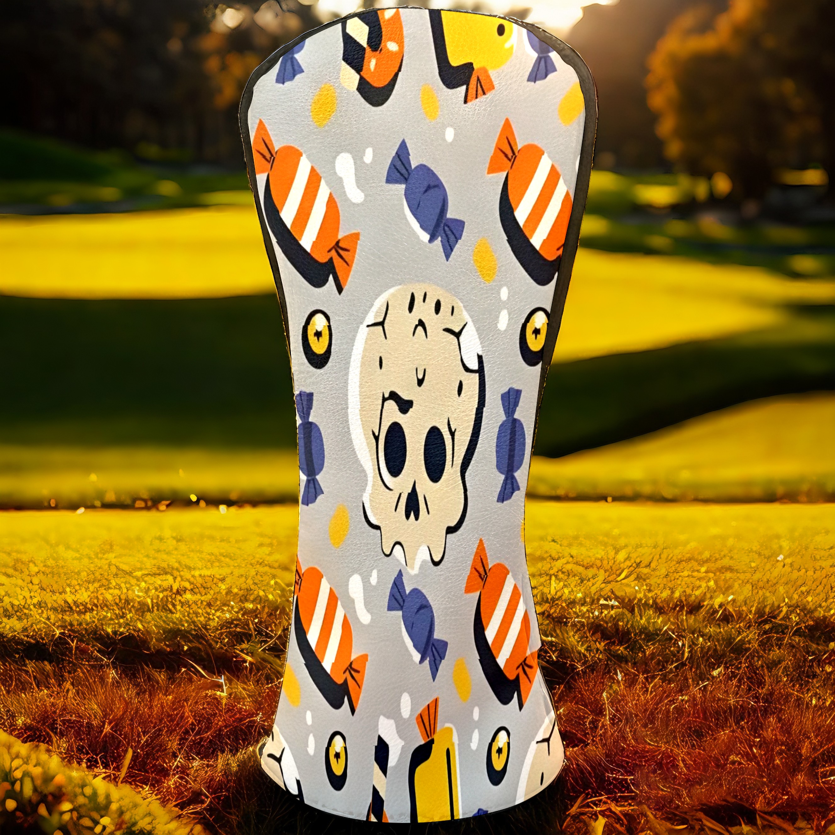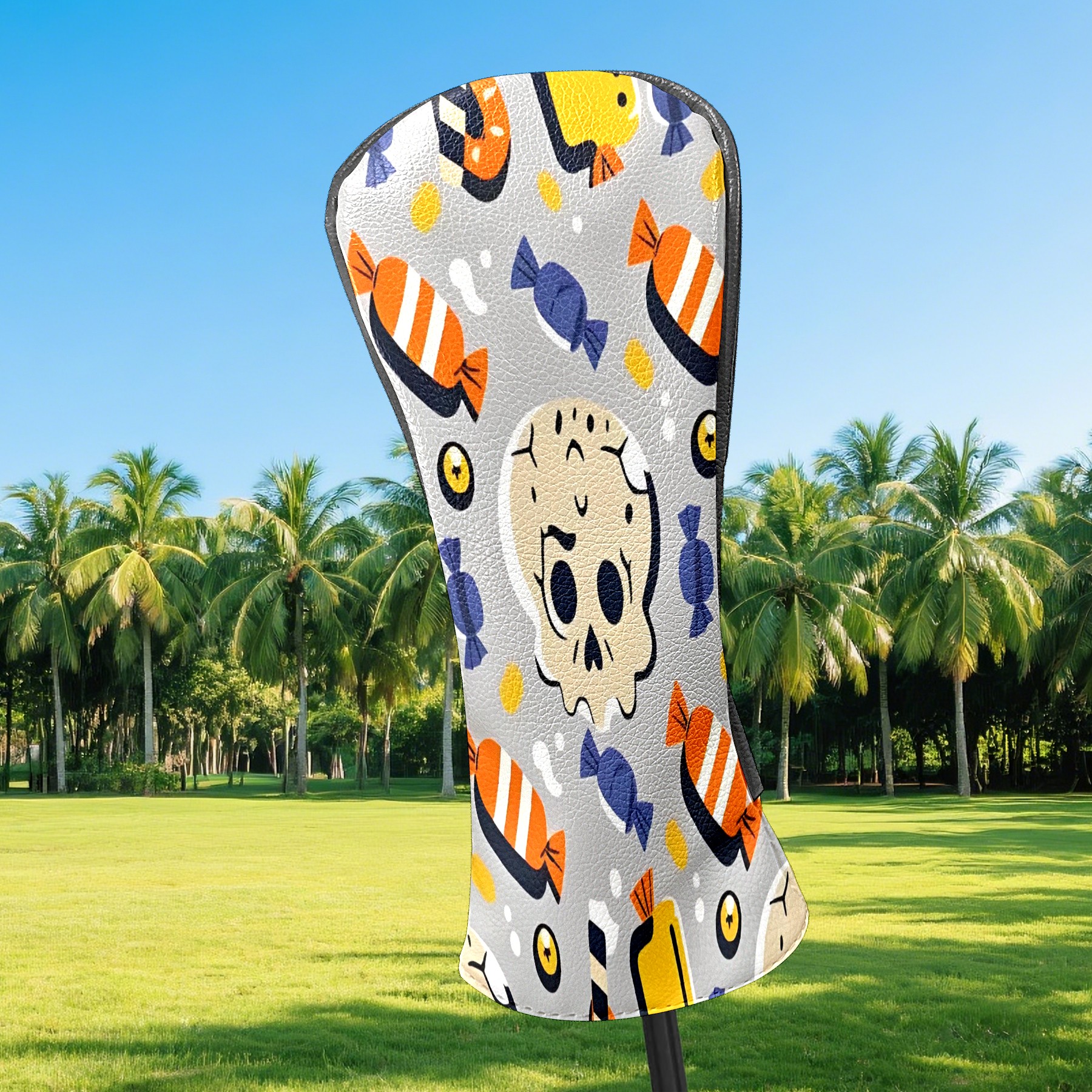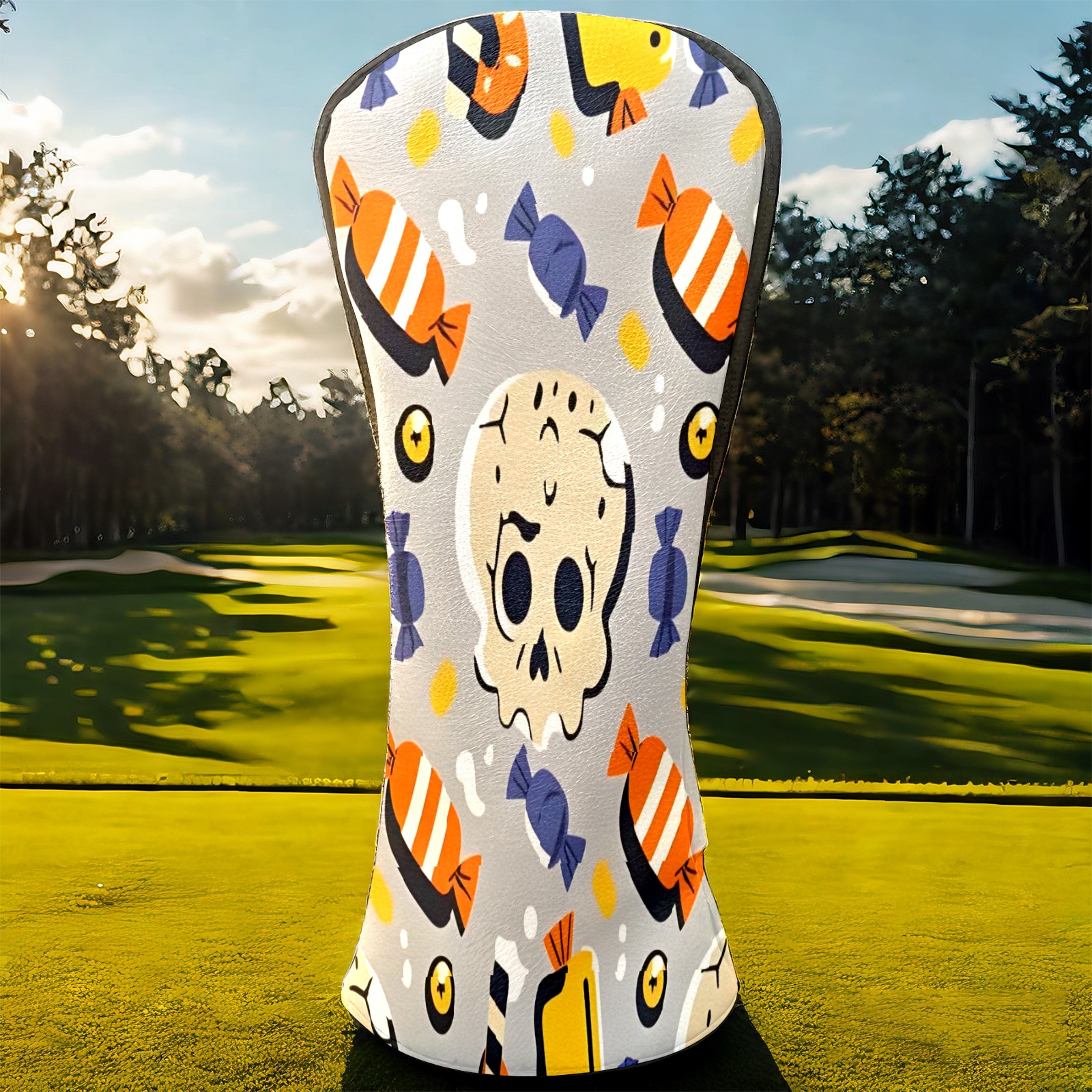 Golf Club Covers, Colorful HalloweenCandy Premium PU Leather Driver Hybrid Putter Head Covers with Velvet Lining, Waterproof Golf Gifts for Men Women