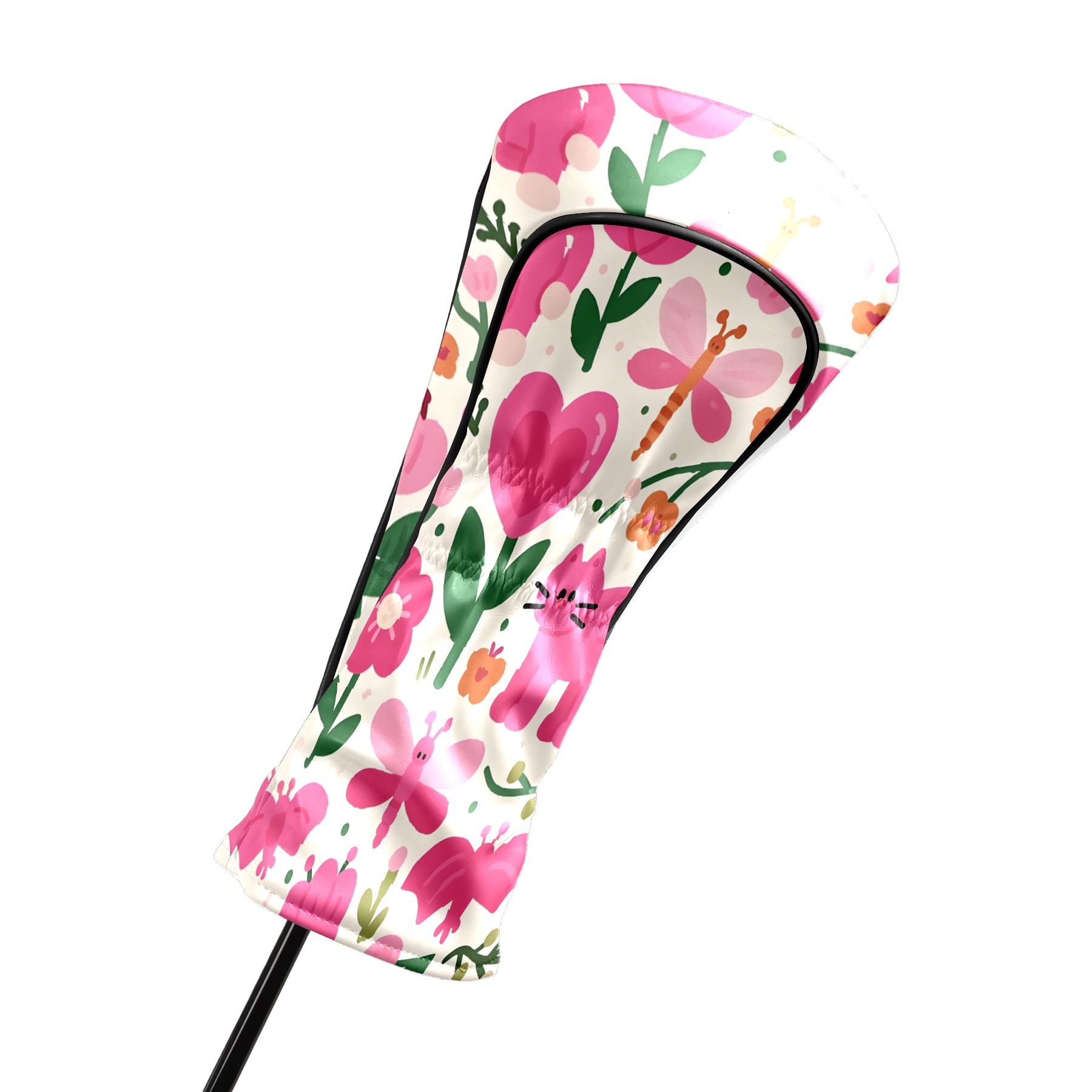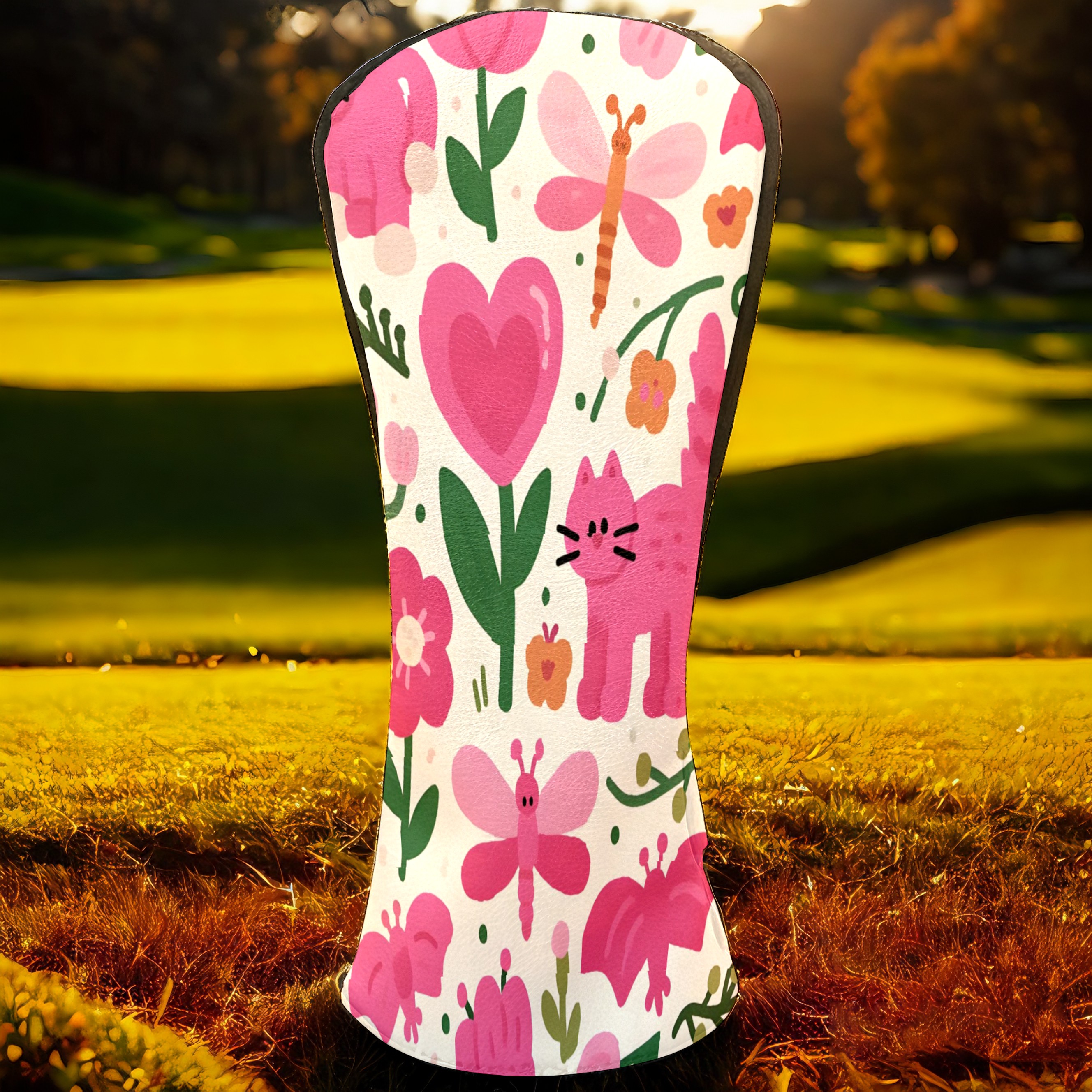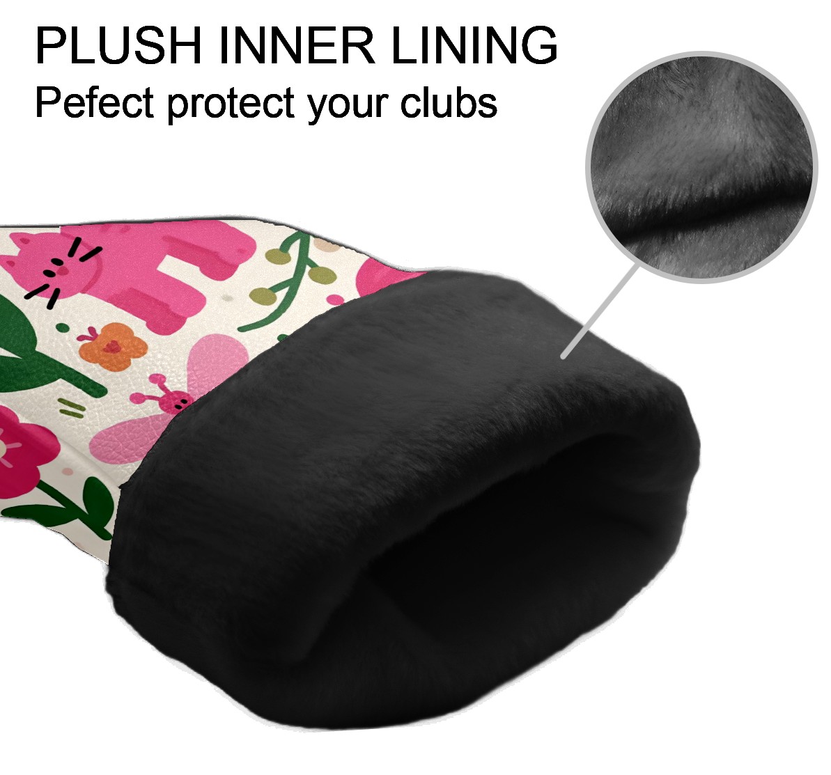Golf Club Head Covers Counullo for Driver & Fairway Woods Pink CatFlower Premium Plush Velvet Lining, Waterproof Golf Headcovers for Scratch Protection Novelty Gift for Men & Women