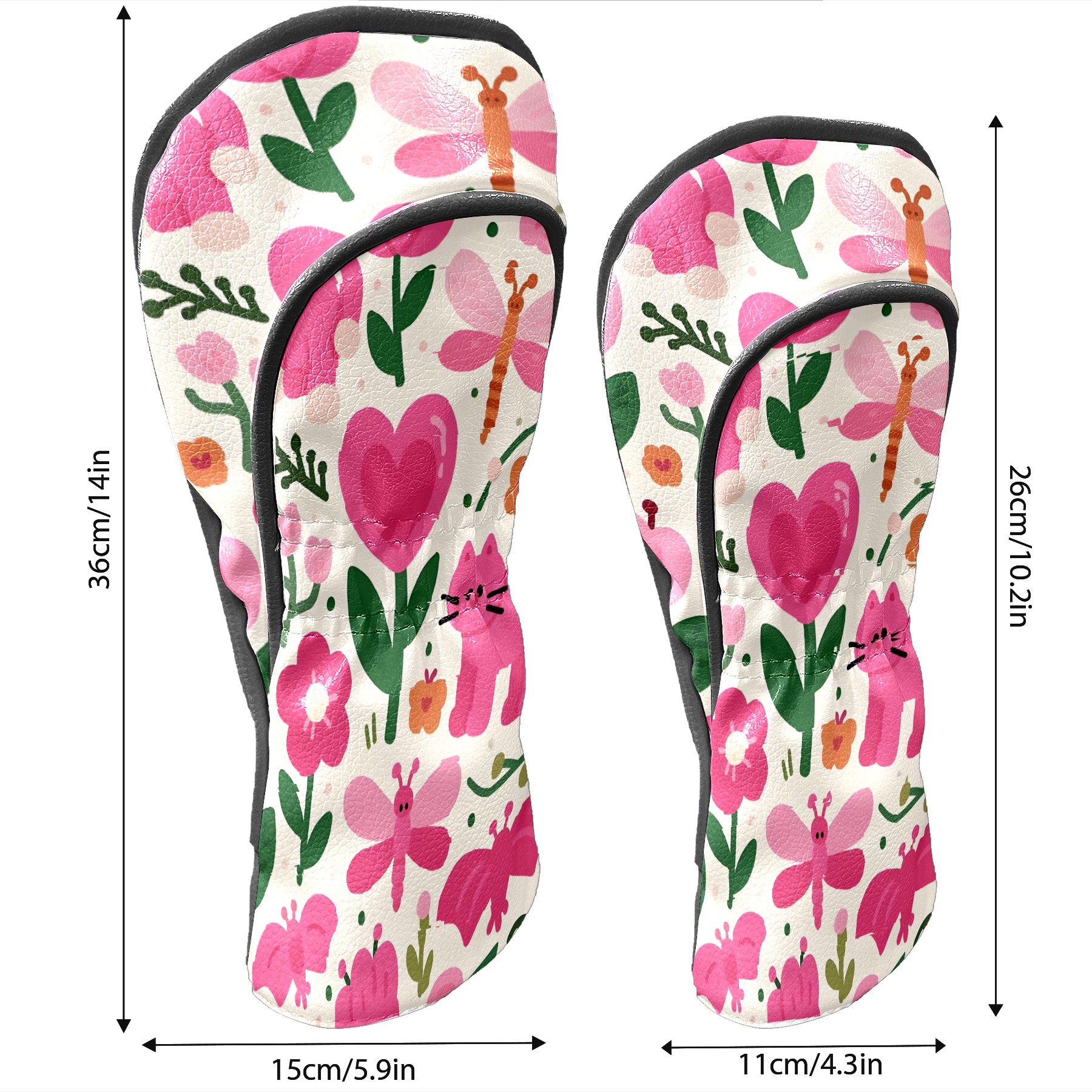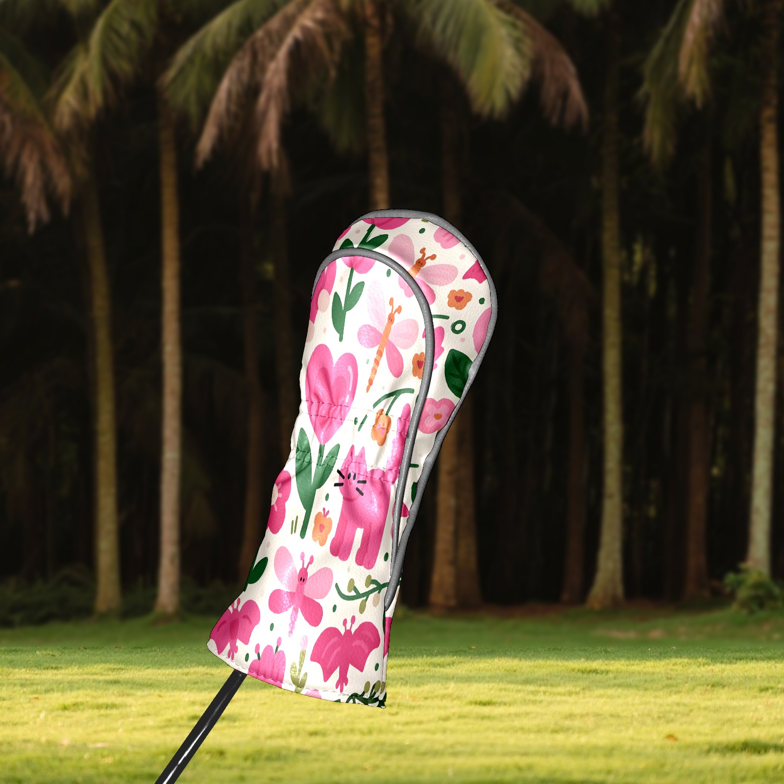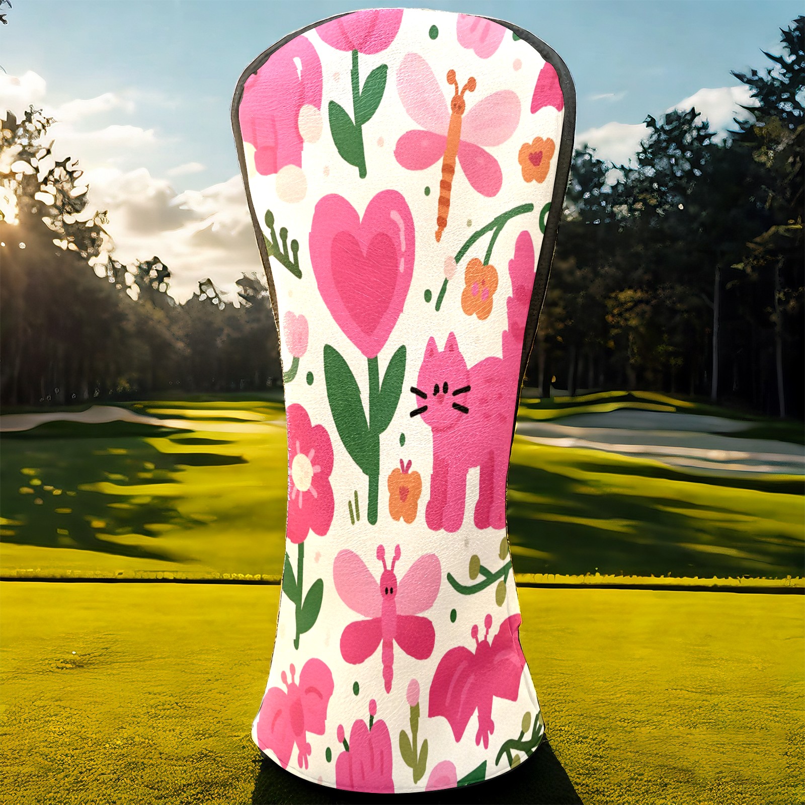Golf Club Head Covers Counullo for Driver & Fairway Woods Pink CatFlower Premium Plush Velvet Lining, Waterproof Golf Headcovers for Scratch Protection Novelty Gift for Men & Women