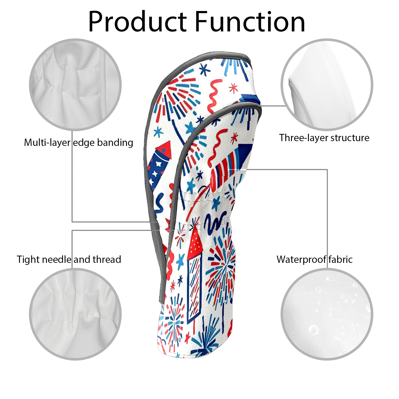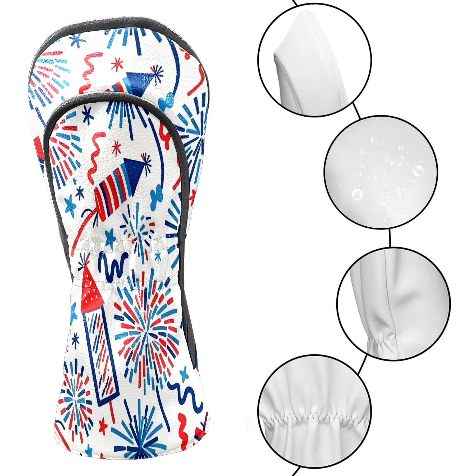 Golf Club Head Covers Counullo for Driver & Fairway Woods Red Firework Premium Plush Velvet Lining, Waterproof Golf Headcovers for Scratch Protection Novelty Gift for Men & Women