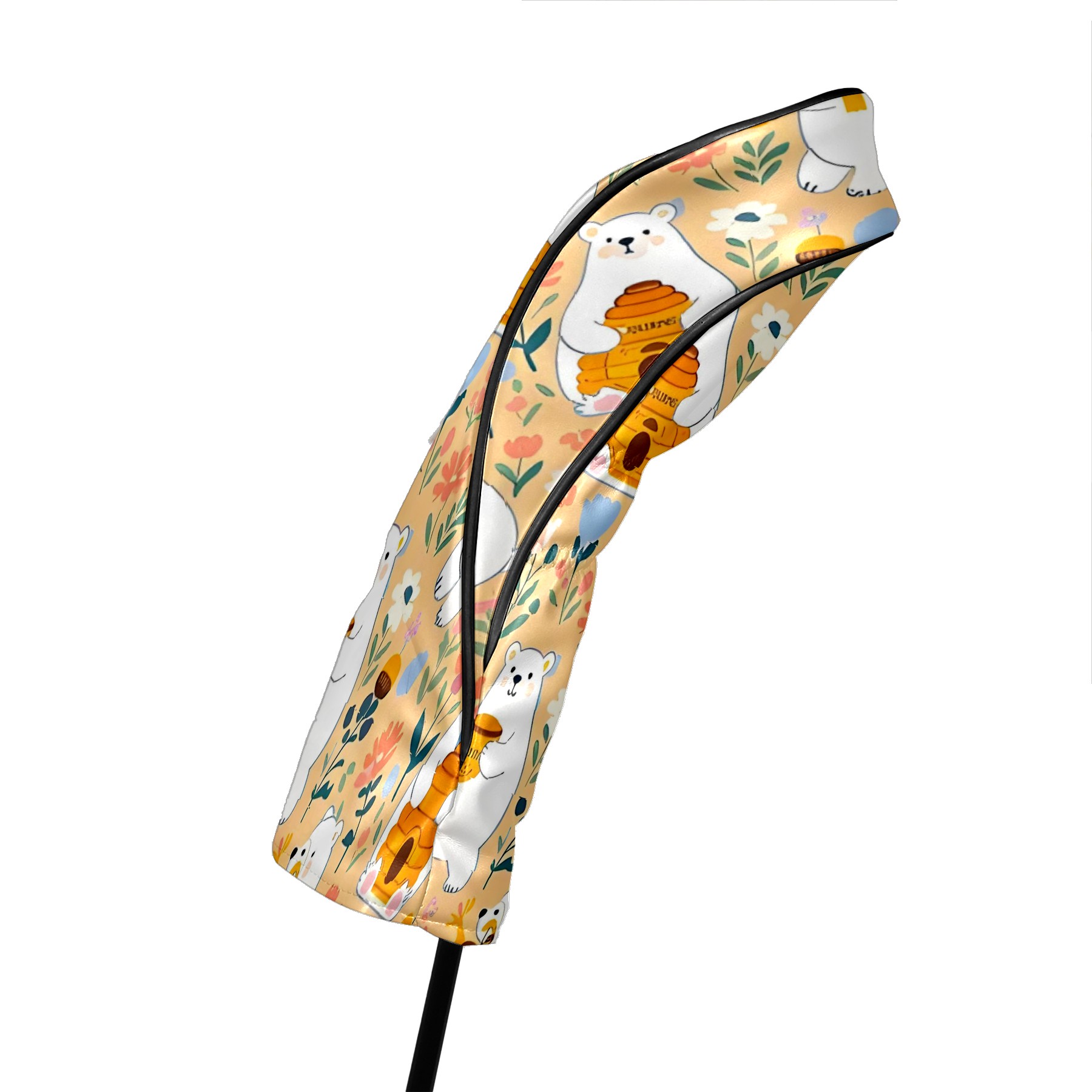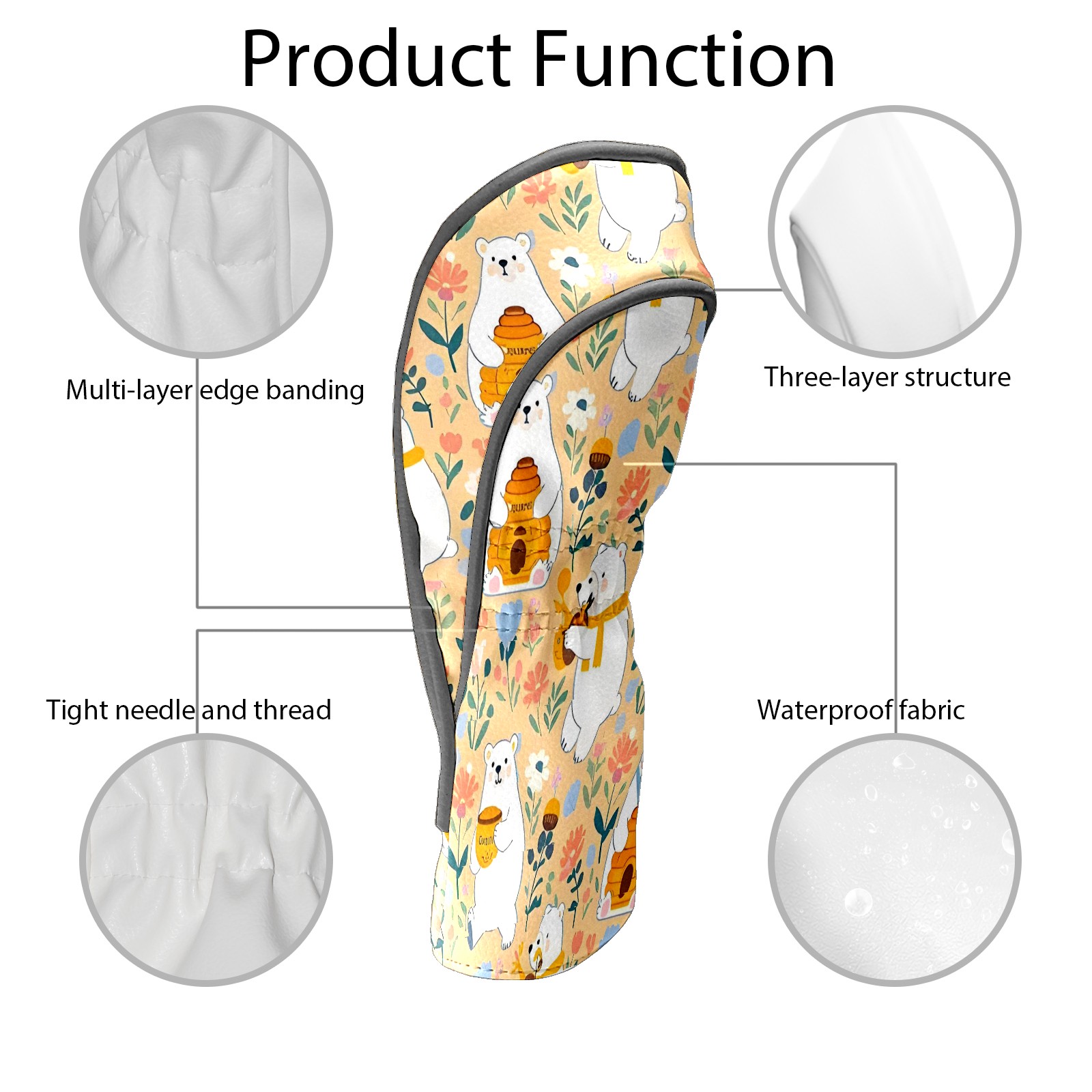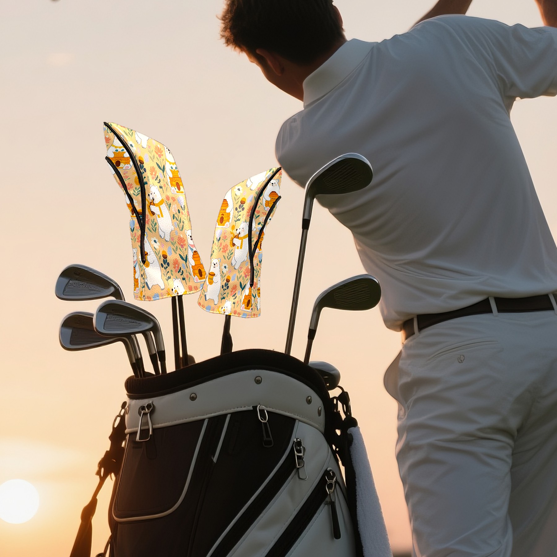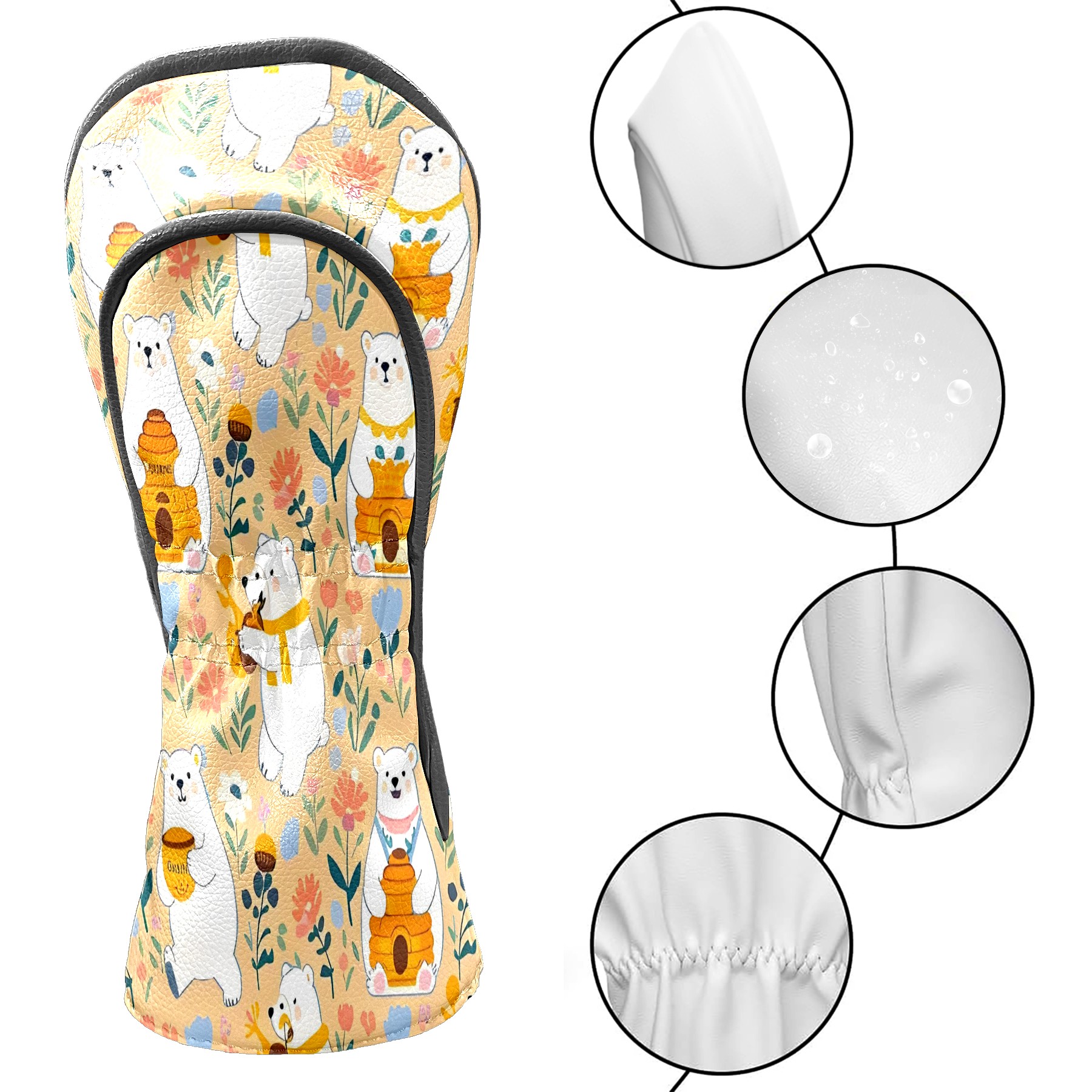 Golf Club Head Covers Counullo for Driver & Fairway Woods Yellow PolarBear Premium Plush Velvet Lining, Waterproof Golf Headcovers for Scratch Protection Novelty Gift for Men & Women