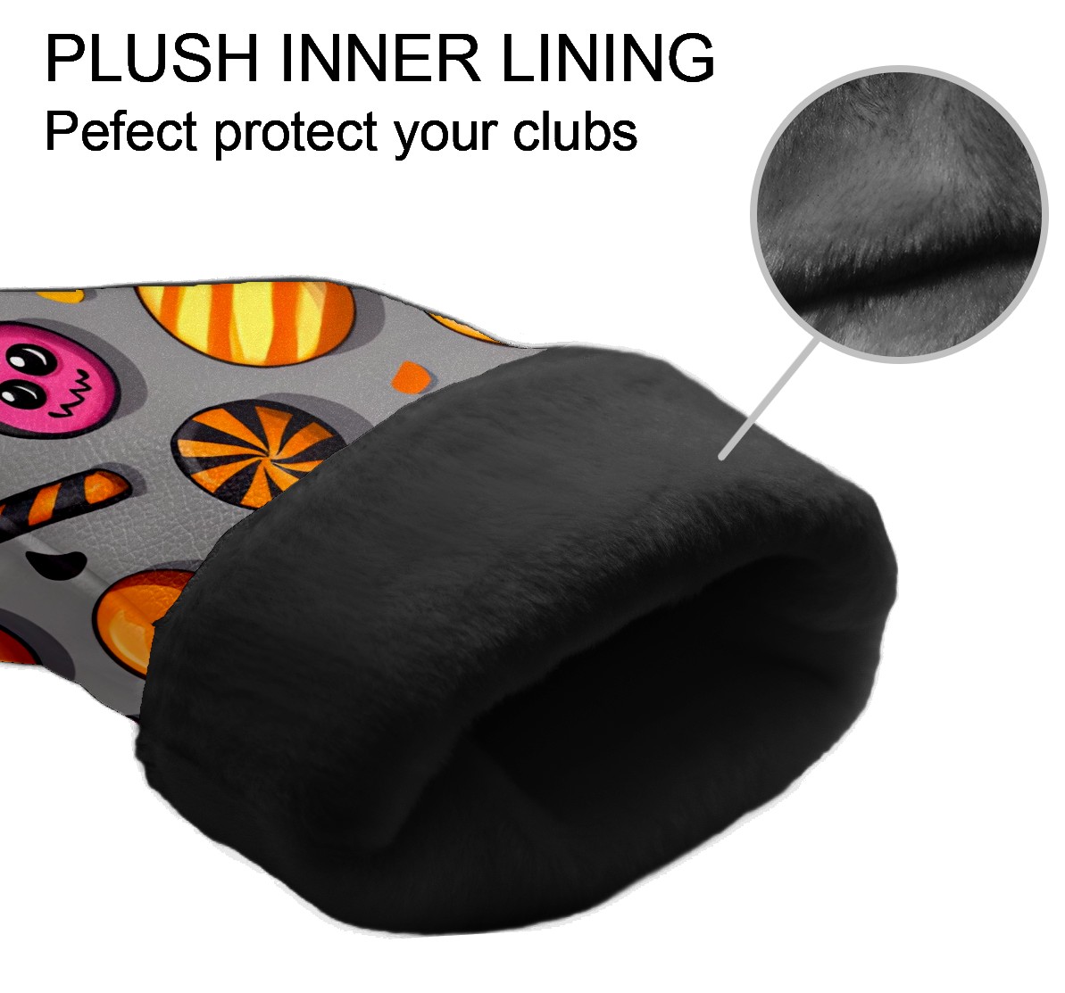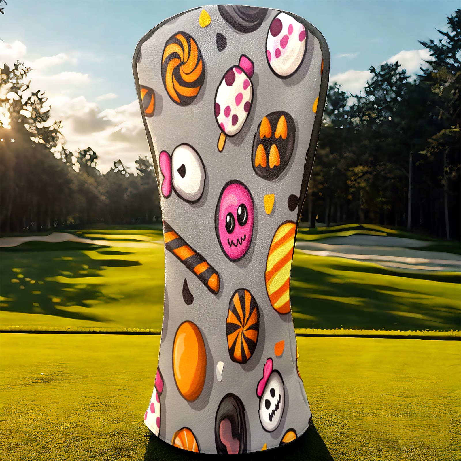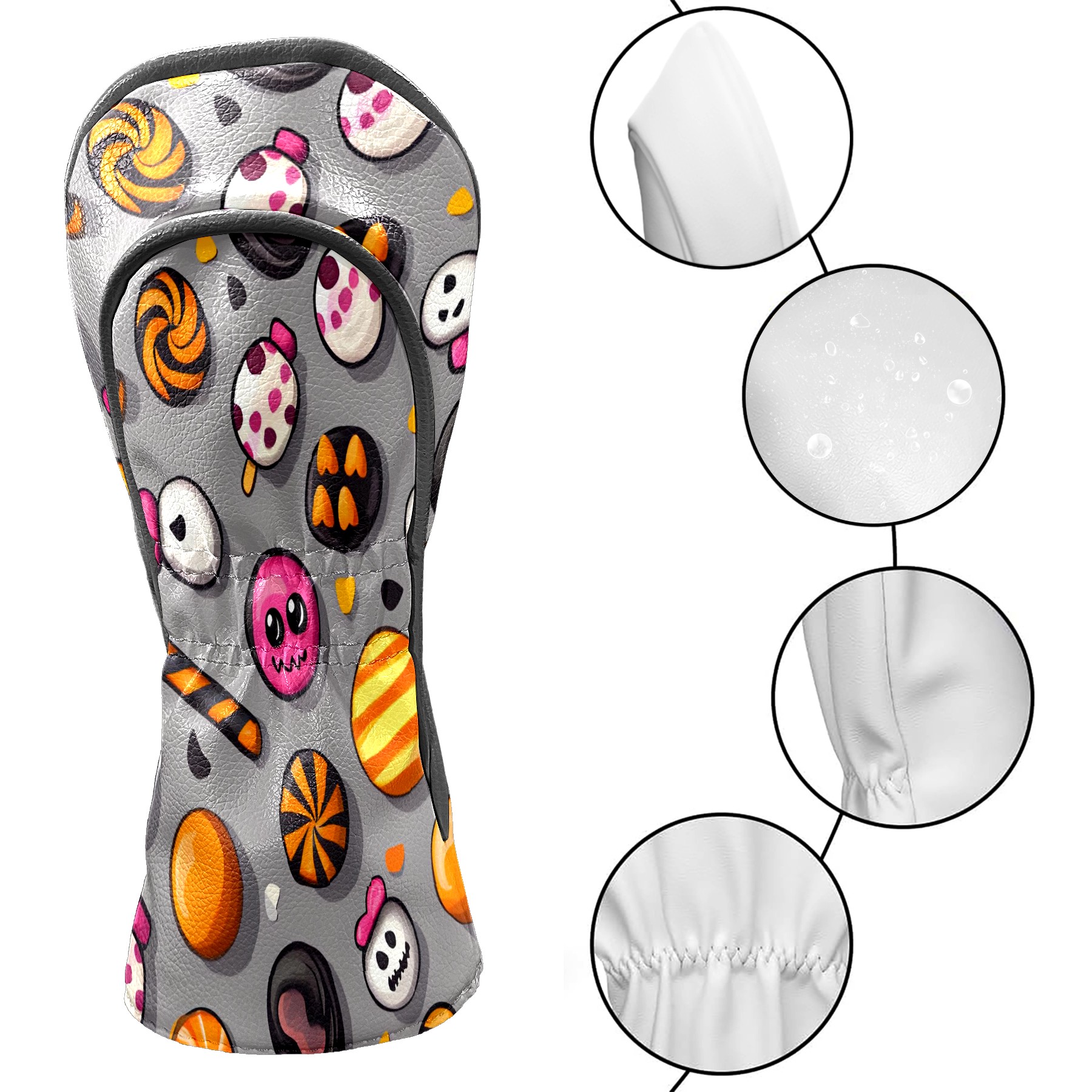 Golf Club Head Covers Counullo for Driver & Fairway Woods Gray HalloweenCandy Premium Plush Velvet Lining, Waterproof Golf Headcovers for Scratch Protection Novelty Gift for Men & Women