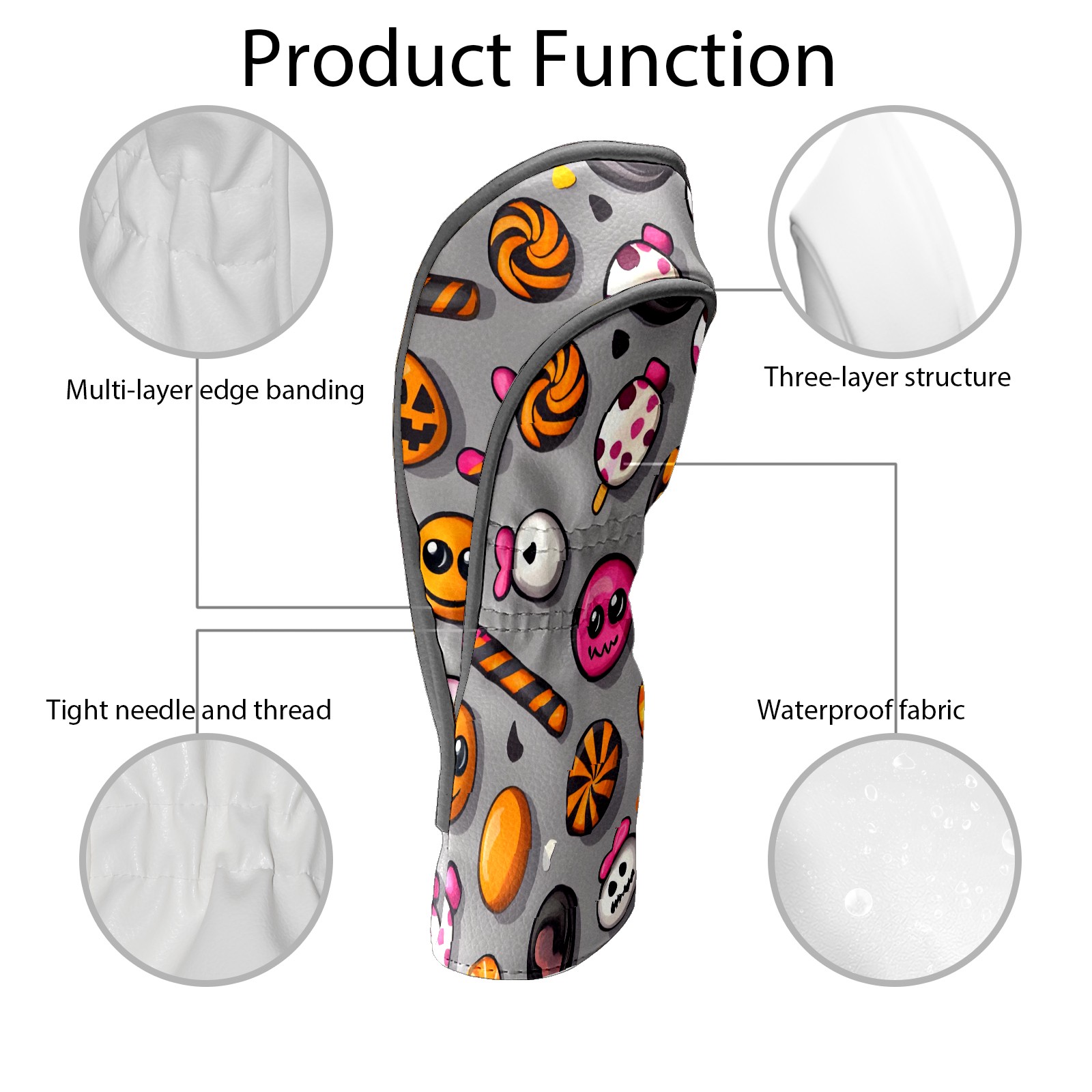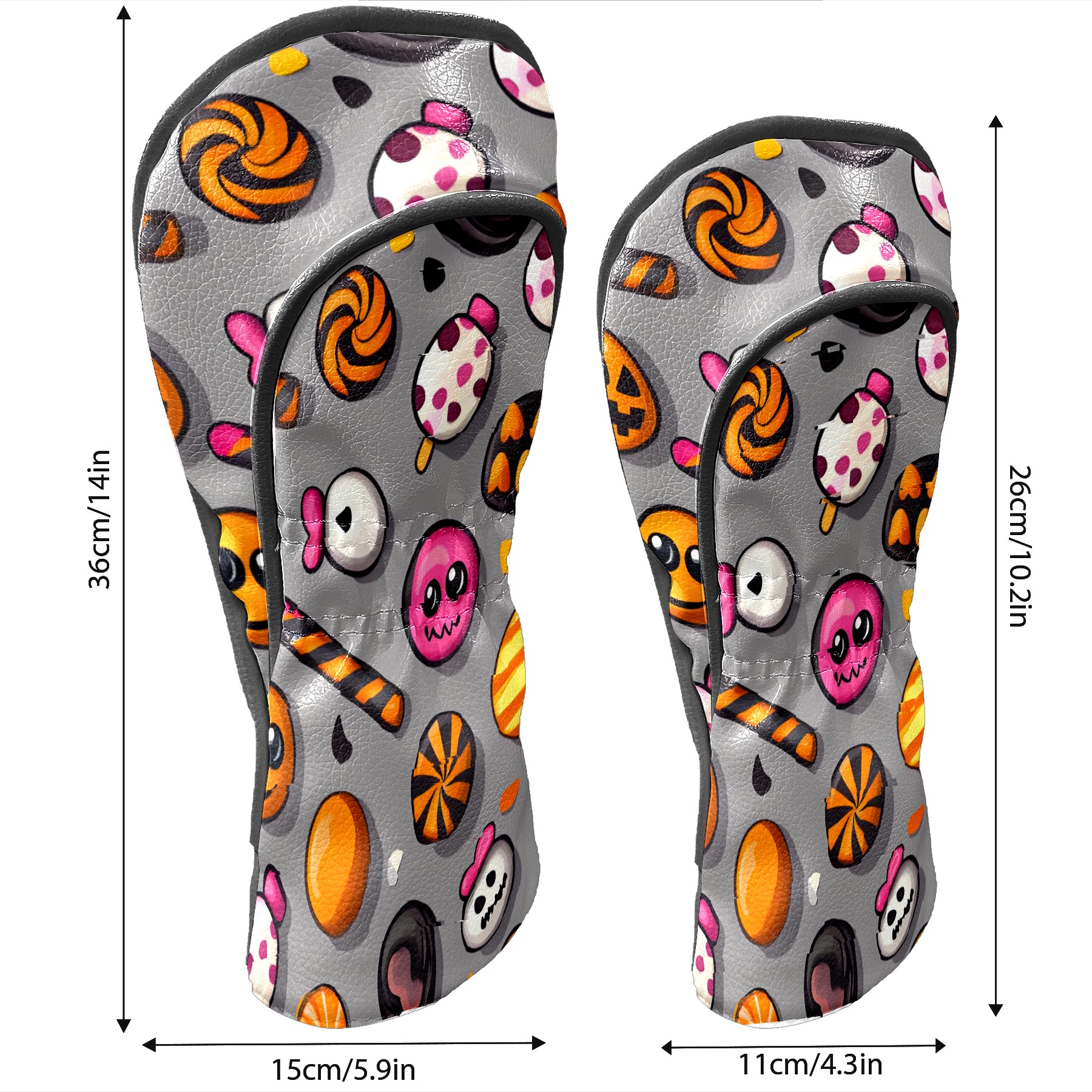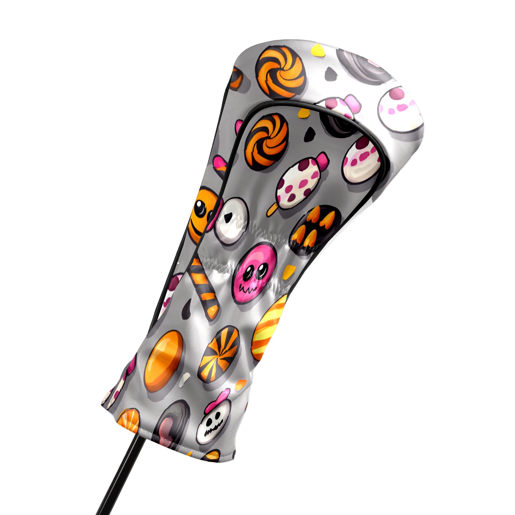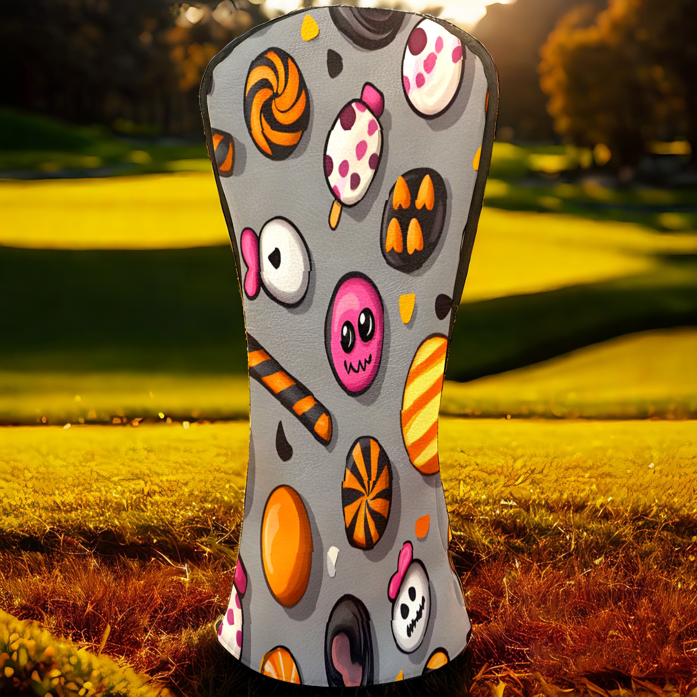 Golf Club Head Covers Counullo for Driver & Fairway Woods Gray HalloweenCandy Premium Plush Velvet Lining, Waterproof Golf Headcovers for Scratch Protection Novelty Gift for Men & Women