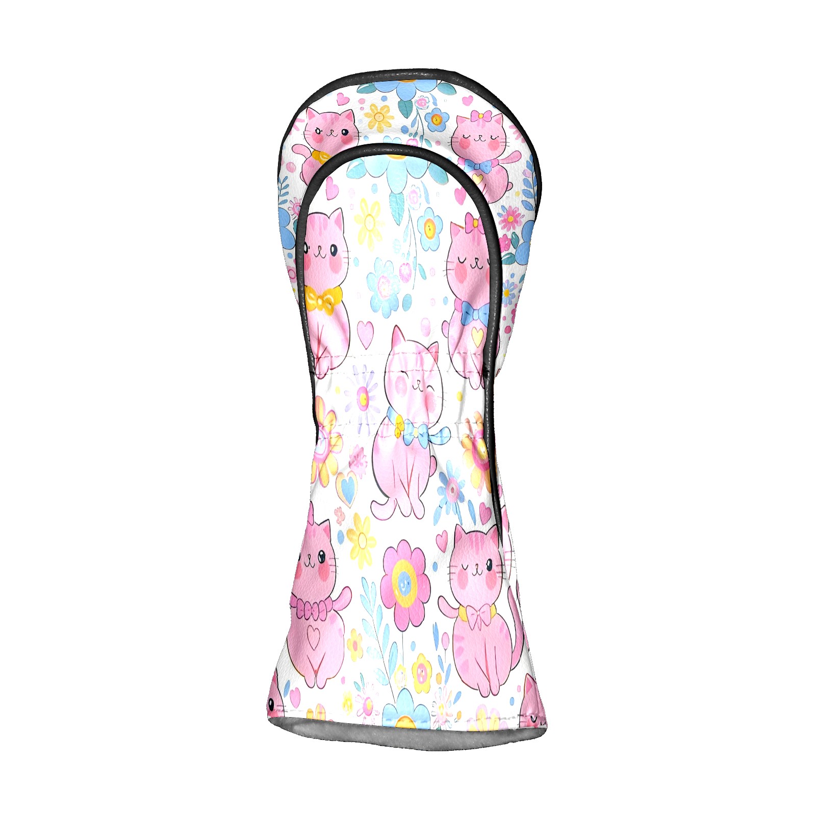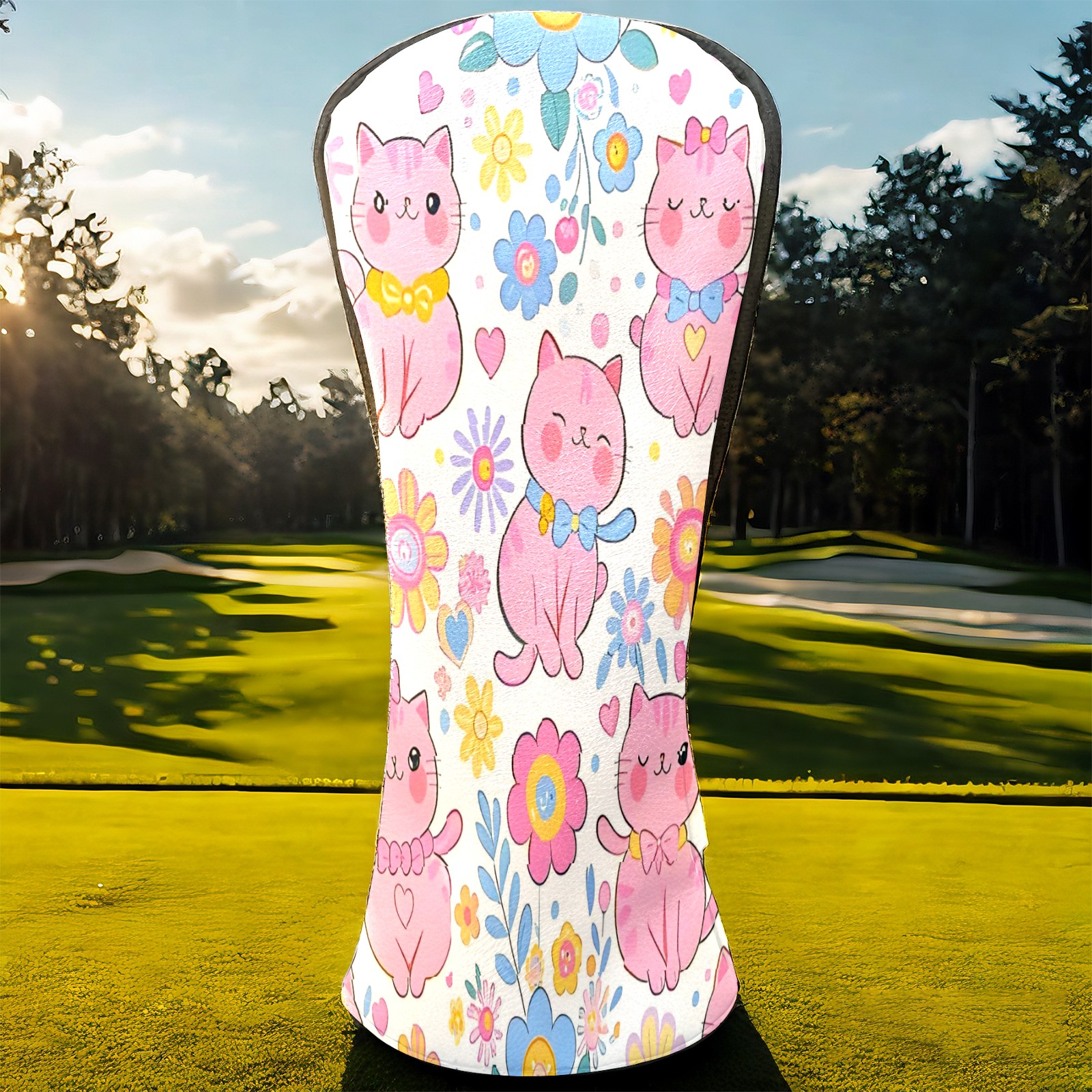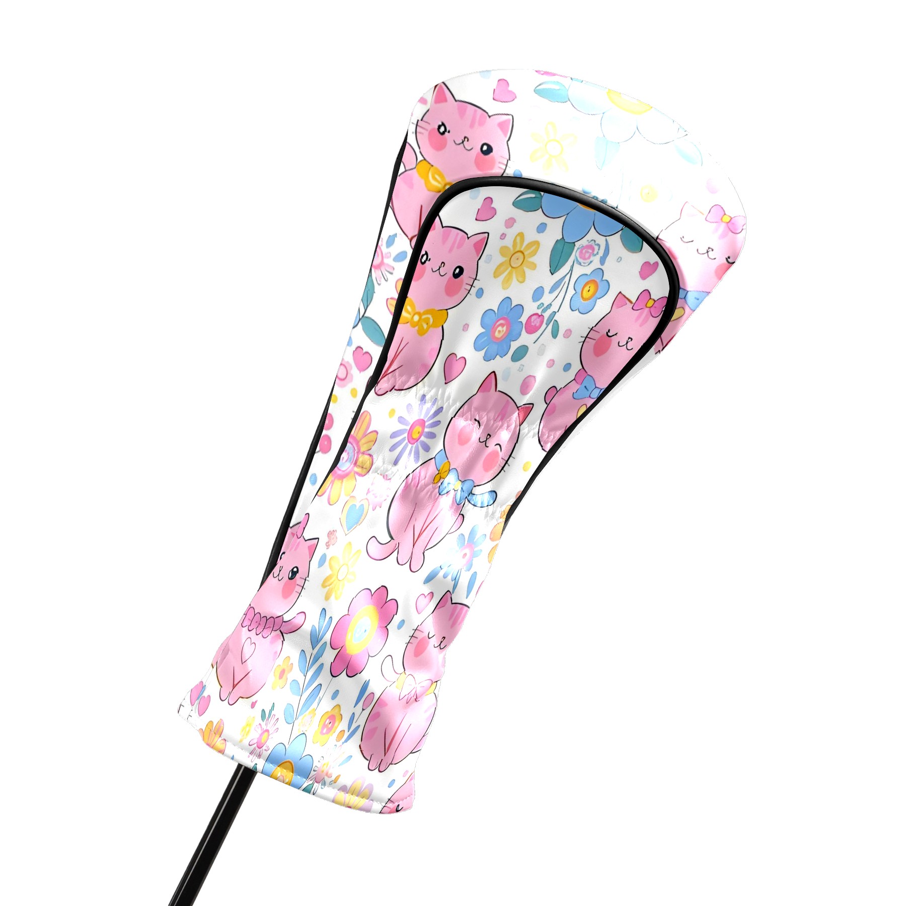 Golf Club Head Covers Counullo for Driver & Fairway Woods LightPink Cat Premium Plush Velvet Lining, Waterproof Golf Headcovers for Scratch Protection Novelty Gift for Men & Women