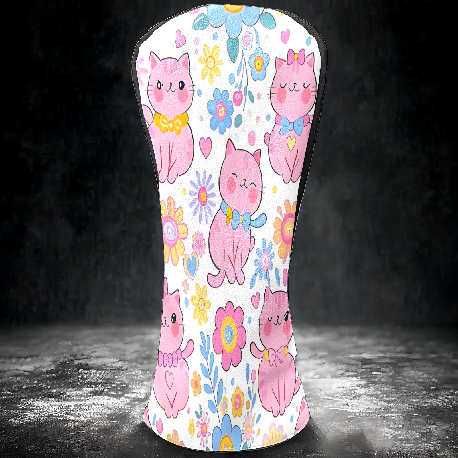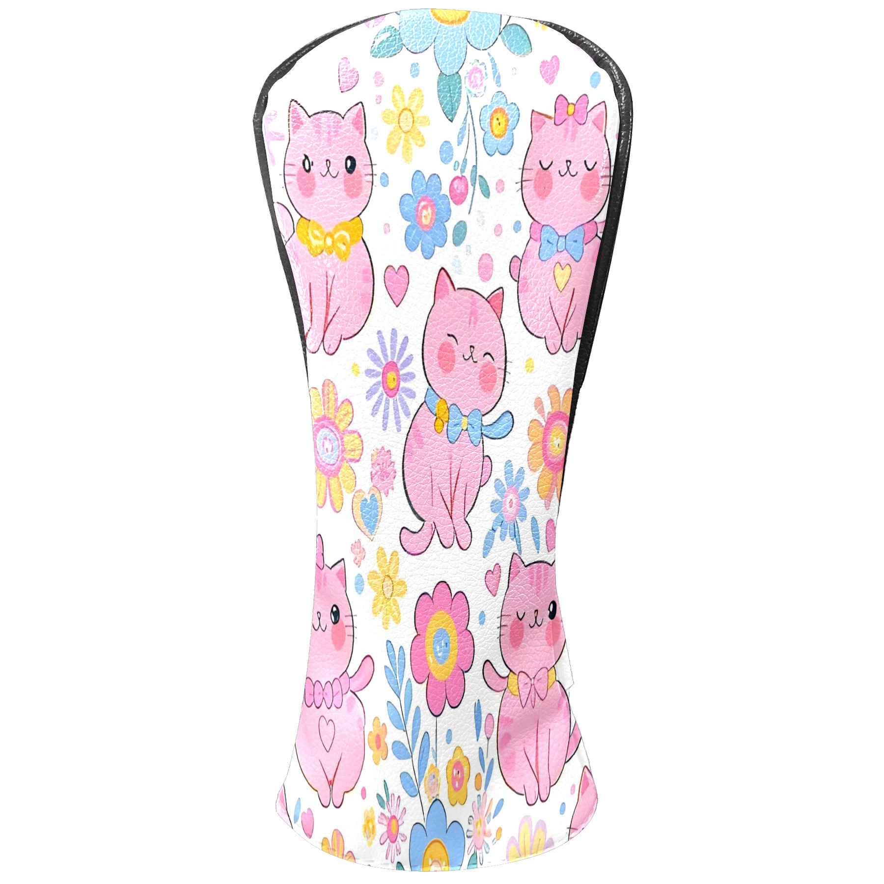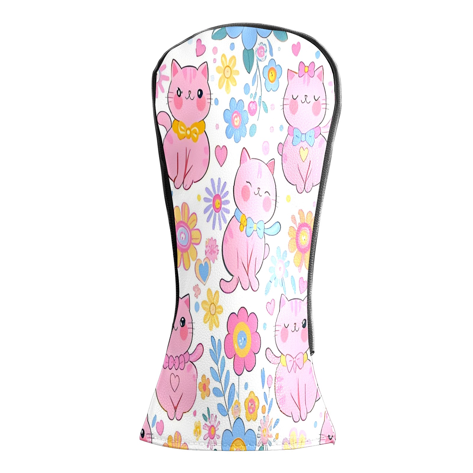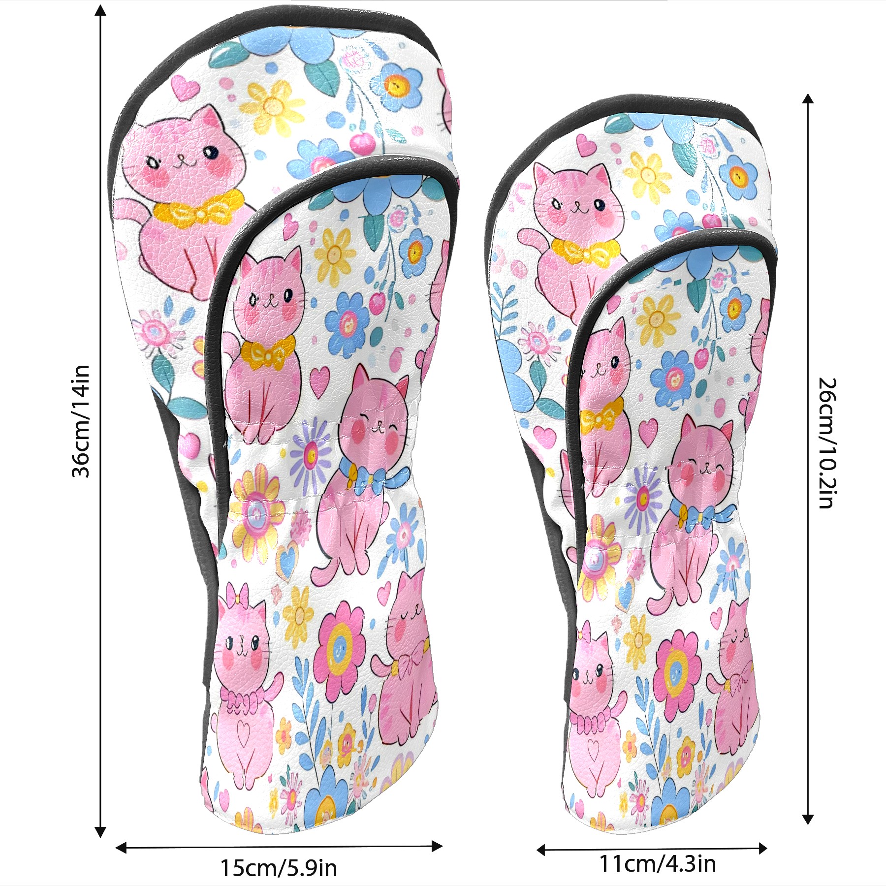 Golf Club Head Covers Counullo for Driver & Fairway Woods LightPink Cat Premium Plush Velvet Lining, Waterproof Golf Headcovers for Scratch Protection Novelty Gift for Men & Women