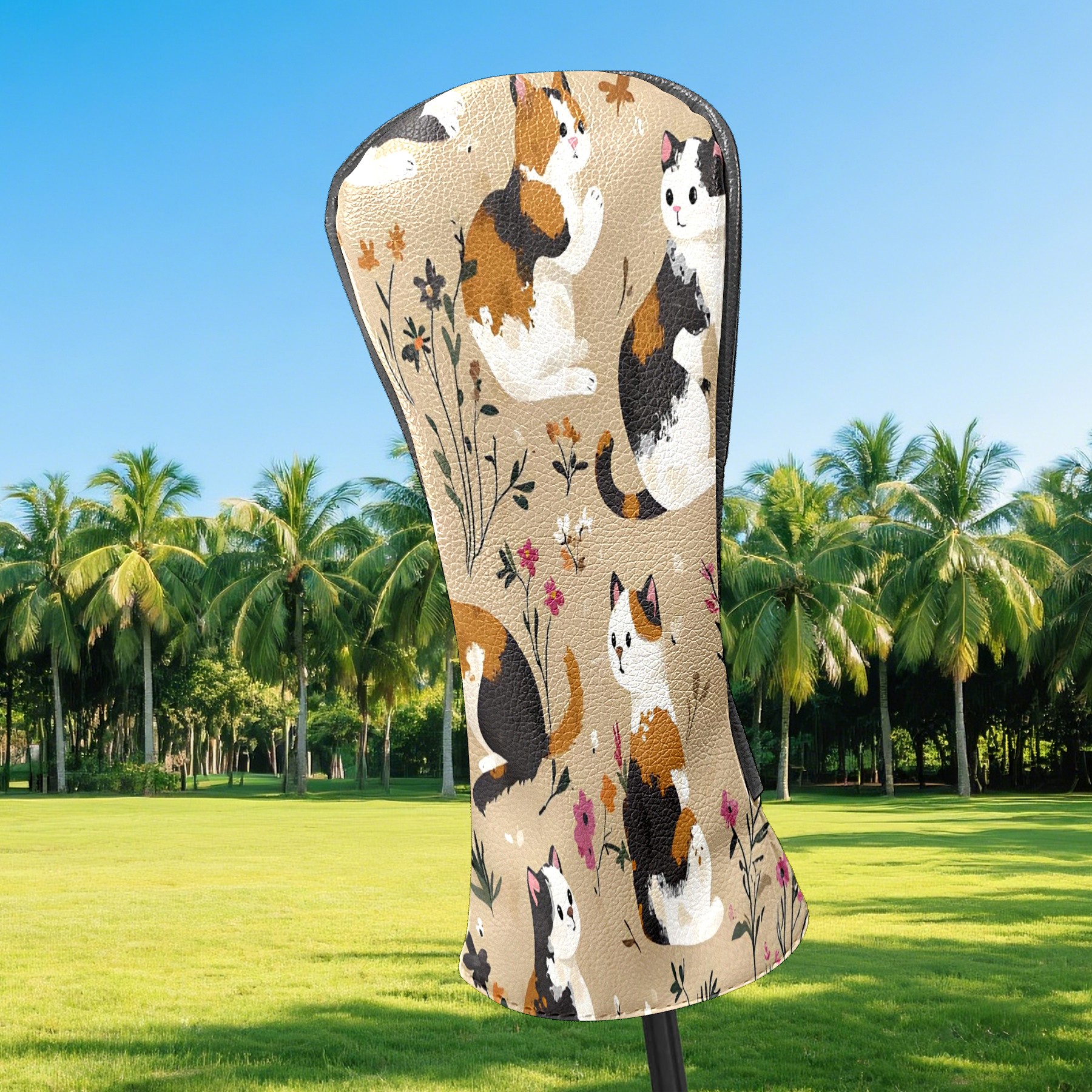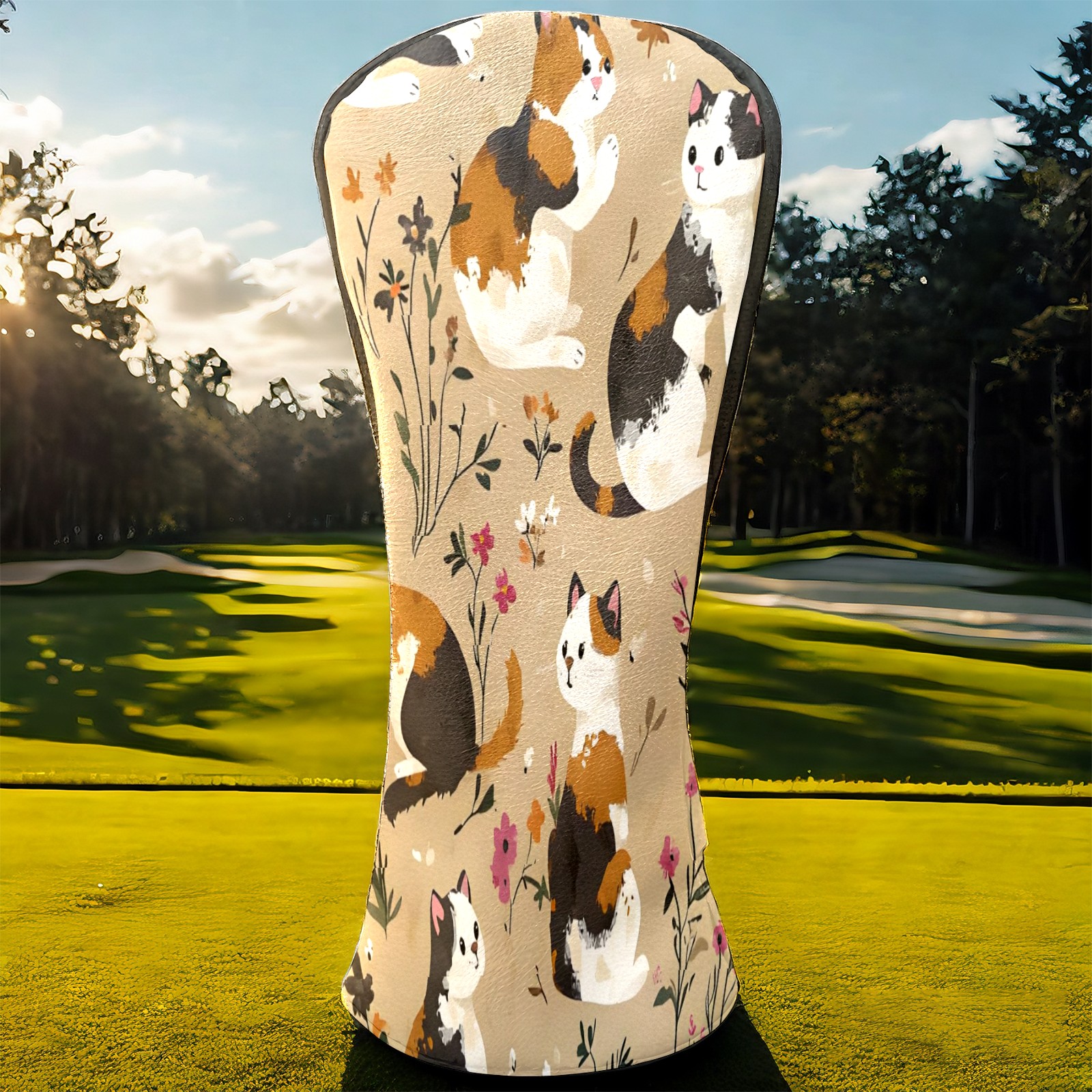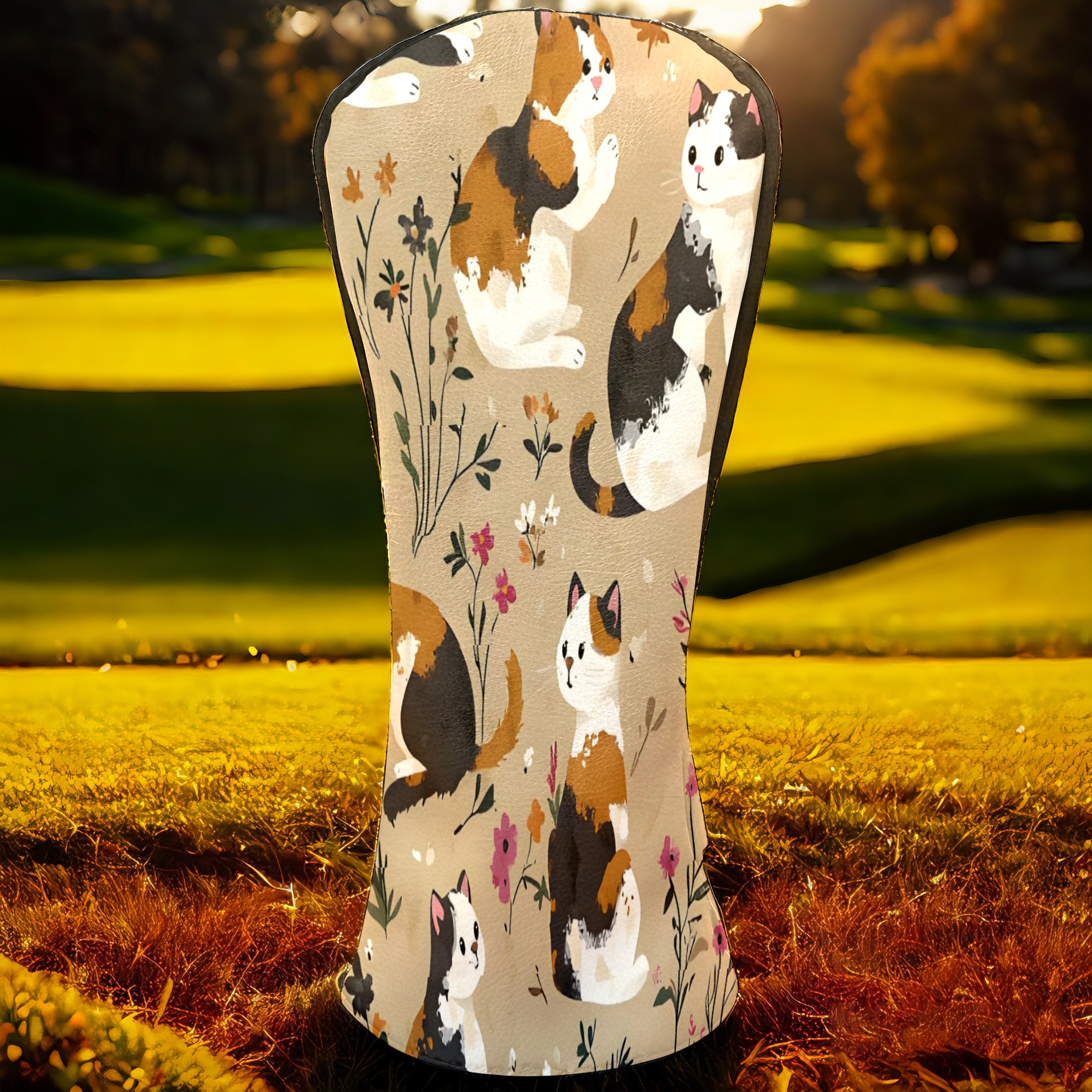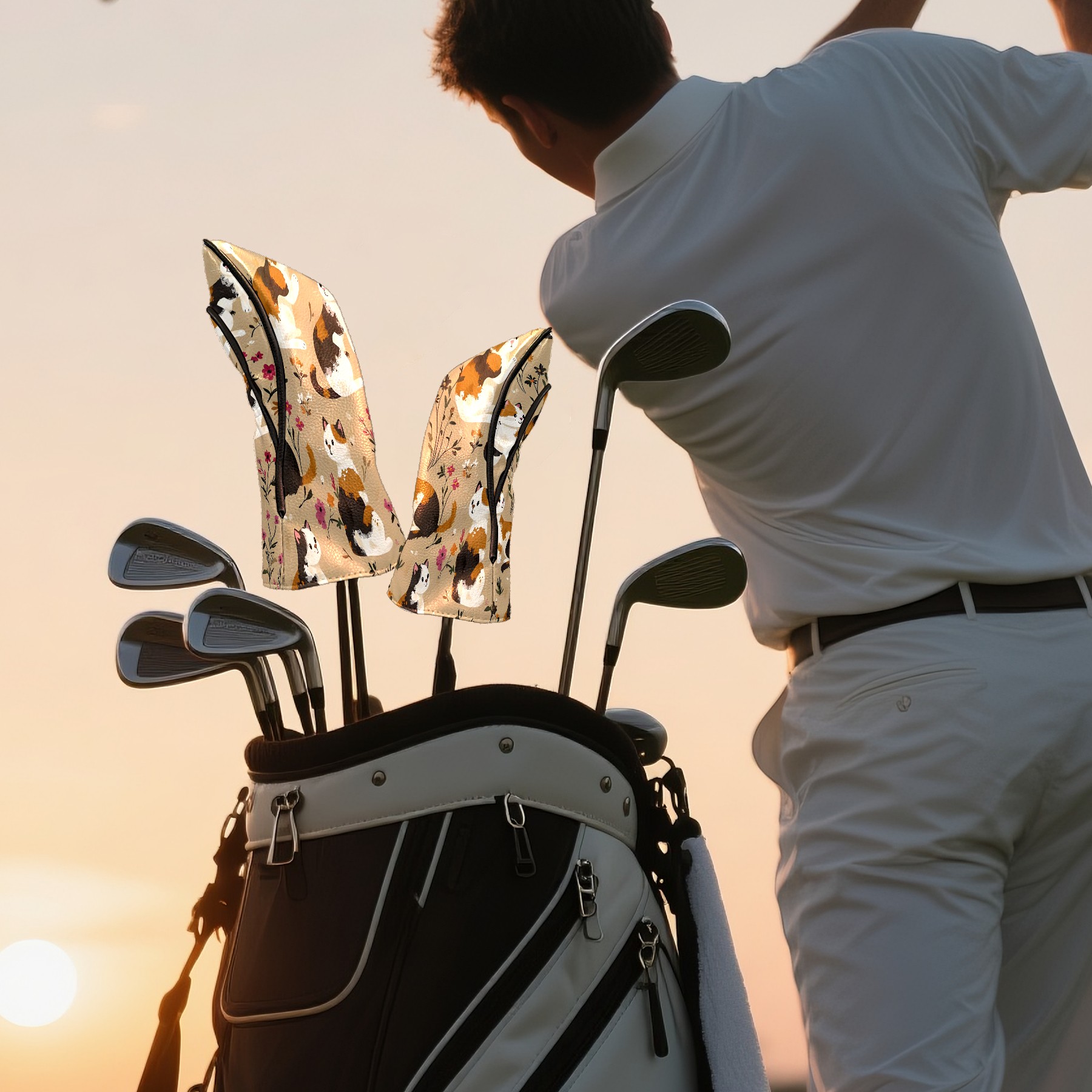 Golf Club Head Covers Counullo for Driver & Fairway Woods Khaki Cat Premium Plush Velvet Lining, Waterproof Golf Headcovers for Scratch Protection Novelty Gift for Men & Women