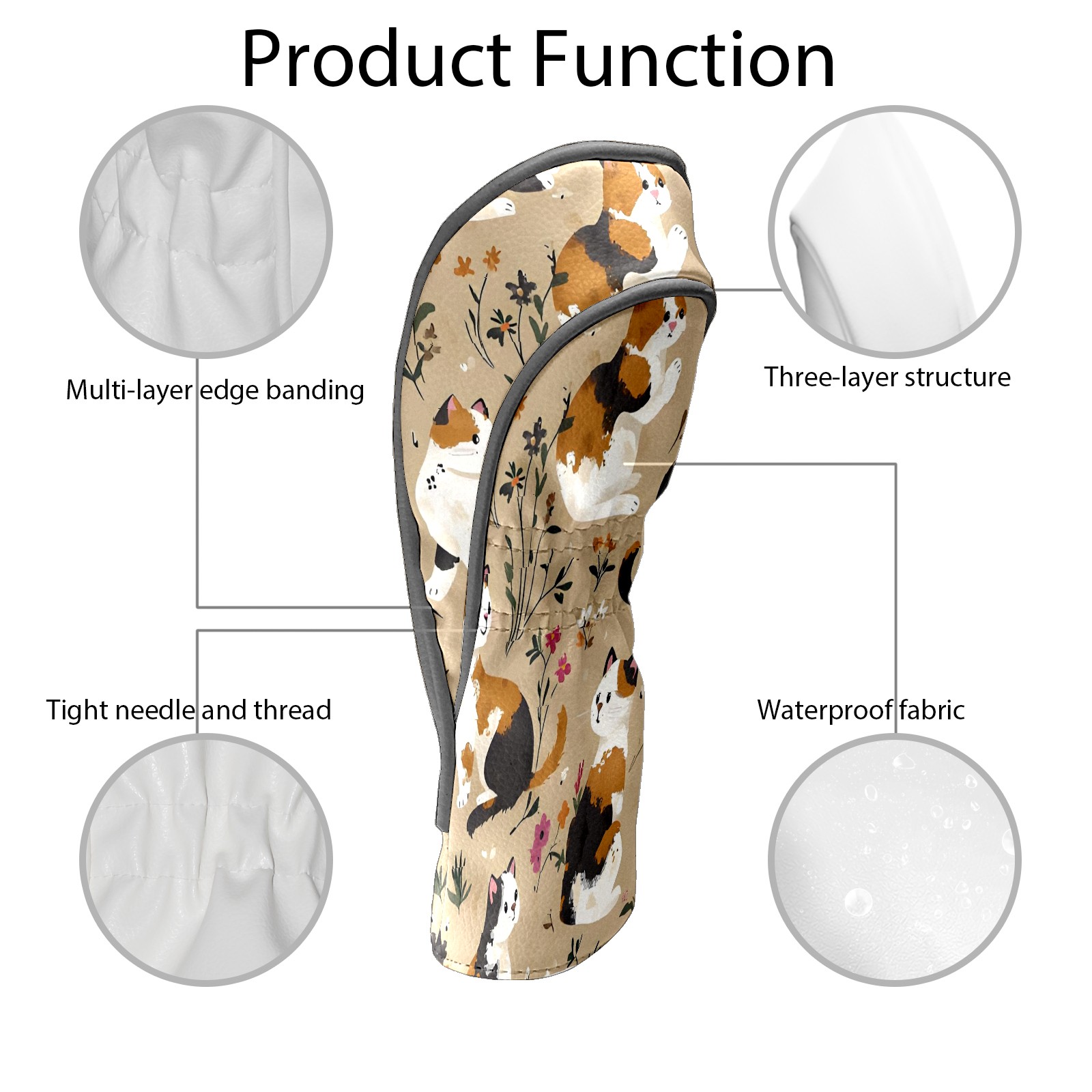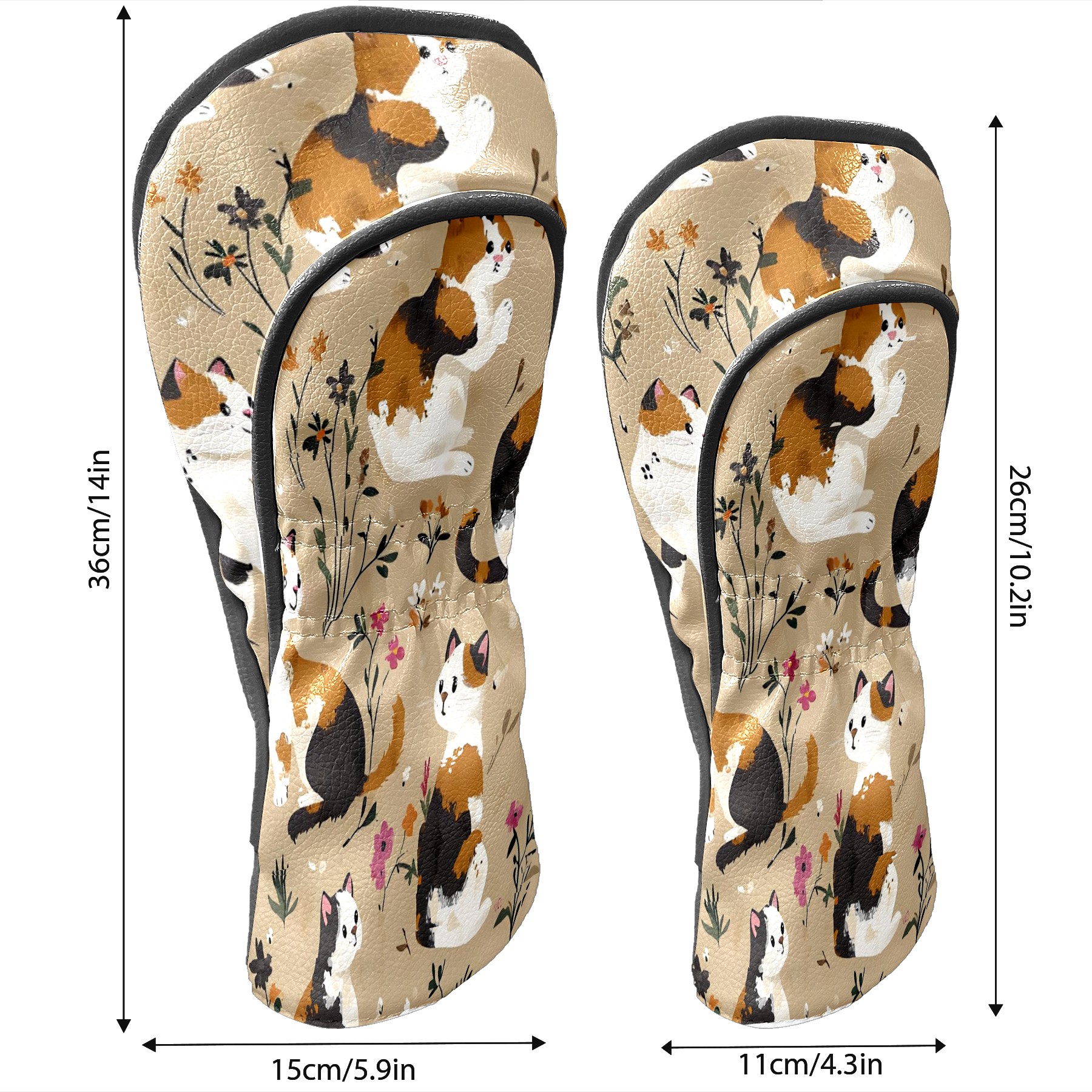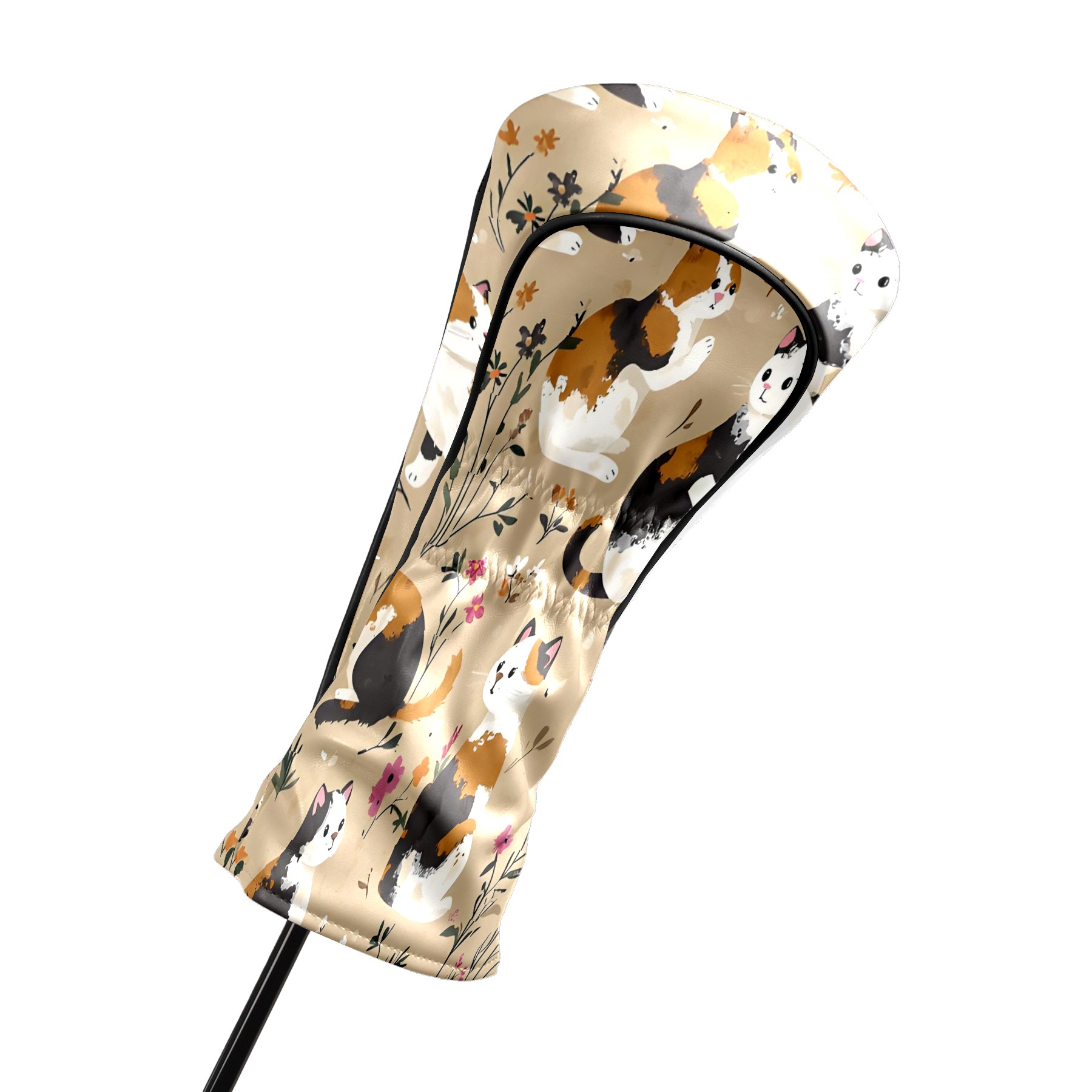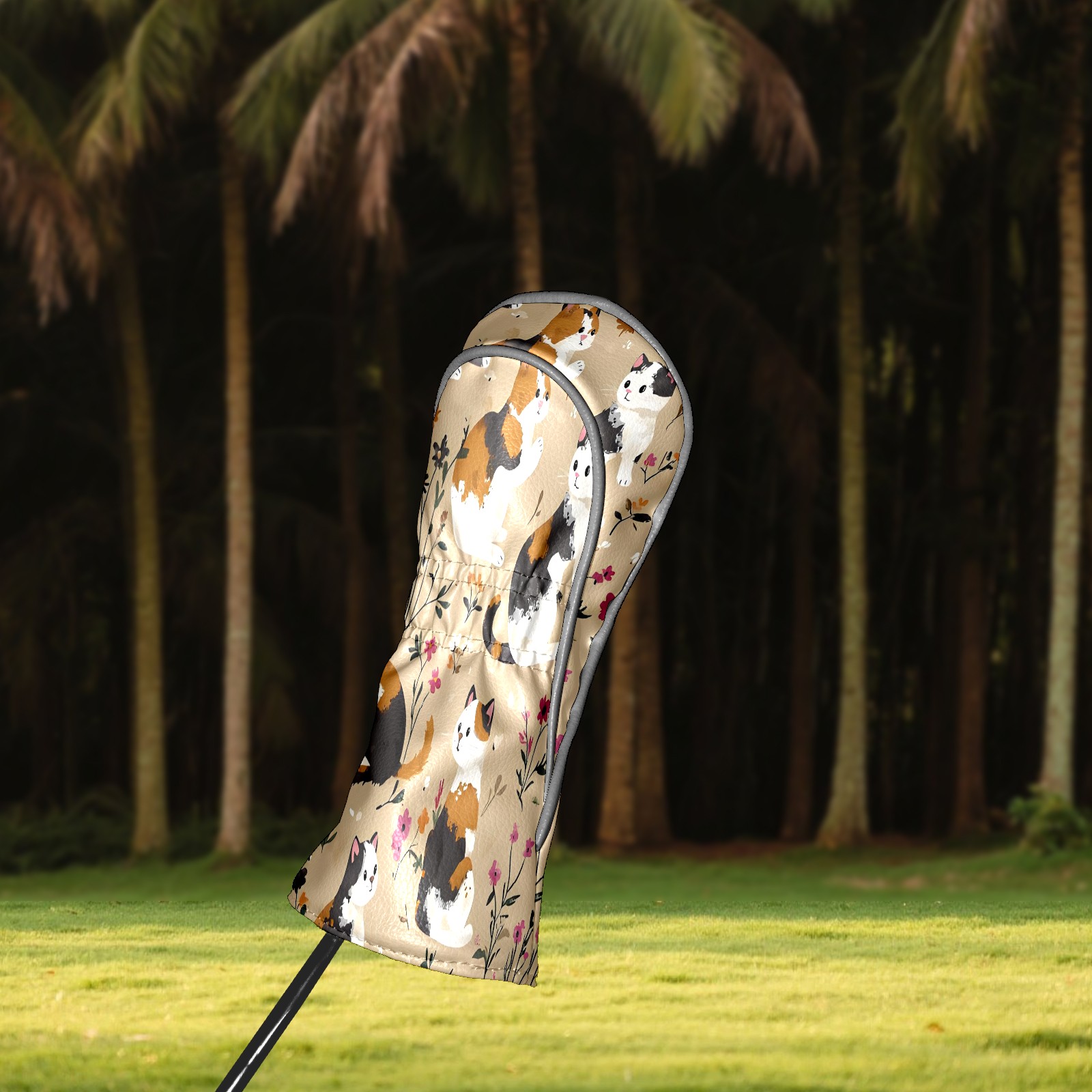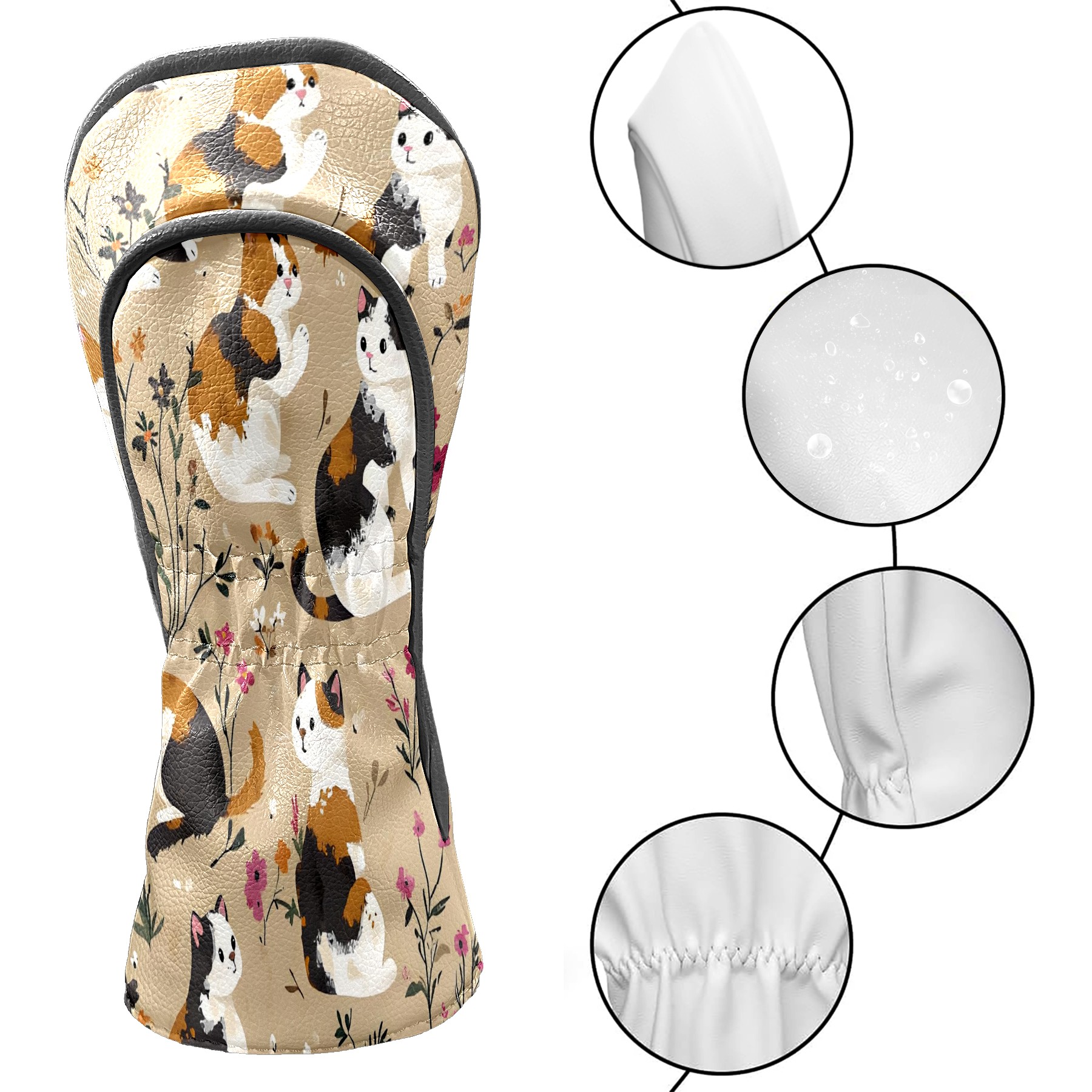 Golf Club Head Covers Counullo for Driver & Fairway Woods Khaki Cat Premium Plush Velvet Lining, Waterproof Golf Headcovers for Scratch Protection Novelty Gift for Men & Women