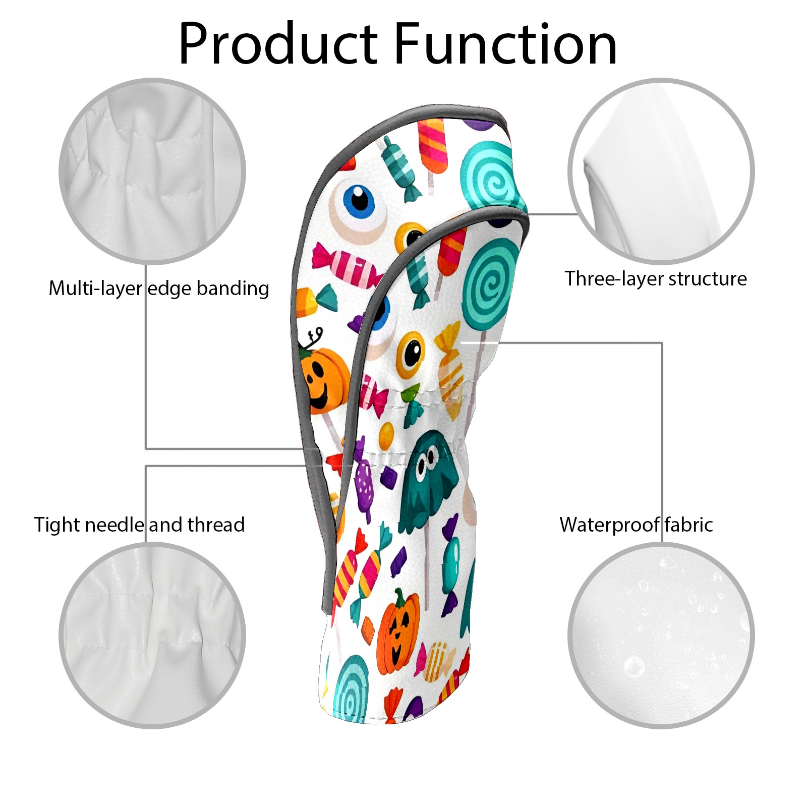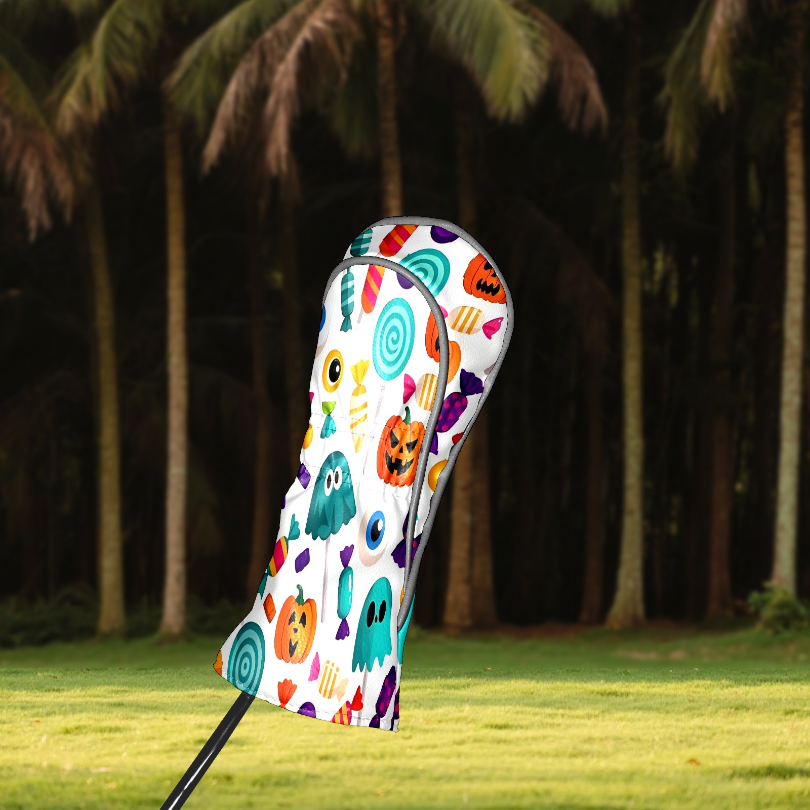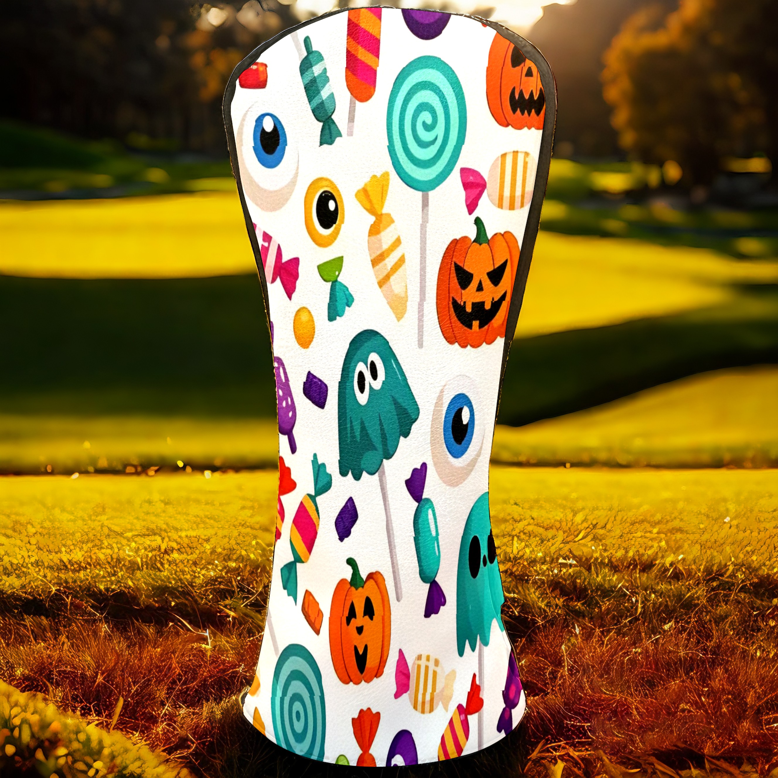 Golf Club Head Covers Counullo for Driver & Fairway Woods Purple HalloweenCandy Premium Plush Velvet Lining, Waterproof Golf Headcovers for Scratch Protection Novelty Gift for Men & Women