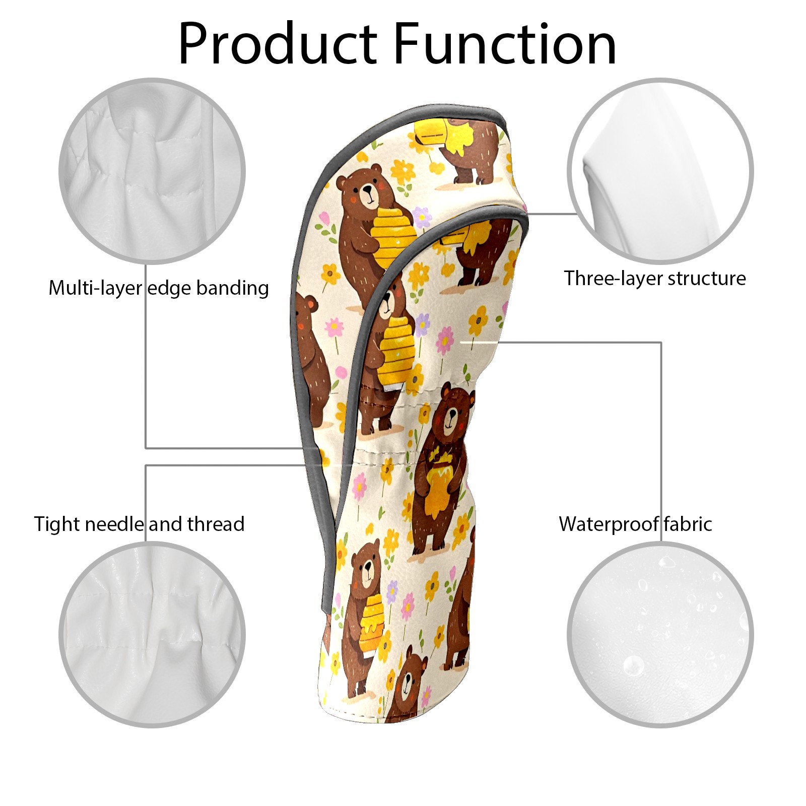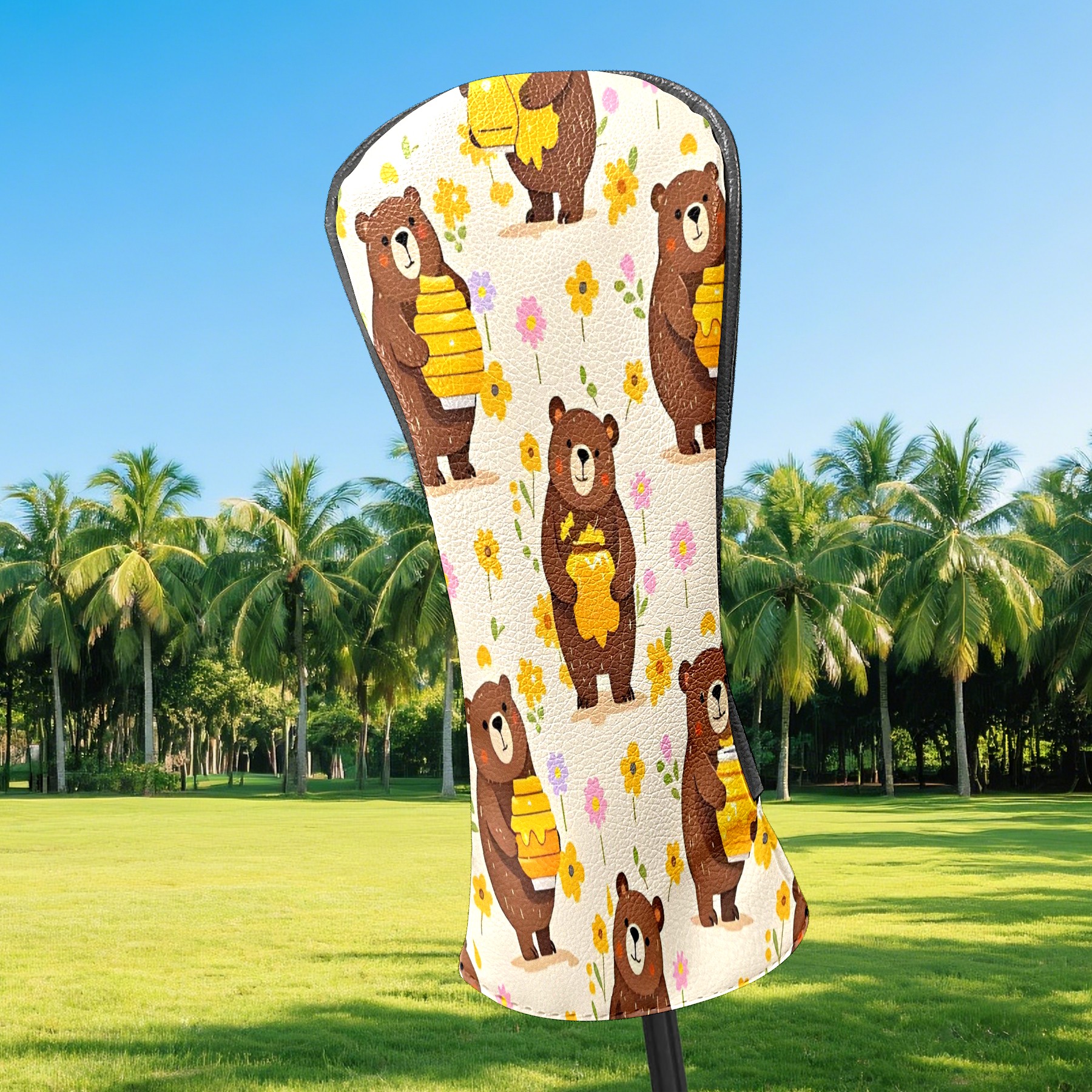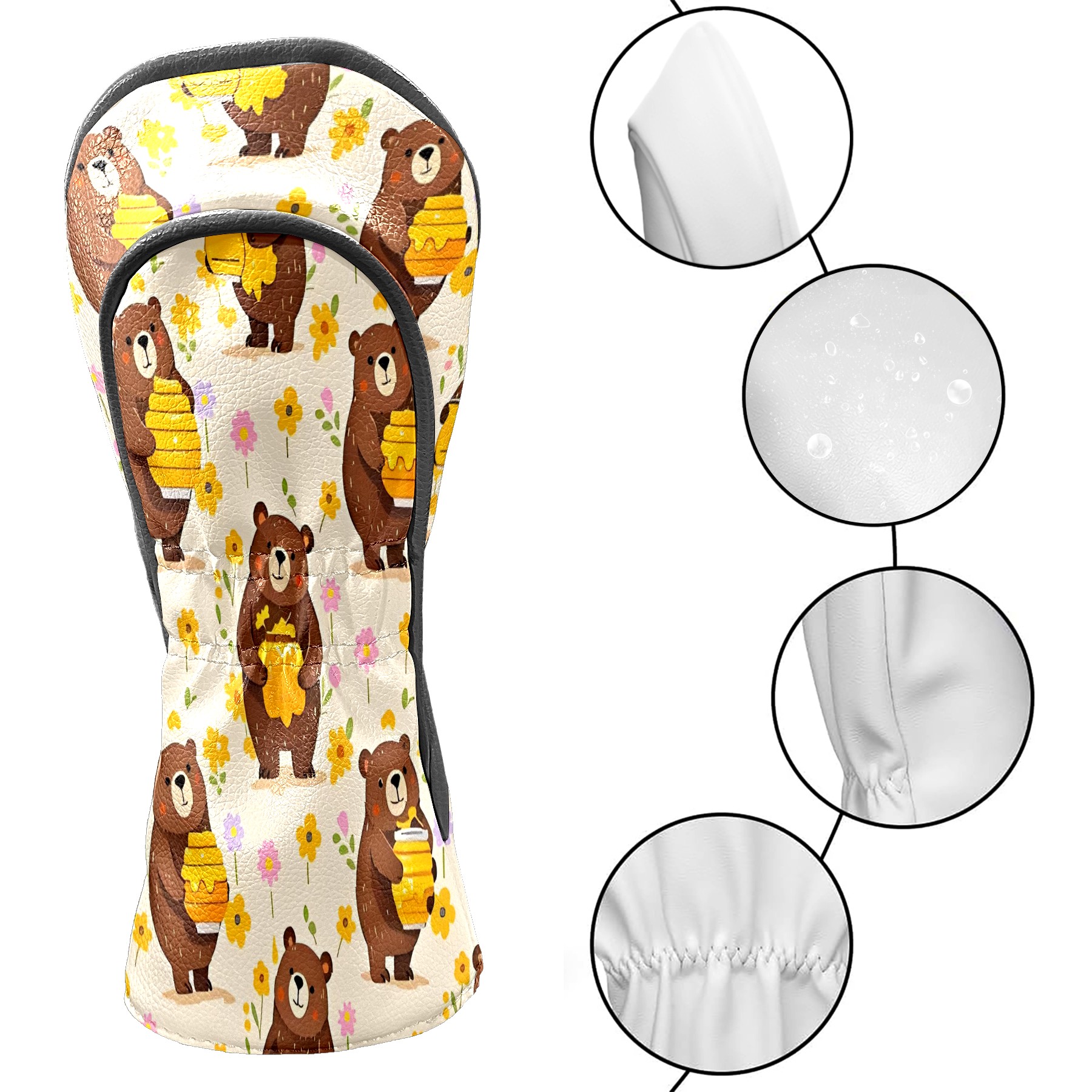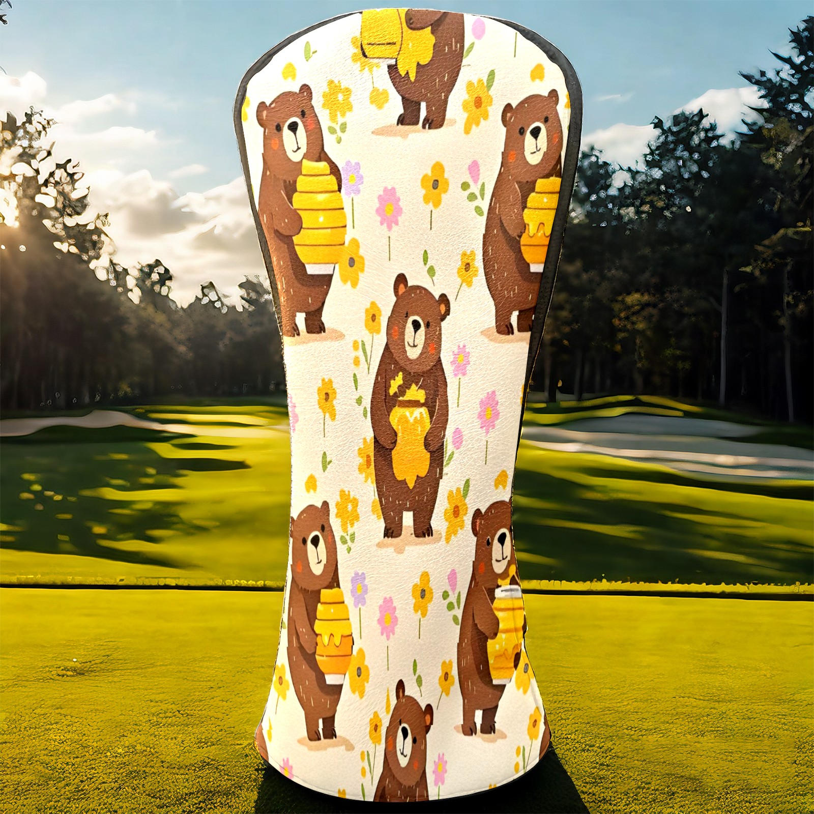 Golf Club Head Covers Counullo for Driver & Fairway Woods Brown BearHoney Premium Plush Velvet Lining, Waterproof Golf Headcovers for Scratch Protection Novelty Gift for Men & Women