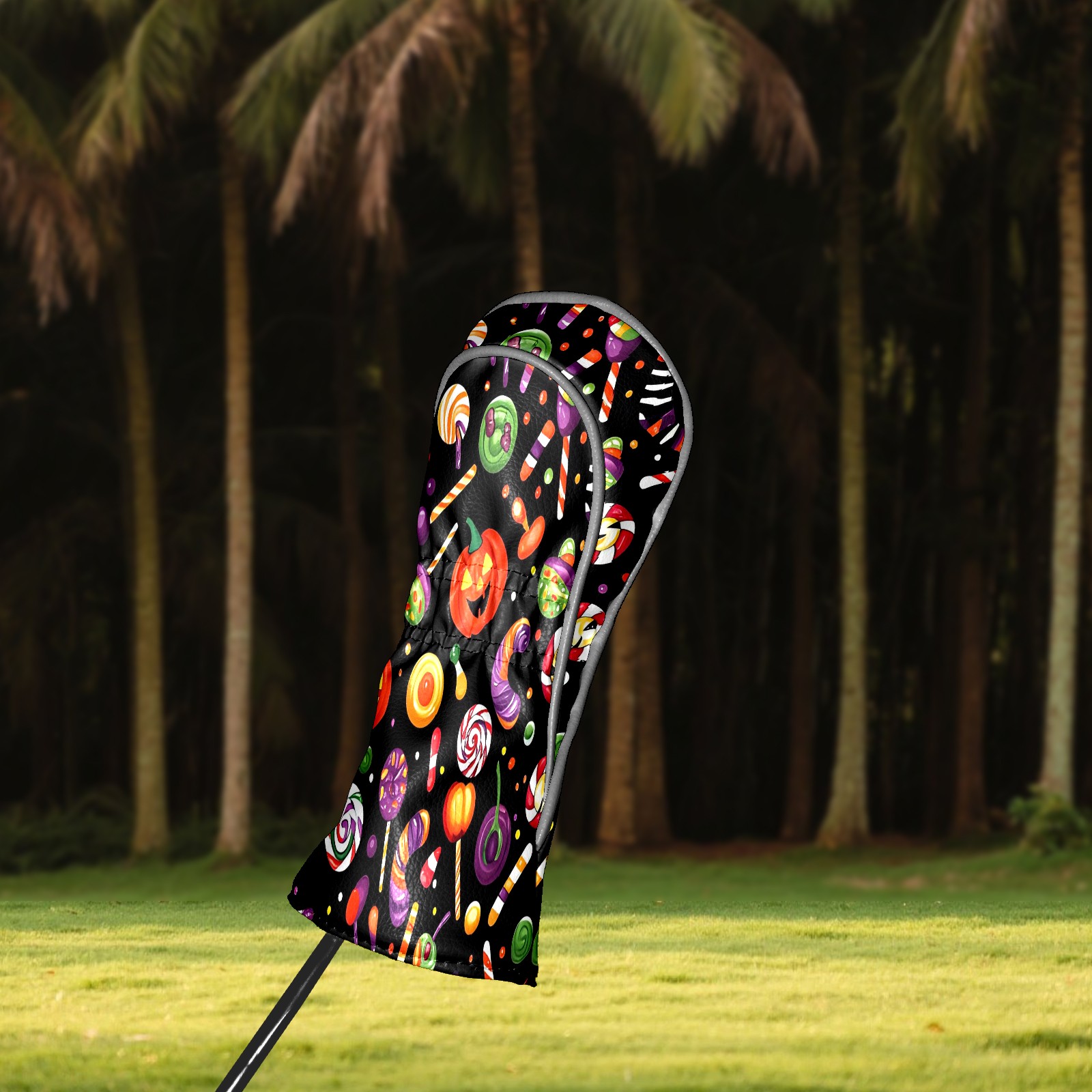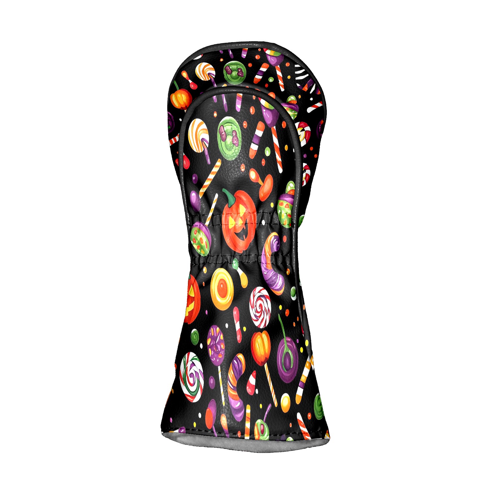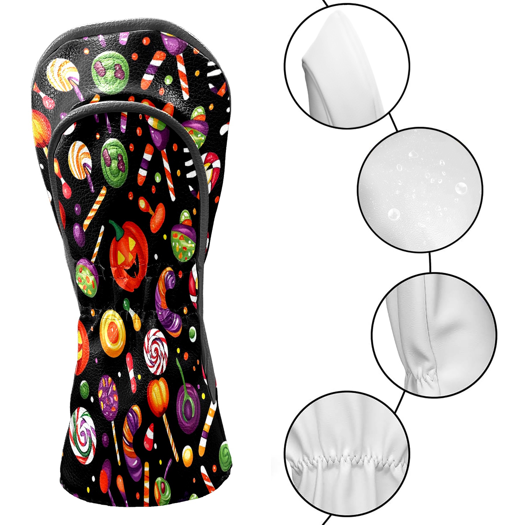 Golf Club Head Covers Counullo for Driver & Fairway Woods Black HalloweenCandy Premium Plush Velvet Lining, Waterproof Golf Headcovers for Scratch Protection Novelty Gift for Men & Women
