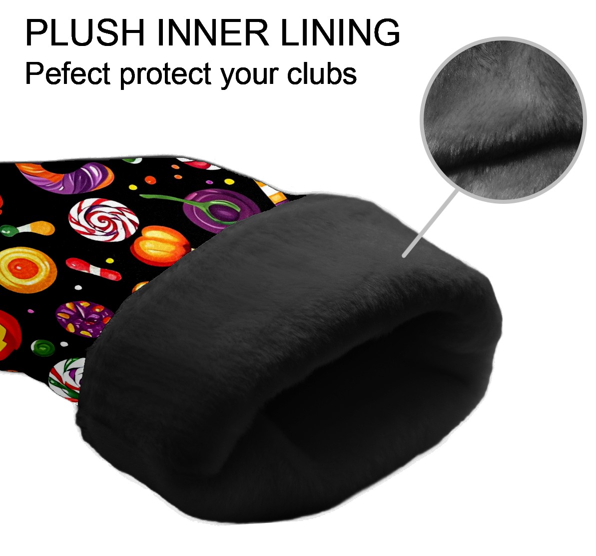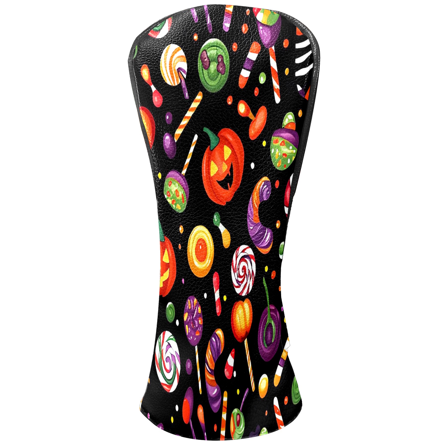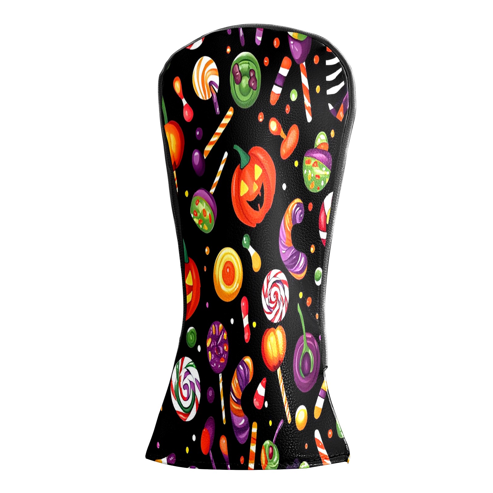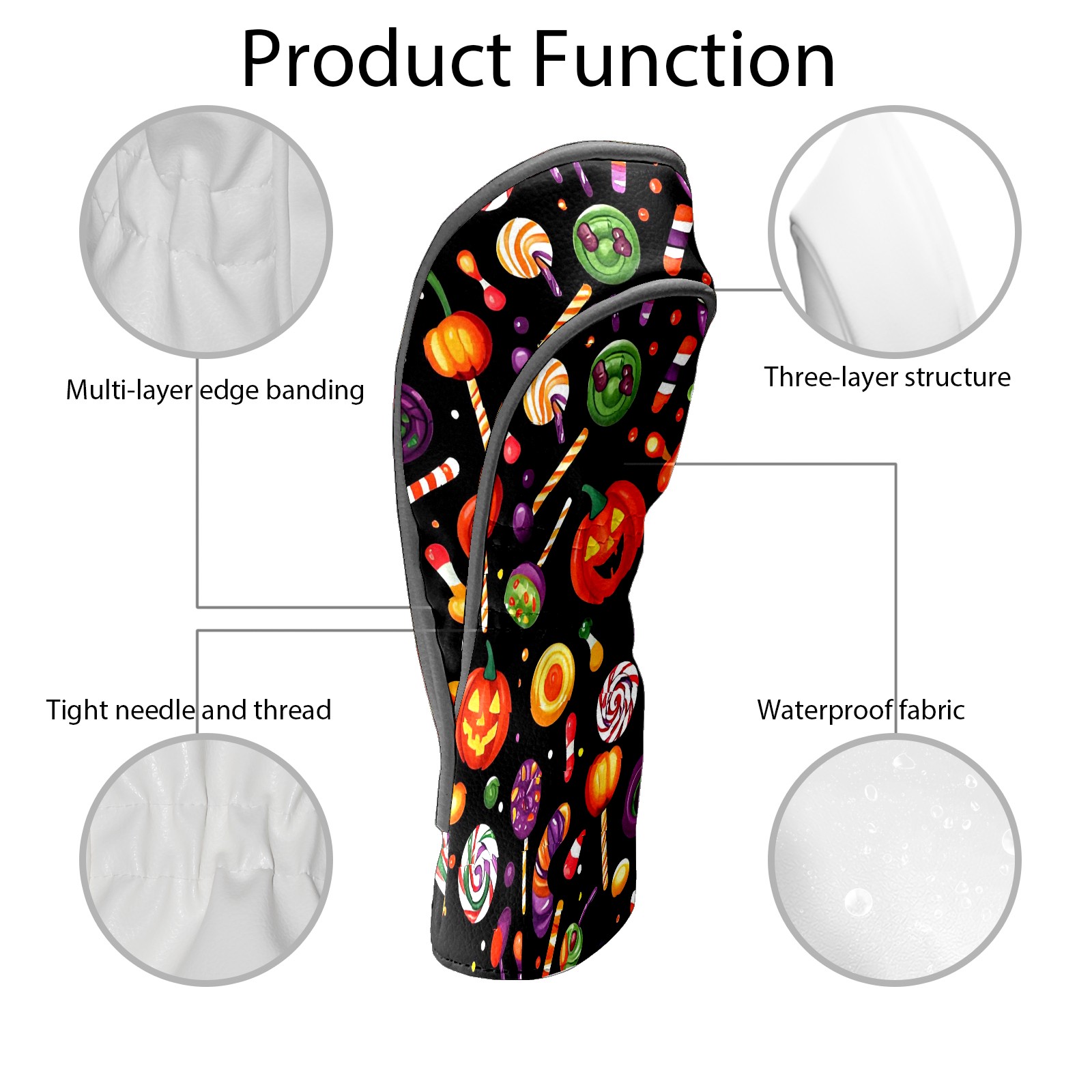 Golf Club Head Covers Counullo for Driver & Fairway Woods Black HalloweenCandy Premium Plush Velvet Lining, Waterproof Golf Headcovers for Scratch Protection Novelty Gift for Men & Women