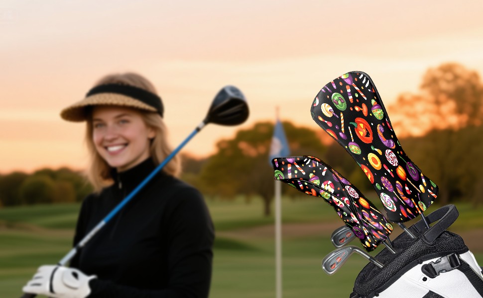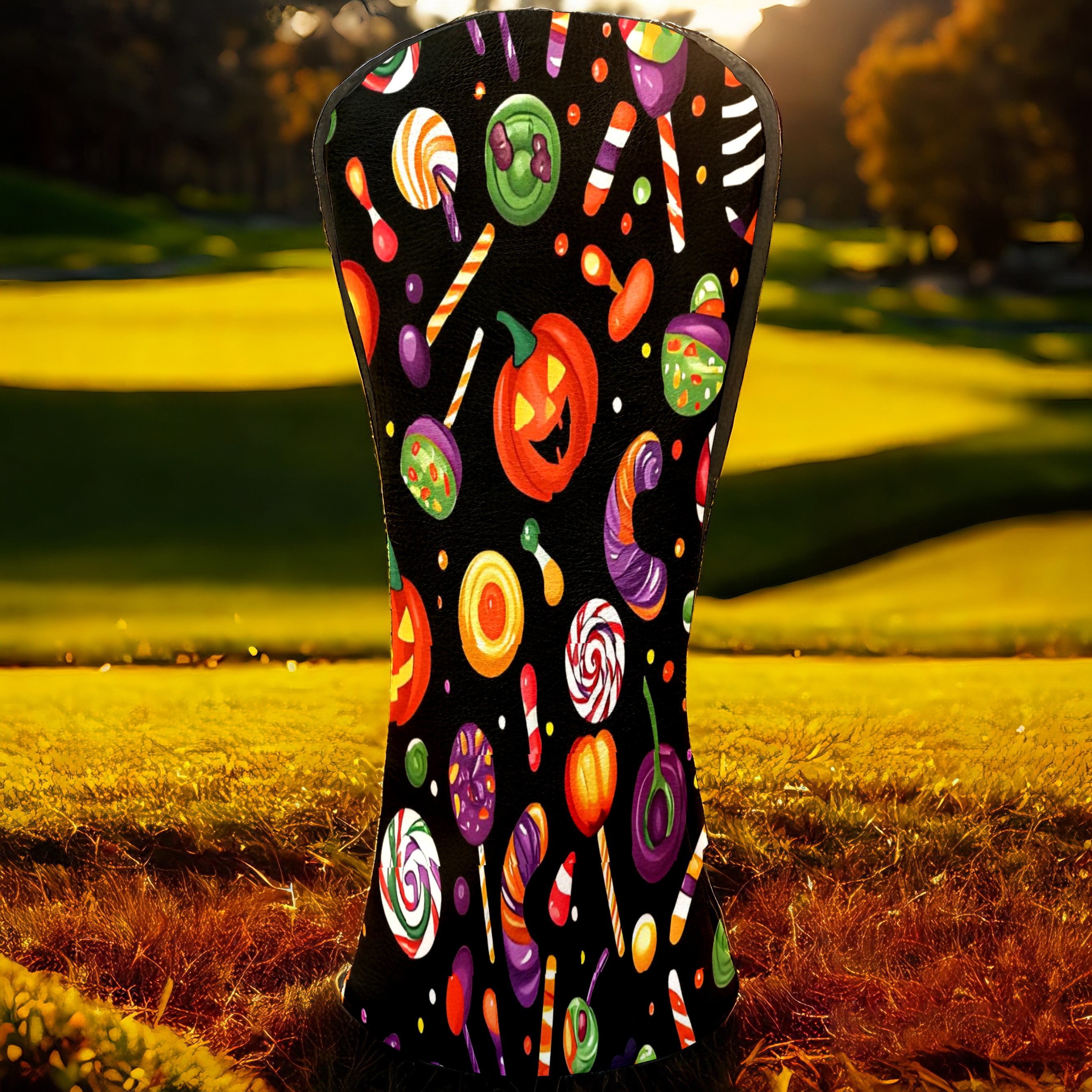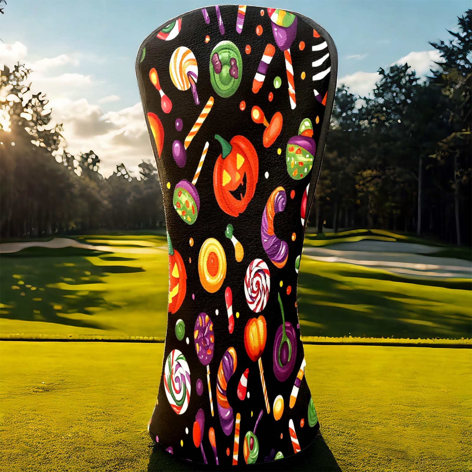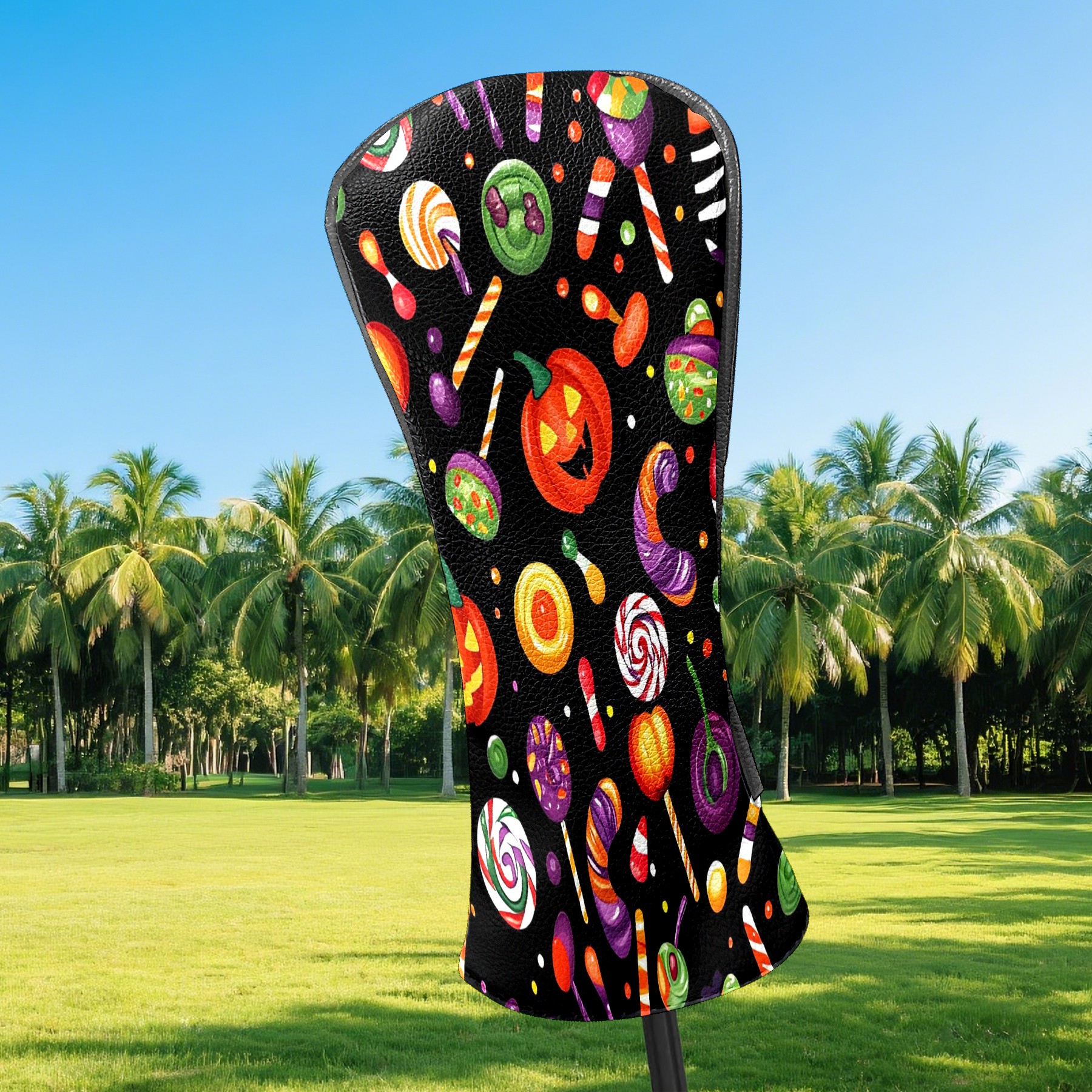 Golf Club Head Covers Counullo for Driver & Fairway Woods Black HalloweenCandy Premium Plush Velvet Lining, Waterproof Golf Headcovers for Scratch Protection Novelty Gift for Men & Women