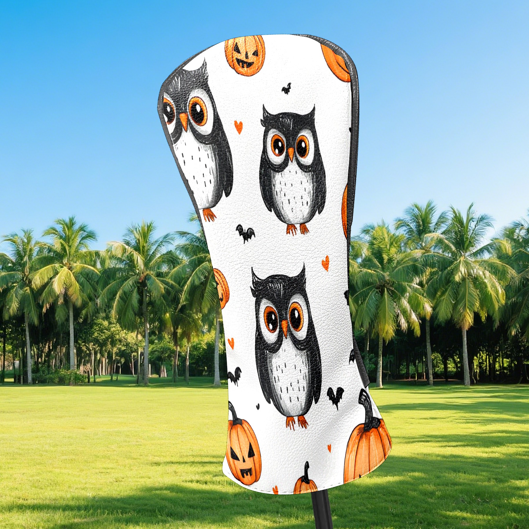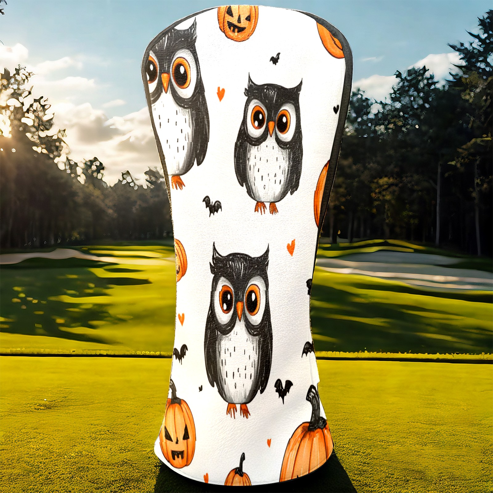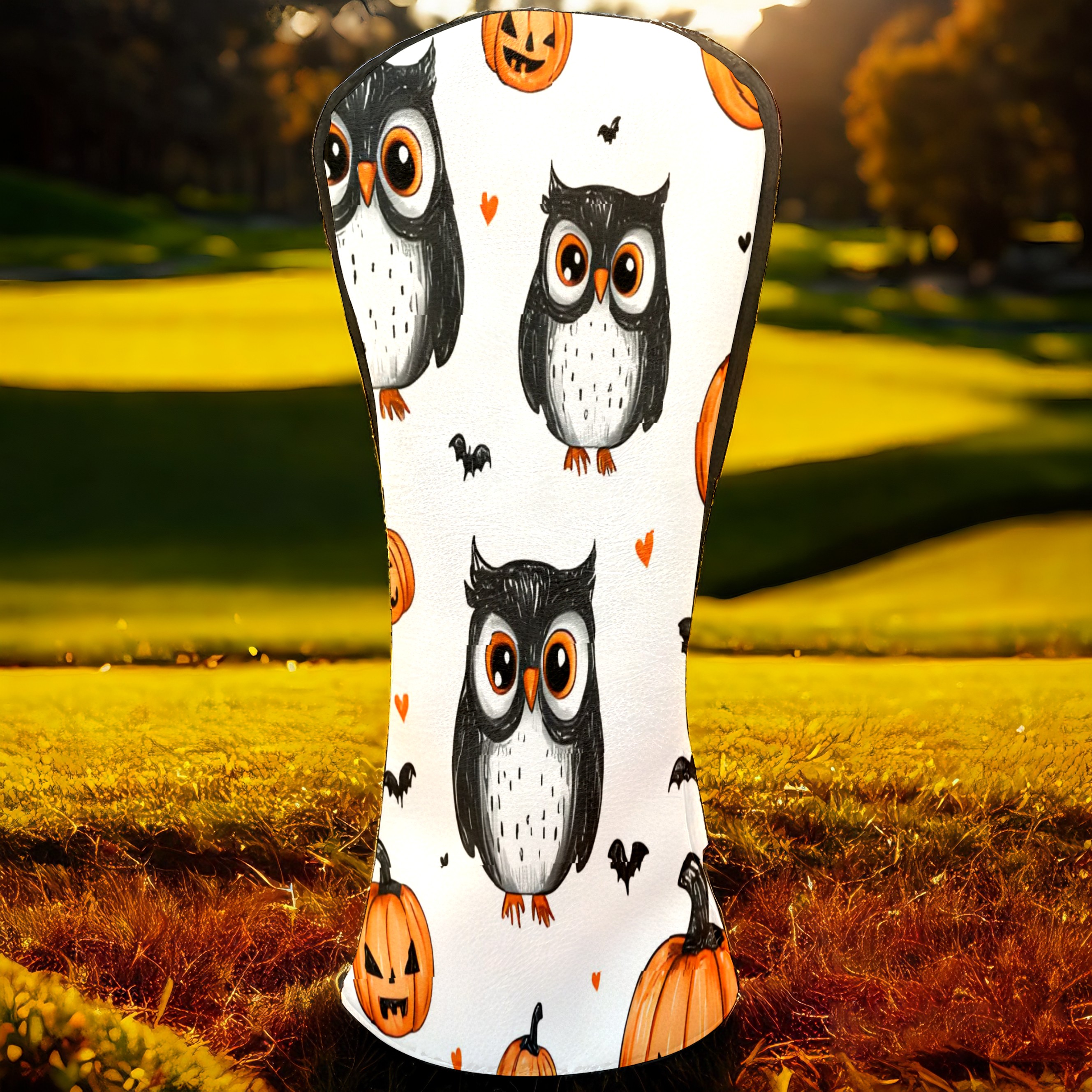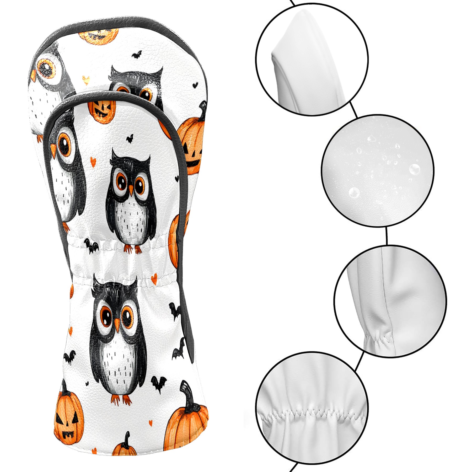 Golf Club Head Covers Counullo for Driver & Fairway Woods Black OwlPumpkin Premium Plush Velvet Lining, Waterproof Golf Headcovers for Scratch Protection Novelty Gift for Men & Women
