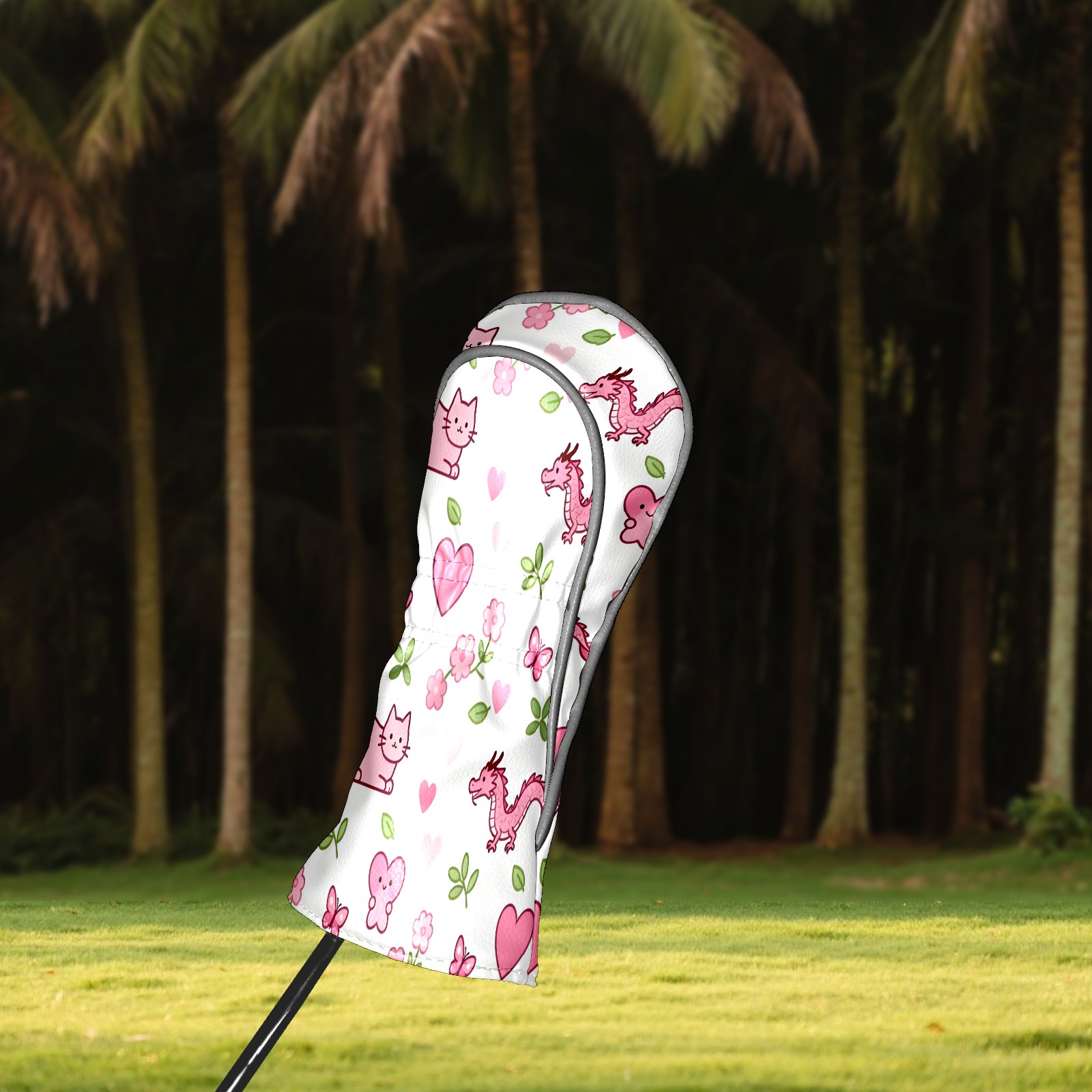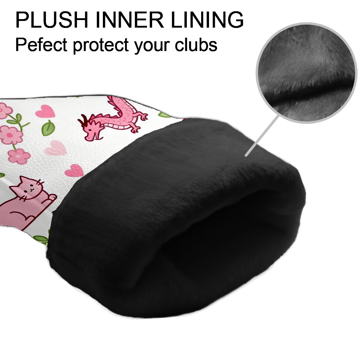 Golf Club Head Covers Counullo for Driver & Fairway Woods Pink LizardCat Premium Plush Velvet Lining, Waterproof Golf Headcovers for Scratch Protection Novelty Gift for Men & Women