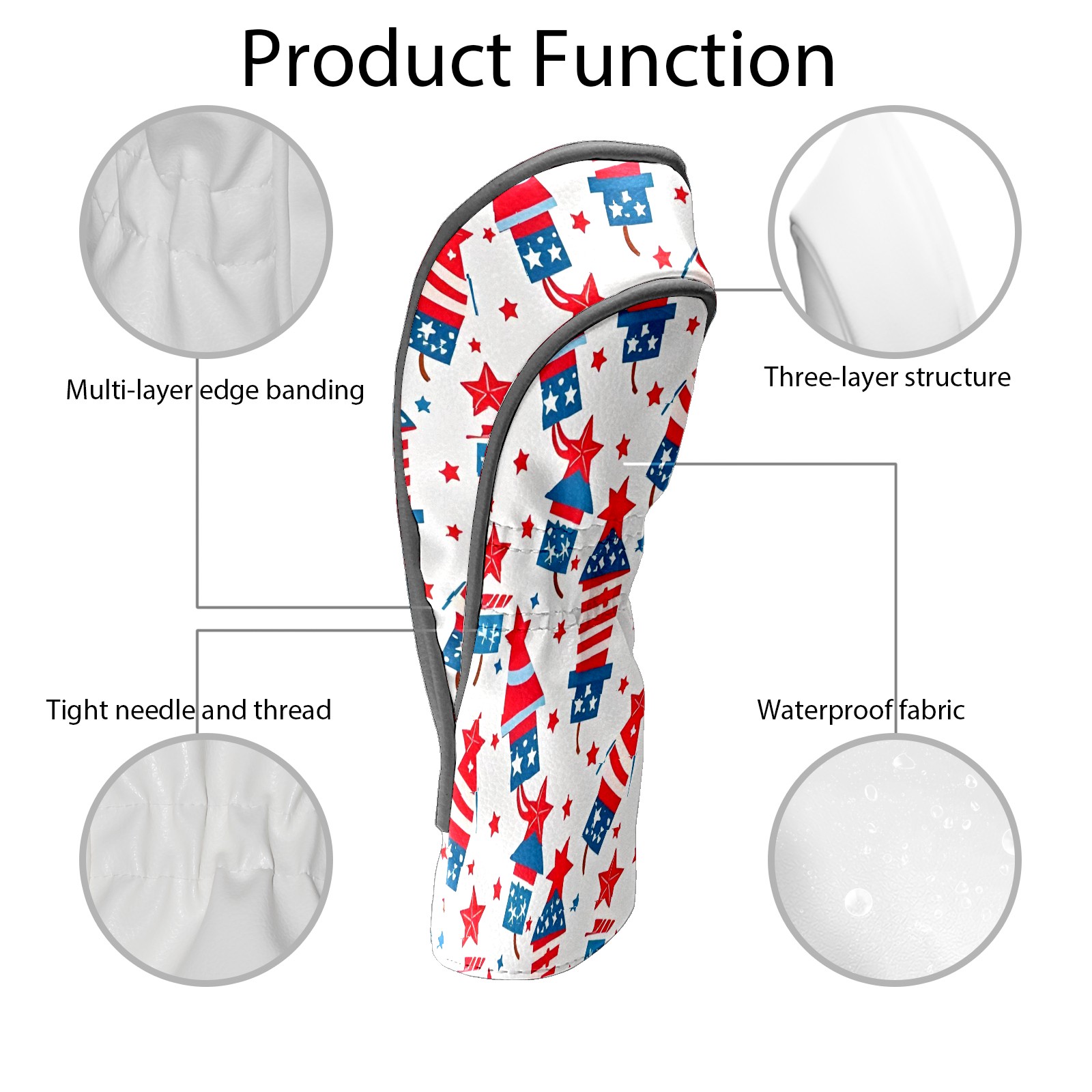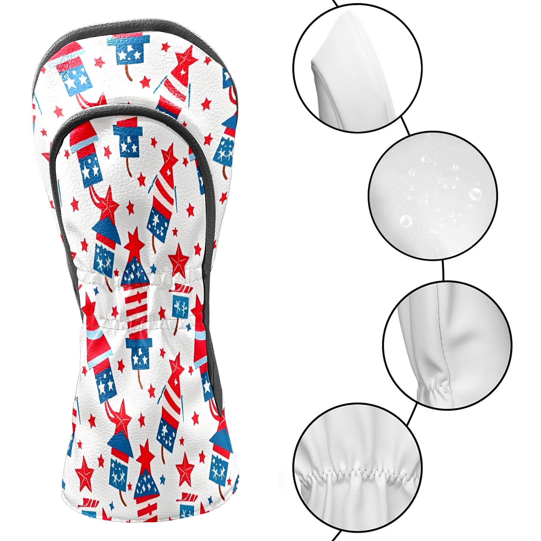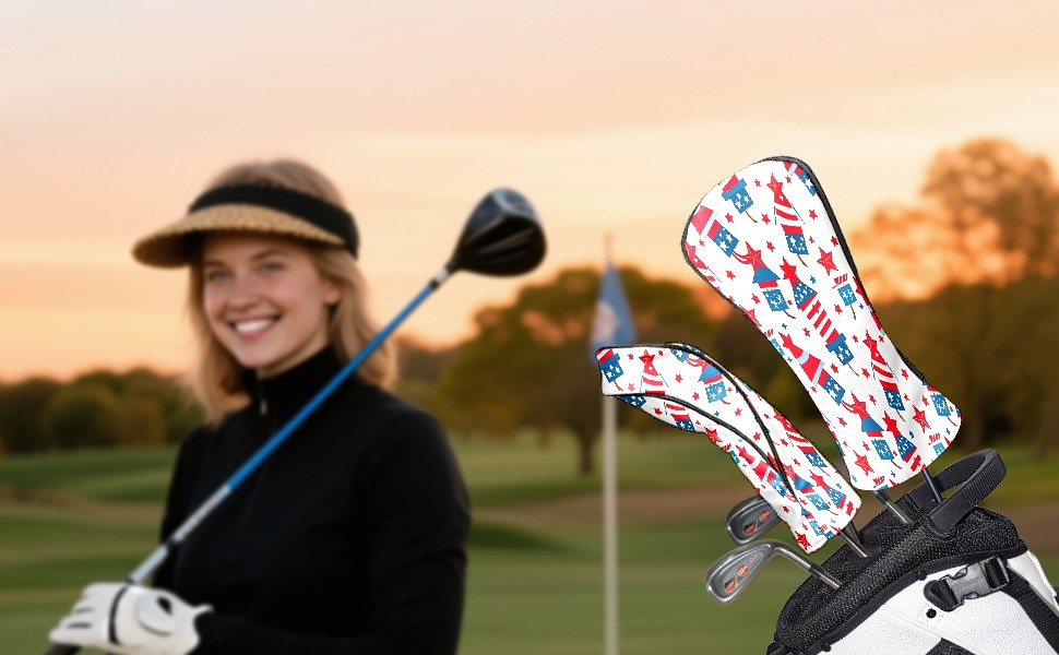 Golf Club Head Covers Counullo for Driver & Fairway Woods RedAmerican Firework Premium Plush Velvet Lining, Waterproof Golf Headcovers for Scratch Protection Novelty Gift for Men & Women