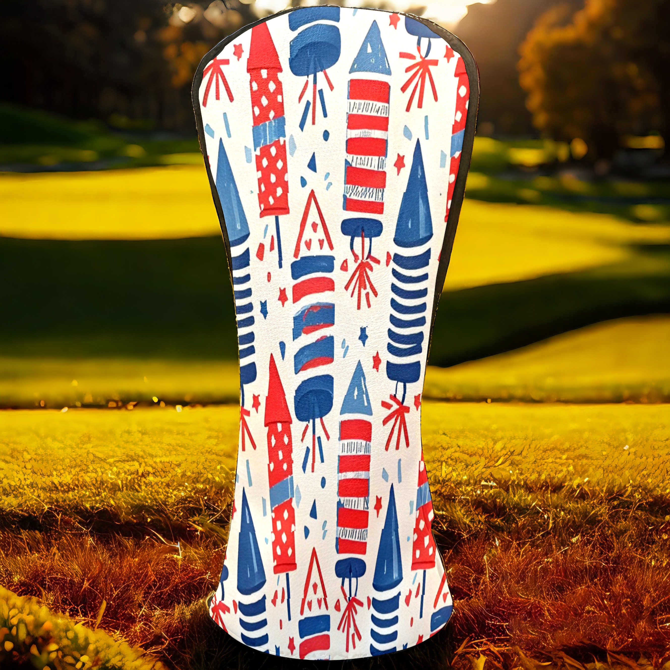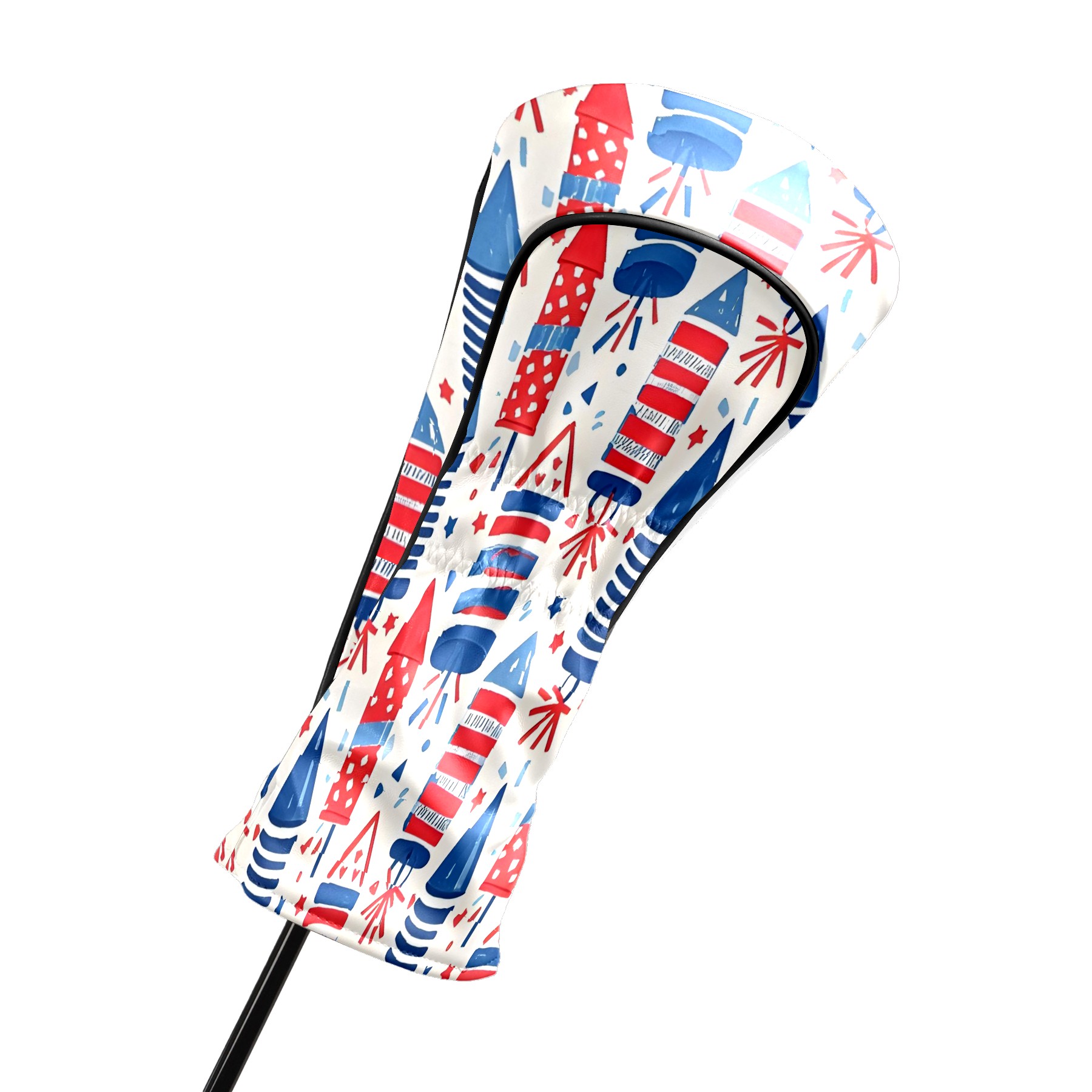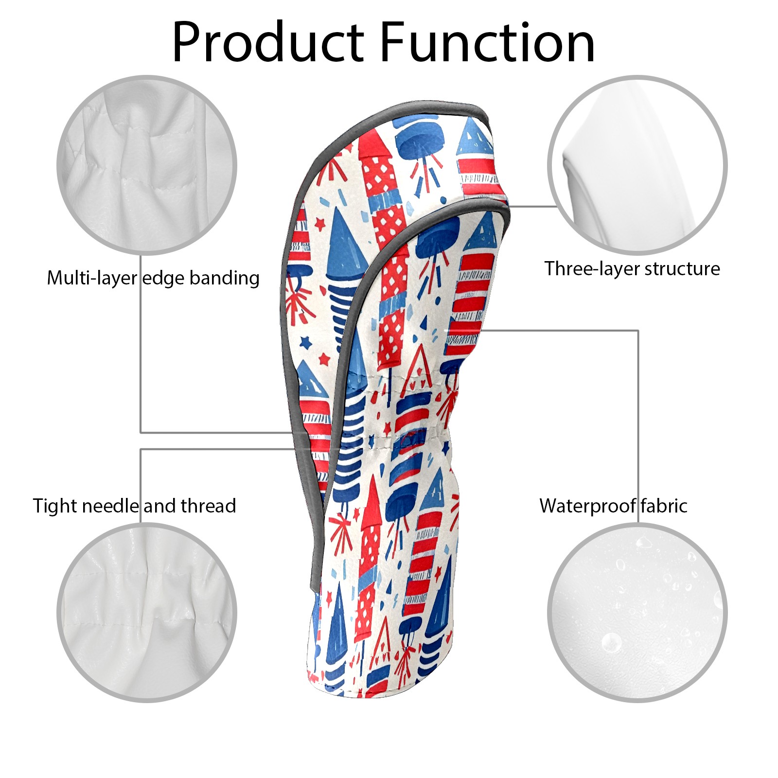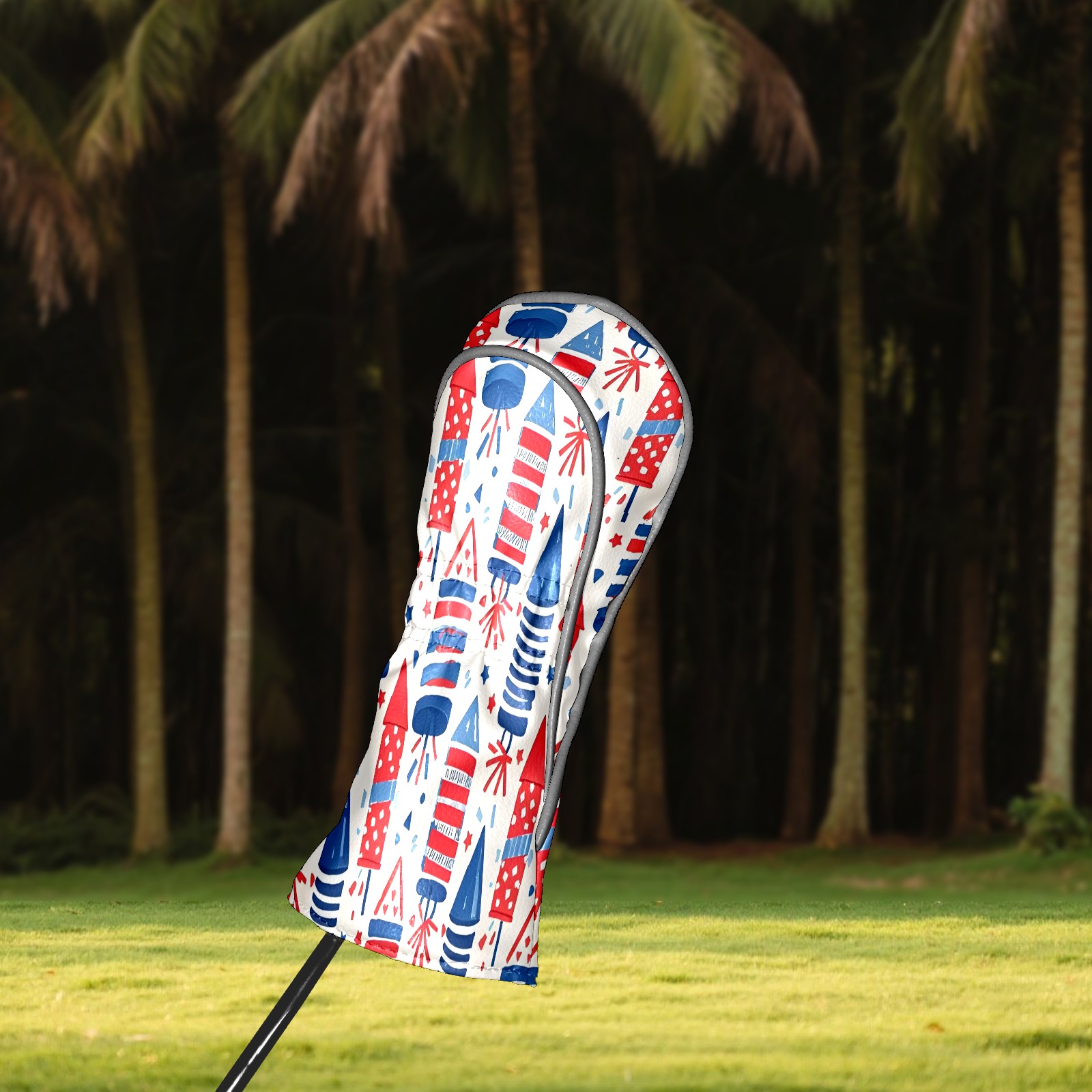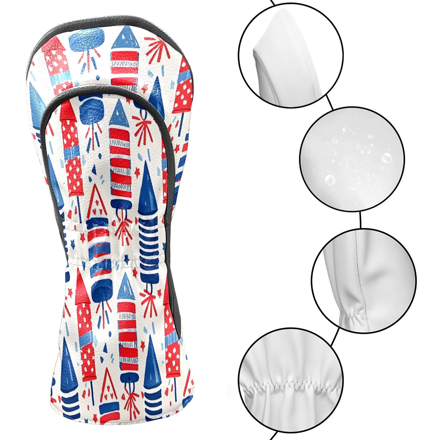 Golf Club Head Covers Counullo for Driver & Fairway Woods Blue Firework Premium Plush Velvet Lining, Waterproof Golf Headcovers for Scratch Protection Novelty Gift for Men & Women