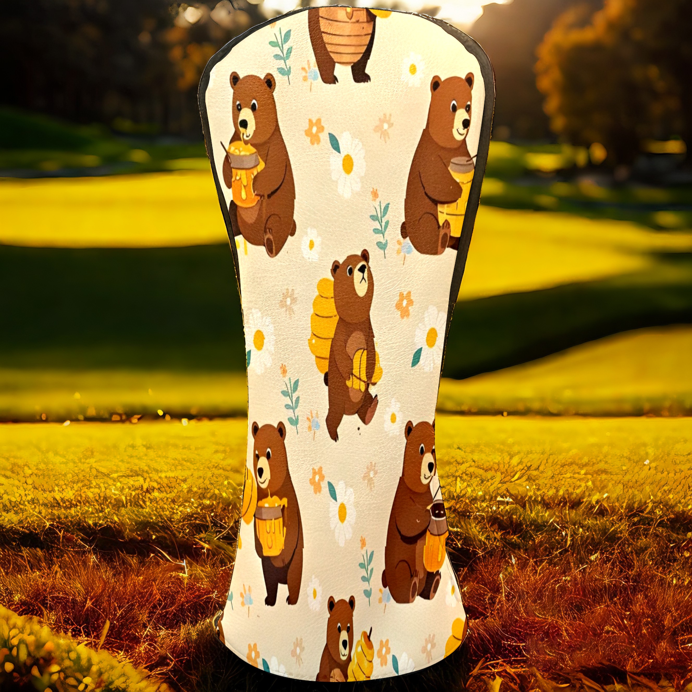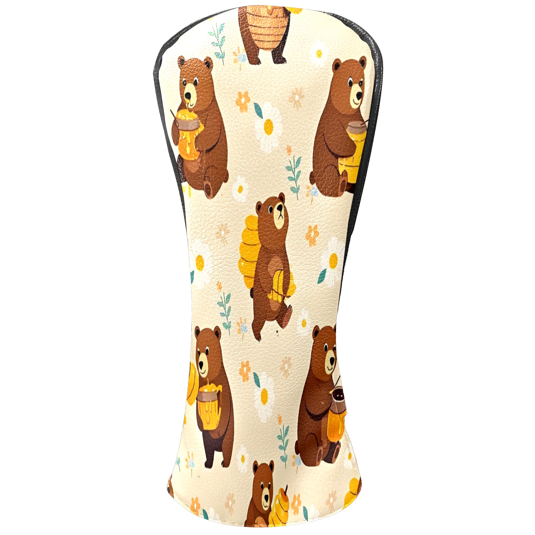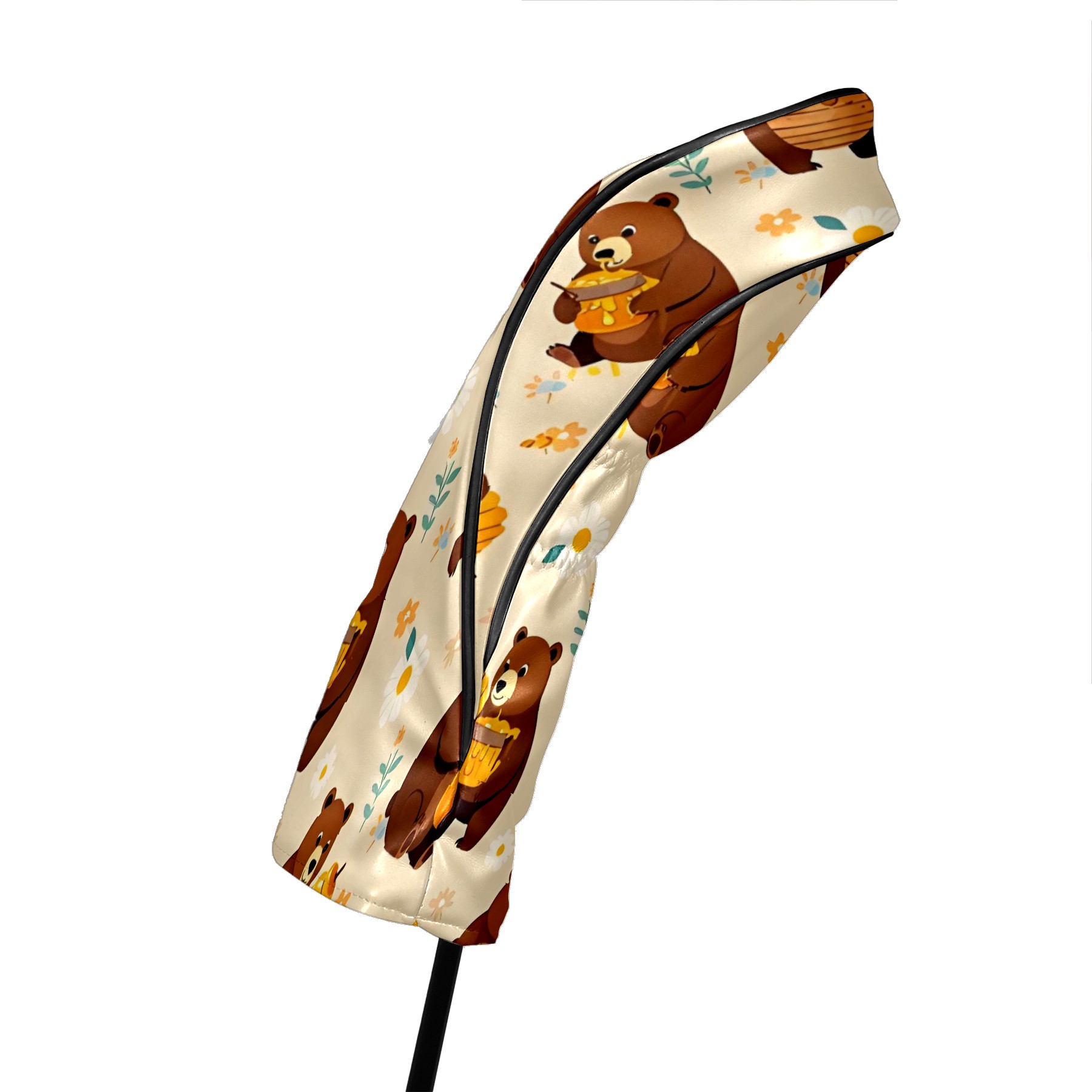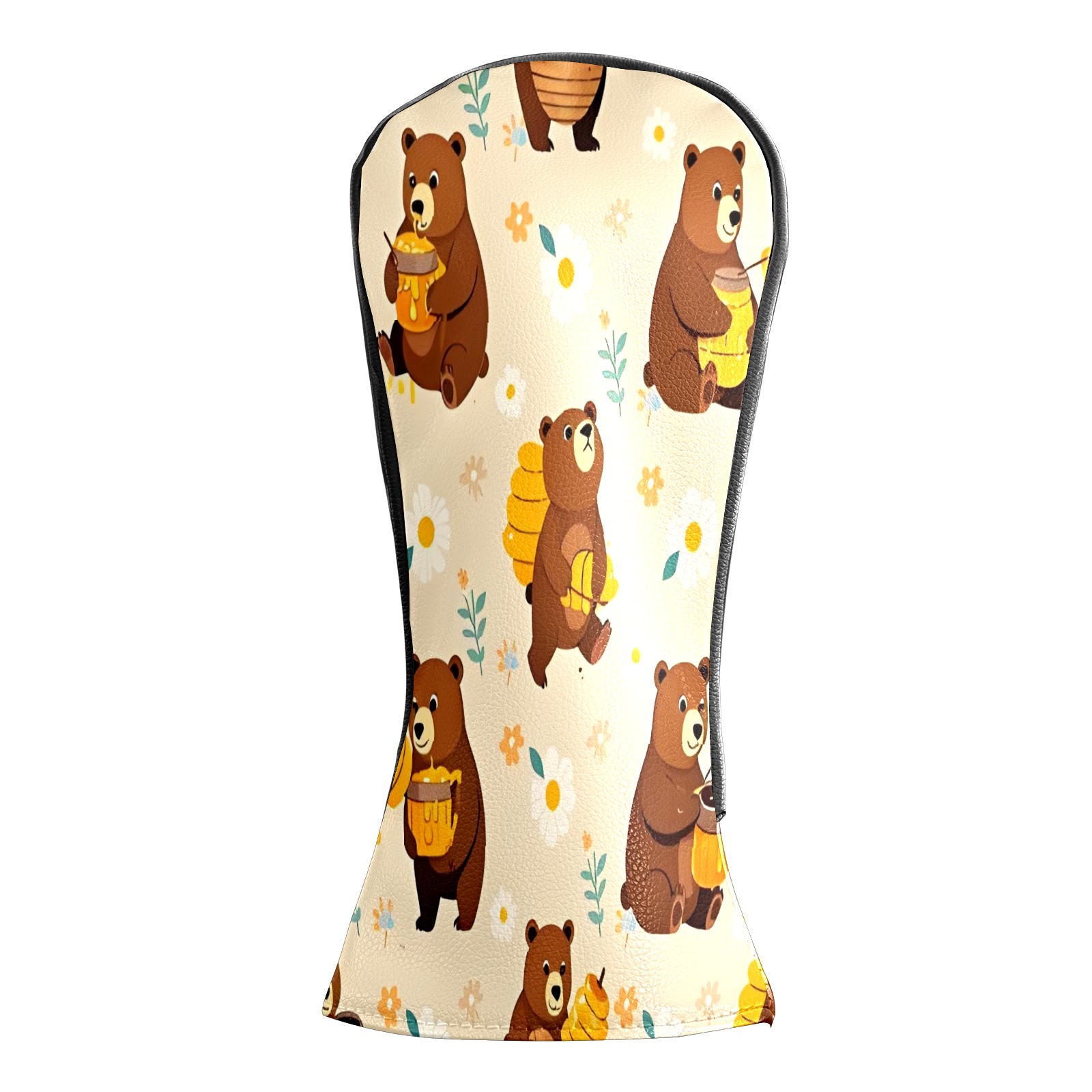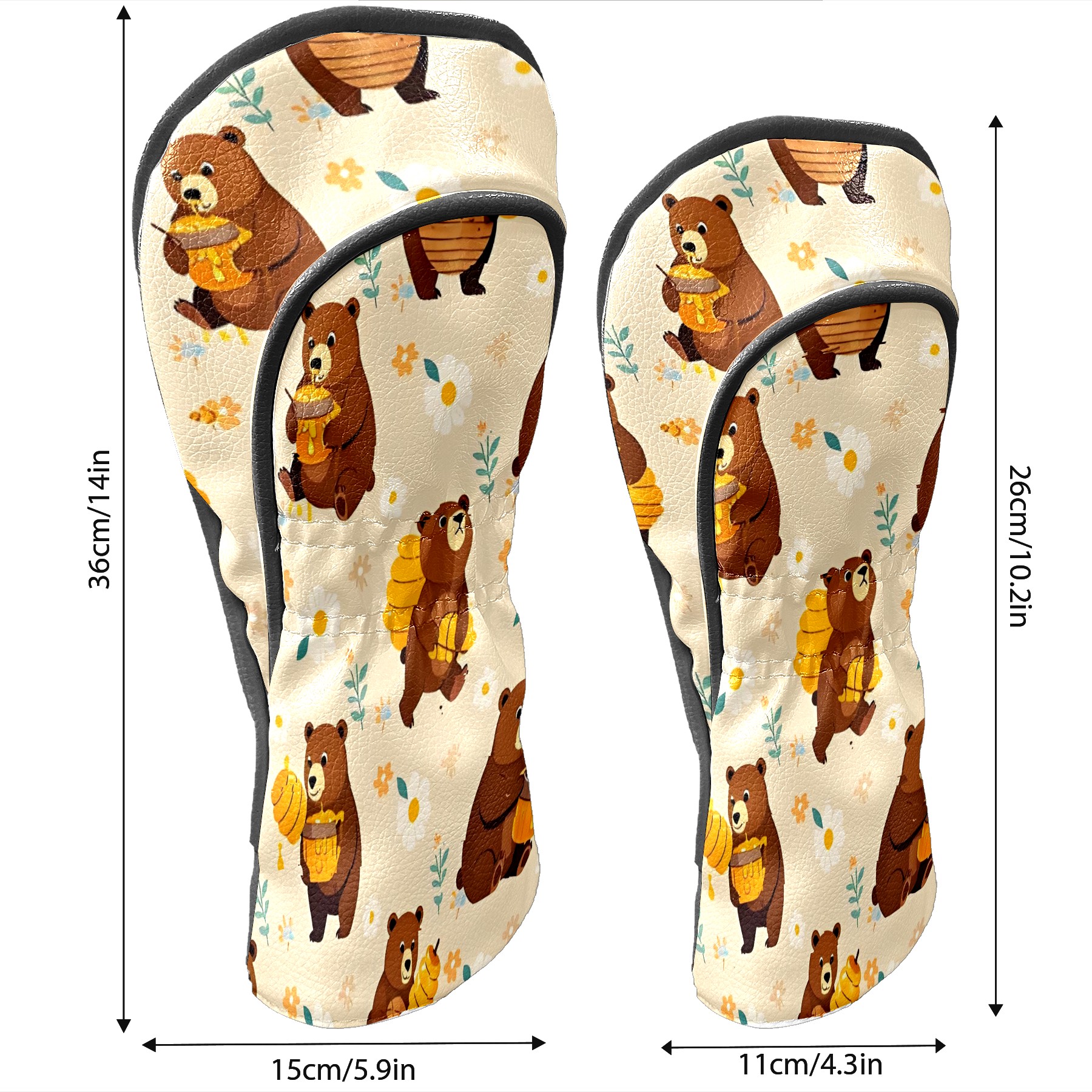 Golf Club Head Covers Counullo for Driver & Fairway Woods LightYellow Bear Premium Plush Velvet Lining, Waterproof Golf Headcovers for Scratch Protection Novelty Gift for Men & Women