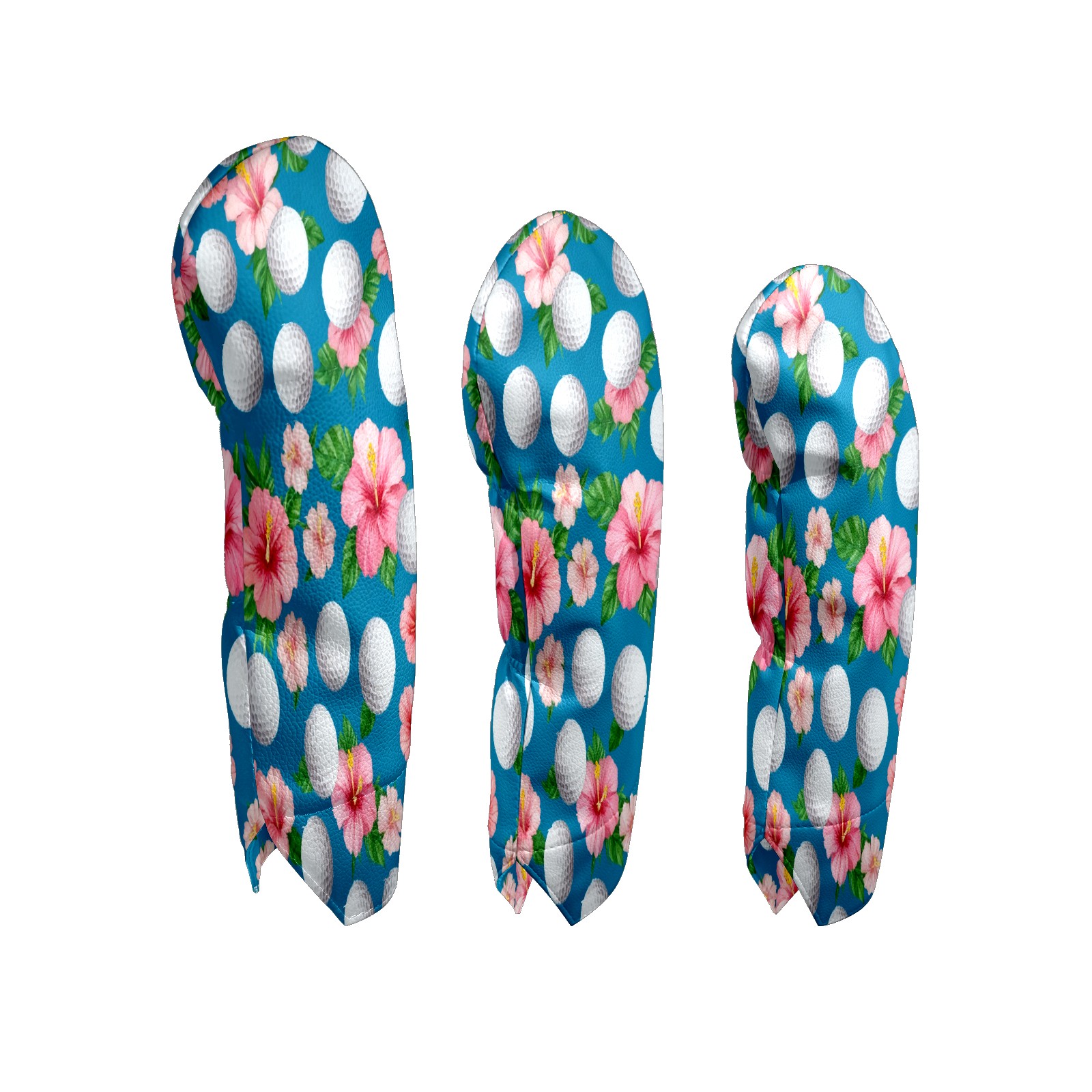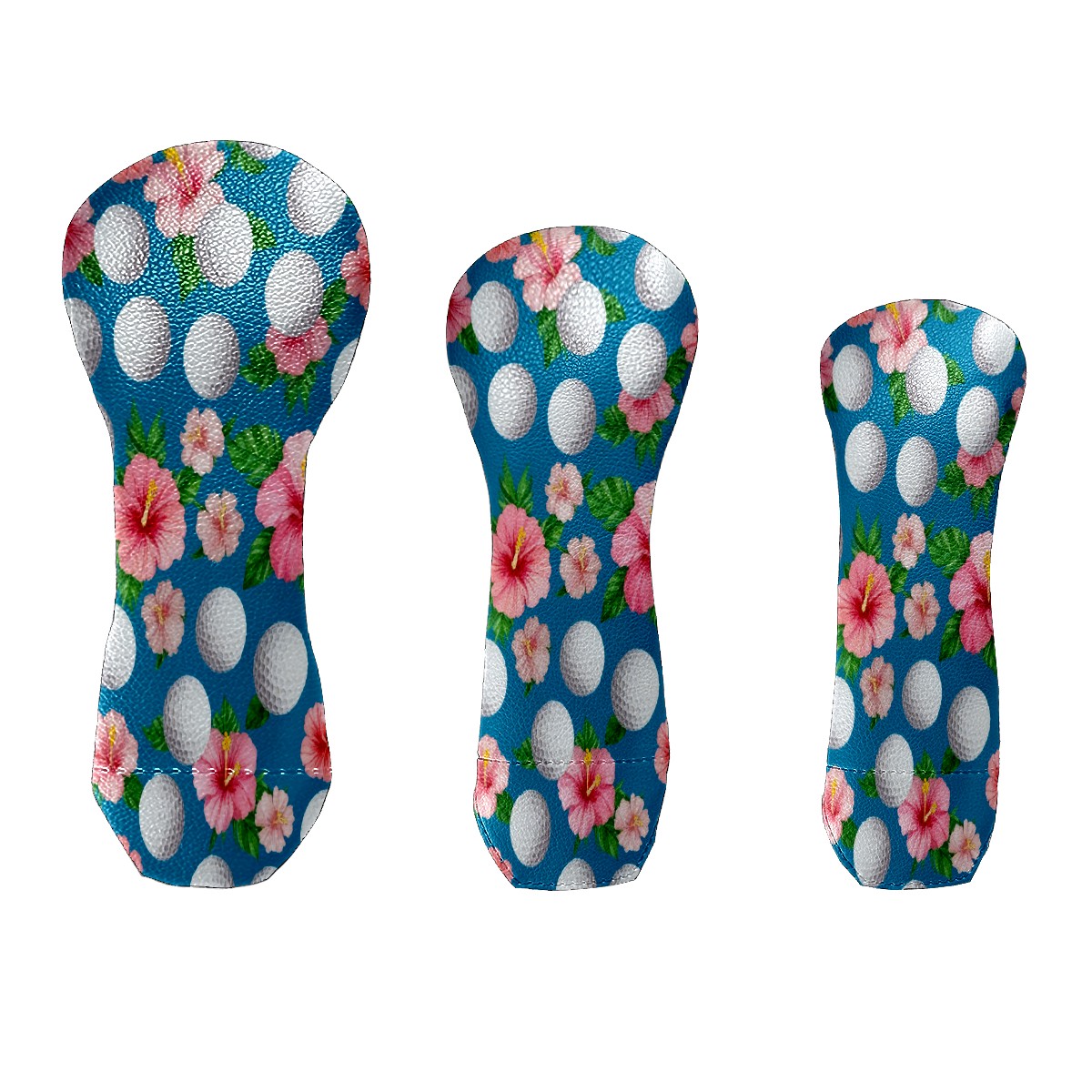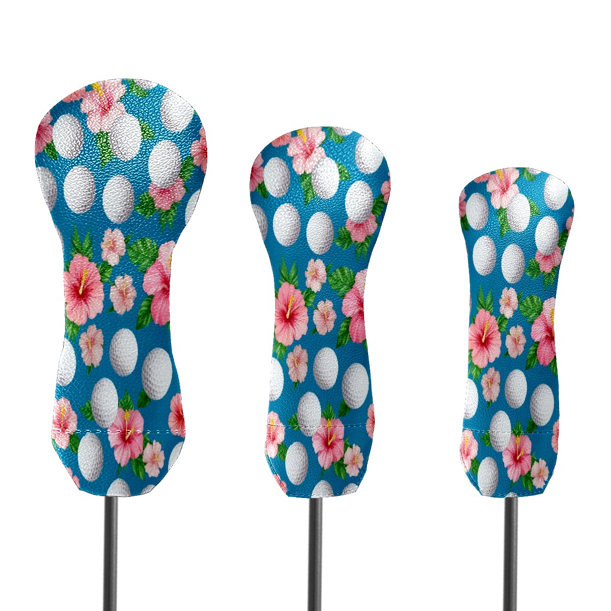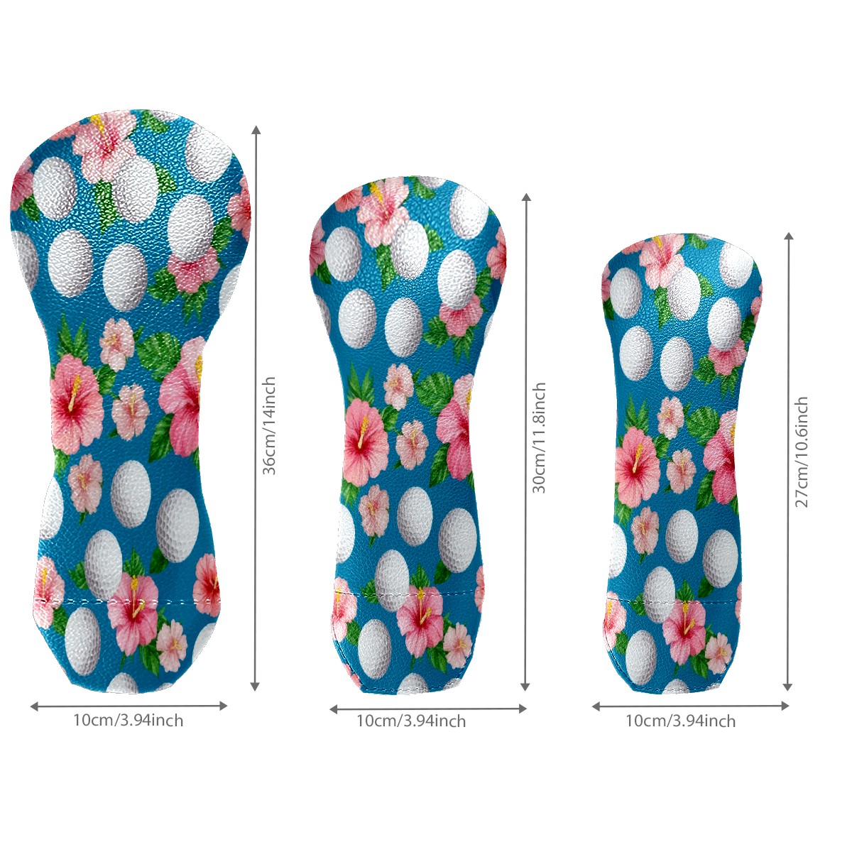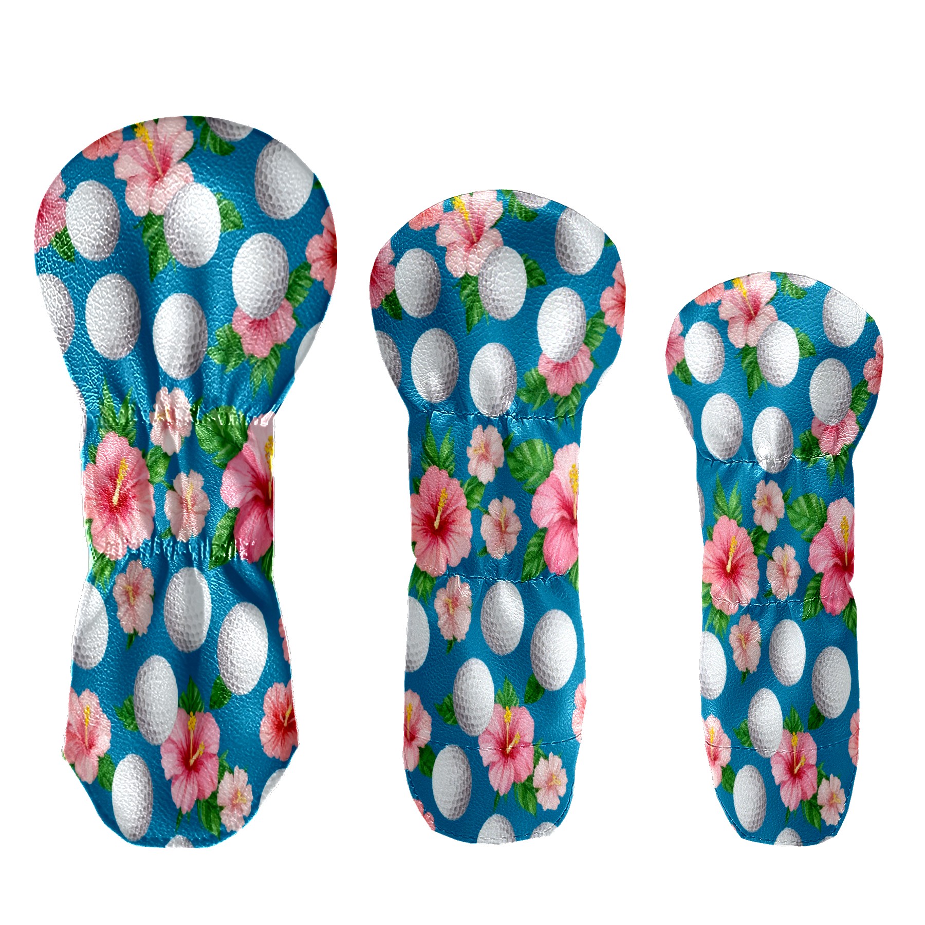 PU Leather Golf Head Covers for Driver, Fairway Wood & Hybrid Clubs, Unisex, Fits All Brands Flower Ball