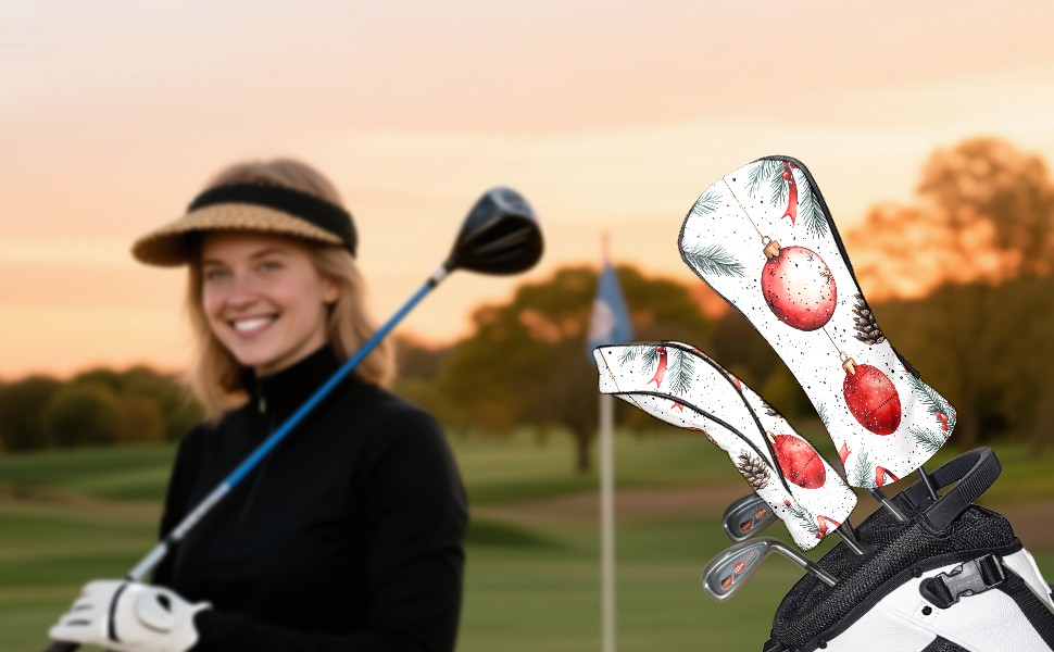 Golf Club Covers PU Leather Waterproof,Golf Club Head Covers for Fairway Woods and Hybrids Cute Christmas Pattern Unisex Suitable for Most Brands
