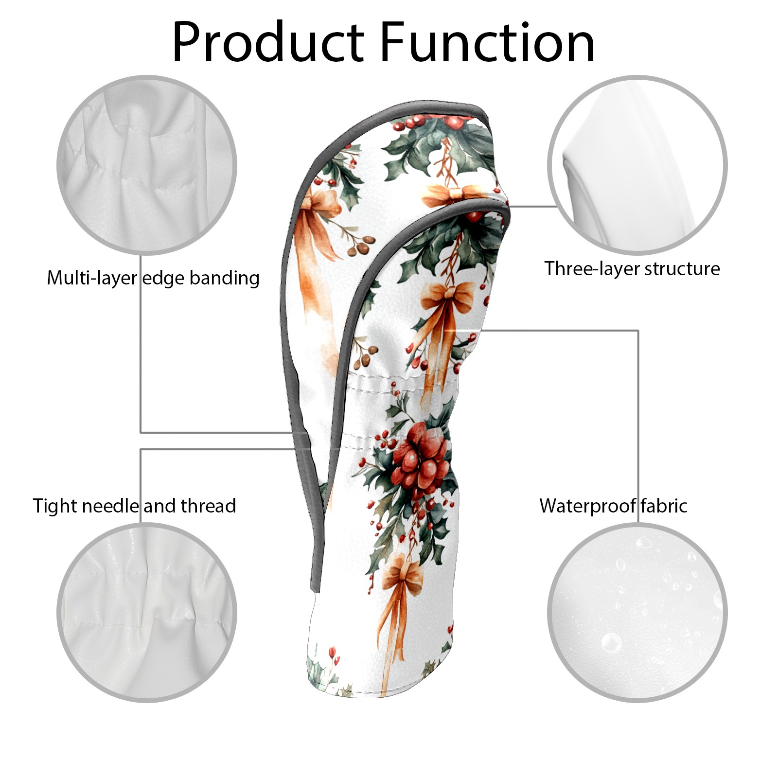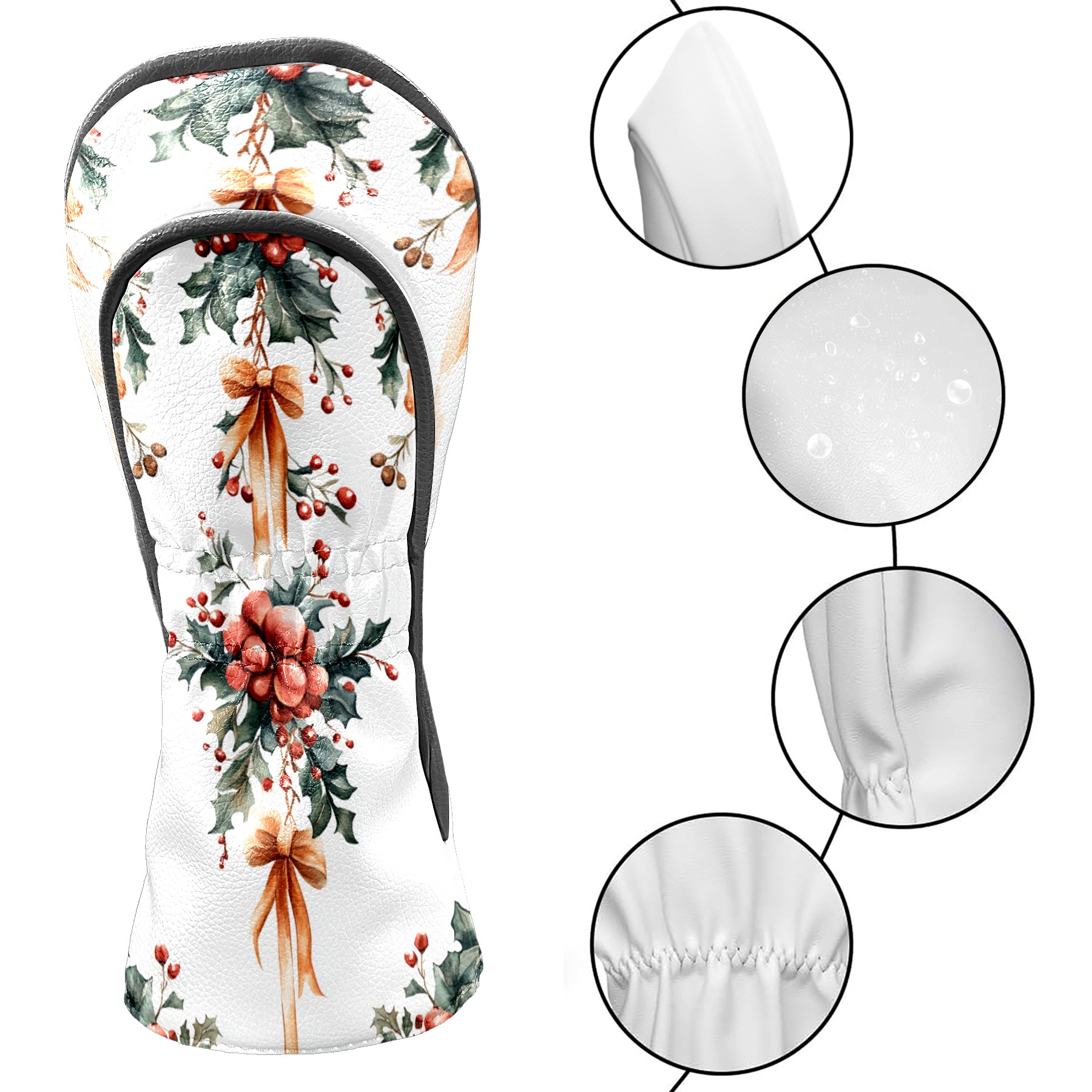Golf Club Covers PU Leather Waterproof,Golf Club Head Covers for Fairway Woods and Hybrids Christmas Garlands Unisex Suitable for Most Brands